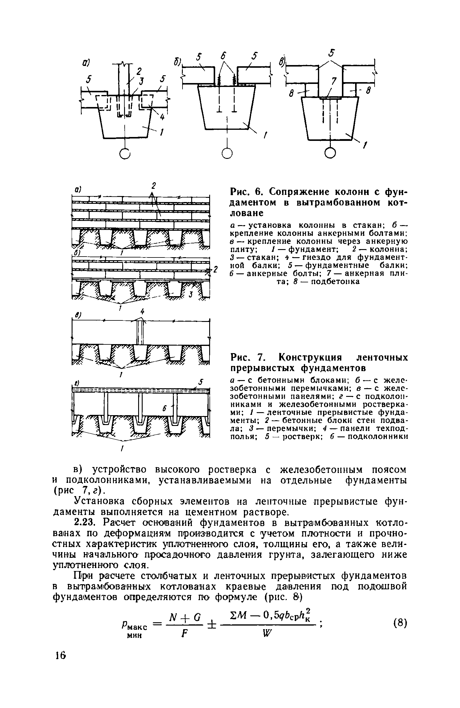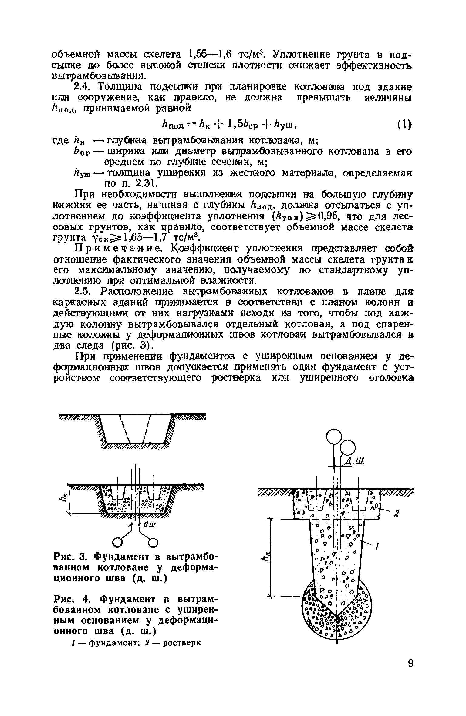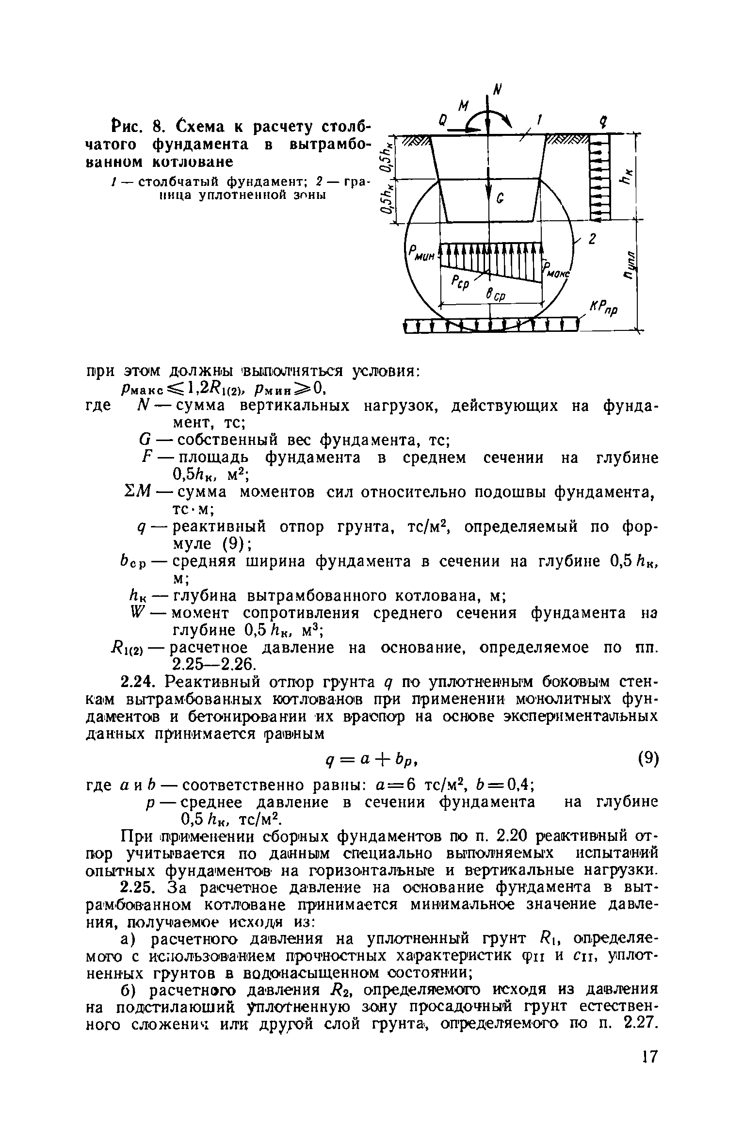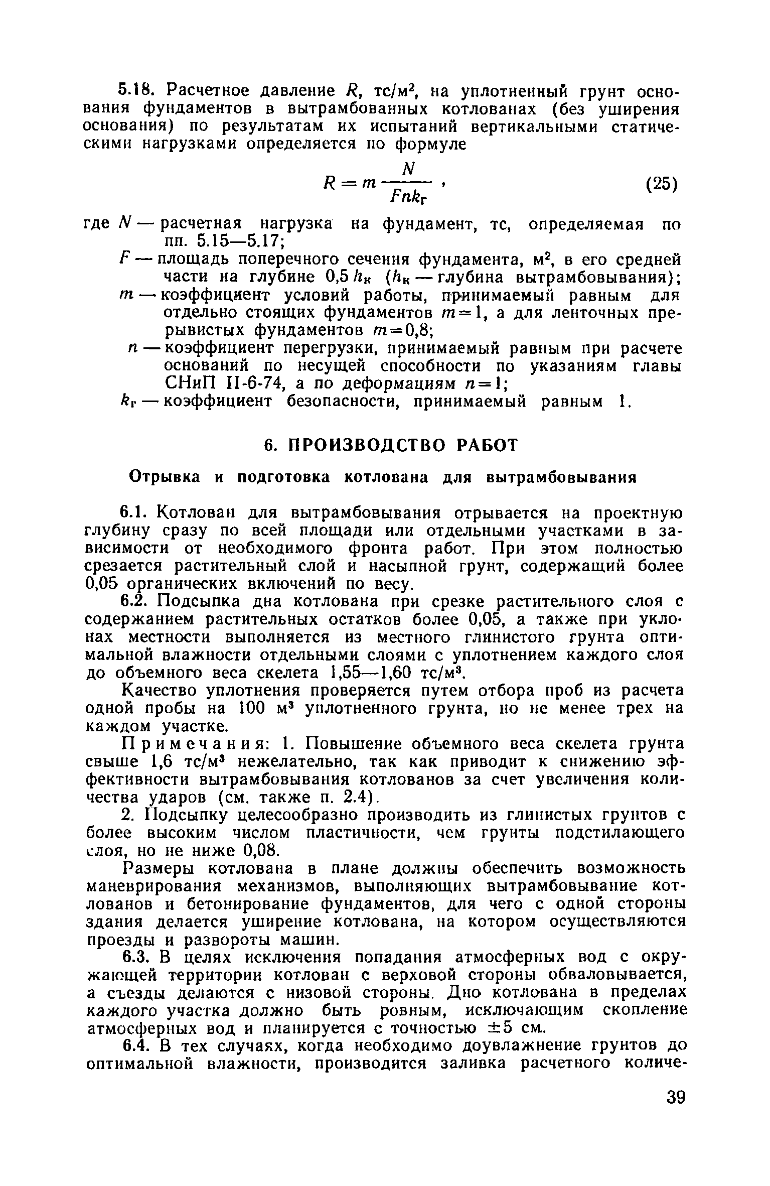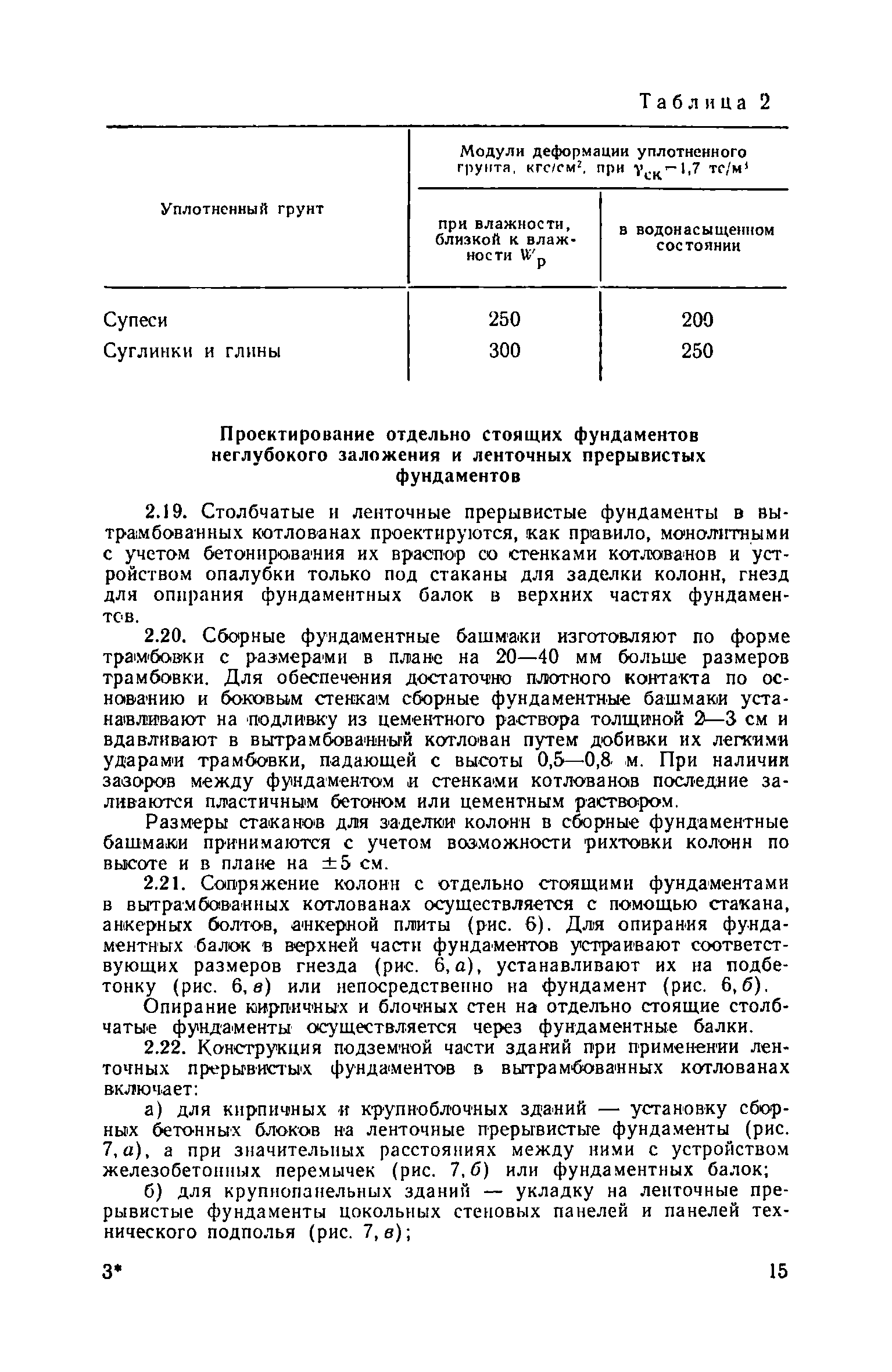 | Оглавление: | Введение 1. Общие положения 2. Проектирование фундаментов в вытрамбованных котлованах Общие положения по проектированию Общие положения по расчету Проектирование отдельно стоящих фундаментов неглубокого заложения и ленточных прерывистых фундаментов Проектирование фундаментов с уширением основания 3. Оборудование для вытрамбовывания котлованов Оборудование на базе крана-экскаватора Оборудование на базе трактора Оборудование на базе сваебойного агрегата 4. Опытные работы по вытрамбовыванию 5. Испытания опытных фундаментов 6. Производство работ Отрывка и подготовка котлована для вытрамбовывания Вытрамбовывание котлованов Втрамбовывание жесткого материала в дно котлована Устройство монолитных фундаментов Устройство сборных фундаментов Особенности производства работ в зимнее время Приложение 1. Пример проектирования отдельно стоящих фундаментов неглубокого заложения Приложение 2. Пример проектирования ленточных прерывистых фундаментов Приложение 3. Пример проектирования отдельно стоящих фундаментов с уширенным основанием Приложение 4. Журнал производства работ по вытрамбовыванию котлованов Приложение 5. Журнал производства работ по втрамбовыванию щебня в дно котлованов |