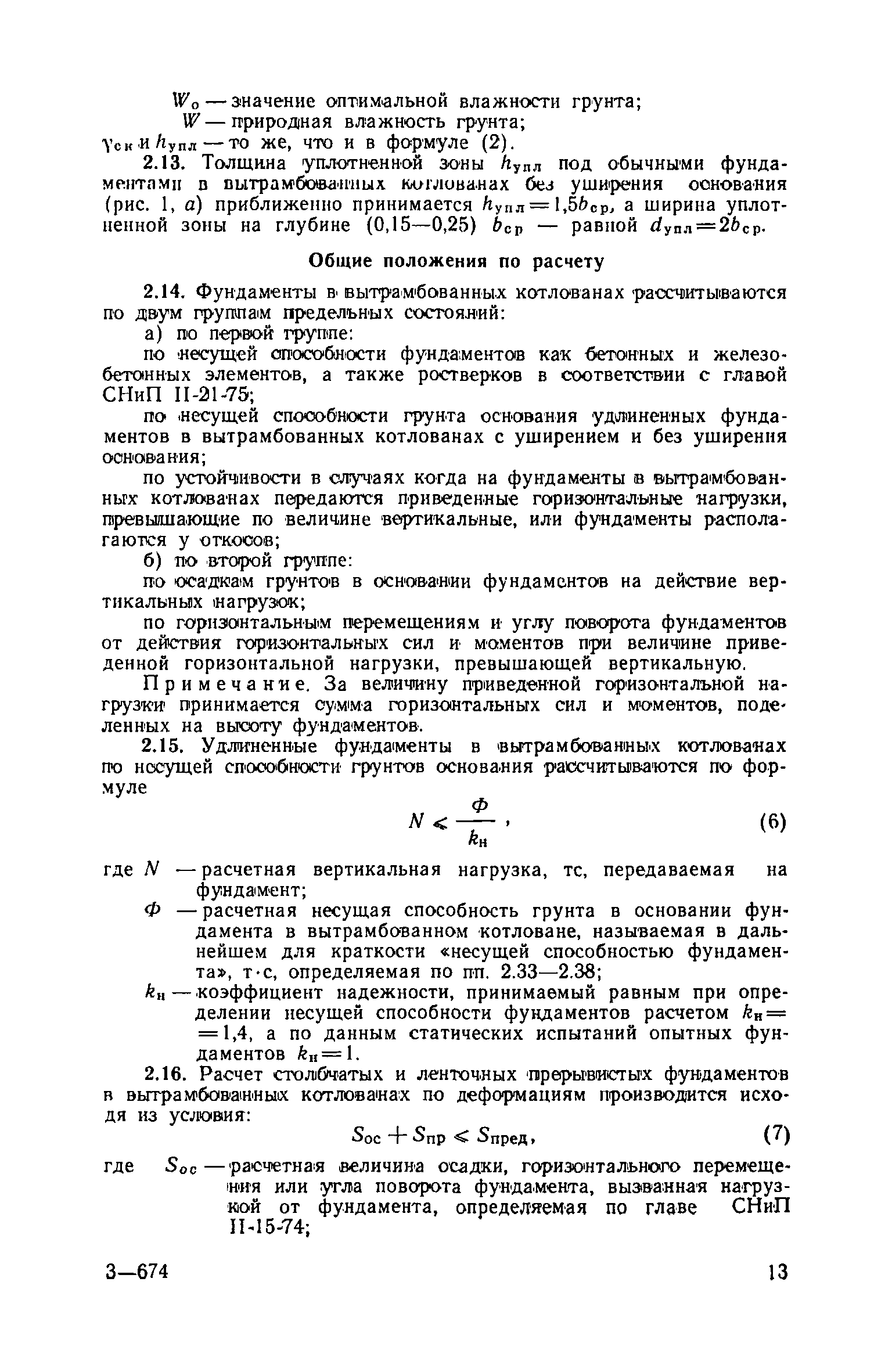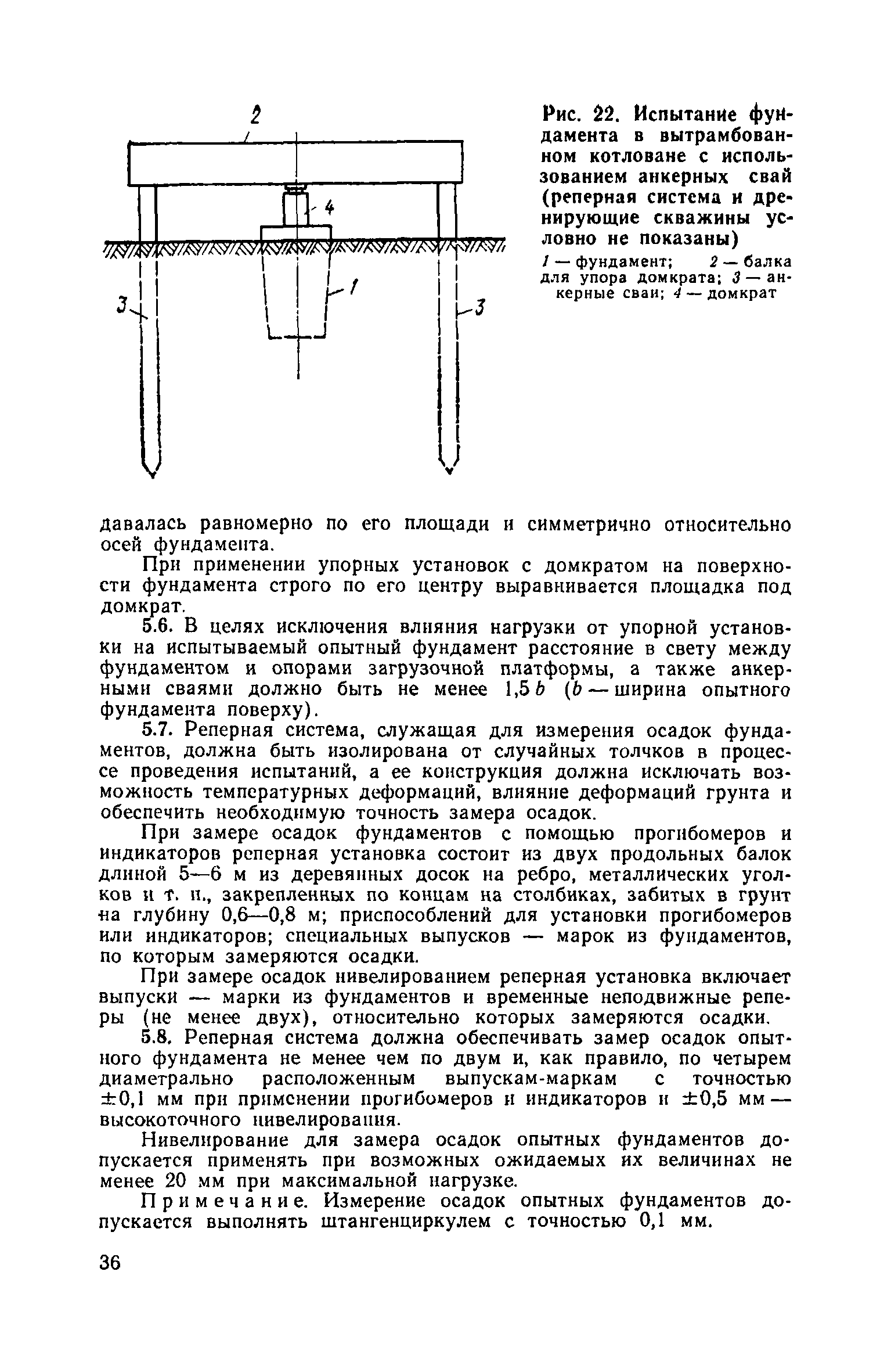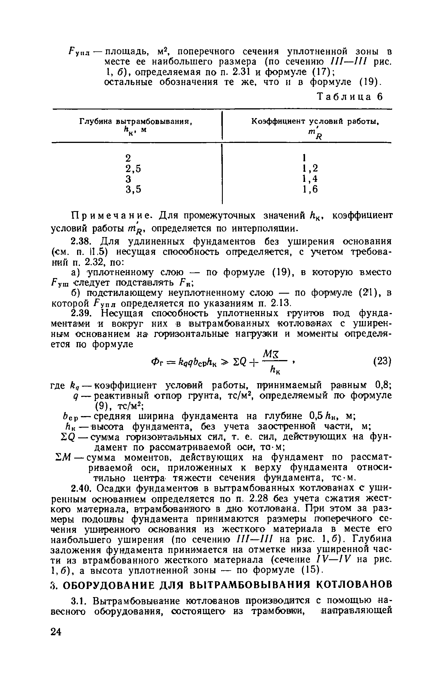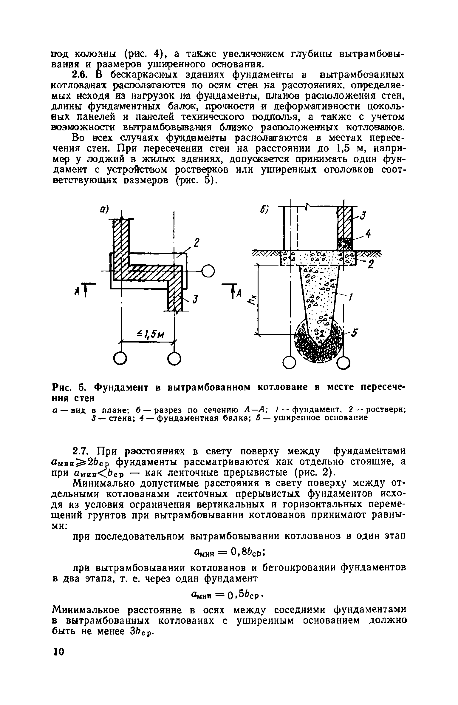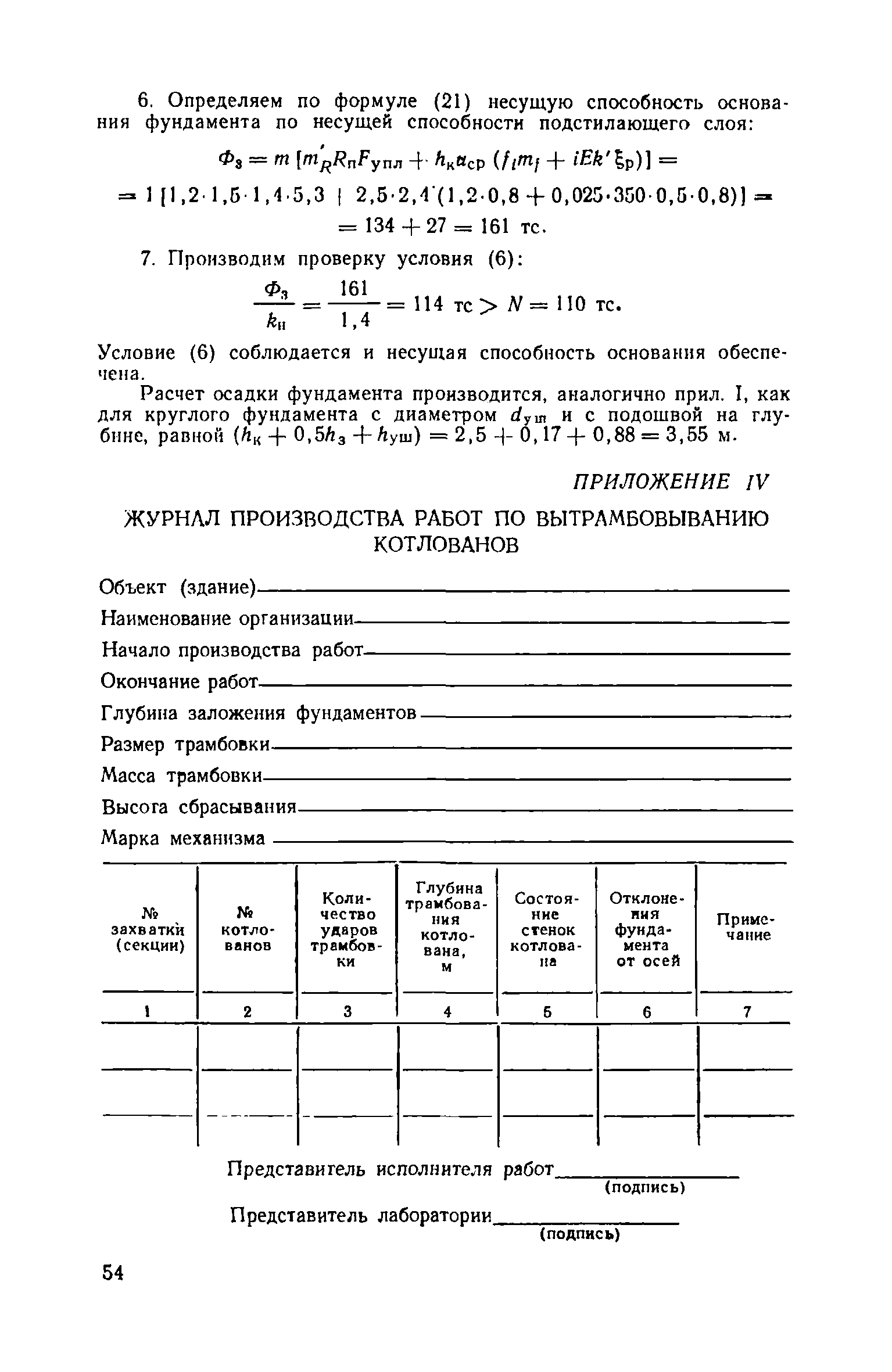 | Оглавление: | Введение 1. Общие положения 2. Проектирование фундаментов в вытрамбованных котлованах Общие положения по проектированию Общие положения по расчету Проектирование отдельно стоящих фундаментов неглубокого заложения и ленточных прерывистых фундаментов Проектирование фундаментов с уширением основания 3. Оборудование для вытрамбовывания котлованов Оборудование на базе крана-экскаватора Оборудование на базе трактора Оборудование на базе сваебойного агрегата 4. Опытные работы по вытрамбовыванию 5. Испытания опытных фундаментов 6. Производство работ Отрывка и подготовка котлована для вытрамбовывания Вытрамбовывание котлованов Втрамбовывание жесткого материала в дно котлована Устройство монолитных фундаментов Устройство сборных фундаментов Особенности производства работ в зимнее время Приложение 1. Пример проектирования отдельно стоящих фундаментов неглубокого заложения Приложение 2. Пример проектирования ленточных прерывистых фундаментов Приложение 3. Пример проектирования отдельно стоящих фундаментов с уширенным основанием Приложение 4. Журнал производства работ по вытрамбовыванию котлованов Приложение 5. Журнал производства работ по втрамбовыванию щебня в дно котлованов |