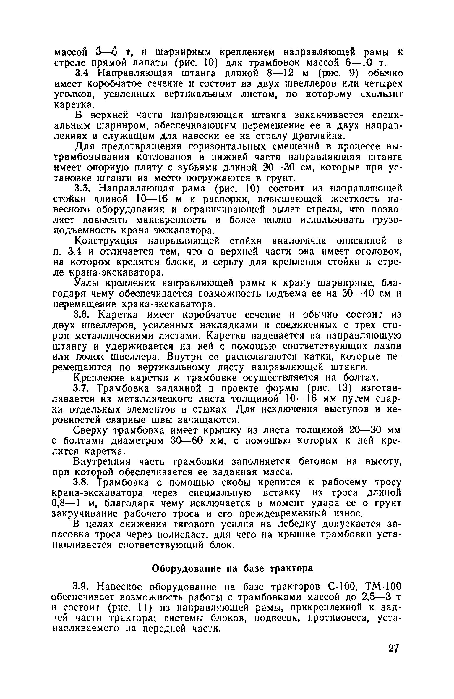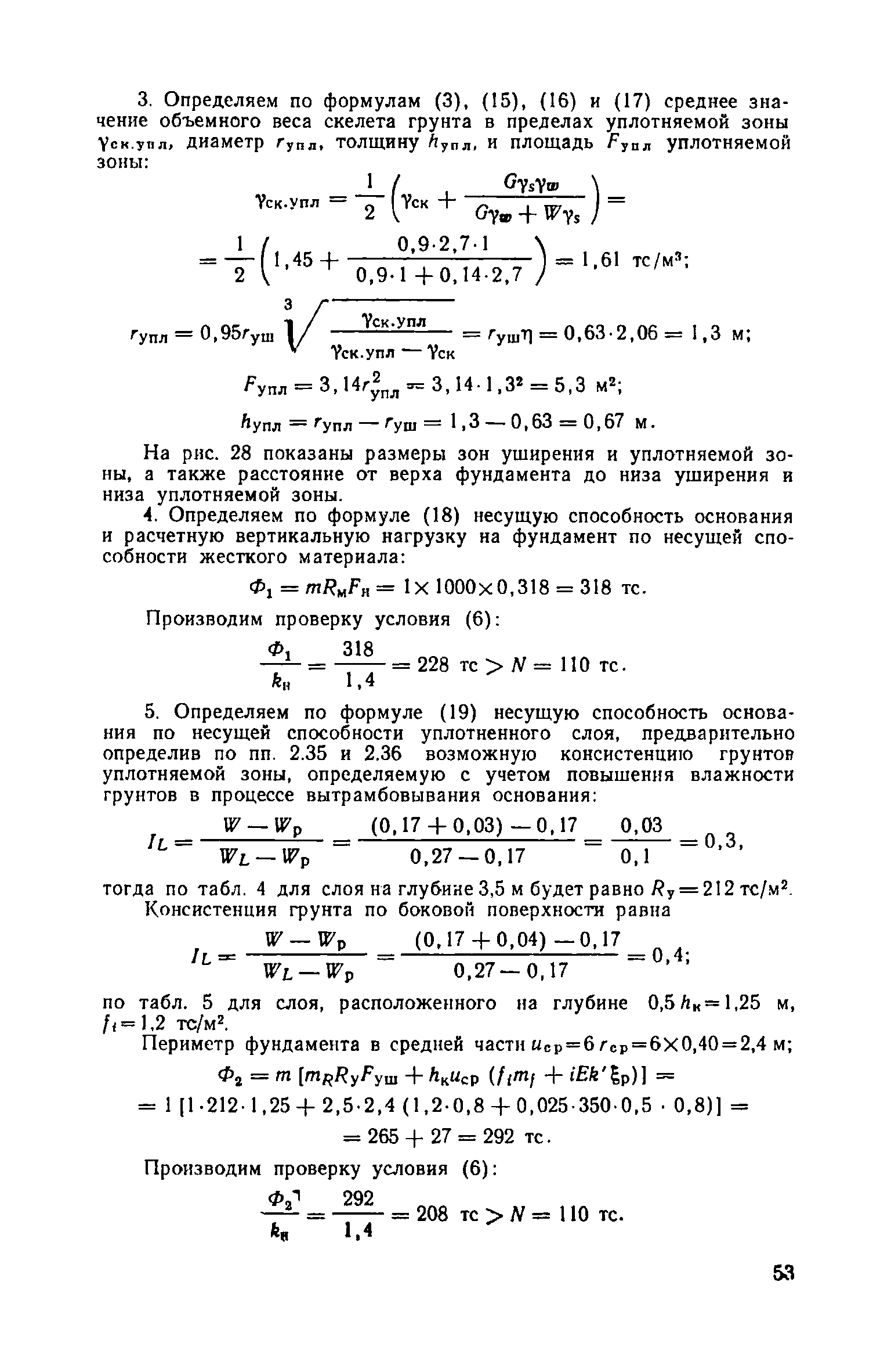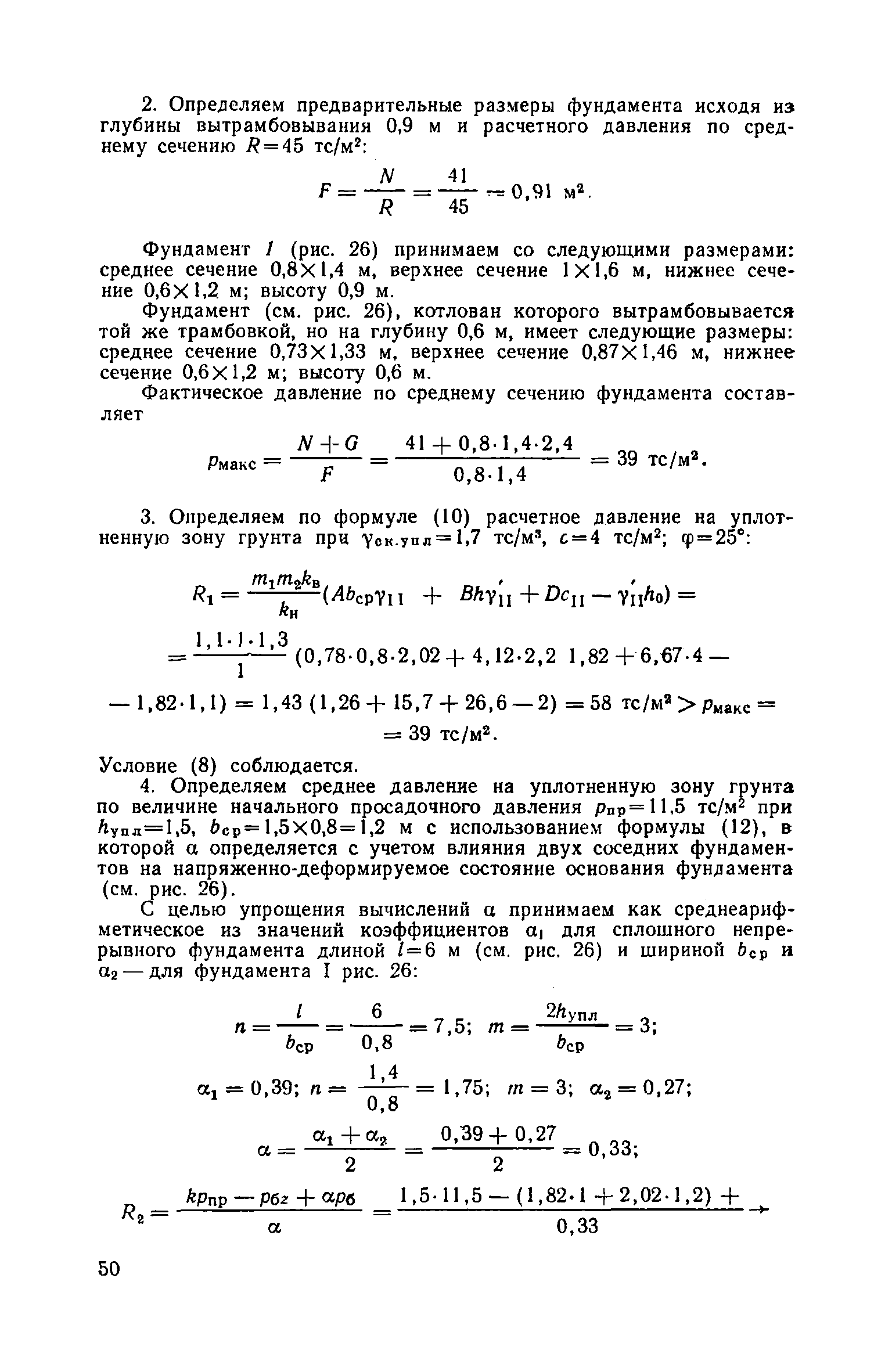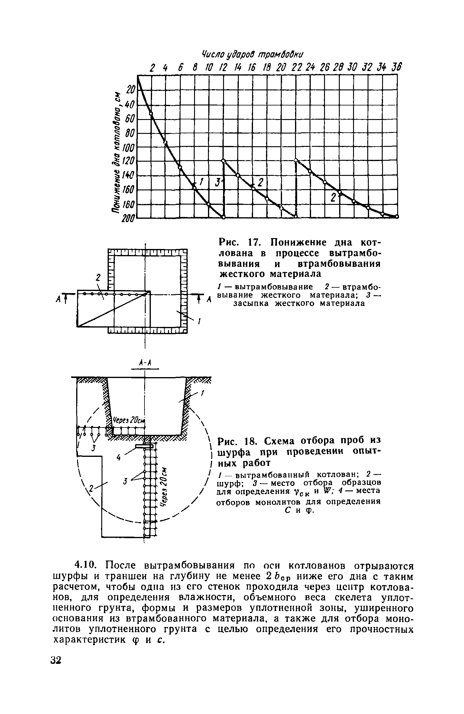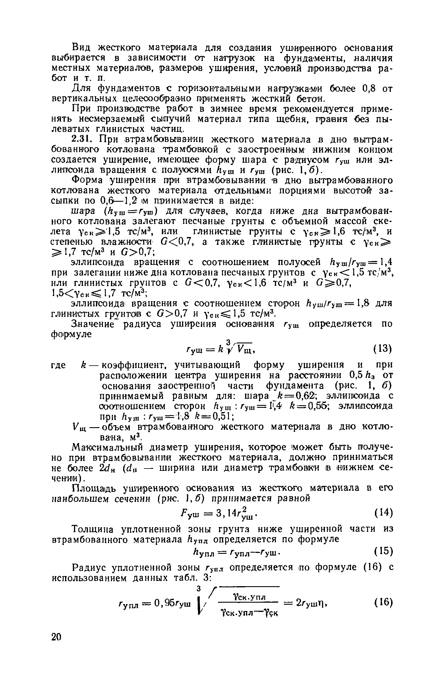 | Оглавление: | Введение 1. Общие положения 2. Проектирование фундаментов в вытрамбованных котлованах Общие положения по проектированию Общие положения по расчету Проектирование отдельно стоящих фундаментов неглубокого заложения и ленточных прерывистых фундаментов Проектирование фундаментов с уширением основания 3. Оборудование для вытрамбовывания котлованов Оборудование на базе крана-экскаватора Оборудование на базе трактора Оборудование на базе сваебойного агрегата 4. Опытные работы по вытрамбовыванию 5. Испытания опытных фундаментов 6. Производство работ Отрывка и подготовка котлована для вытрамбовывания Вытрамбовывание котлованов Втрамбовывание жесткого материала в дно котлована Устройство монолитных фундаментов Устройство сборных фундаментов Особенности производства работ в зимнее время Приложение 1. Пример проектирования отдельно стоящих фундаментов неглубокого заложения Приложение 2. Пример проектирования ленточных прерывистых фундаментов Приложение 3. Пример проектирования отдельно стоящих фундаментов с уширенным основанием Приложение 4. Журнал производства работ по вытрамбовыванию котлованов Приложение 5. Журнал производства работ по втрамбовыванию щебня в дно котлованов |