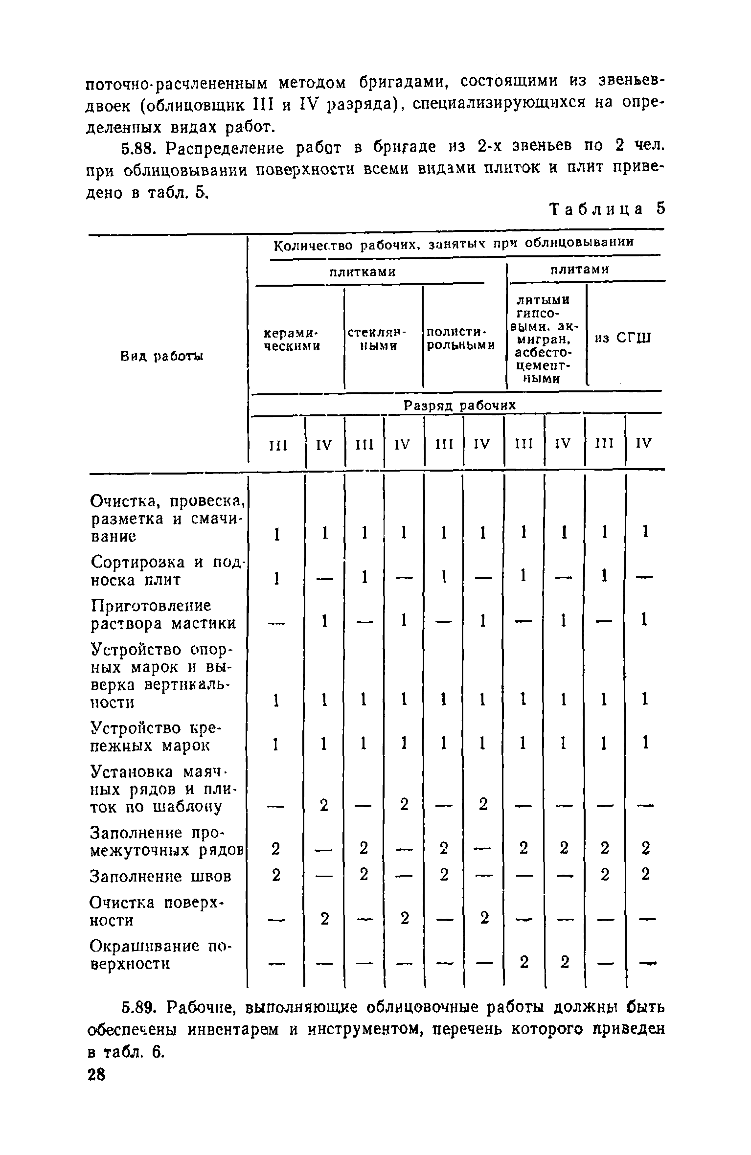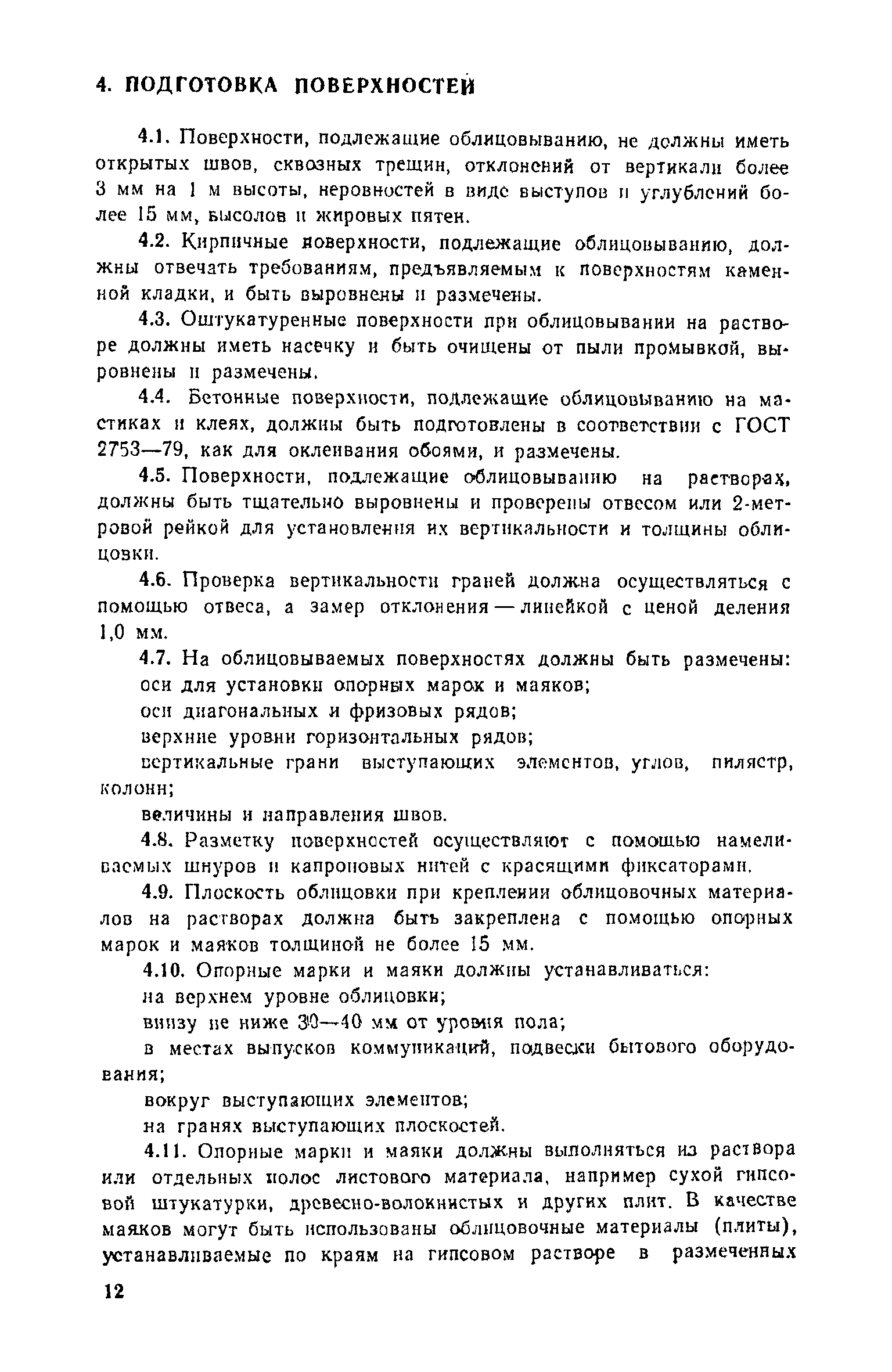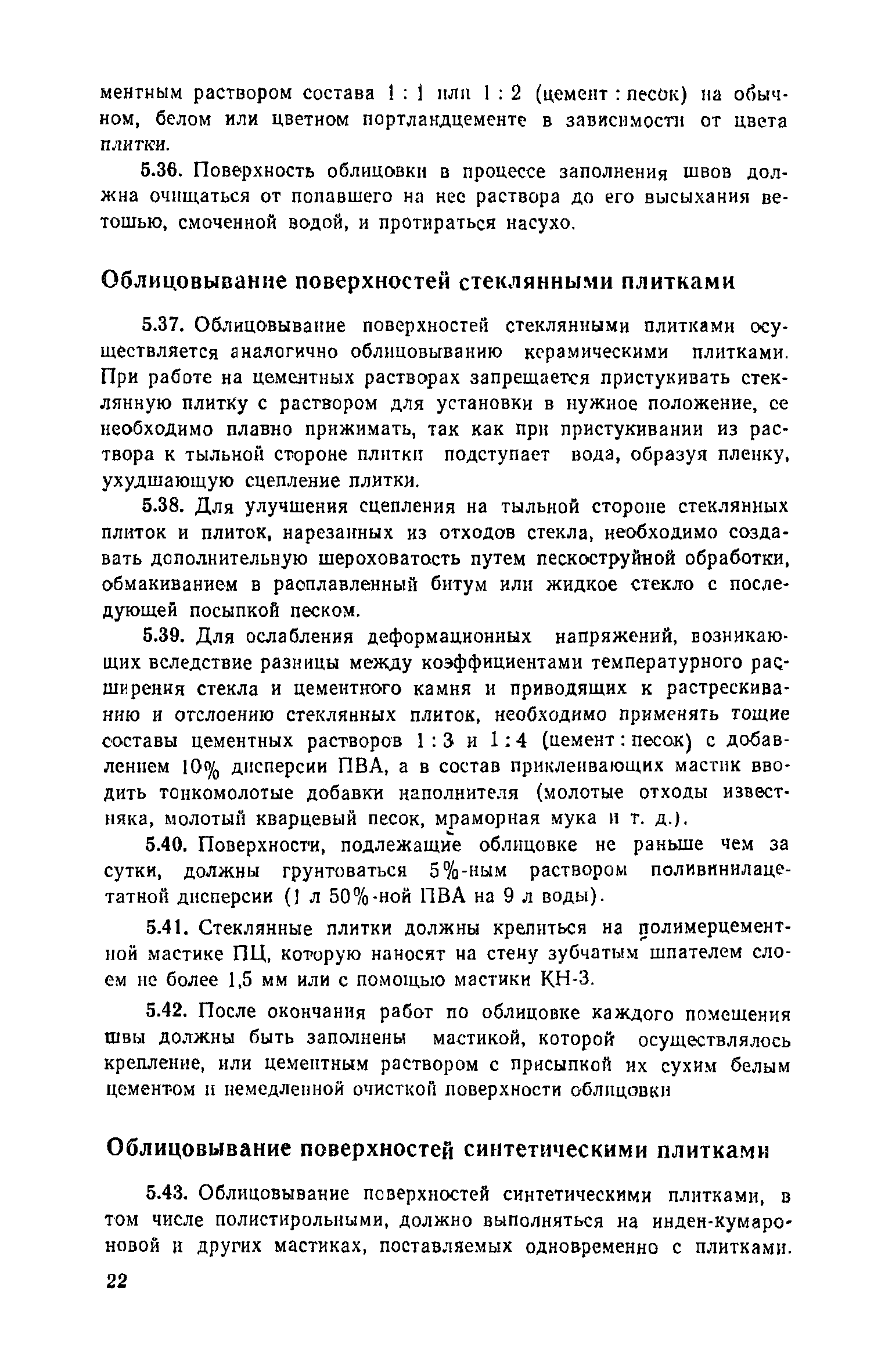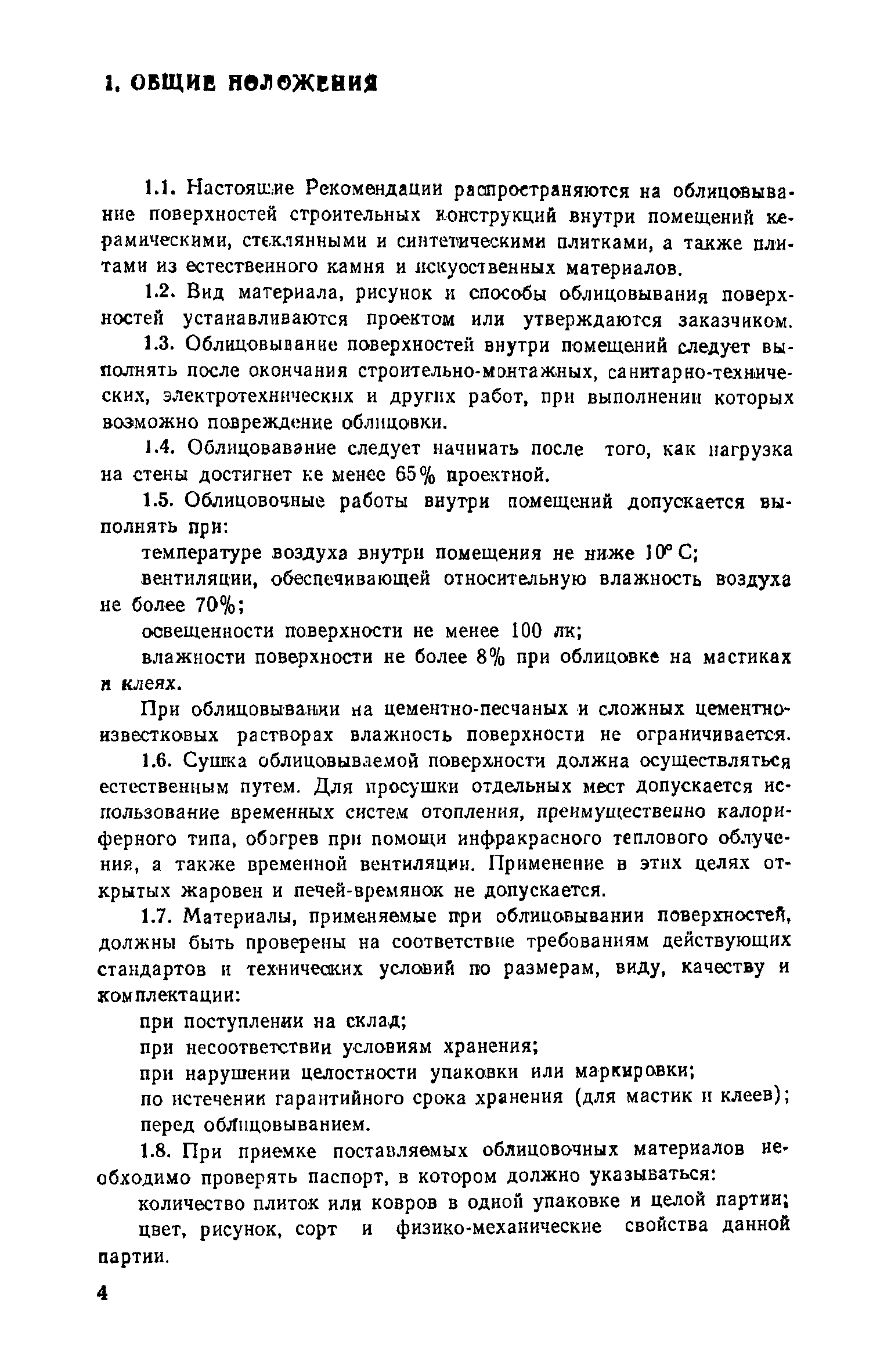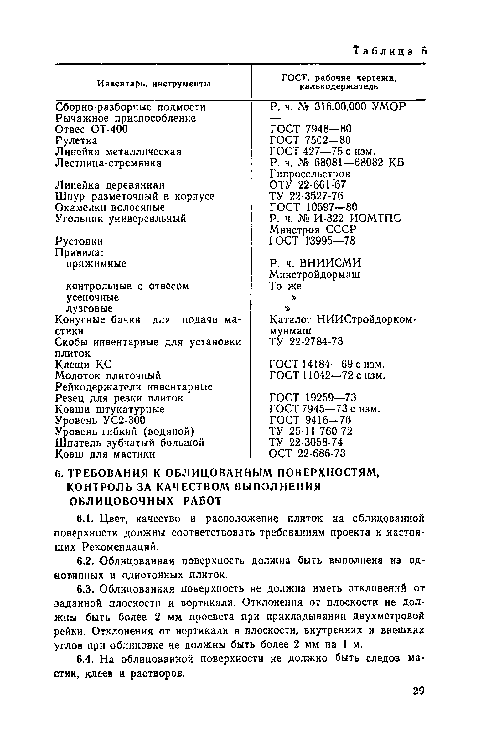 Предисловие 1. Общие положения 2. Номенклатура положения 3. Растворы, мастики и клей для облицовочных работ . Способы их приготовления 4. Подготовка поверхностей 5. Производство облицовочных работ 6. Требования к облицовочным поверхностям, контроль за качеством выполнения облицовочных работ 7. Техника безопасности при облицовочных работах