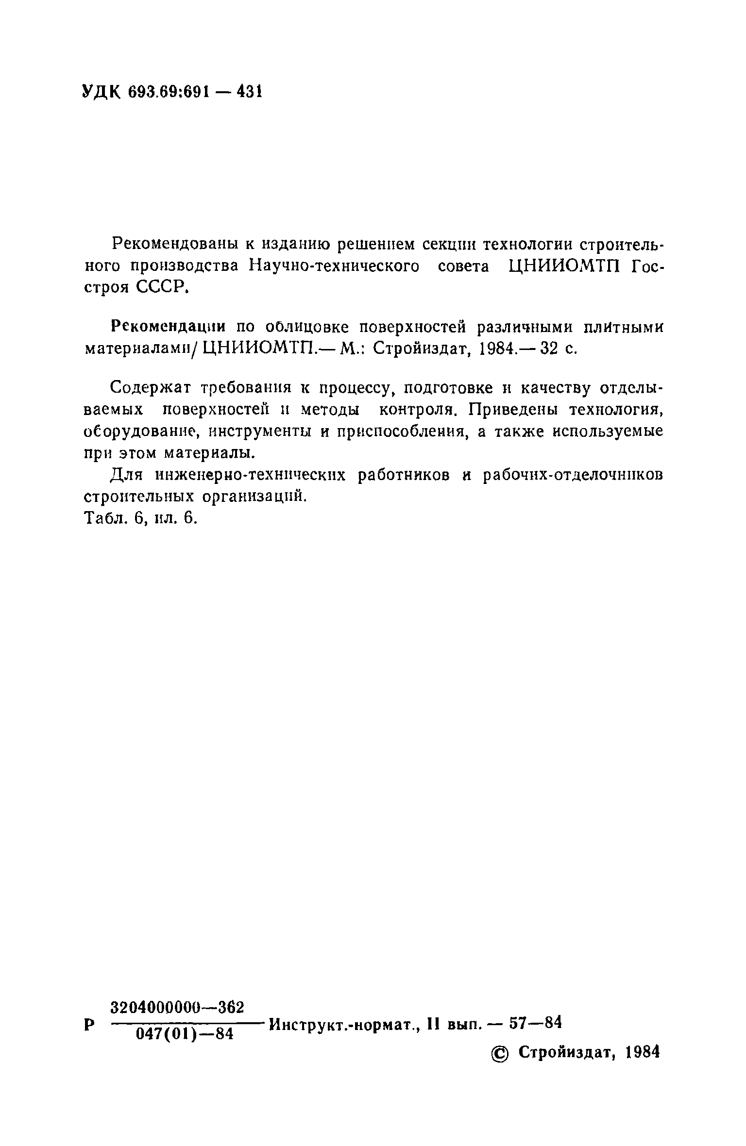Рекомендации содержат требования к процессу, подготовке и качеству отделываемых поверхностей и методы контроля. Приведены технология, оборудование, инструменты и приспособления, а также используемые при этом материалы.