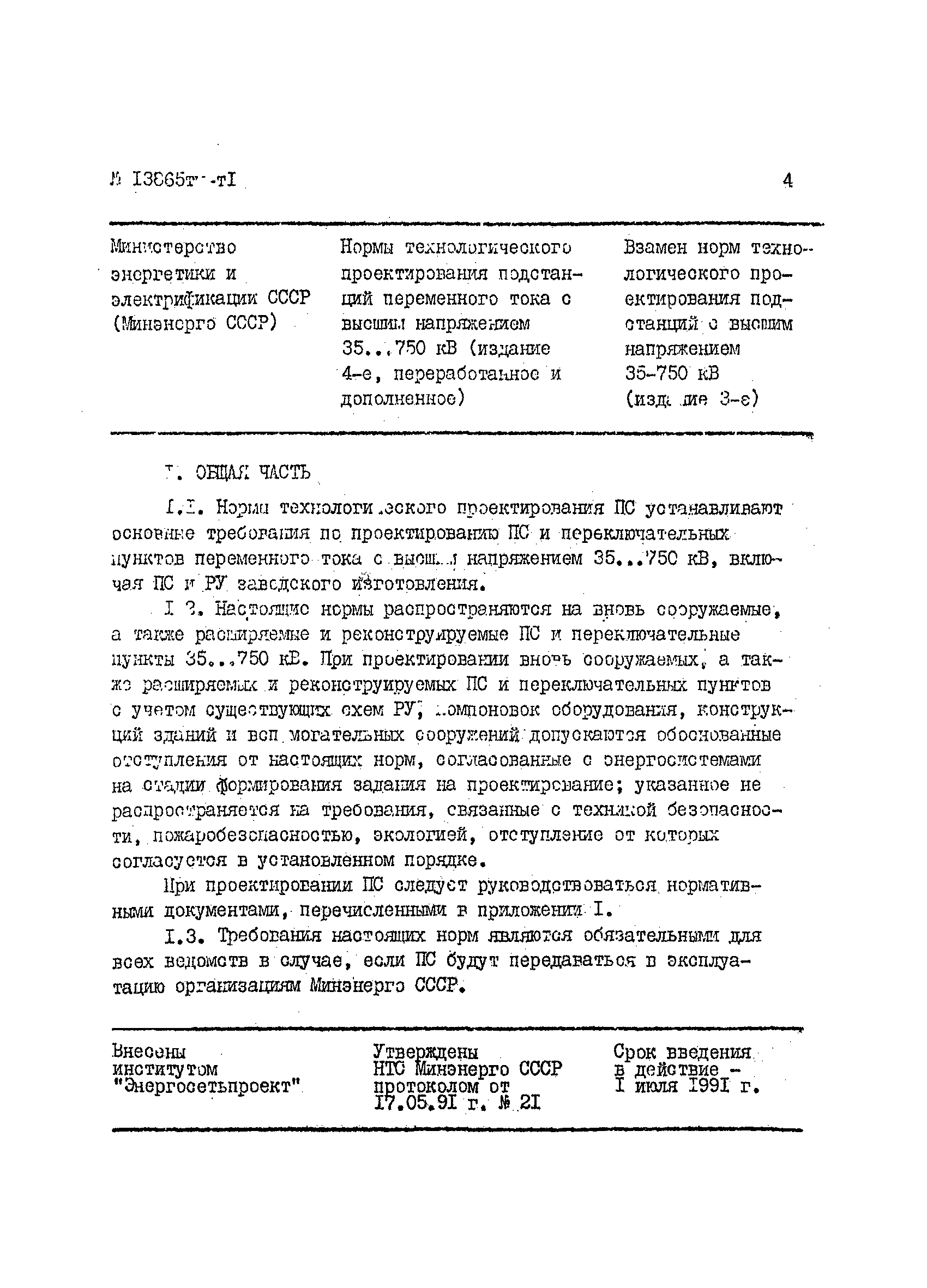 | Область применения: | Нормы распространяются на вновь сооружаемые, а также расширяемые и реконструируемые ПС и переключательные пункты 35 - 750 кВ |