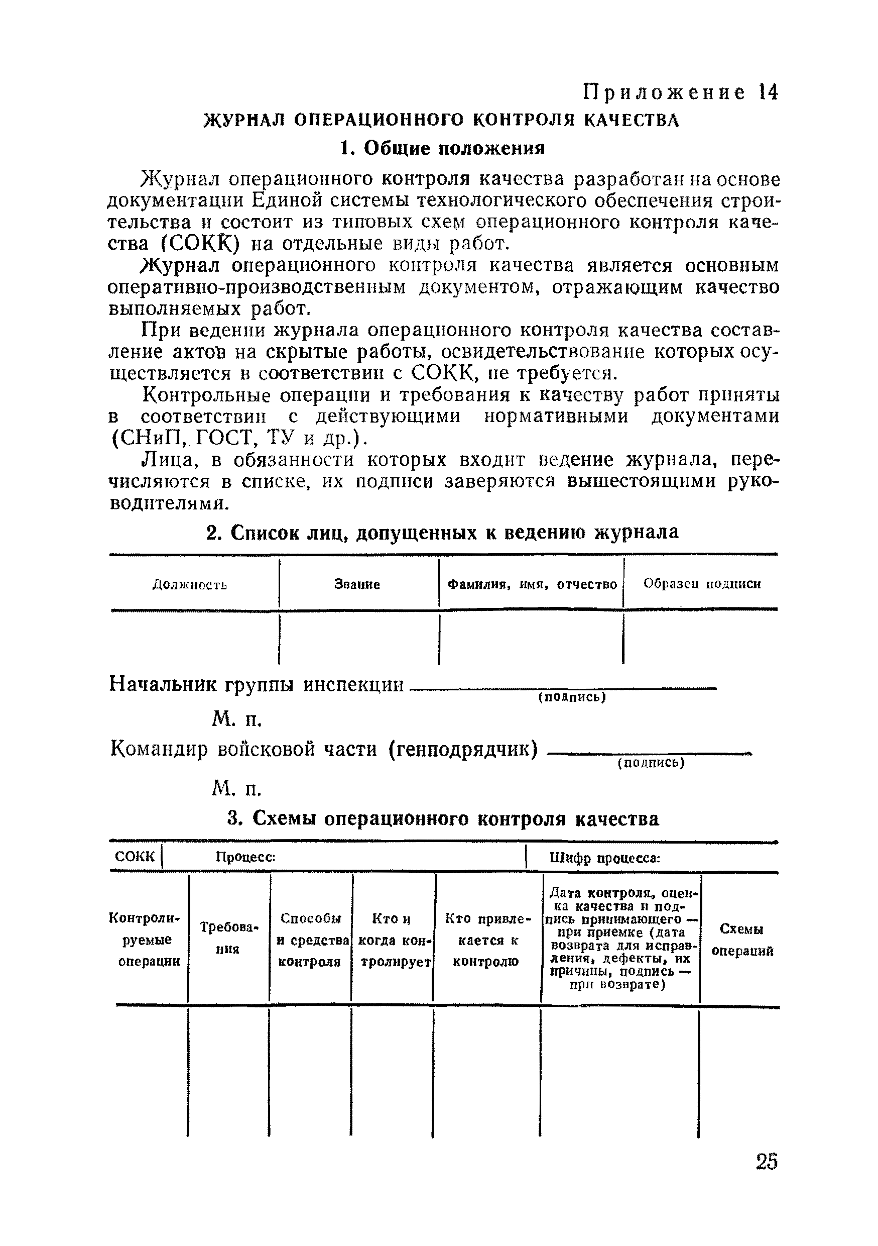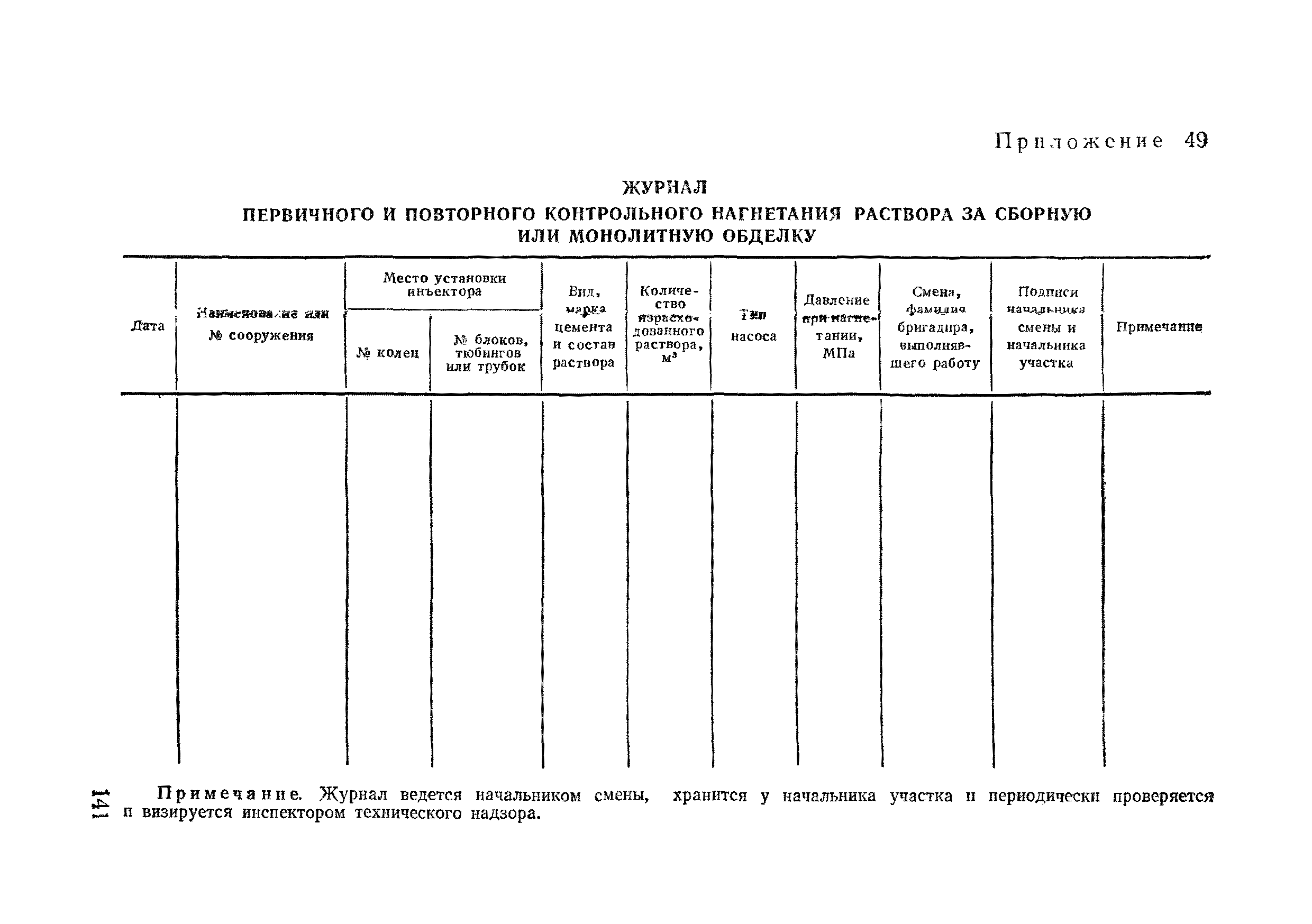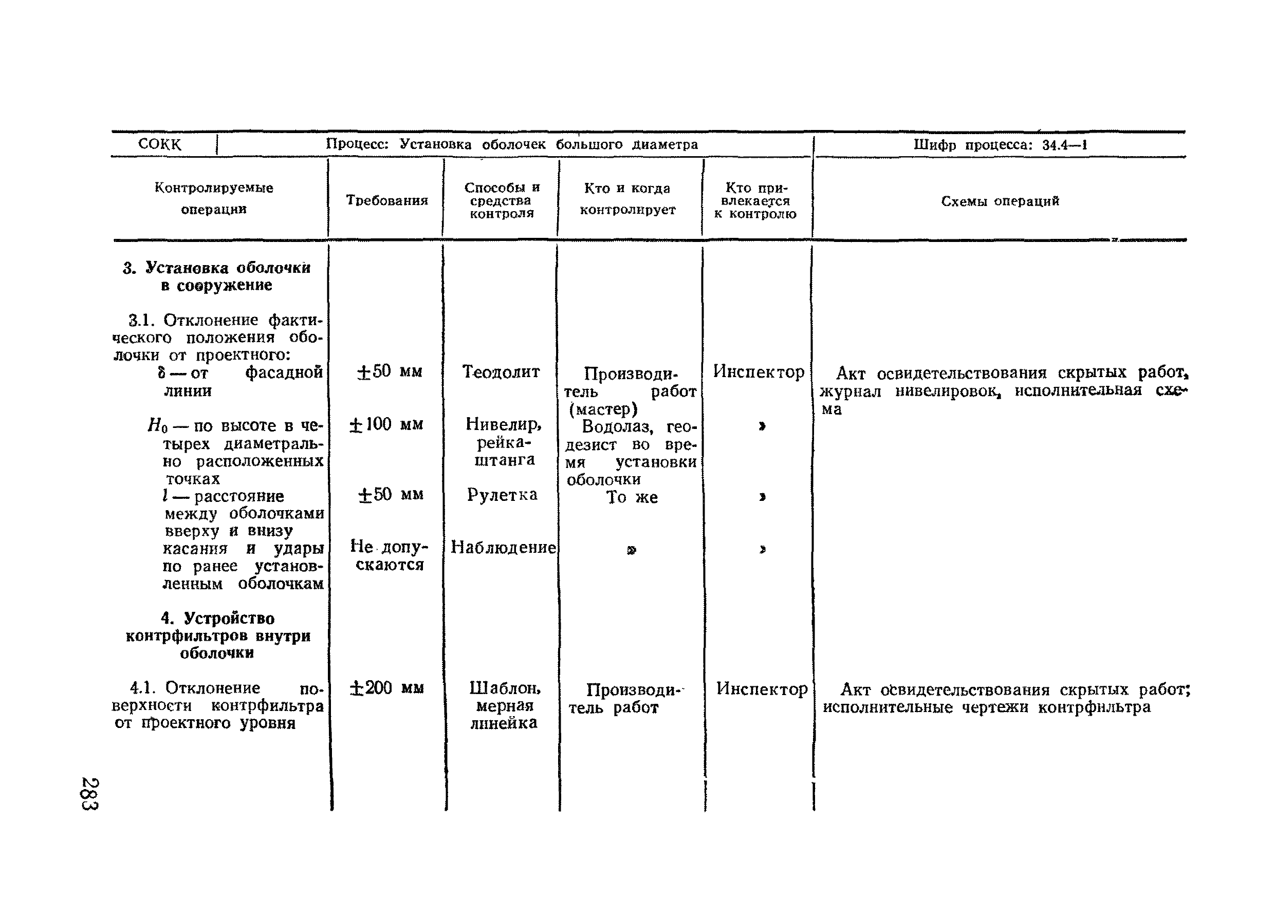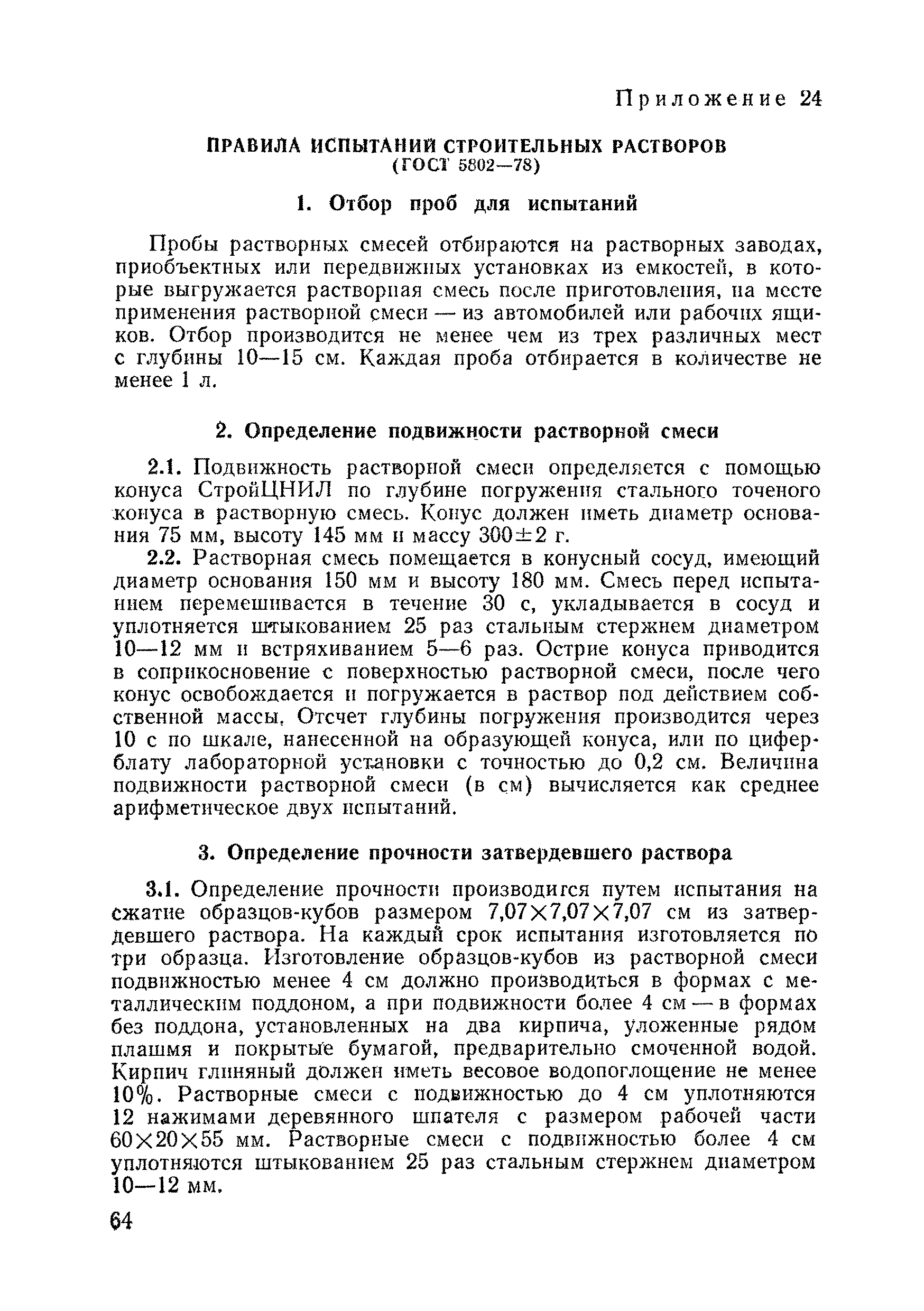 | Оглавление: | 1. Внутрипостроечный титульный список капитального строительства (форма № 1) 2. Журнал авторского надзора 3. Указания по ведению общего журнала работ 4. Акт приемки выполненных работ по законченному строительством объекту (форма № 2) 5. Акт приемки выполненных строительно-монтажных работ по законченным этапам работ (форма № 2а) 6. Акт приемки выполненных строительно- монтажных работ (форма № 2б) 7. Акт приемки выполненных строительно-монтажных работ (форма № 2в) 8. Справка о стоимости выполненных строительно-монтажных работ (форма № 3) 9. Ведомость учета оплаты строительно-монтажных работ по строительству 10. Акт освидетельствования скрытых работ 11. Акт промежуточной приемки ответственных конструкций 12. Маршрутный паспорт 13. Журнал поэтапной приемки скрытых работ и промежуточной приемки конструктивных элементов и работ 14. Журнал операционного контроля качества 15. Акт о выполнении подготовительных работ (форма № 4) 16. Справка об утверждении проектно-сметной документации (форма № 6) 17. Акт рабочей комиссии о приемке законченного строительством здания, сооружения 18. Акт приемки в эксплуатацию государственной приемочной комиссией законченного строительством (реконструкцией) объекта 19. Указания по применению основных видов минеральных вяжущих материалов 20. Правила испытаний минеральных вяжущих материалов 21. Классификация и область применения бетонов 22. Рекомендации по применению химических добавок в бетоне 23. Правила испытаний бетонов на минеральных вяжущих материалах 24. Правила испытаний строительных растворов 25. Правила испытаний сборных бетонных и железобетонных изделий 26. Правила испытаний металлов 27. Правила испытаний органических вяжущих материалов 28. Правила испытаний гидроизоляционных материалов 29. Правила испытаний асфальтобетонных смесей и асфальтобетона 30. Определение плотности грунта о6ъемновесовым методом 31. Определение плотности грунтов, содержащих гравий и щебень, методом лунки 32. Определение влажности грунта способом высушивания в термостате 33. Определение максимальной плотности и оптимальной влажности грунта методом стандартного уплотнения 34. Определение максимальной плотности и оптимальной влажности грунта при наличии в нем частиц гравия 35. Методика определения оптимального радиуса действия глубинных вибраторов и оптимального времени вибрирования при уплотнении бетонной смеси 36, Изготовление образцов кубов вибронагнетательным способом 37. Испытания герметизирующих устройств 38. Определение адгезии вулканизирующихся мастик к бетонной и металлической поверхностям адгезнометром АГ 39. Испытания воздухопроницаемости стыков 40. Испытания сооружений на герметичность 41. Технология приготовления раствора хлорного железа 42. Дефектоскоп ДИП-57 43. Основные методы контроля сварных швов 44. Методика испытания сварных швов металлической гидроизоляции на непроницаемость 45. Методы механических испытаний сварных соединений на разрыв и на загиб 46. Составы растворов и режимы нагнетания при притоке воды к обделке выработки 47. Составы растворов и режимы нагнетания при отсутствии притока воды к обделке выработки 48, Методика испытания растворов для нагнетания за обделку выработки 49, Журнал первичного и повторного контрольного нагнетания раствора за сборную или монолитную обделку 50. Журнал чек