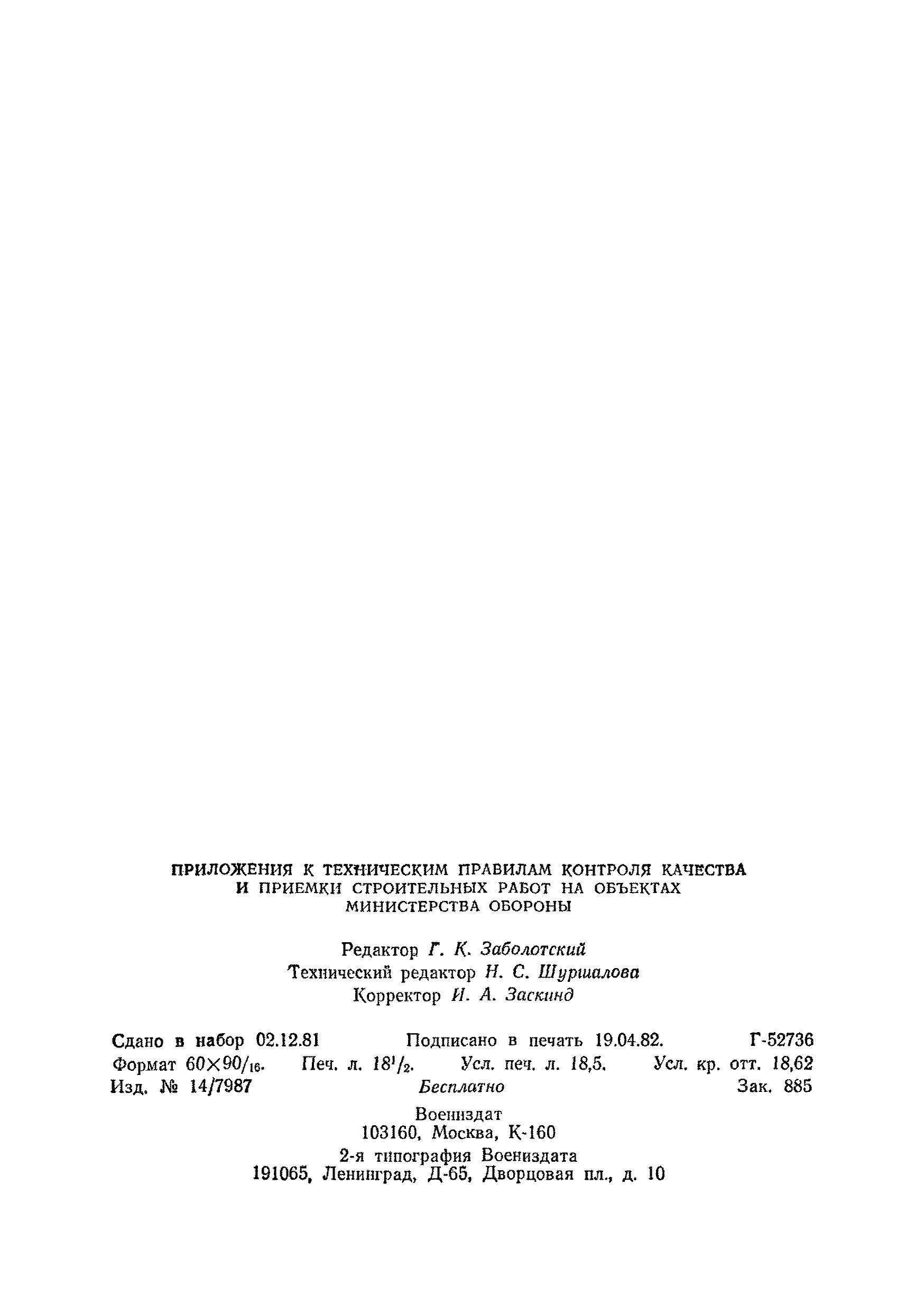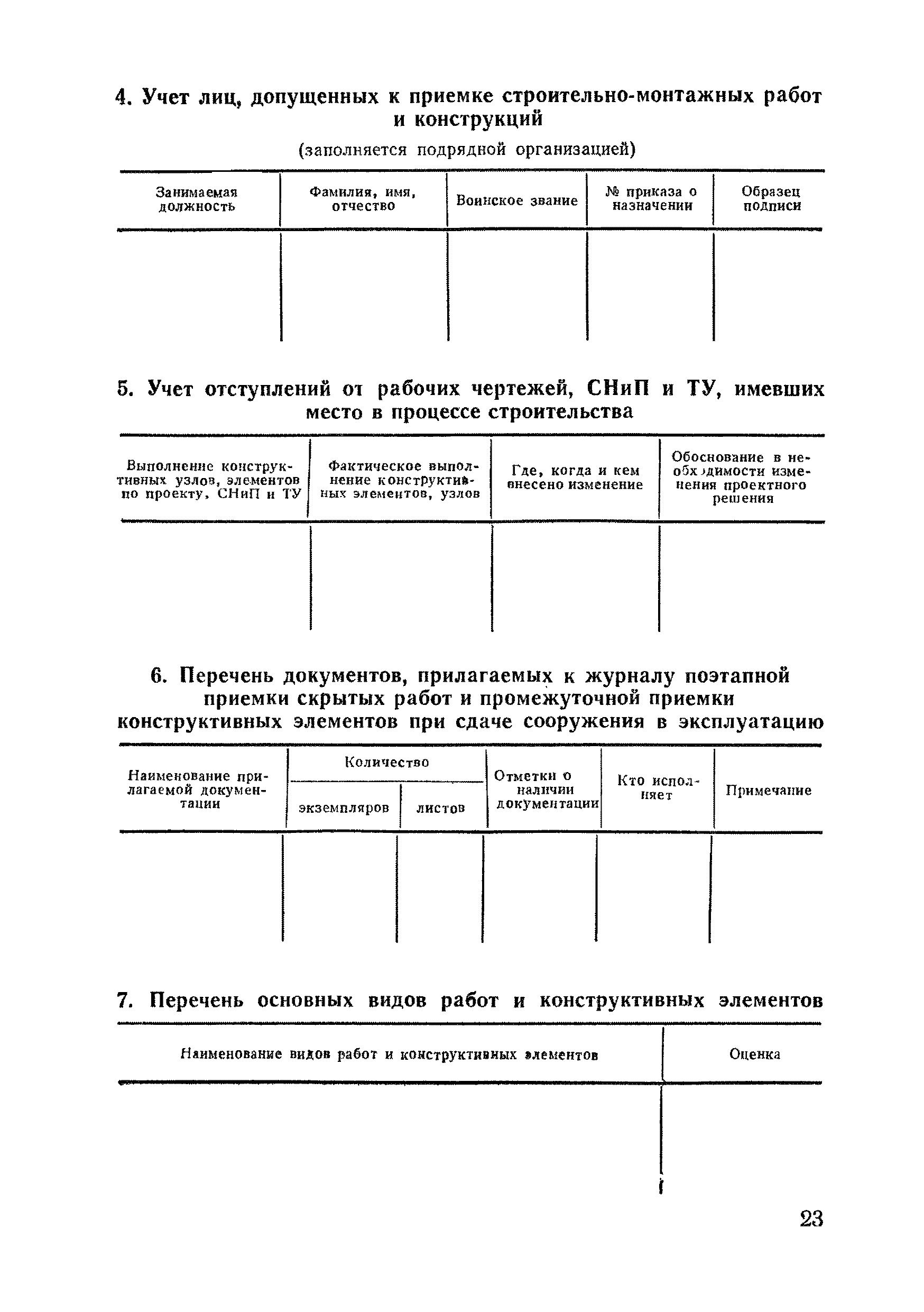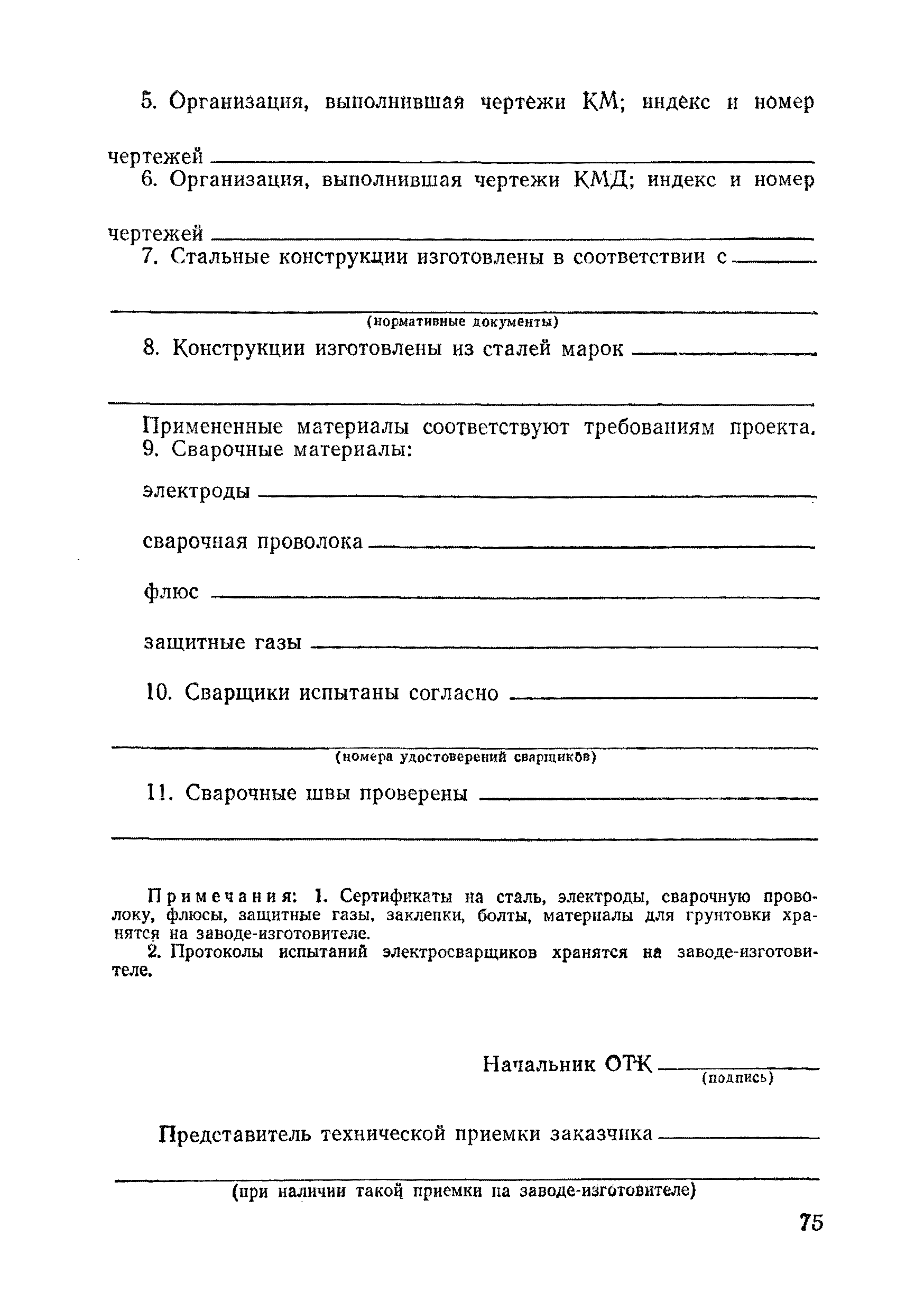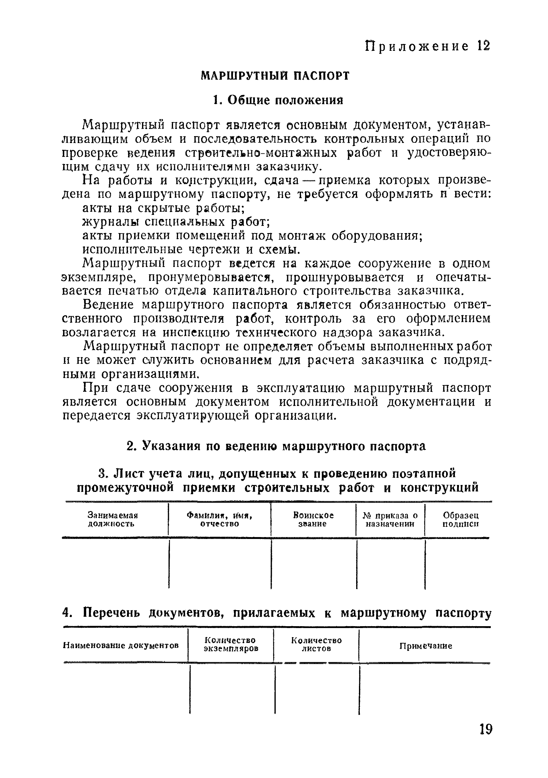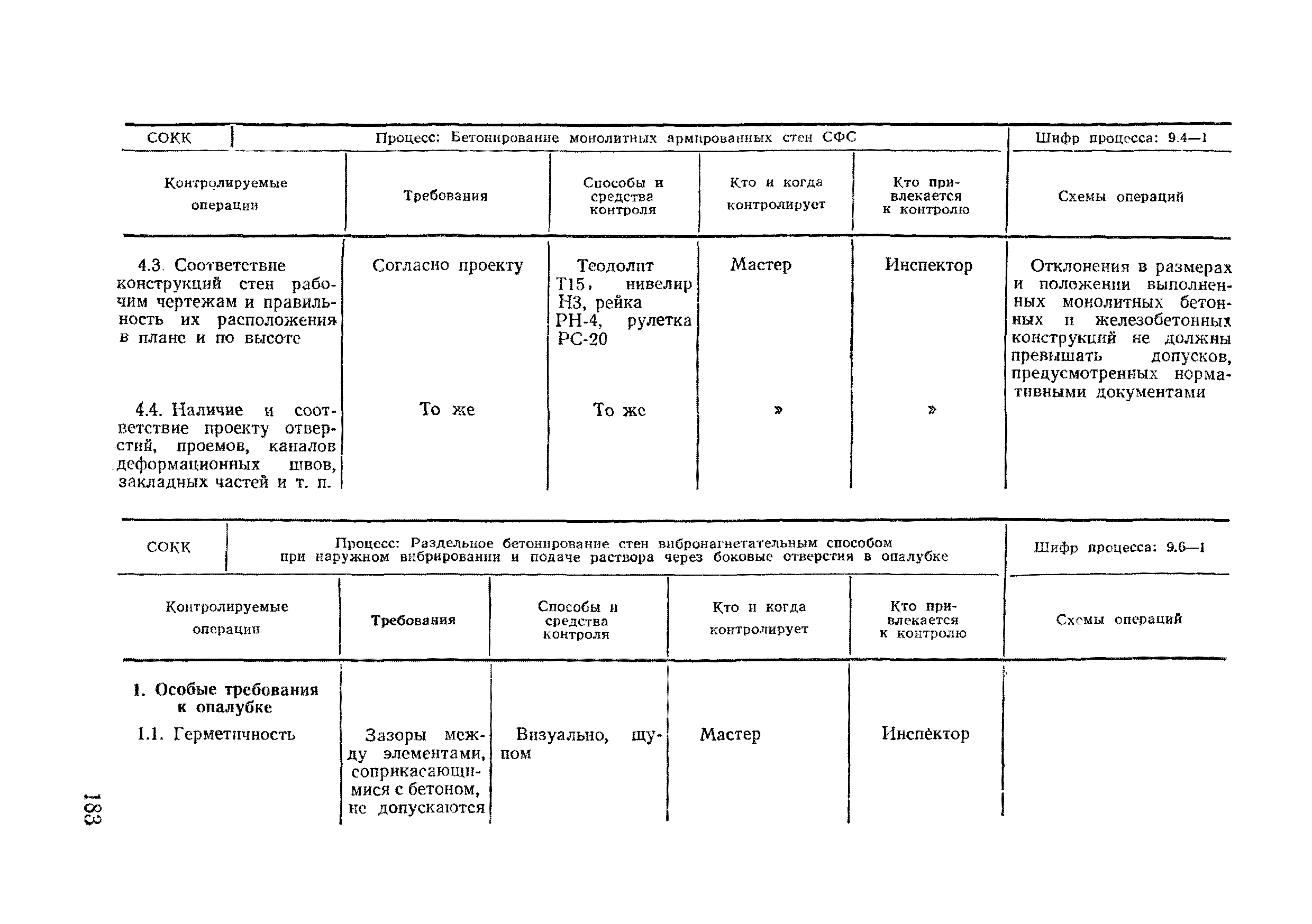 | Оглавление: | 1. Внутрипостроечный титульный список капитального строительства (форма № 1) 2. Журнал авторского надзора 3. Указания по ведению общего журнала работ 4. Акт приемки выполненных работ по законченному строительством объекту (форма № 2) 5. Акт приемки выполненных строительно-монтажных работ по законченным этапам работ (форма № 2а) 6. Акт приемки выполненных строительно- монтажных работ (форма № 2б) 7. Акт приемки выполненных строительно-монтажных работ (форма № 2в) 8. Справка о стоимости выполненных строительно-монтажных работ (форма № 3) 9. Ведомость учета оплаты строительно-монтажных работ по строительству 10. Акт освидетельствования скрытых работ 11. Акт промежуточной приемки ответственных конструкций 12. Маршрутный паспорт 13. Журнал поэтапной приемки скрытых работ и промежуточной приемки конструктивных элементов и работ 14. Журнал операционного контроля качества 15. Акт о выполнении подготовительных работ (форма № 4) 16. Справка об утверждении проектно-сметной документации (форма № 6) 17. Акт рабочей комиссии о приемке законченного строительством здания, сооружения 18. Акт приемки в эксплуатацию государственной приемочной комиссией законченного строительством (реконструкцией) объекта 19. Указания по применению основных видов минеральных вяжущих материалов 20. Правила испытаний минеральных вяжущих материалов 21. Классификация и область применения бетонов 22. Рекомендации по применению химических добавок в бетоне 23. Правила испытаний бетонов на минеральных вяжущих материалах 24. Правила испытаний строительных растворов 25. Правила испытаний сборных бетонных и железобетонных изделий 26. Правила испытаний металлов 27. Правила испытаний органических вяжущих материалов 28. Правила испытаний гидроизоляционных материалов 29. Правила испытаний асфальтобетонных смесей и асфальтобетона 30. Определение плотности грунта о6ъемновесовым методом 31. Определение плотности грунтов, содержащих гравий и щебень, методом лунки 32. Определение влажности грунта способом высушивания в термостате 33. Определение максимальной плотности и оптимальной влажности грунта методом стандартного уплотнения 34. Определение максимальной плотности и оптимальной влажности грунта при наличии в нем частиц гравия 35. Методика определения оптимального радиуса действия глубинных вибраторов и оптимального времени вибрирования при уплотнении бетонной смеси 36, Изготовление образцов кубов вибронагнетательным способом 37. Испытания герметизирующих устройств 38. Определение адгезии вулканизирующихся мастик к бетонной и металлической поверхностям адгезнометром АГ 39. Испытания воздухопроницаемости стыков 40. Испытания сооружений на герметичность 41. Технология приготовления раствора хлорного железа 42. Дефектоскоп ДИП-57 43. Основные методы контроля сварных швов 44. Методика испытания сварных швов металлической гидроизоляции на непроницаемость 45. Методы механических испытаний сварных соединений на разрыв и на загиб 46. Составы растворов и режимы нагнетания при притоке воды к обделке выработки 47. Составы растворов и режимы нагнетания при отсутствии притока воды к обделке выработки 48, Методика испытания растворов для нагнетания за обделку выработки 49, Журнал первичного и повторного контрольного нагнетания раствора за сборную или монолитную обделку 50. Журнал чек
