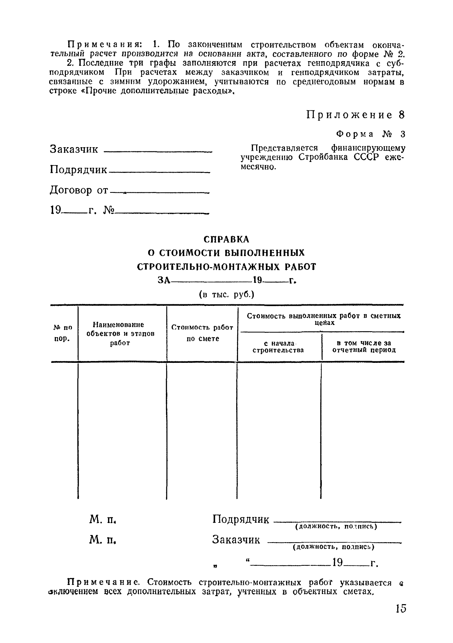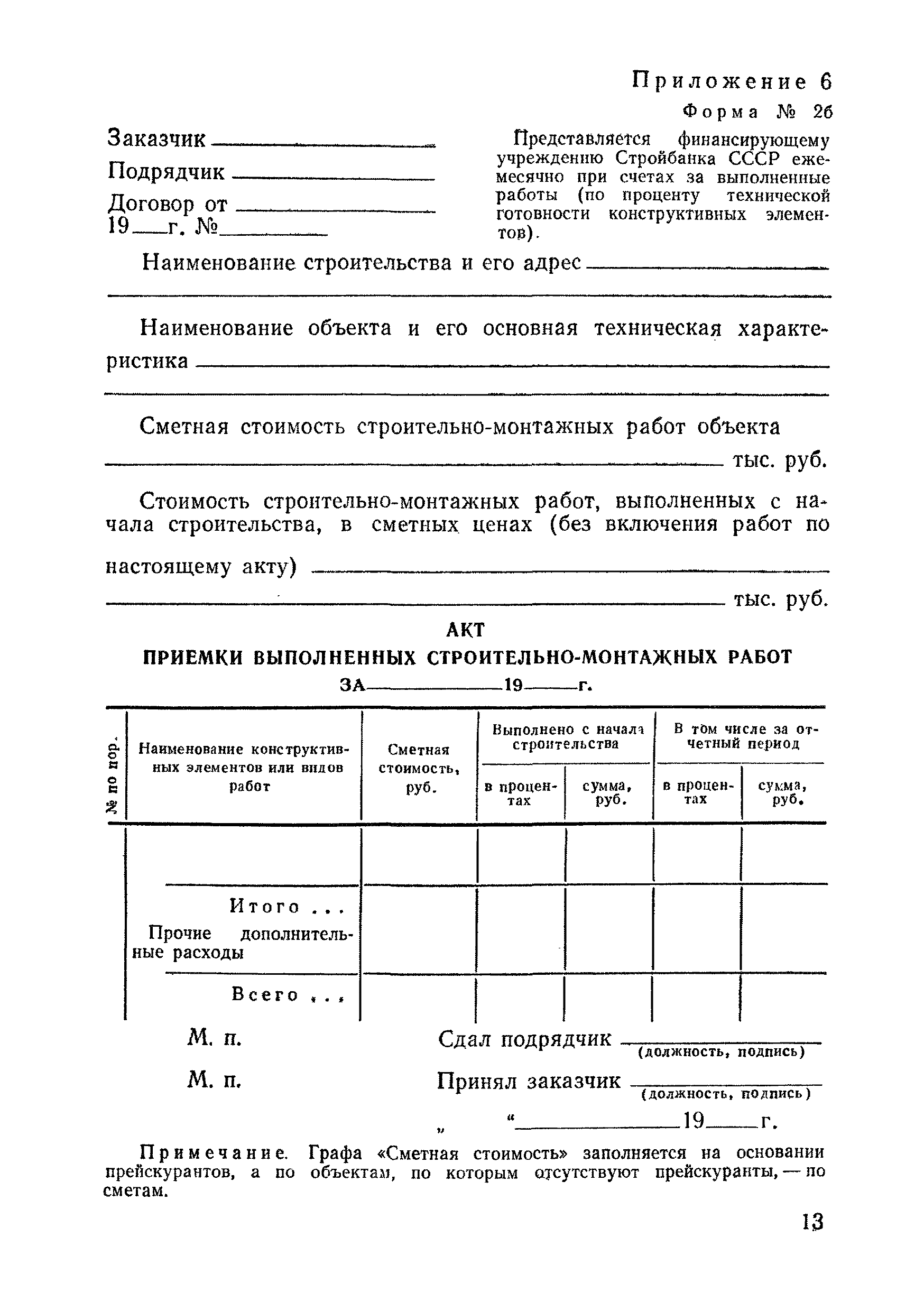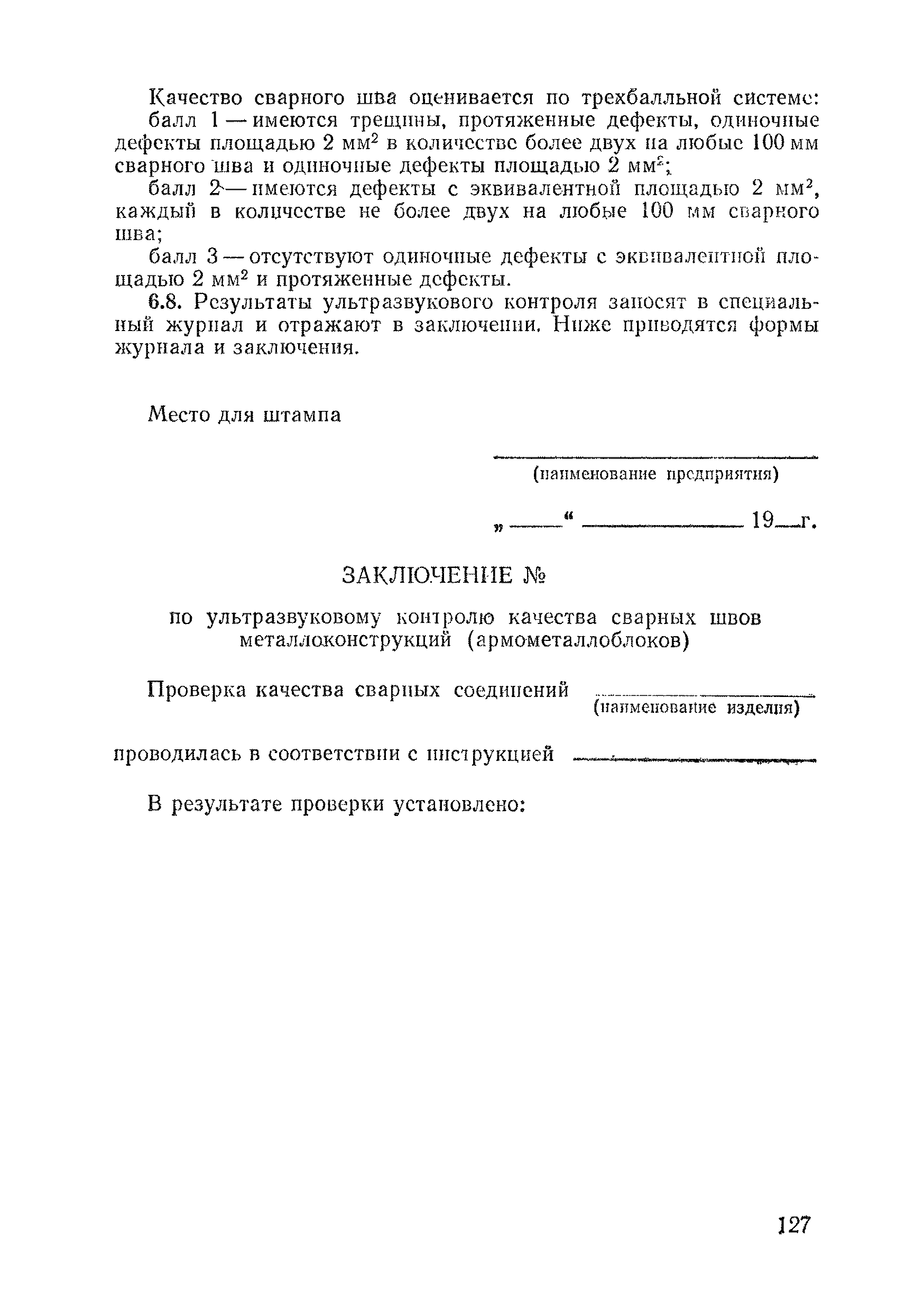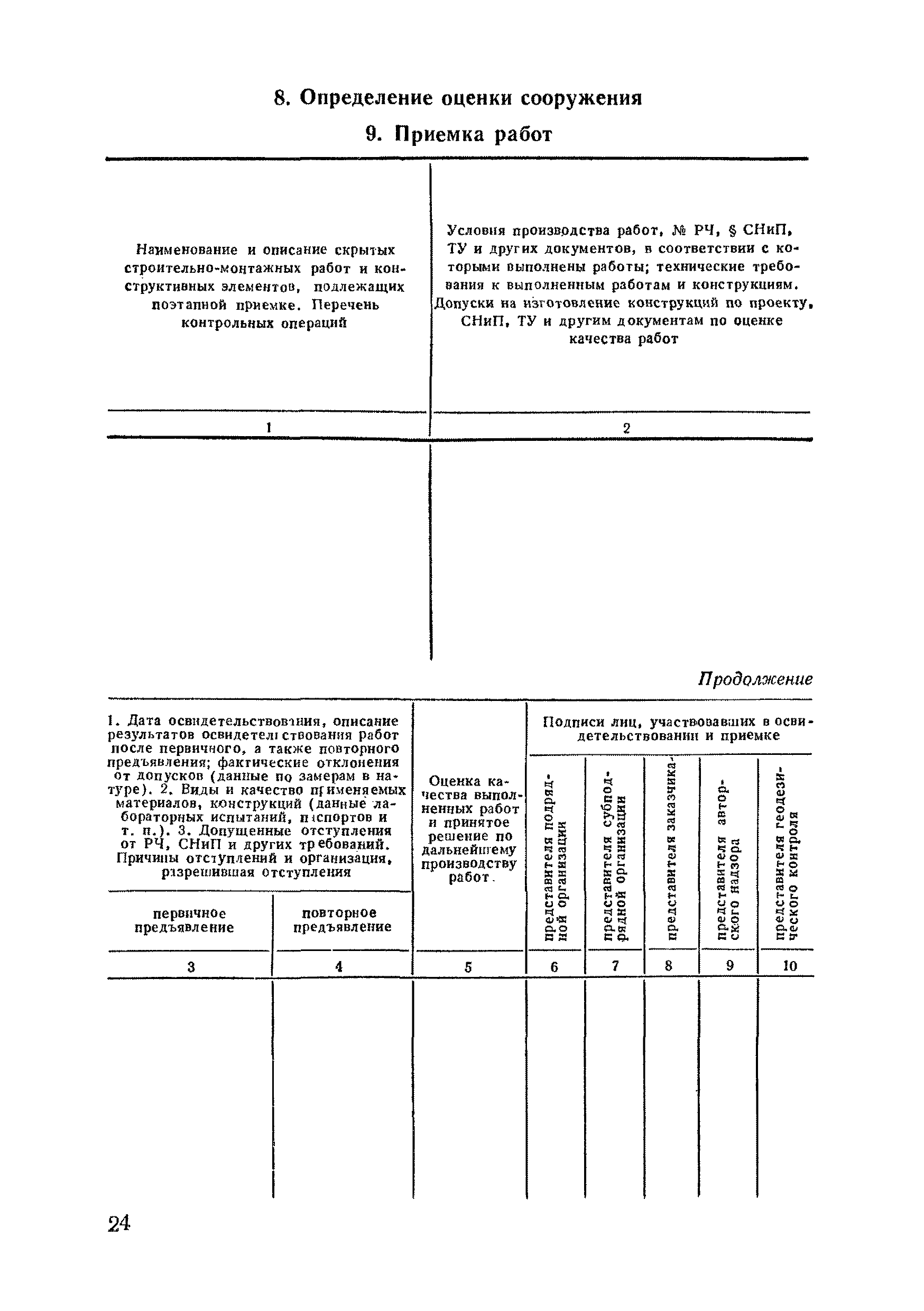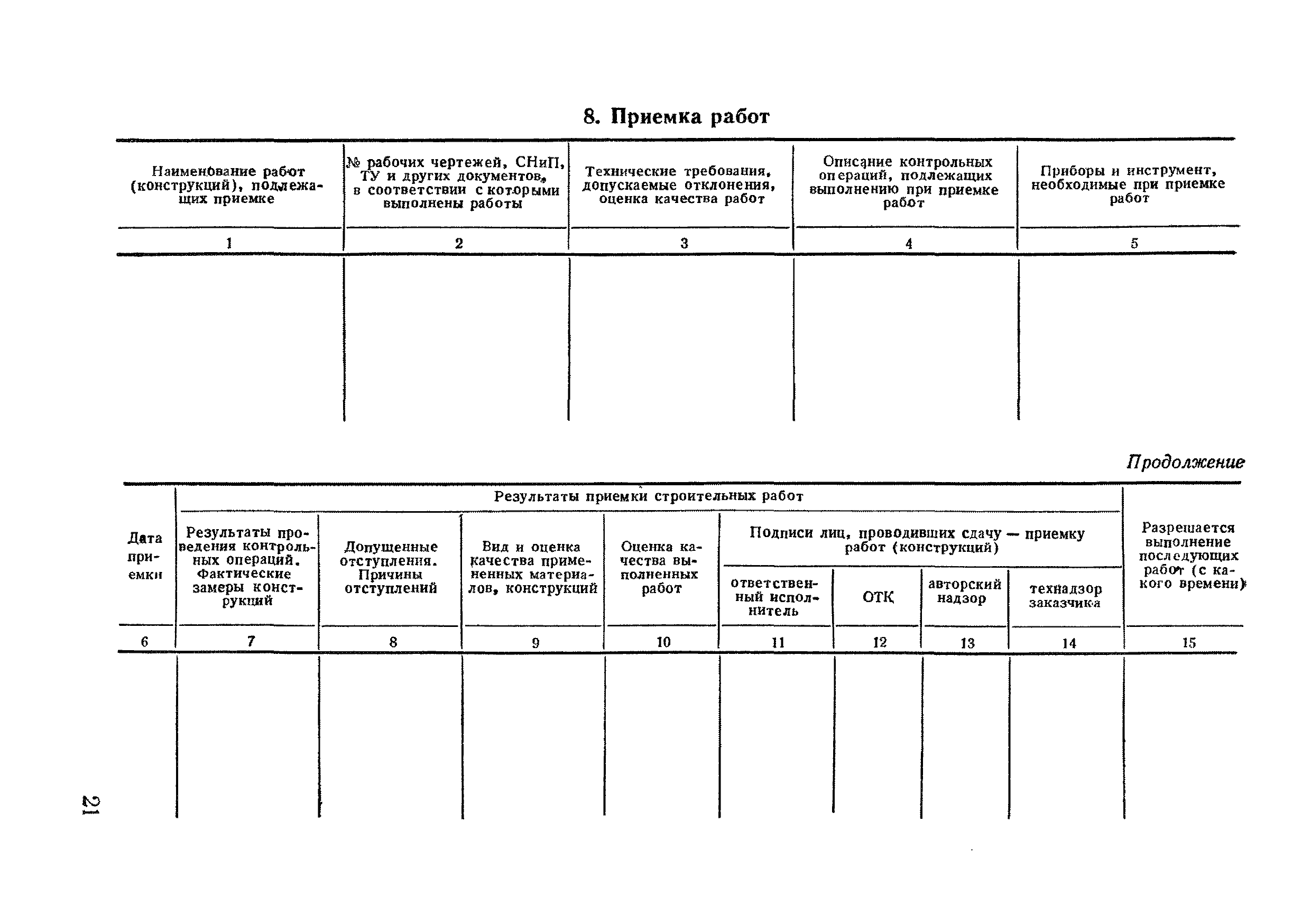 | Оглавление: | 1. Внутрипостроечный титульный список капитального строительства (форма № 1) 2. Журнал авторского надзора 3. Указания по ведению общего журнала работ 4. Акт приемки выполненных работ по законченному строительством объекту (форма № 2) 5. Акт приемки выполненных строительно-монтажных работ по законченным этапам работ (форма № 2а) 6. Акт приемки выполненных строительно- монтажных работ (форма № 2б) 7. Акт приемки выполненных строительно-монтажных работ (форма № 2в) 8. Справка о стоимости выполненных строительно-монтажных работ (форма № 3) 9. Ведомость учета оплаты строительно-монтажных работ по строительству 10. Акт освидетельствования скрытых работ 11. Акт промежуточной приемки ответственных конструкций 12. Маршрутный паспорт 13. Журнал поэтапной приемки скрытых работ и промежуточной приемки конструктивных элементов и работ 14. Журнал операционного контроля качества 15. Акт о выполнении подготовительных работ (форма № 4) 16. Справка об утверждении проектно-сметной документации (форма № 6) 17. Акт рабочей комиссии о приемке законченного строительством здания, сооружения 18. Акт приемки в эксплуатацию государственной приемочной комиссией законченного строительством (реконструкцией) объекта 19. Указания по применению основных видов минеральных вяжущих материалов 20. Правила испытаний минеральных вяжущих материалов 21. Классификация и область применения бетонов 22. Рекомендации по применению химических добавок в бетоне 23. Правила испытаний бетонов на минеральных вяжущих материалах 24. Правила испытаний строительных растворов 25. Правила испытаний сборных бетонных и железобетонных изделий 26. Правила испытаний металлов 27. Правила испытаний органических вяжущих материалов 28. Правила испытаний гидроизоляционных материалов 29. Правила испытаний асфальтобетонных смесей и асфальтобетона 30. Определение плотности грунта о6ъемновесовым методом 31. Определение плотности грунтов, содержащих гравий и щебень, методом лунки 32. Определение влажности грунта способом высушивания в термостате 33. Определение максимальной плотности и оптимальной влажности грунта методом стандартного уплотнения 34. Определение максимальной плотности и оптимальной влажности грунта при наличии в нем частиц гравия 35. Методика определения оптимального радиуса действия глубинных вибраторов и оптимального времени вибрирования при уплотнении бетонной смеси 36, Изготовление образцов кубов вибронагнетательным способом 37. Испытания герметизирующих устройств 38. Определение адгезии вулканизирующихся мастик к бетонной и металлической поверхностям адгезнометром АГ 39. Испытания воздухопроницаемости стыков 40. Испытания сооружений на герметичность 41. Технология приготовления раствора хлорного железа 42. Дефектоскоп ДИП-57 43. Основные методы контроля сварных швов 44. Методика испытания сварных швов металлической гидроизоляции на непроницаемость 45. Методы механических испытаний сварных соединений на разрыв и на загиб 46. Составы растворов и режимы нагнетания при притоке воды к обделке выработки 47. Составы растворов и режимы нагнетания при отсутствии притока воды к обделке выработки 48, Методика испытания растворов для нагнетания за обделку выработки 49, Журнал первичного и повторного контрольного нагнетания раствора за сборную или монолитную обделку 50. Журнал чек