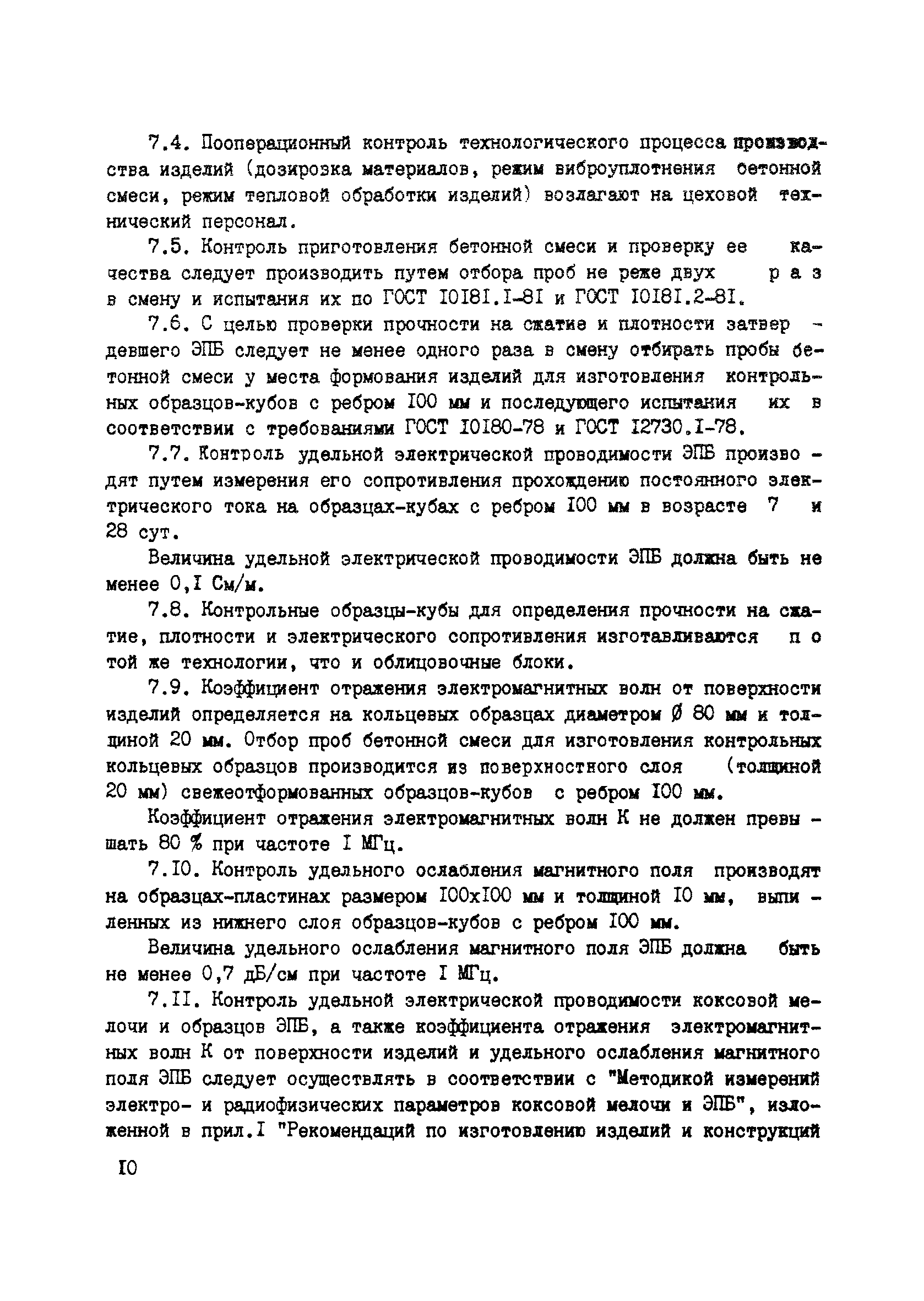 | Область применения: | Рекомендации содержат основные положения по технологии изготовления изделий из электропроводящих бетонов на цементном и лакощелочном вяжущем с комплексными радиотехническими свойствами. Изделия из электропроводящего бетона применяются при строительстве радиоэкранированных помещений различного назначения. Применение изделий при строительстве указанных помещений обеспечивает соблюдение радиотехнических требований к ним без использования стального листа в качестве экрана. |