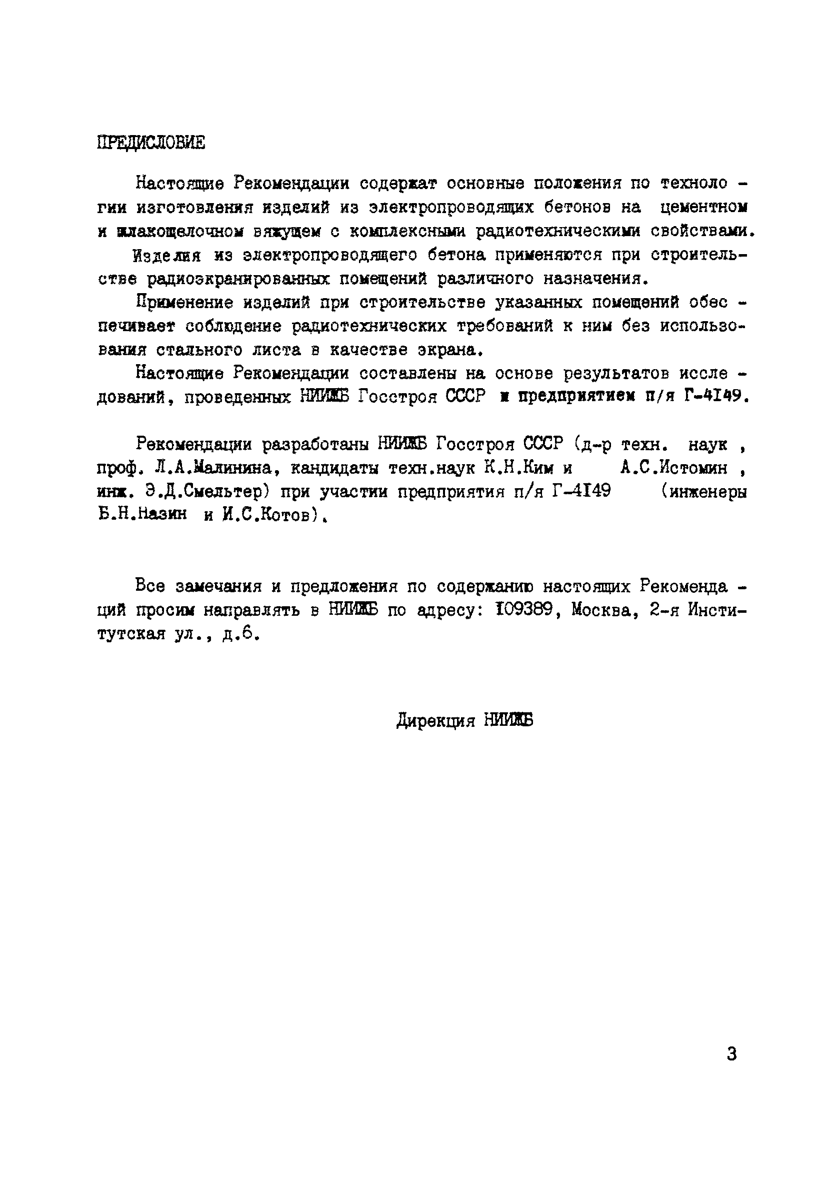 | Название рус.: | Рекомендации по технологии изготовления изделий из электропроводящих бетонов с комплексными радиотехническими свойствами |