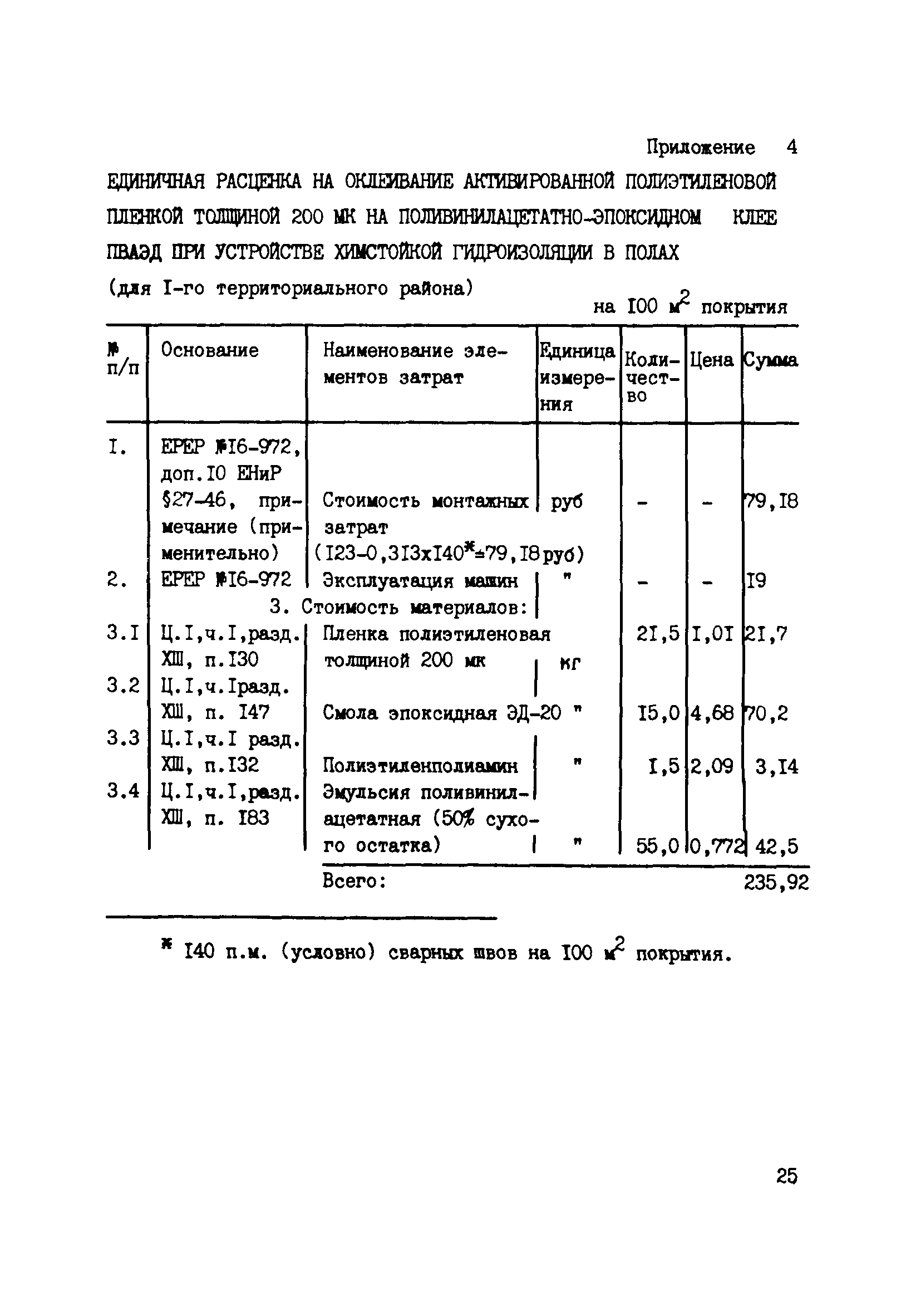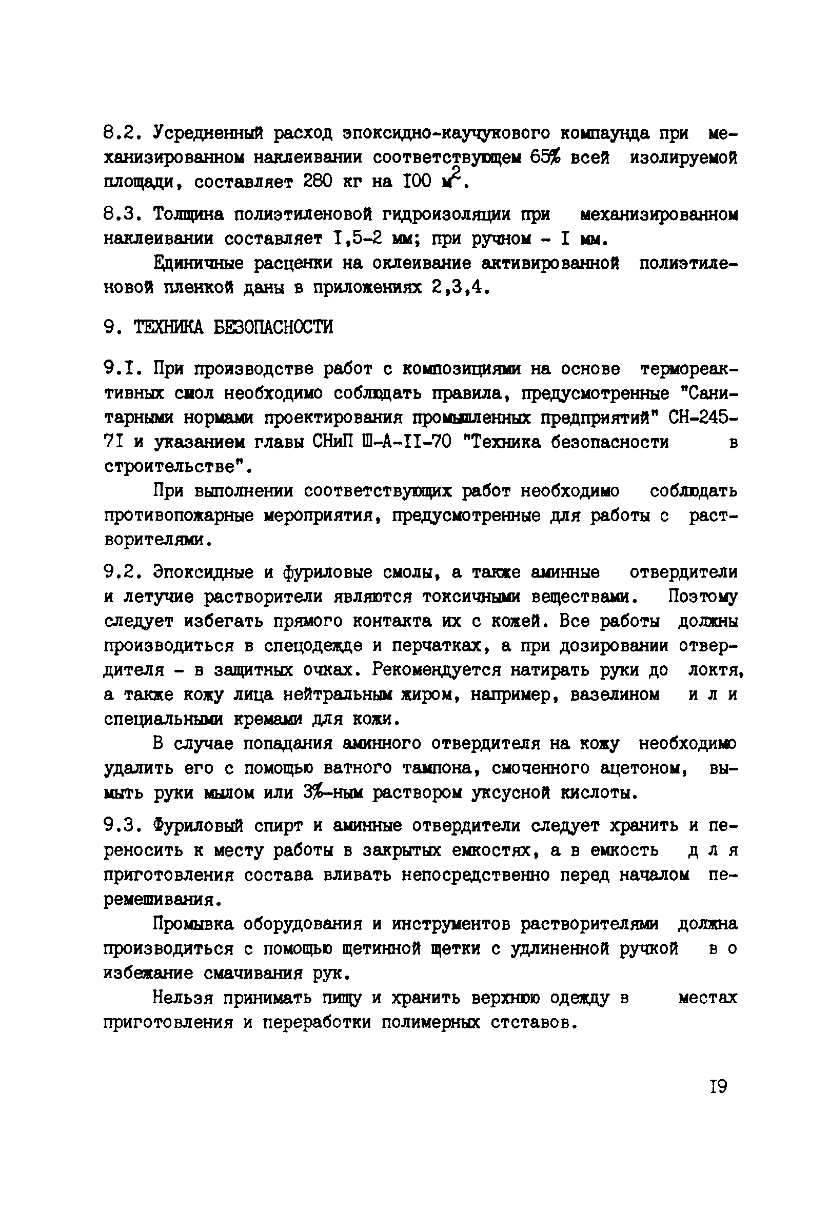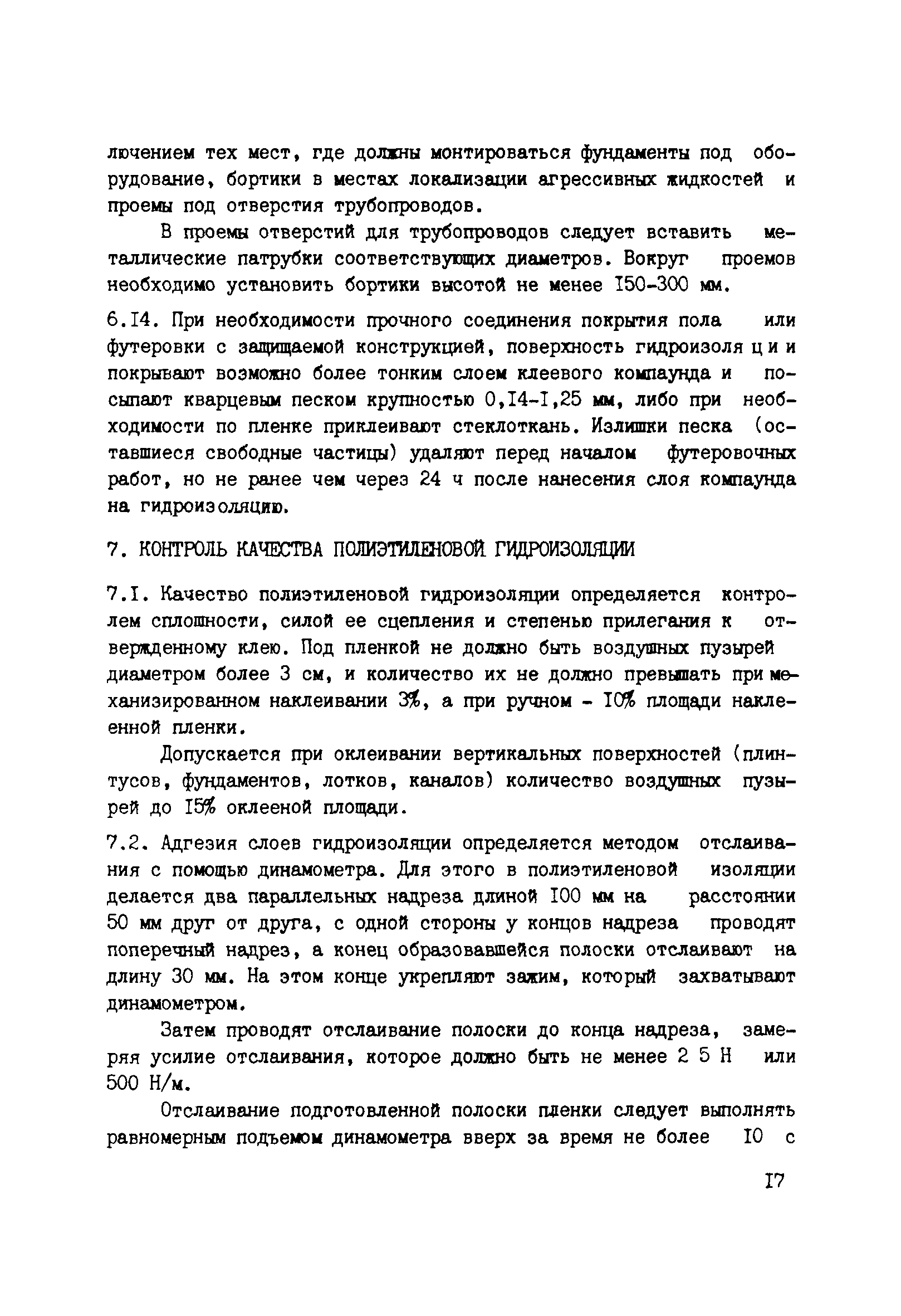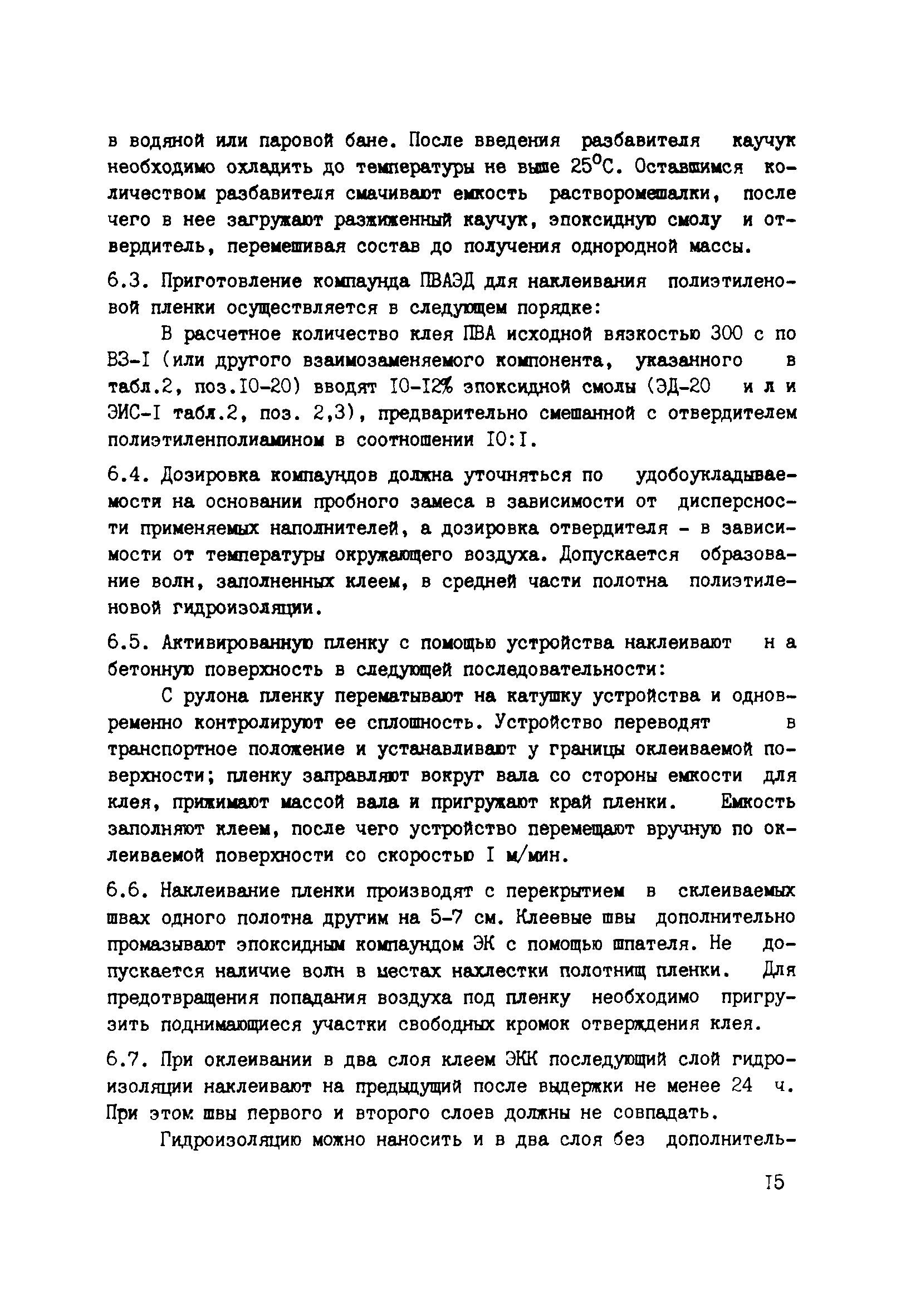 | Оглавление: | Предисловие 1. Общие положения 2. Требования к исходным материалам и гидроизоляции 3. Основные положения по проектированию гидроизоляции 4. Требования к защищаемым поверхностям 5. Приспособления и механизмы для устройства гидроизоляции 6. Технология устройства гидроизоляции 7. Контроль качества изоляции и способы устранения дефектов 8. Нормы расхода материалов 9. Требования по технике безопасности Приложение 1. Устройство для наклеивания полиэтиленовой пленки Приложения 2, 3, 4. Единичные расценки на оклеивание активированной полиэтиленовой пленкой |