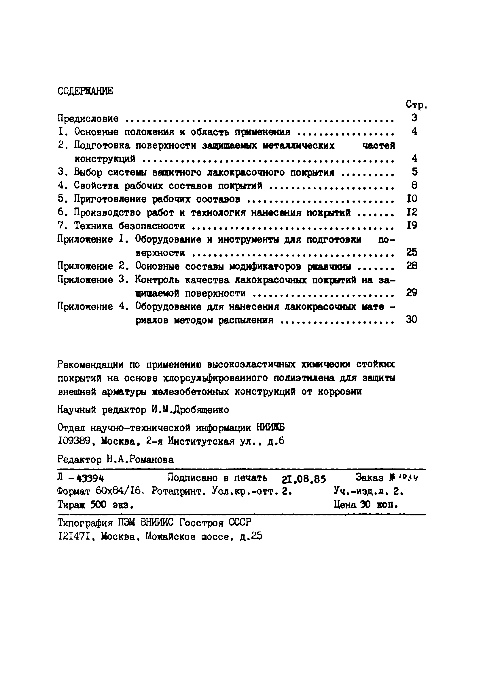 | Оглавление: | Предисловие 1. Основные положения и область применения 2. Подготовка поверхности защищаемых металлических частей 3. Выбор системы защитного лакокрасочного покрытия 4. Свойства рабочих составов покрытий 5. Приготовление рабочих составов 6. Производство работ и технология нанесения покрытий 7. Техника безопасности Приложение 1. Оборудование и инструменты для подготовки поверхности Приложение 2. Основные составы модификаторов ржавчины Приложение 3. Контроль качества лакокрасочных покрытий на защищаемой поверхности Приложение 4. Оборудование для нанесения лакокрасочных материалов методом распыления |