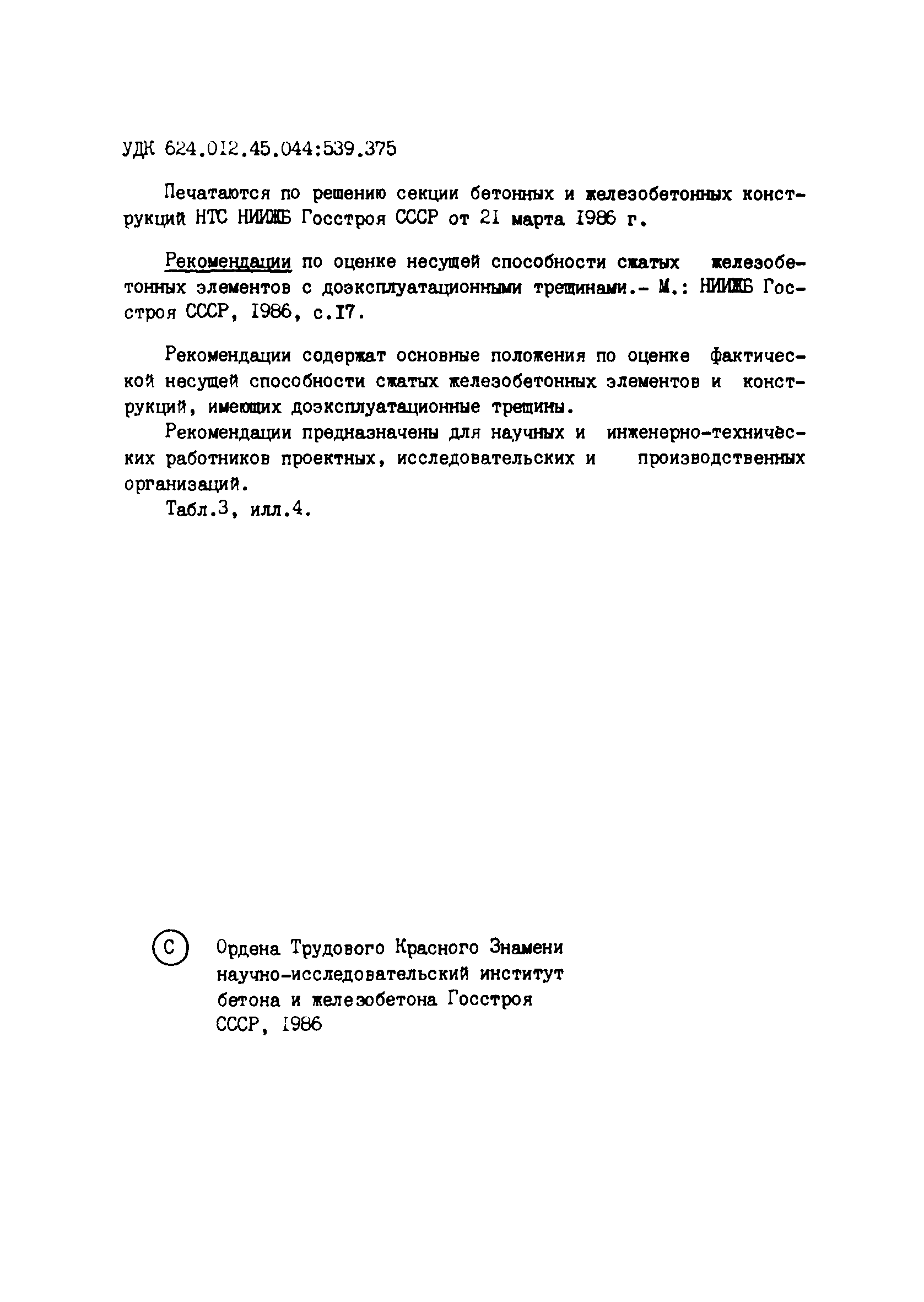 | Название рус.: | Рекомендации по оценке несущей способности сжатых железобетонных элементов с доэксплуатационными трещинами |