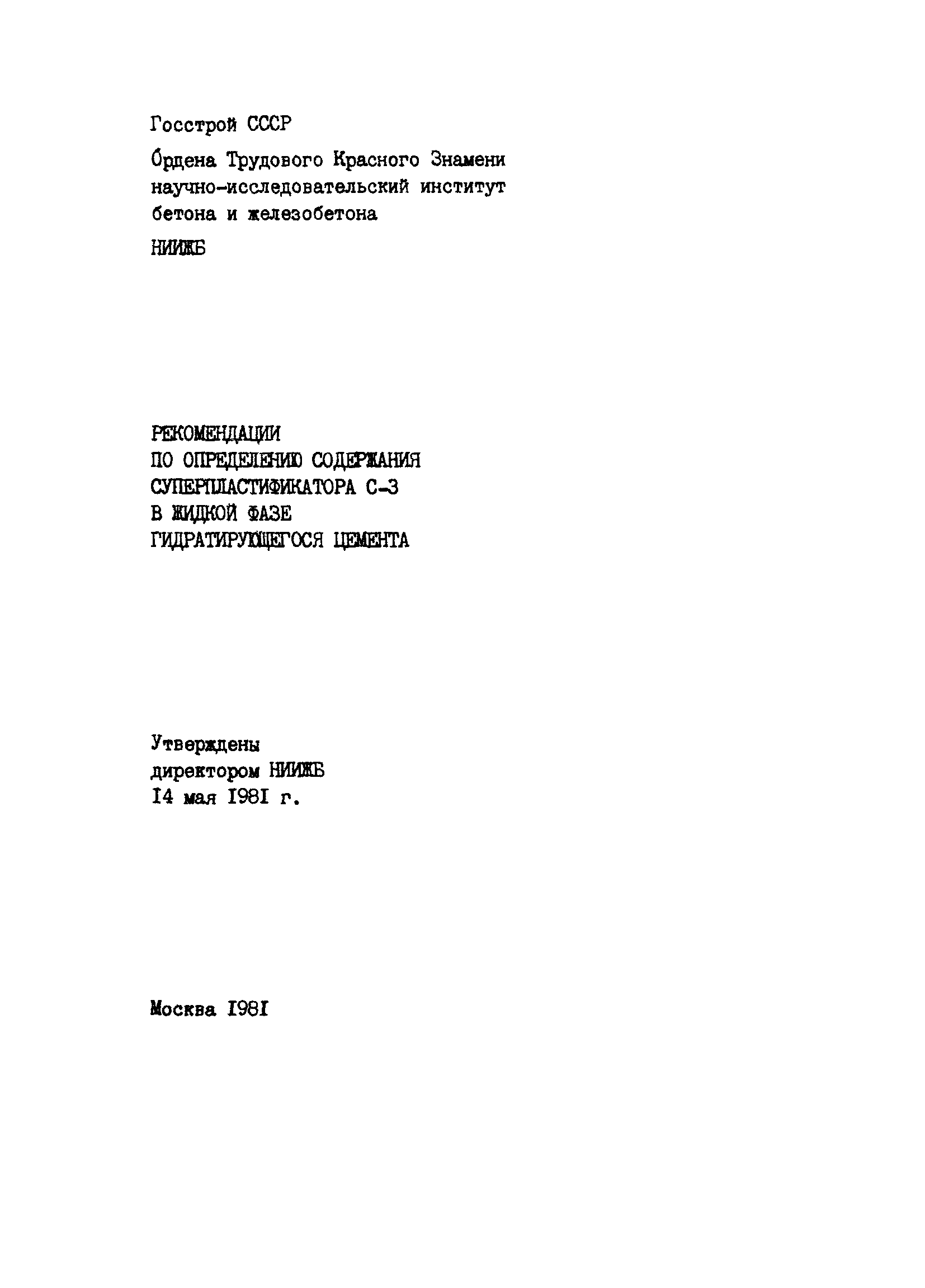 | Название рус.: | Рекомендации по определению содержания суперпластификатора С-3 в жидкой фазе гидратирующегося цемента |