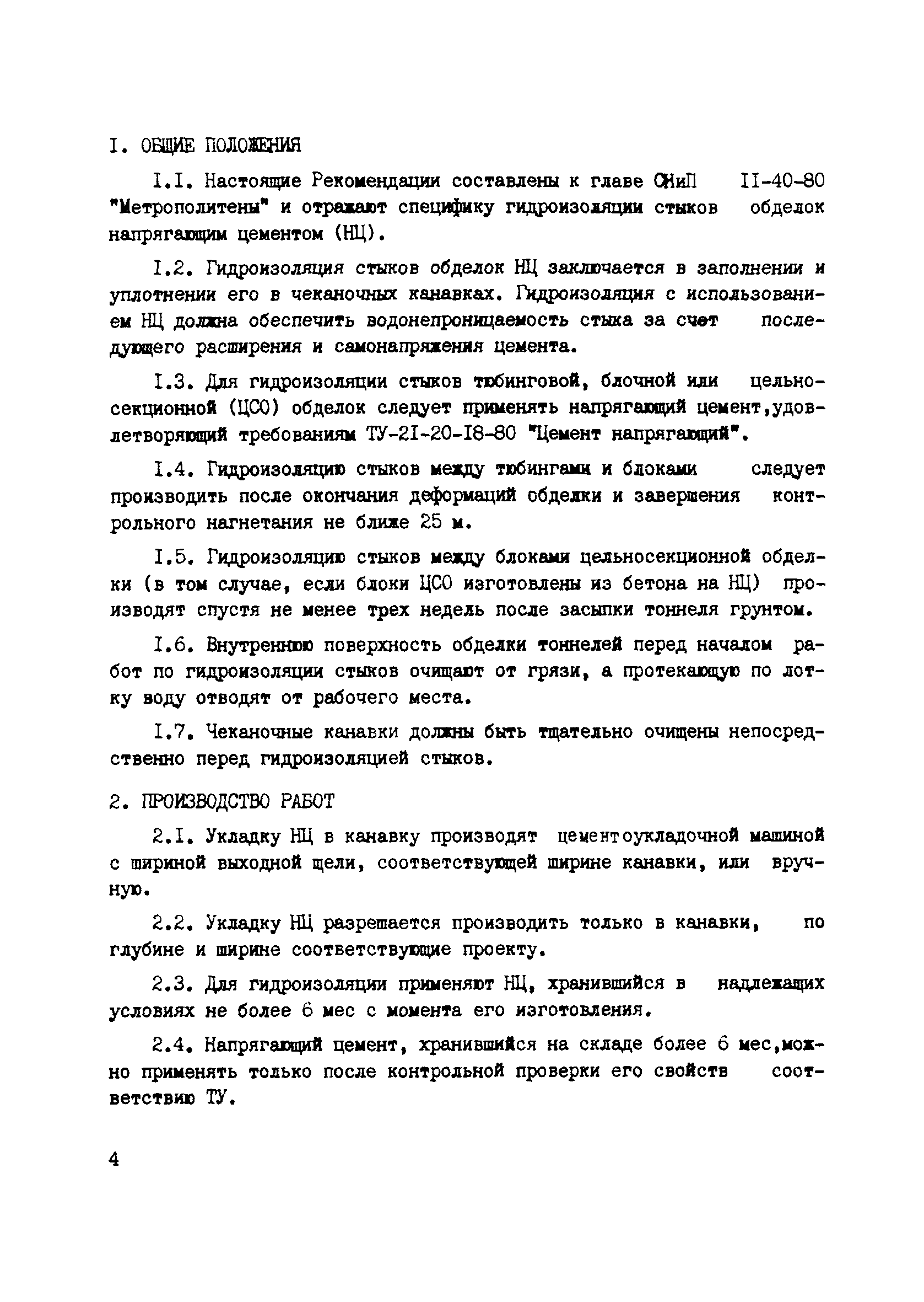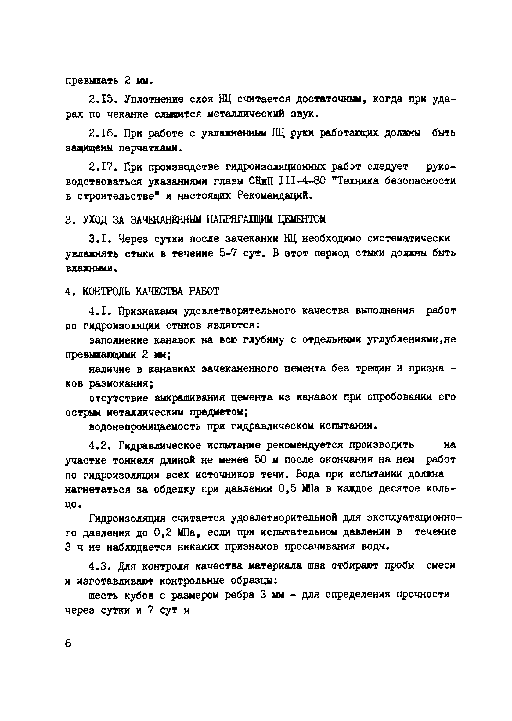| Оглавление: | Предисловие . 1. Общие положения 2. Производство работ 3. Уход за зачеканенным налрягающим цементом 4. Контроль качества работ |