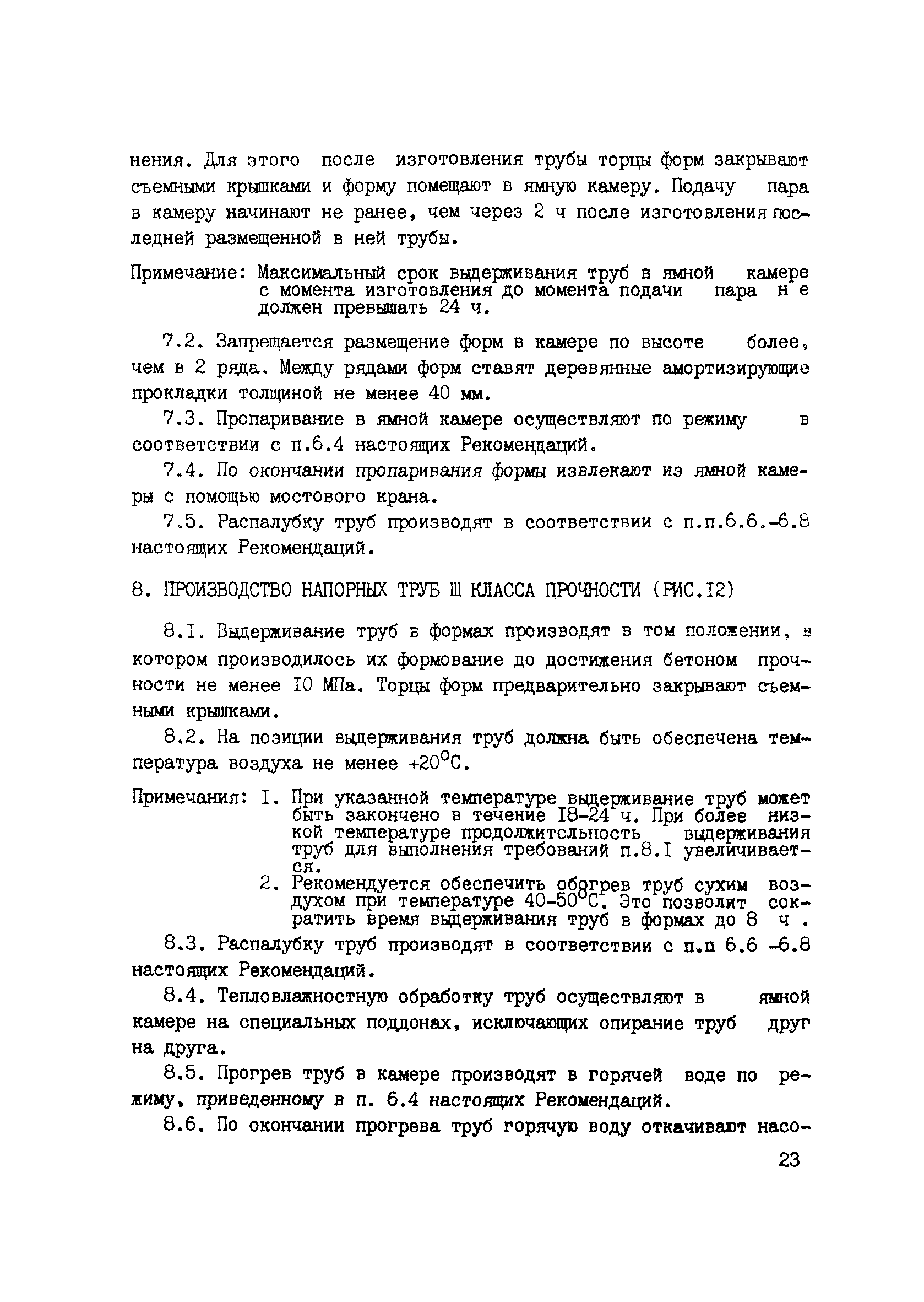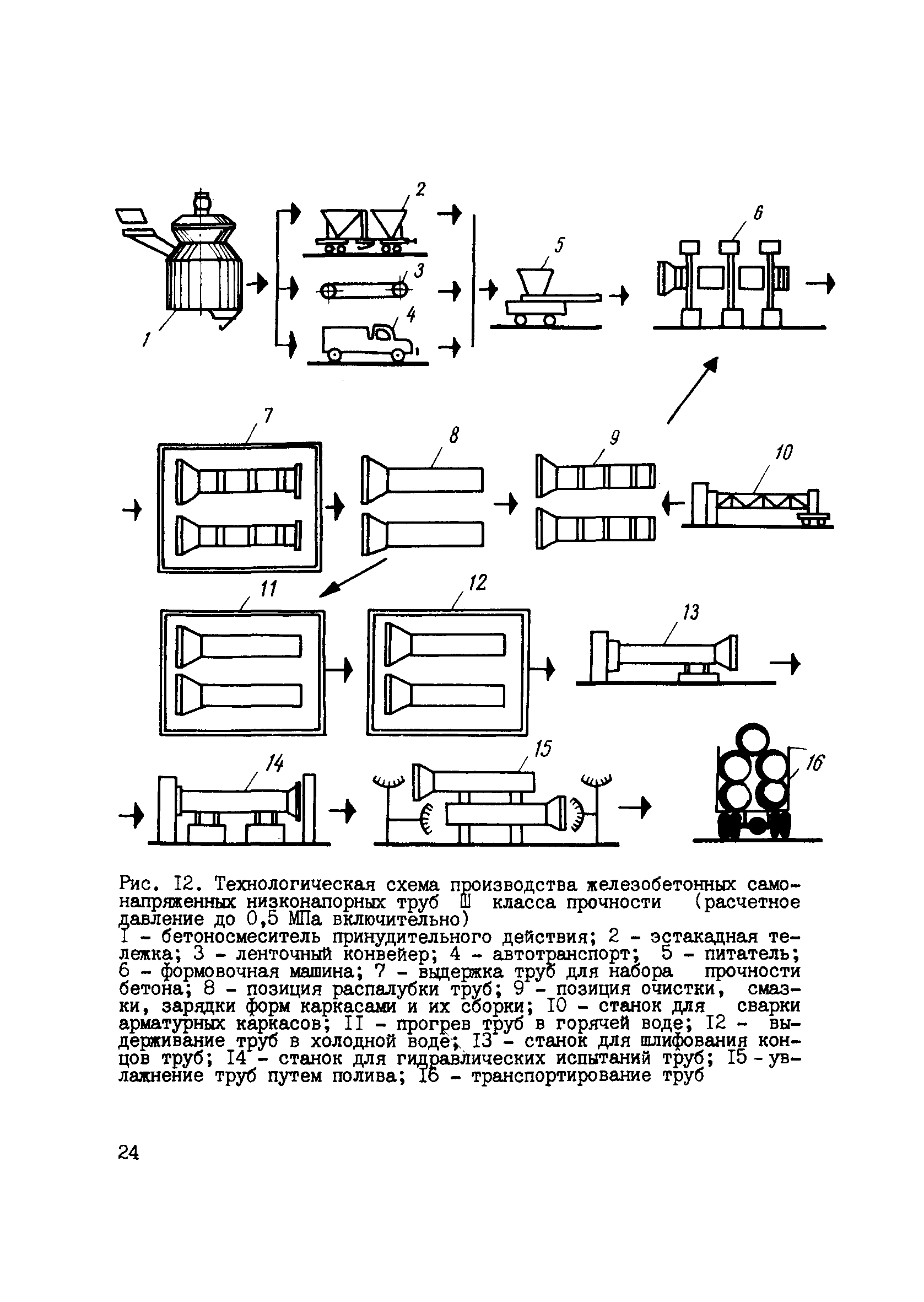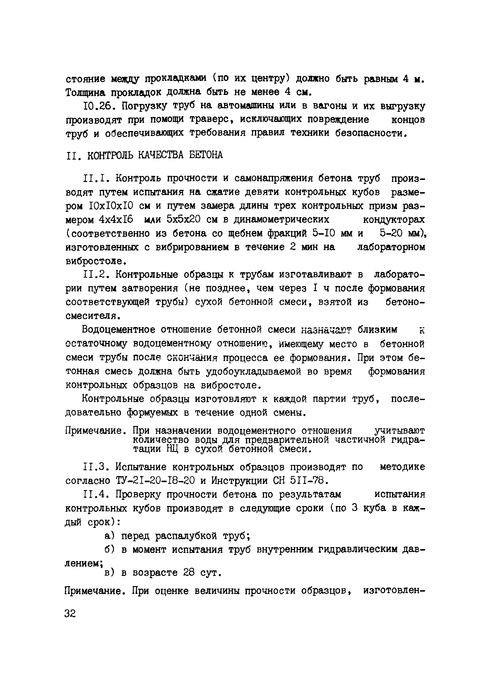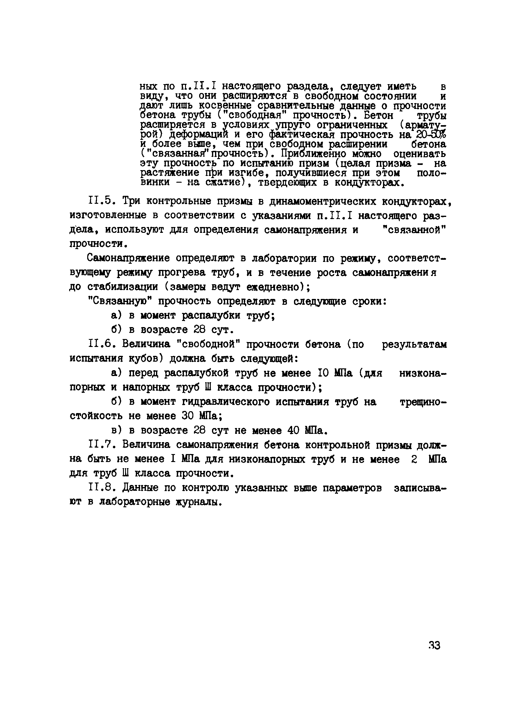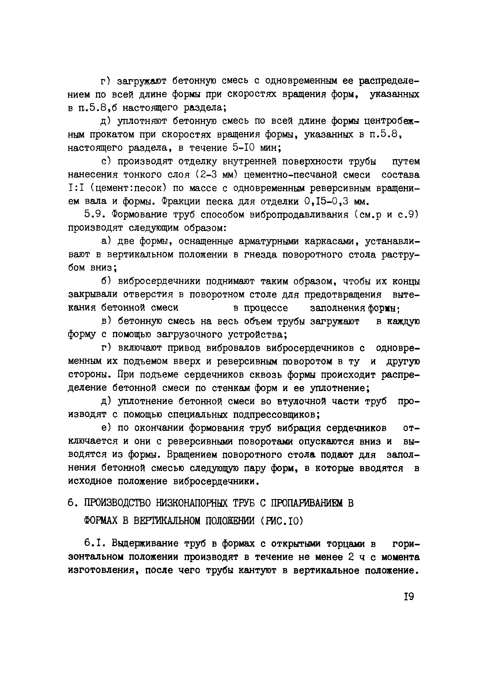 | Оглавление: | Предисловие 1. Основные положения и область применения 2. Требования к материалам 3. Изготовление арматурных каркасов и подготовка форм к бетонированию 4. Приготовление бетонной смеси 5. Формование труб 6. Производство низконапорных труб с пропариванием в формах в вертикальном положении 7. Производство низконапорных труб с пропариванием в формах в горизонтальном положении 8. Производство напорных труб III класса прочности 9. Шлифование концов труб 10. Испытание труб и их приемка 11. Контроль качества бетона Приложение. Технико-экономическая эффективность производства железобетонных самонапряженных низконапорных и напорных труб III класса прочности |