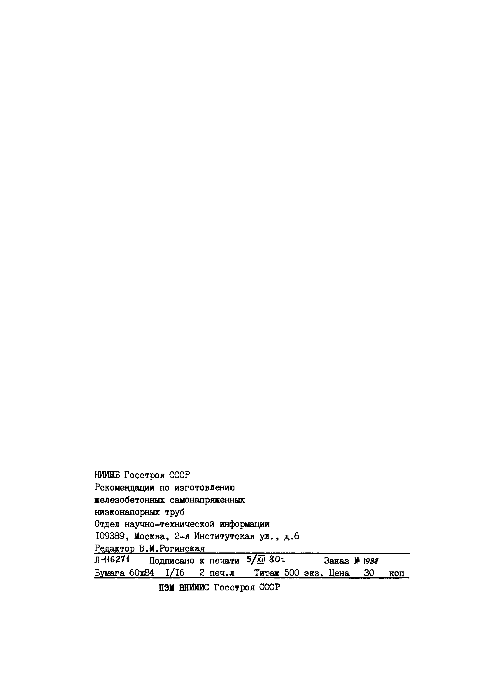 | Название рус.: | Рекомендации по изготовлению железобетонных самонапряженных низконапорных труб |