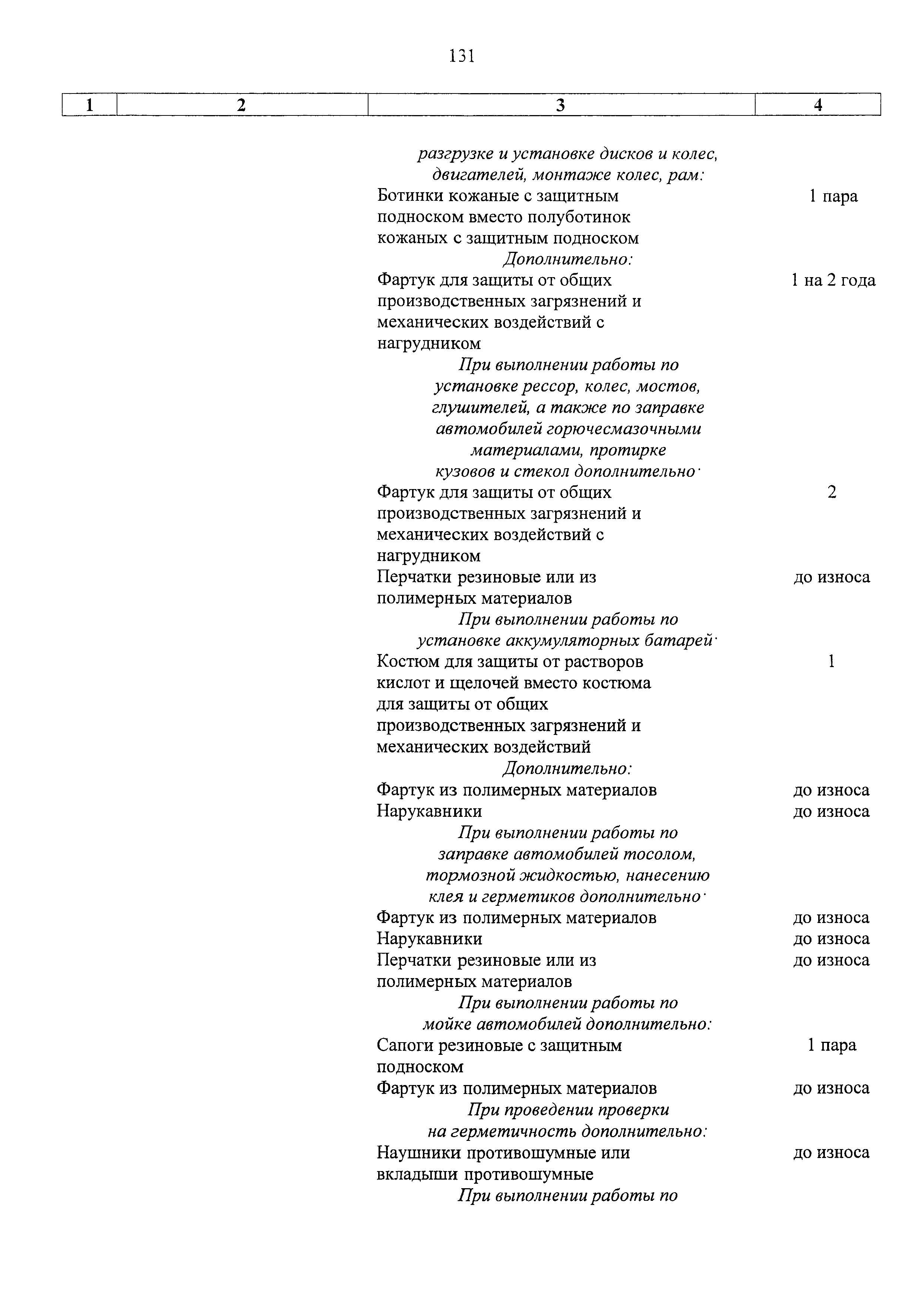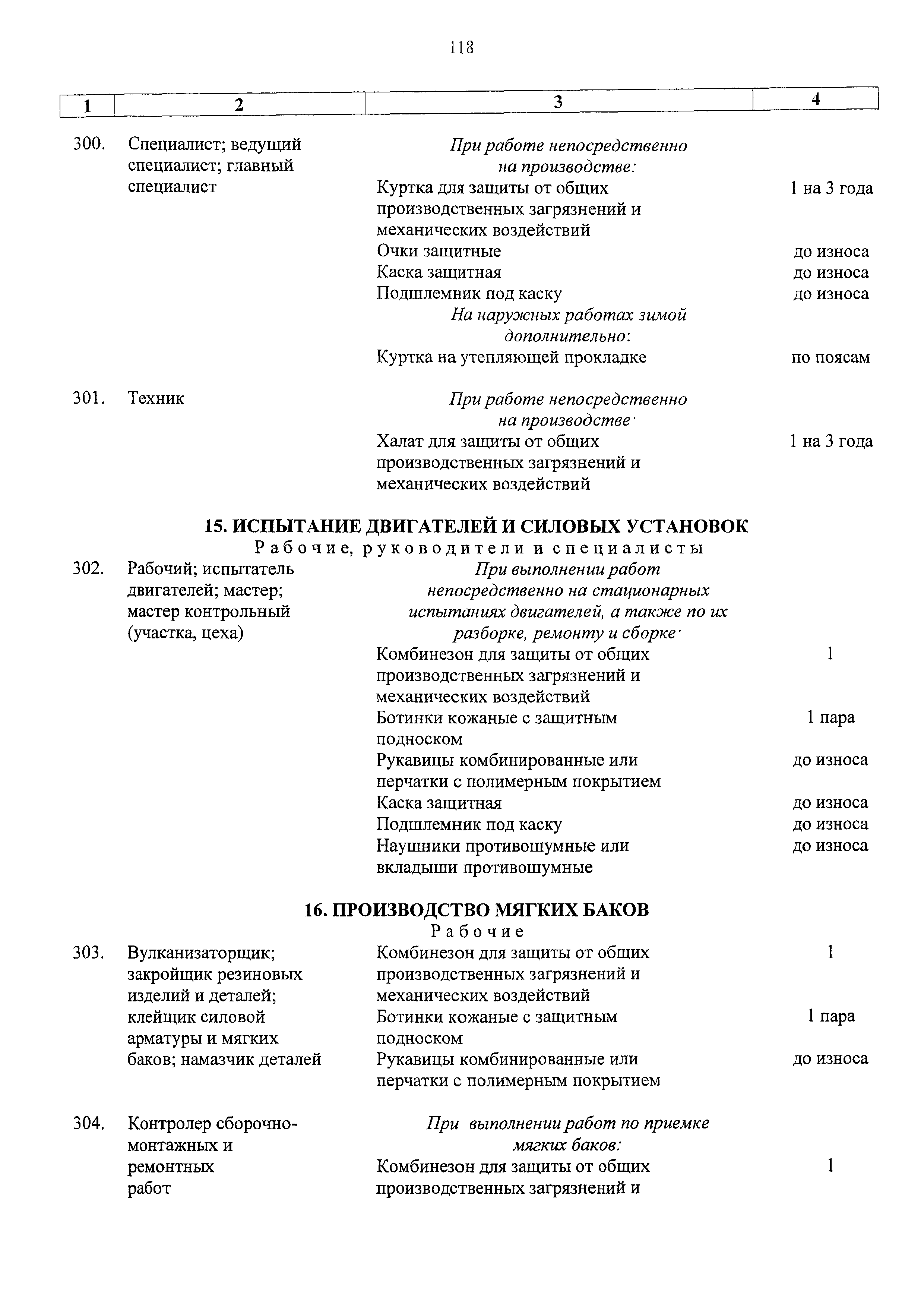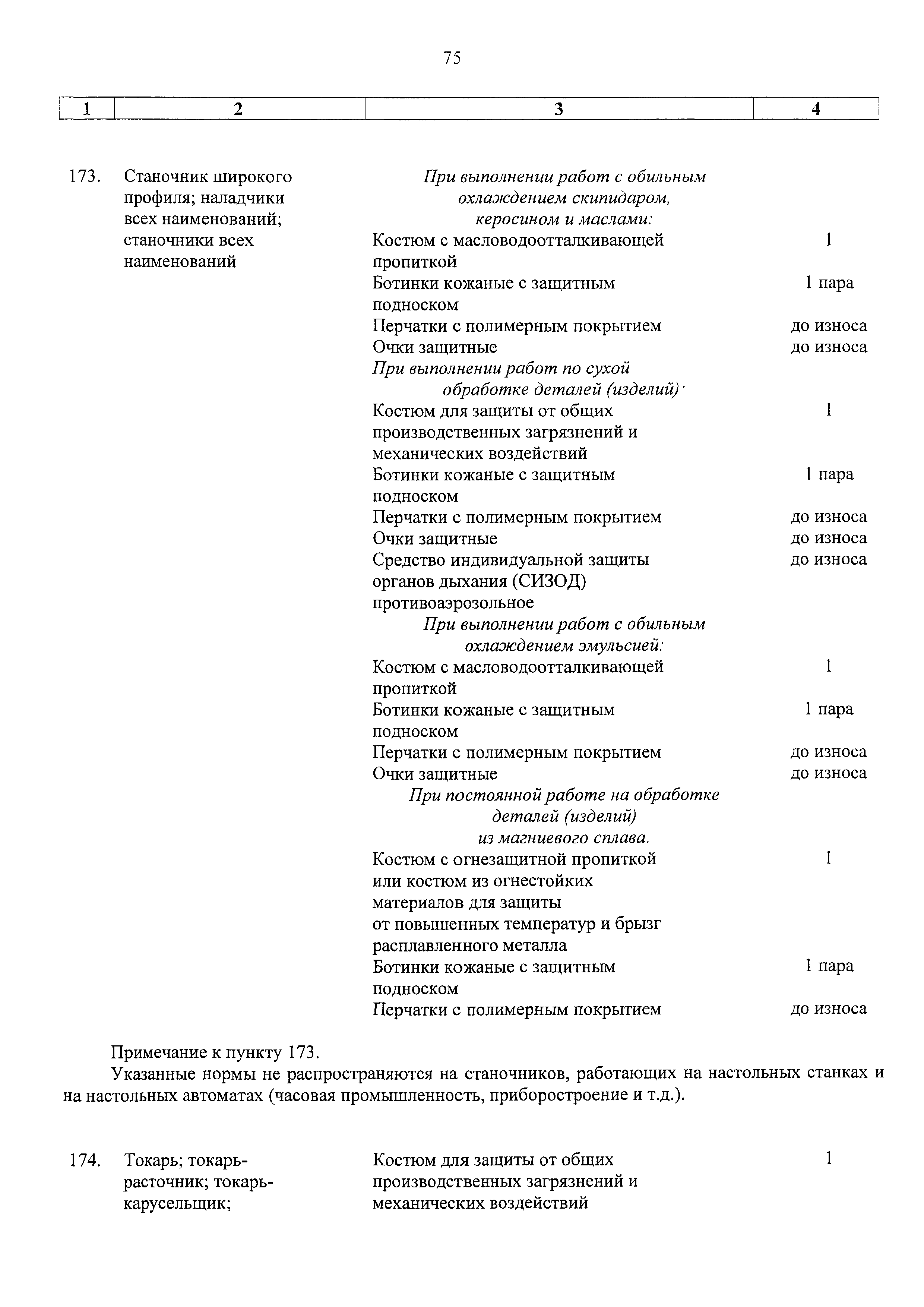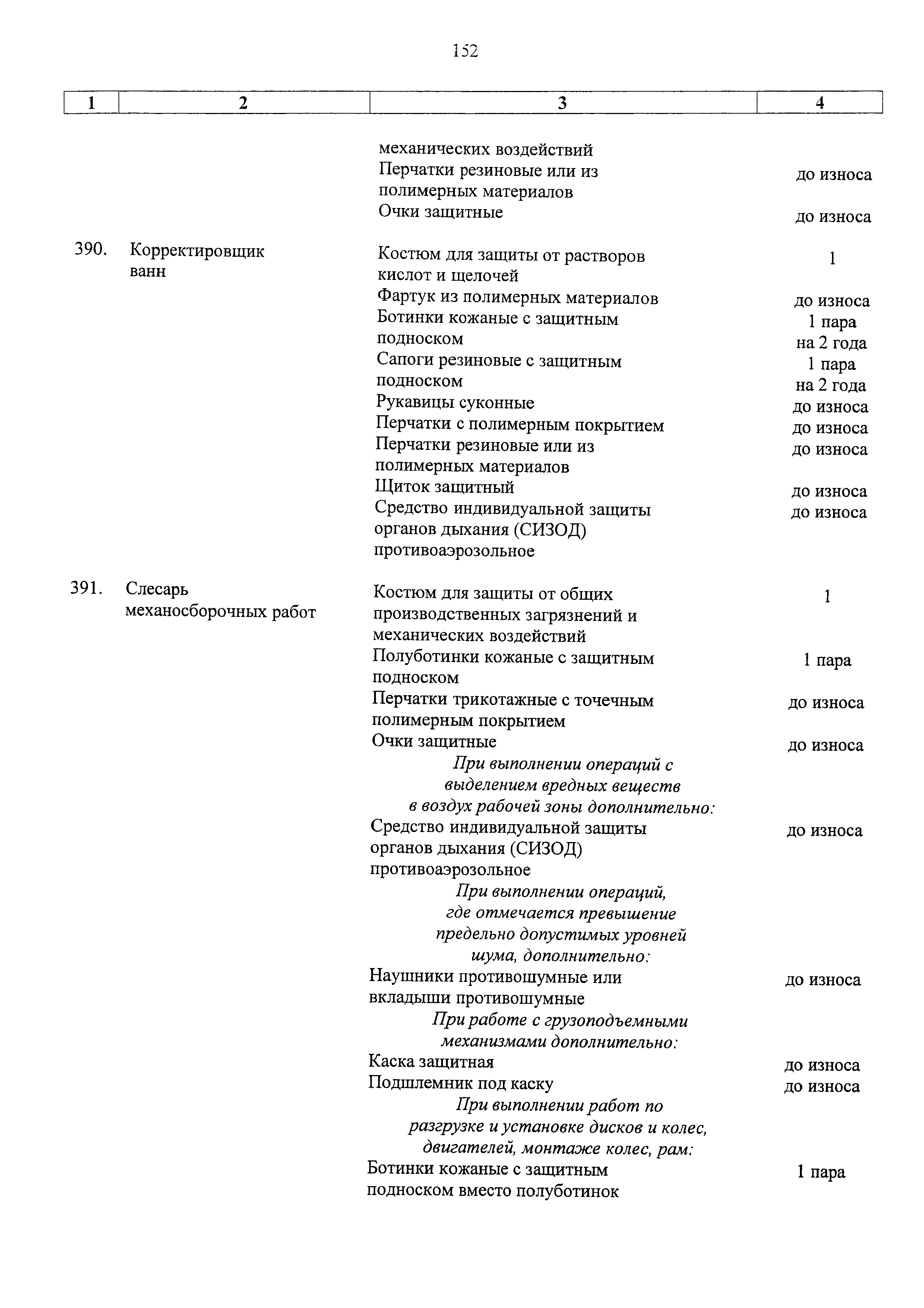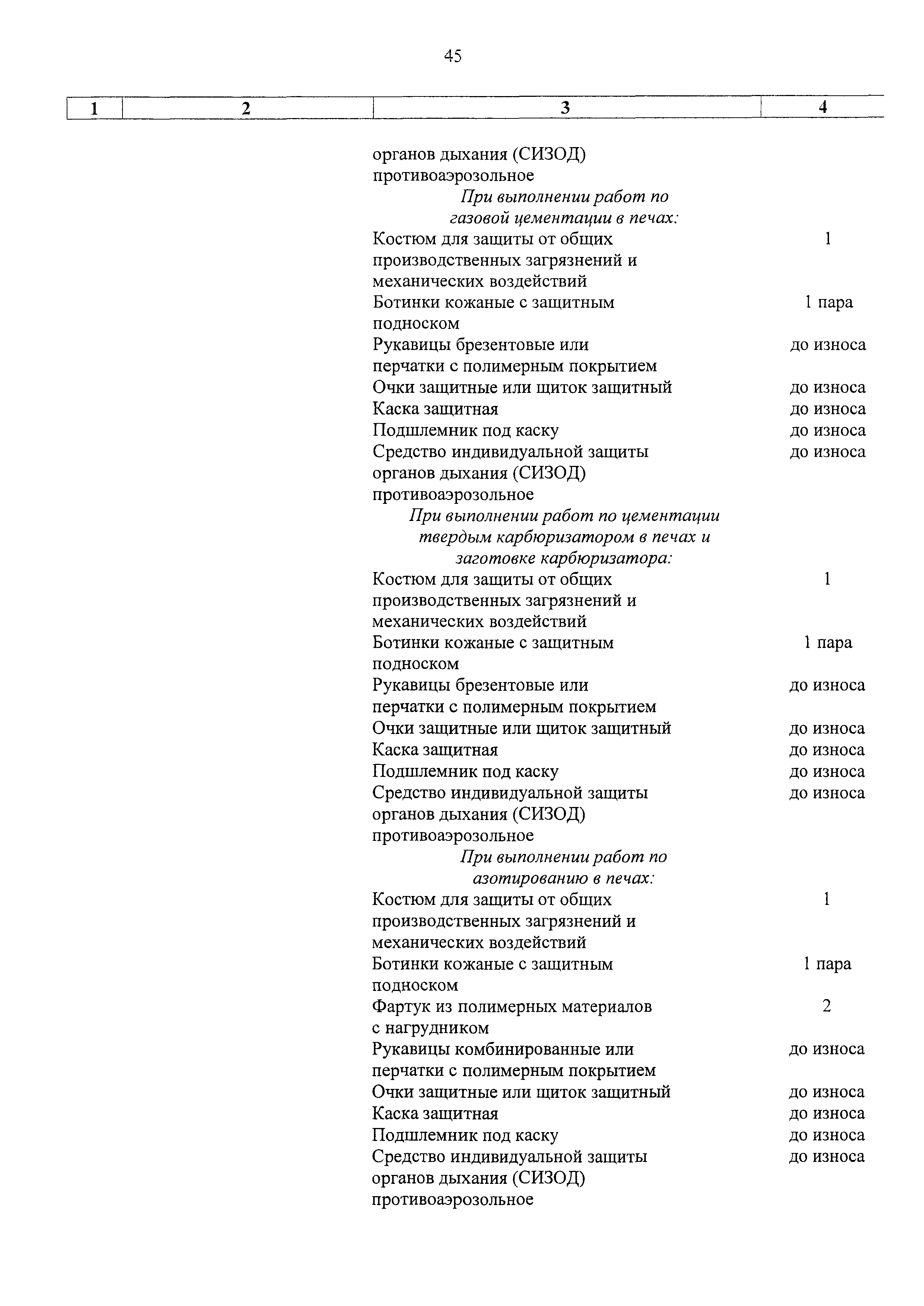 Типовые нормы бесплатной выдачи специальной одежды, специальной обуви и других средств индивидуальной защиты работникам машиностроительных и металлообрабатывающих производств, занятым на работах с вредными и (или) опасными условиями труда, а также на работах, выполняемых в особых температурных условиях или связанных с загрязнением| Статус: | действует | | Название рус.: | Типовые нормы бесплатной выдачи специальной одежды, специальной обуви и других средств индивидуальной защиты работникам машиностроительных и металлообрабатывающих производств, занятым на работах с вредными и (или) опасными условиями труда, а также на работах, выполняемых в особых температурных условиях или связанных с загрязнением | | Дата добавления в базу: | 01.09.2013 | | Дата актуализации: | 01.01.2021 | | Оглавление: | 1. Чугунолитейное производство и литье цветных металлов 2. Производства порошковой металлургии 3. Производство электродов и флюсов 4. Кузнечно-прессовые и термические работы 5. Сварочные работы 6. Работы по металлопокрытиям и окраске 7. Механическая обработка металлов; слесарные и слесарно-сборочные работы 8. Производство подшипников 9. Кузовное производство 10. Работы по производству и восстановлению напильников 11. Абразивное производство 12. Производство сверхтвердых материалов и инструмента из них 13. Производство шлифовальной шкурки 14. Разборка, ремонт, сборка и испытание тягачей, автомобилей и тракторов 15. Испытание двигателей и силовых установок 16. Производство мягких баков 17. Производство мипоры 18. Котельные работы и работы по металлическим конструкциям 19. Производство грузовых автомобилей 19.1 Сварка и сборка кабин 19.2. Сварка и сборка цельнометаллических кузовов 19.3. Сборка узлов 19.4. Сборка грузовых автомобилей 19.5. Подсборка узлов и агрегатов 20. Производство легковых автомобилей 20.1. Сборка-сварка кузовов 20.2. Сборка легковых автомобилей 21. Производство автокомпонентов 22. Агрегатное производство 23. Производство спецтехники 23.1. Сборочные, сварочные, окрасочные работы 23.2. Сборка автомобилей и узлов 23.3. Тюнинг автомобилей 24. Инструментальное производство 25. Общие профессии машиностроительных и металлообрабатывающих производств Примечания к типовым нормам | | Утверждён: | 14.12.2010 Минздравсоцразвития России (1104н)