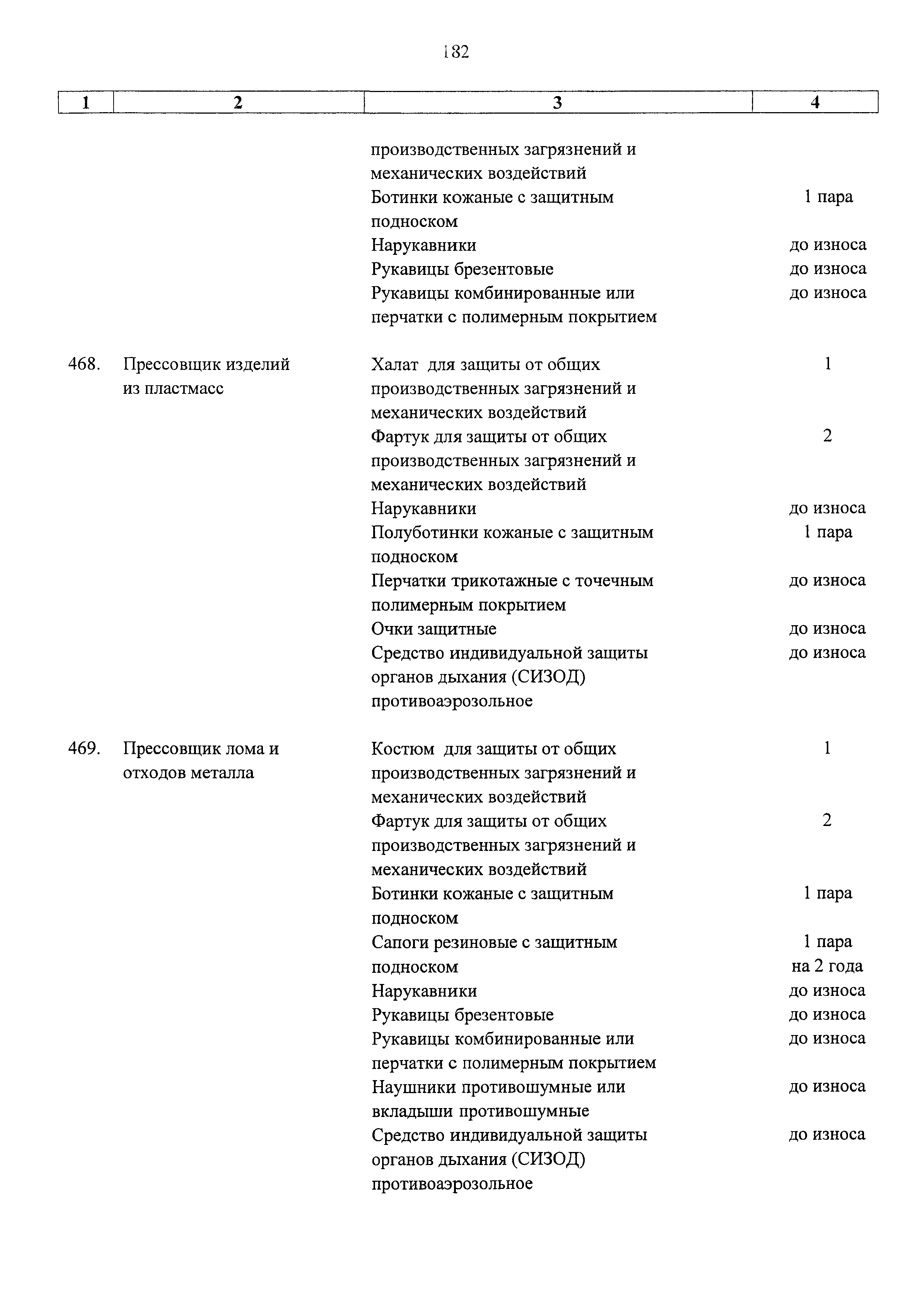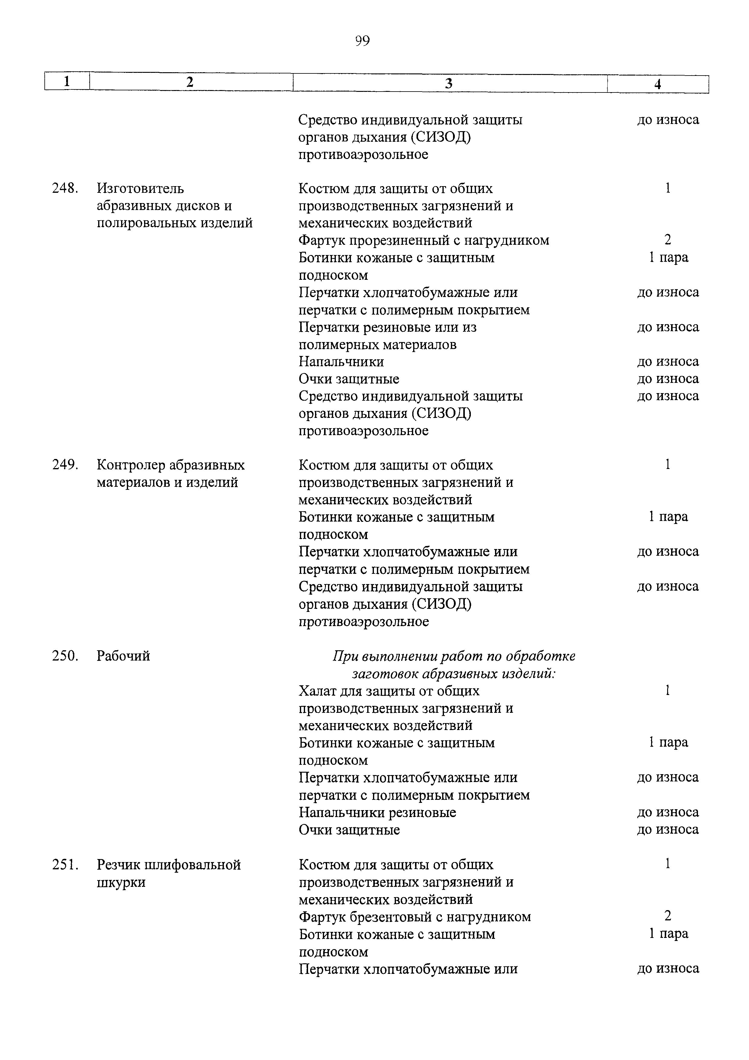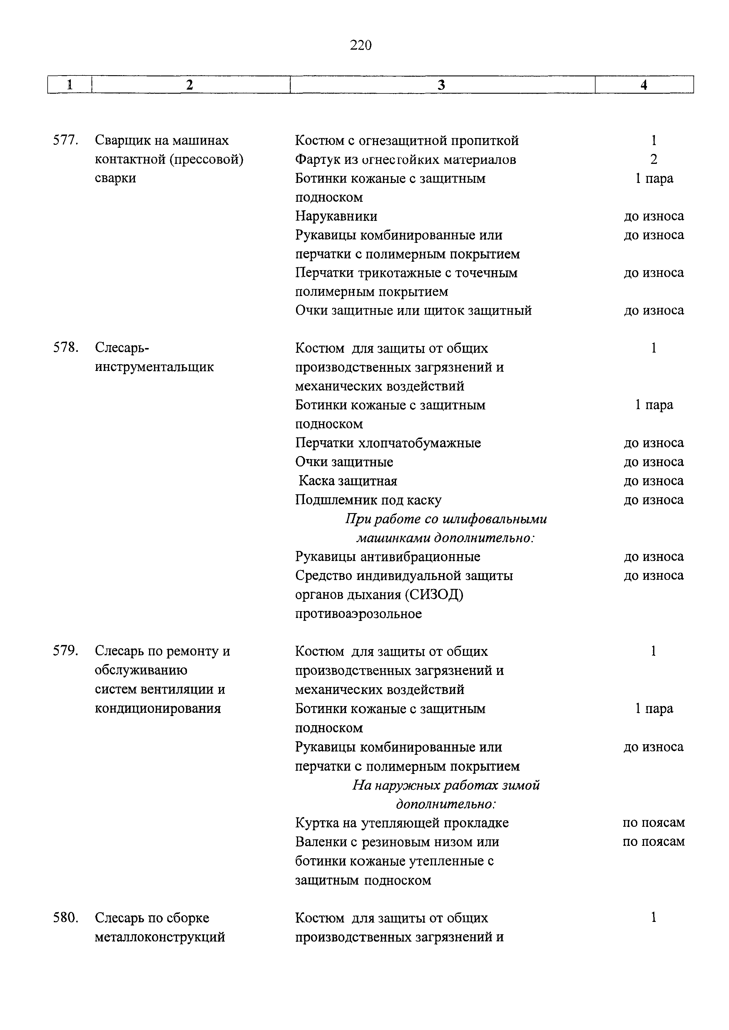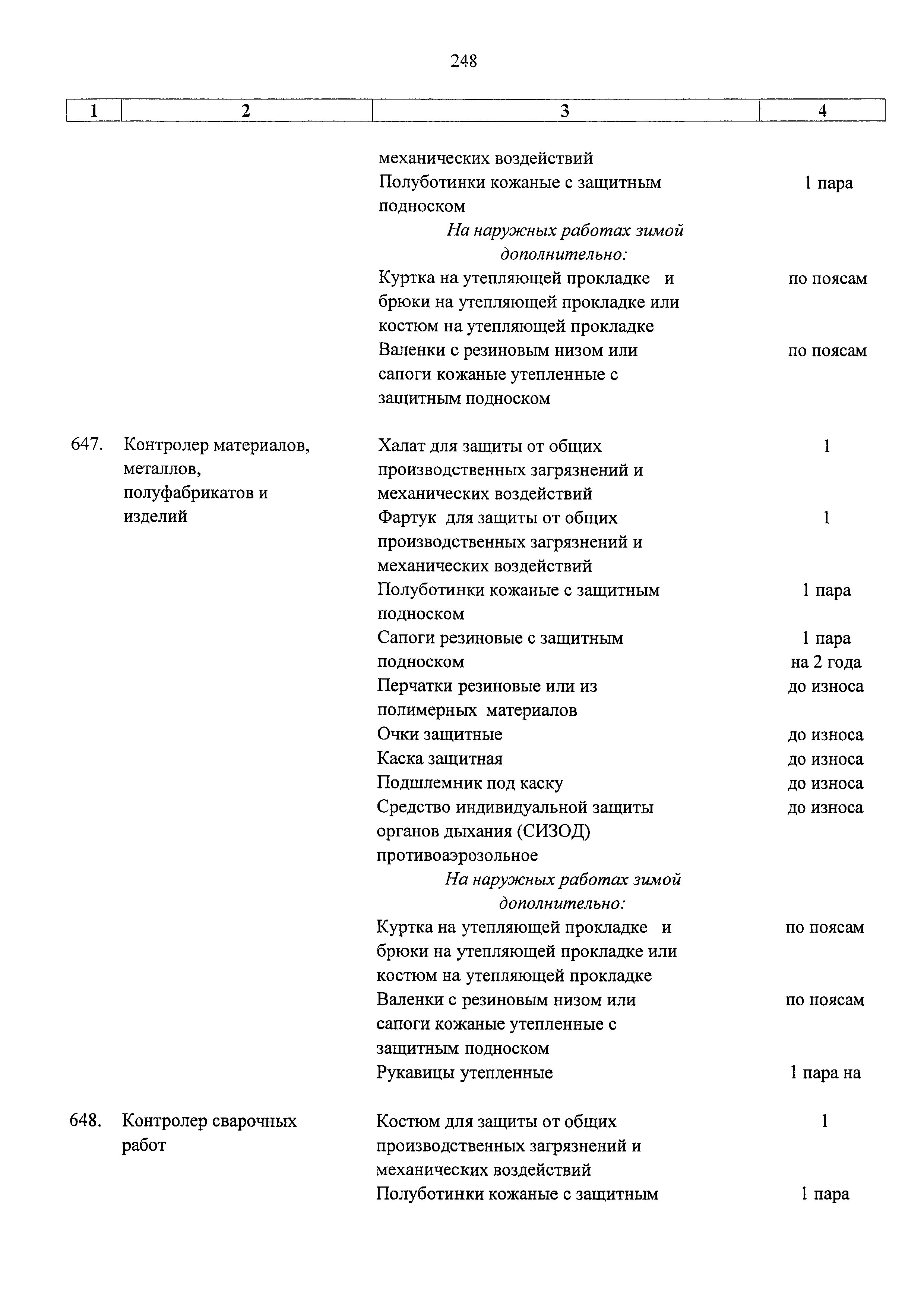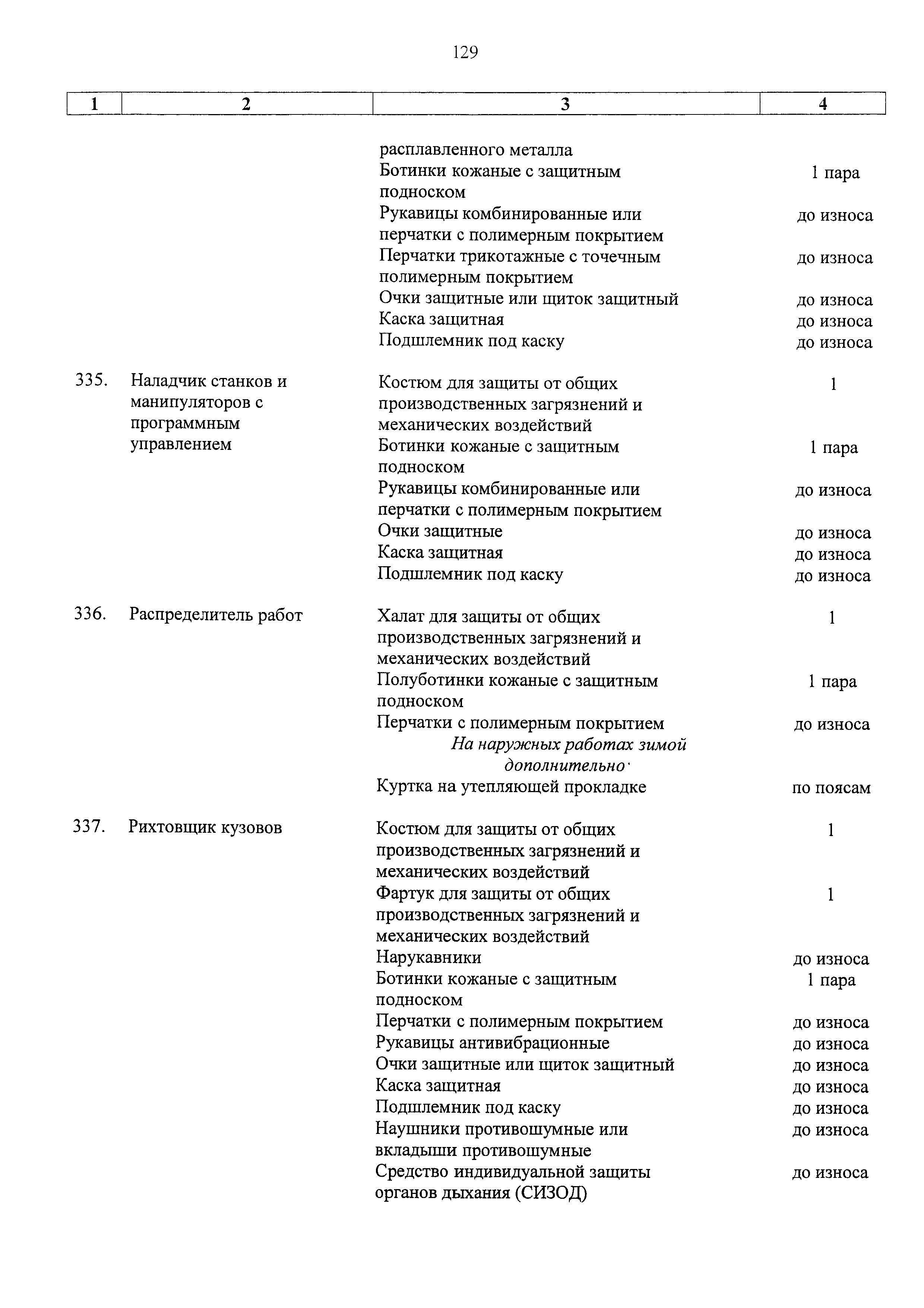 Типовые нормы бесплатной выдачи специальной одежды, специальной обуви и других средств индивидуальной защиты работникам машиностроительных и металлообрабатывающих производств, занятым на работах с вредными и (или) опасными условиями труда, а также на работах, выполняемых в особых температурных условиях или связанных с загрязнением| Статус: | действует | | Название рус.: | Типовые нормы бесплатной выдачи специальной одежды, специальной обуви и других средств индивидуальной защиты работникам машиностроительных и металлообрабатывающих производств, занятым на работах с вредными и (или) опасными условиями труда, а также на работах, выполняемых в особых температурных условиях или связанных с загрязнением | | Дата добавления в базу: | 01.09.2013 | | Дата актуализации: | 01.01.2021 | | Оглавление: | 1. Чугунолитейное производство и литье цветных металлов 2. Производства порошковой металлургии 3. Производство электродов и флюсов 4. Кузнечно-прессовые и термические работы 5. Сварочные работы 6. Работы по металлопокрытиям и окраске 7. Механическая обработка металлов; слесарные и слесарно-сборочные работы 8. Производство подшипников 9. Кузовное производство 10. Работы по производству и восстановлению напильников 11. Абразивное производство 12. Производство сверхтвердых материалов и инструмента из них 13. Производство шлифовальной шкурки 14. Разборка, ремонт, сборка и испытание тягачей, автомобилей и тракторов 15. Испытание двигателей и силовых установок 16. Производство мягких баков 17. Производство мипоры 18. Котельные работы и работы по металлическим конструкциям 19. Производство грузовых автомобилей 19.1 Сварка и сборка кабин 19.2. Сварка и сборка цельнометаллических кузовов 19.3. Сборка узлов 19.4. Сборка грузовых автомобилей 19.5. Подсборка узлов и агрегатов 20. Производство легковых автомобилей 20.1. Сборка-сварка кузовов 20.2. Сборка легковых автомобилей 21. Производство автокомпонентов 22. Агрегатное производство 23. Производство спецтехники 23.1. Сборочные, сварочные, окрасочные работы 23.2. Сборка автомобилей и узлов 23.3. Тюнинг автомобилей 24. Инструментальное производство 25. Общие профессии машиностроительных и металлообрабатывающих производств Примечания к типовым нормам | | Утверждён: | 14.12.2010 Минздравсоцразвития России (1104н)