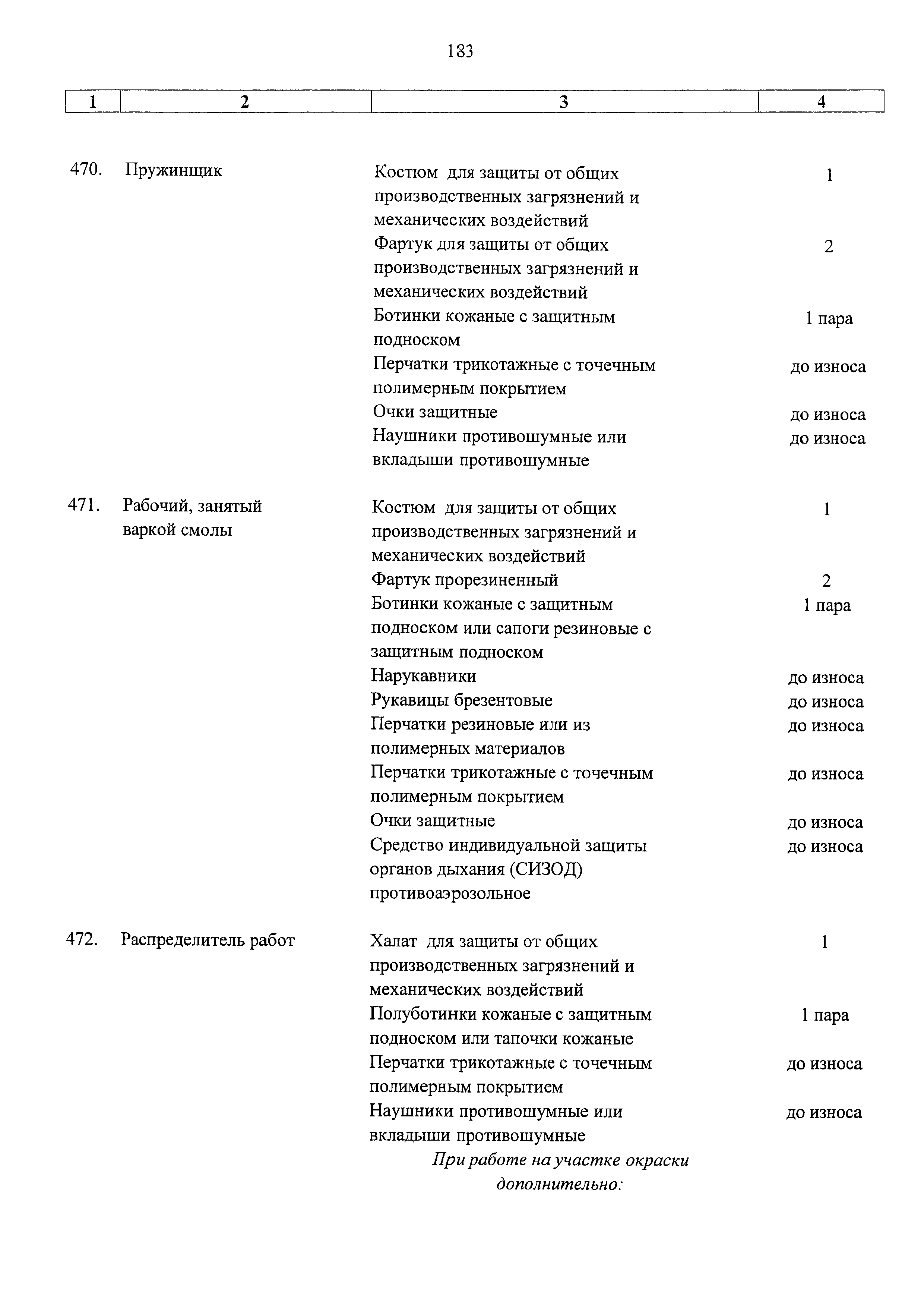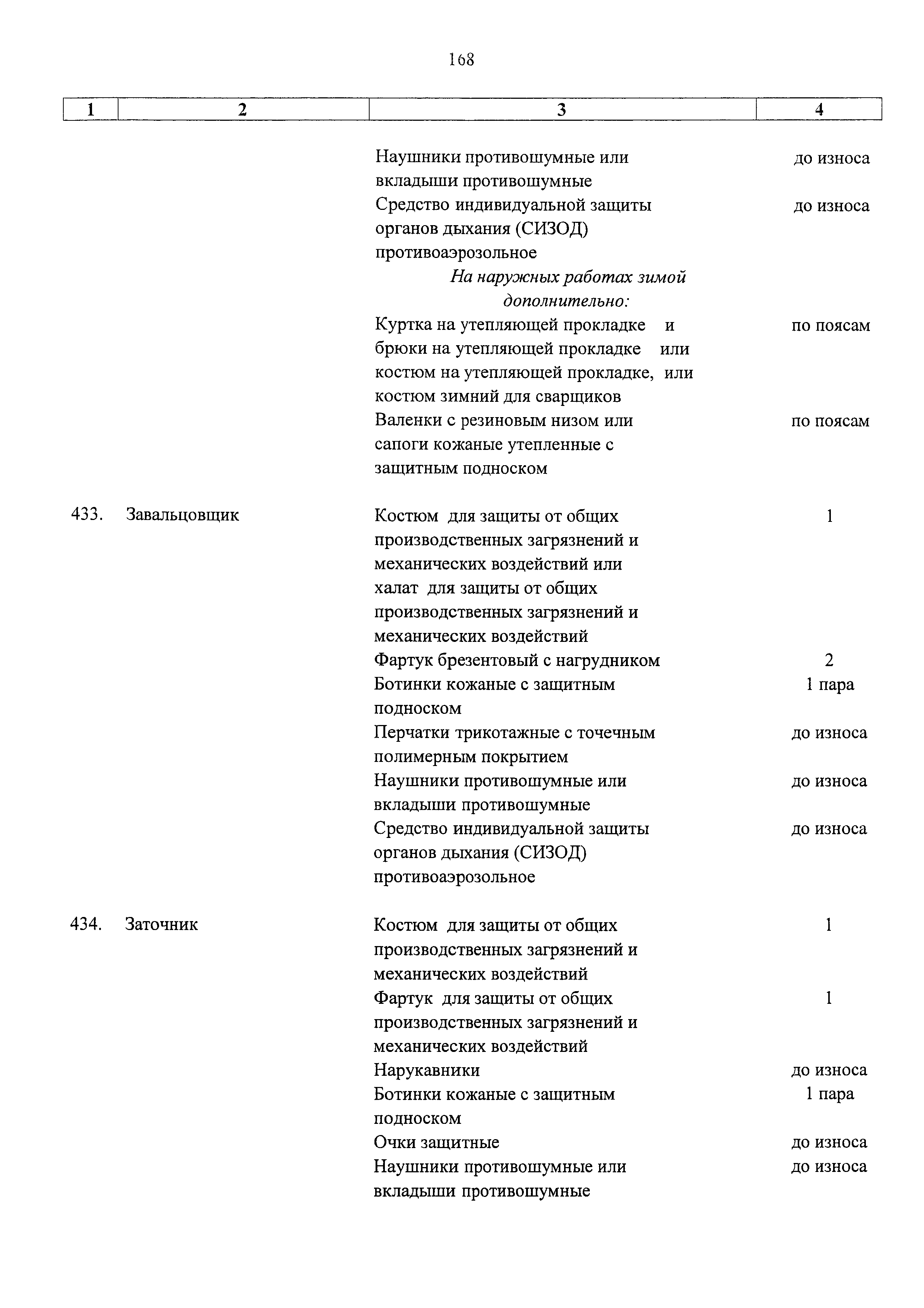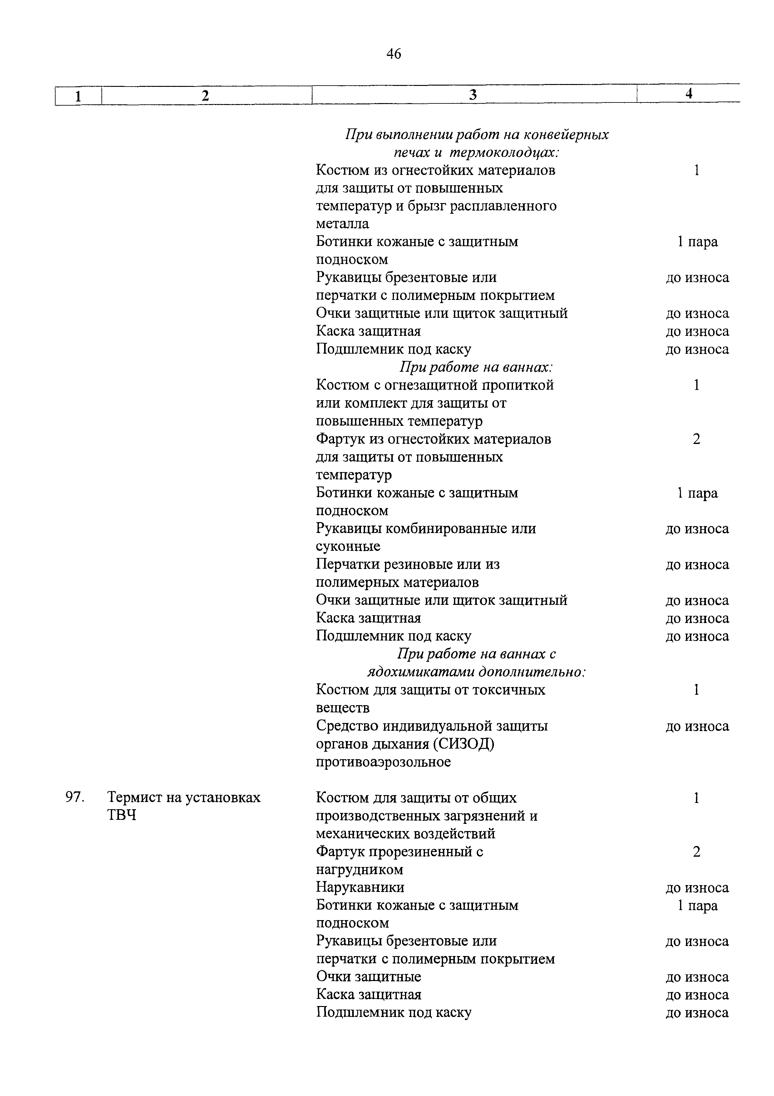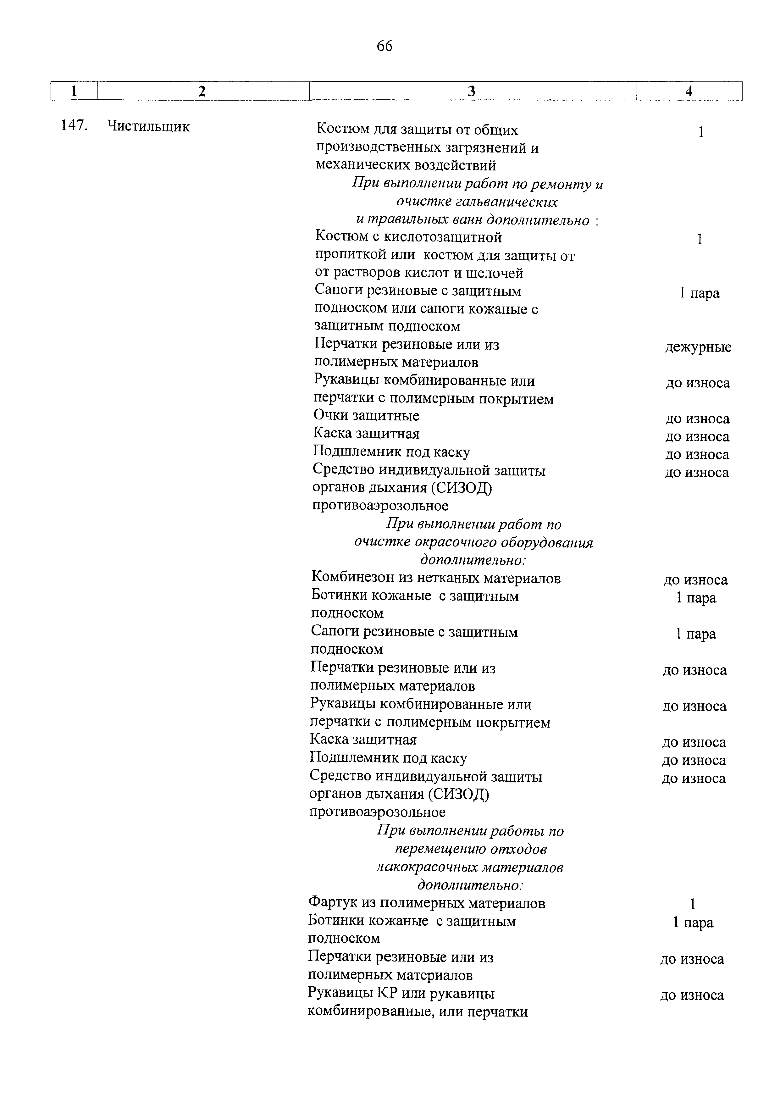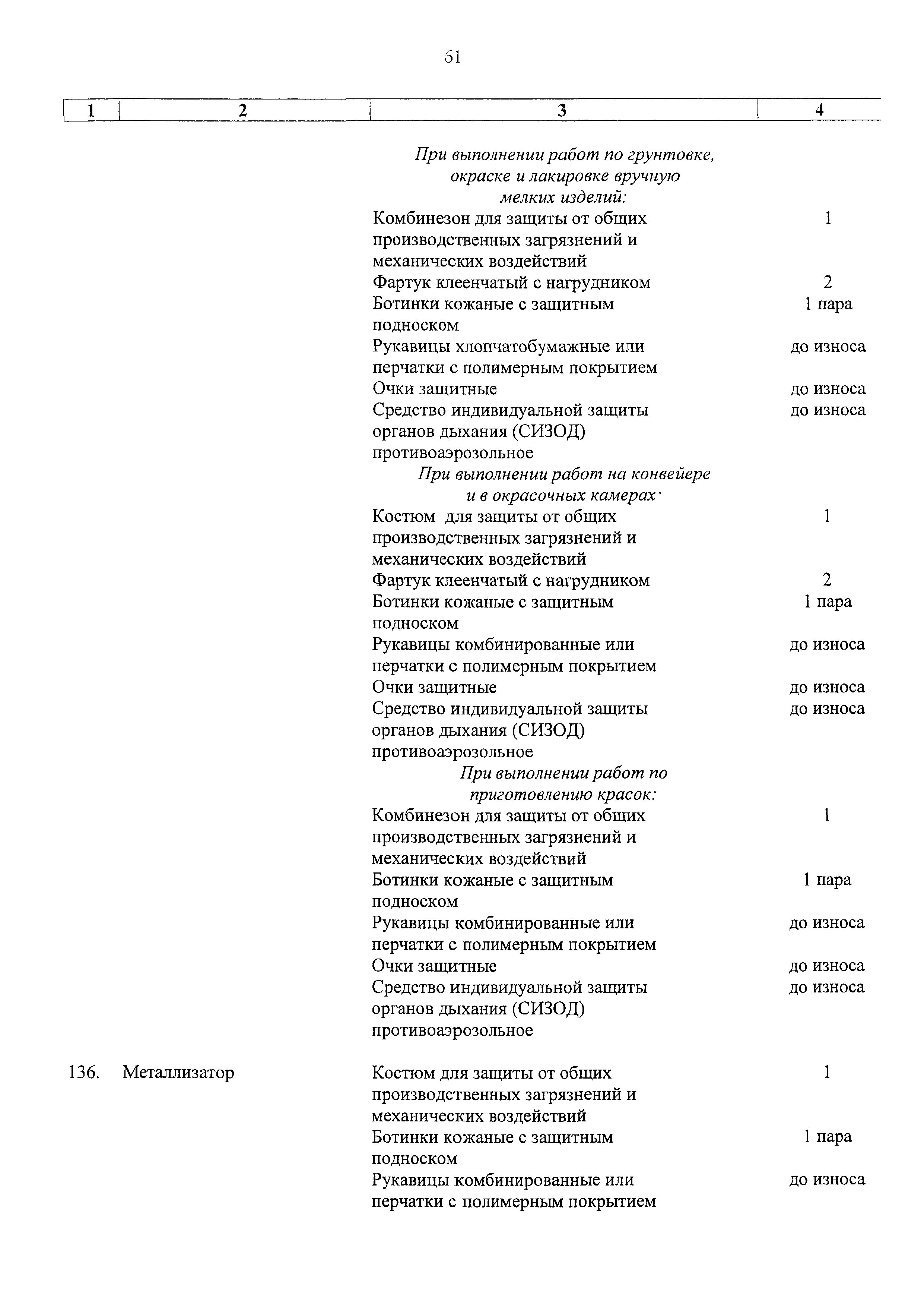 Типовые нормы бесплатной выдачи специальной одежды, специальной обуви и других средств индивидуальной защиты работникам машиностроительных и металлообрабатывающих производств, занятым на работах с вредными и (или) опасными условиями труда, а также на работах, выполняемых в особых температурных условиях или связанных с загрязнением| Статус: | действует | | Название рус.: | Типовые нормы бесплатной выдачи специальной одежды, специальной обуви и других средств индивидуальной защиты работникам машиностроительных и металлообрабатывающих производств, занятым на работах с вредными и (или) опасными условиями труда, а также на работах, выполняемых в особых температурных условиях или связанных с загрязнением | | Дата добавления в базу: | 01.09.2013 | | Дата актуализации: | 01.01.2021 | | Оглавление: | 1. Чугунолитейное производство и литье цветных металлов 2. Производства порошковой металлургии 3. Производство электродов и флюсов 4. Кузнечно-прессовые и термические работы 5. Сварочные работы 6. Работы по металлопокрытиям и окраске 7. Механическая обработка металлов; слесарные и слесарно-сборочные работы 8. Производство подшипников 9. Кузовное производство 10. Работы по производству и восстановлению напильников 11. Абразивное производство 12. Производство сверхтвердых материалов и инструмента из них 13. Производство шлифовальной шкурки 14. Разборка, ремонт, сборка и испытание тягачей, автомобилей и тракторов 15. Испытание двигателей и силовых установок 16. Производство мягких баков 17. Производство мипоры 18. Котельные работы и работы по металлическим конструкциям 19. Производство грузовых автомобилей 19.1 Сварка и сборка кабин 19.2. Сварка и сборка цельнометаллических кузовов 19.3. Сборка узлов 19.4. Сборка грузовых автомобилей 19.5. Подсборка узлов и агрегатов 20. Производство легковых автомобилей 20.1. Сборка-сварка кузовов 20.2. Сборка легковых автомобилей 21. Производство автокомпонентов 22. Агрегатное производство 23. Производство спецтехники 23.1. Сборочные, сварочные, окрасочные работы 23.2. Сборка автомобилей и узлов 23.3. Тюнинг автомобилей 24. Инструментальное производство 25. Общие профессии машиностроительных и металлообрабатывающих производств Примечания к типовым нормам | | Утверждён: | 14.12.2010 Минздравсоцразвития России (1104н)