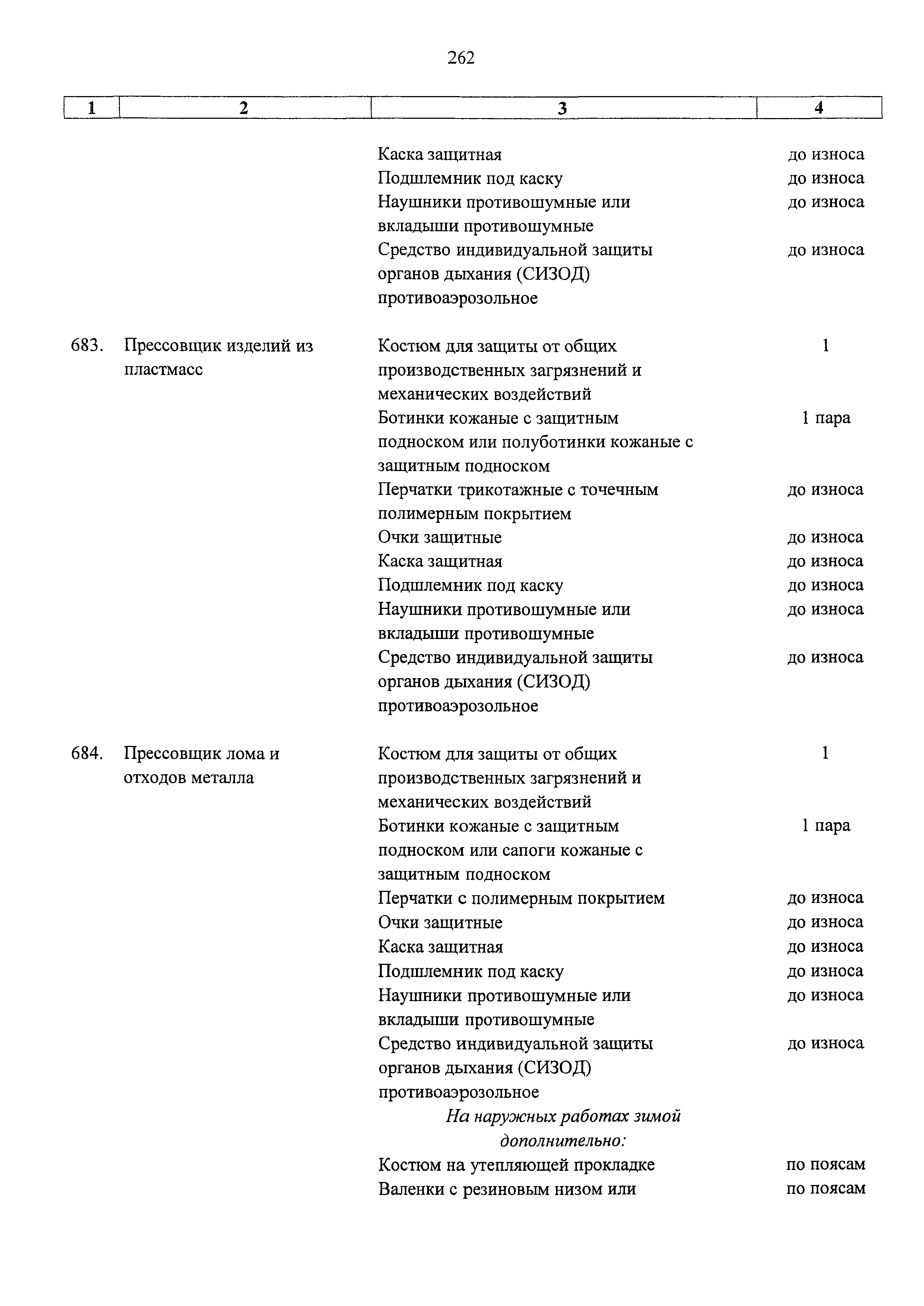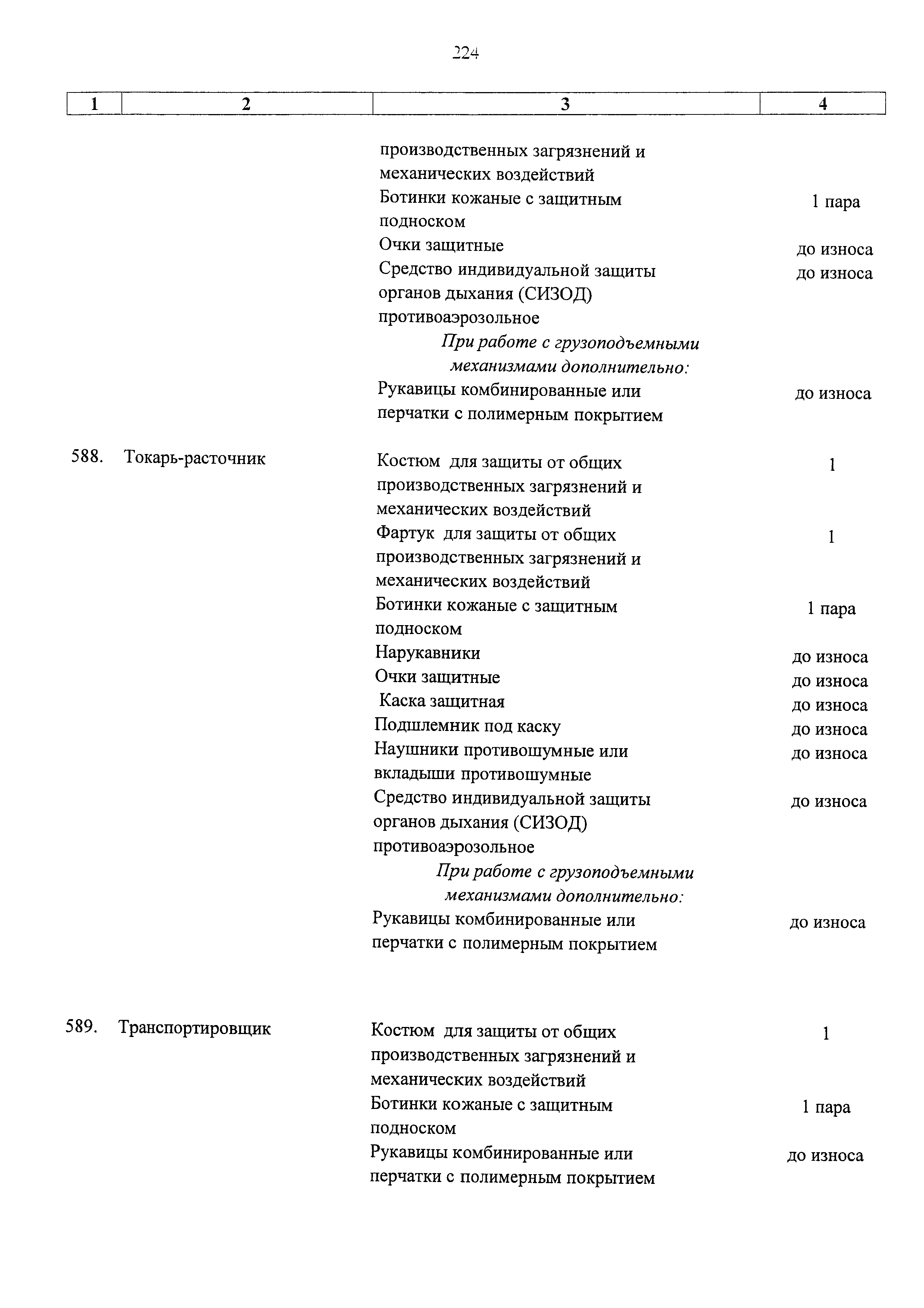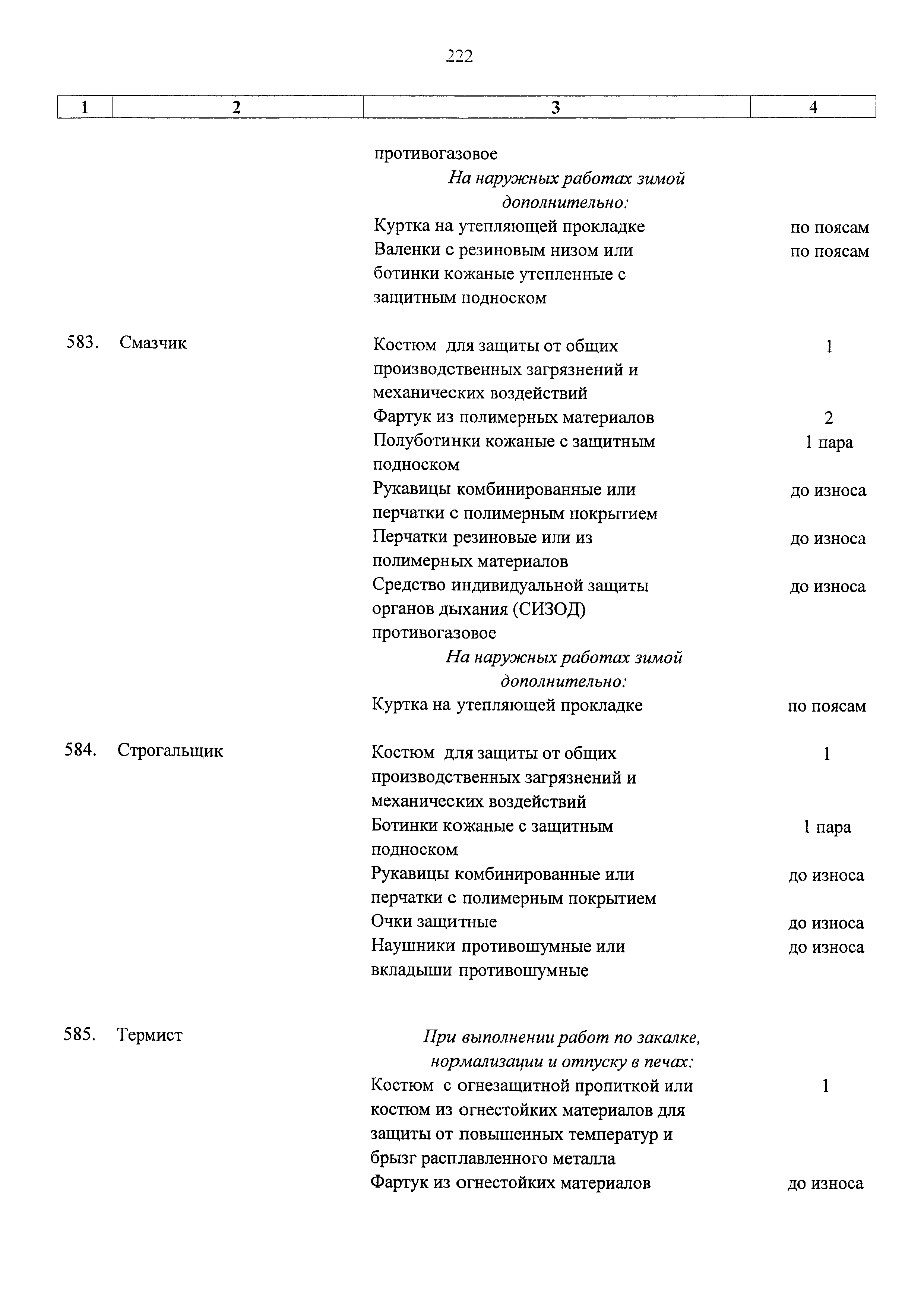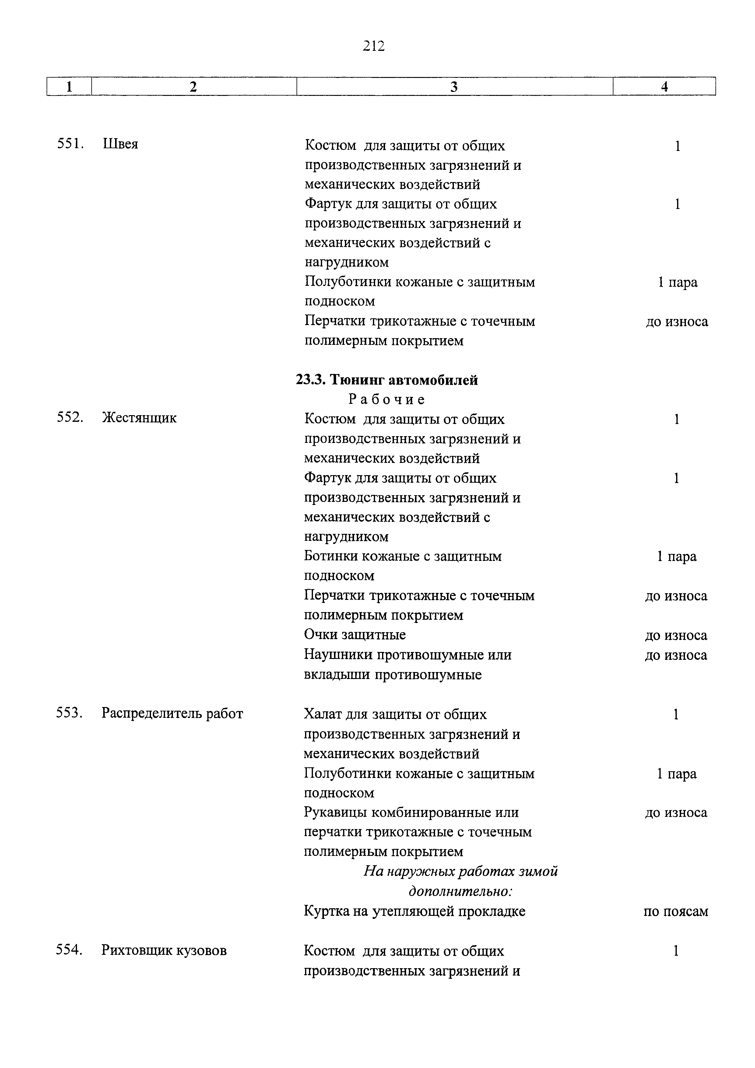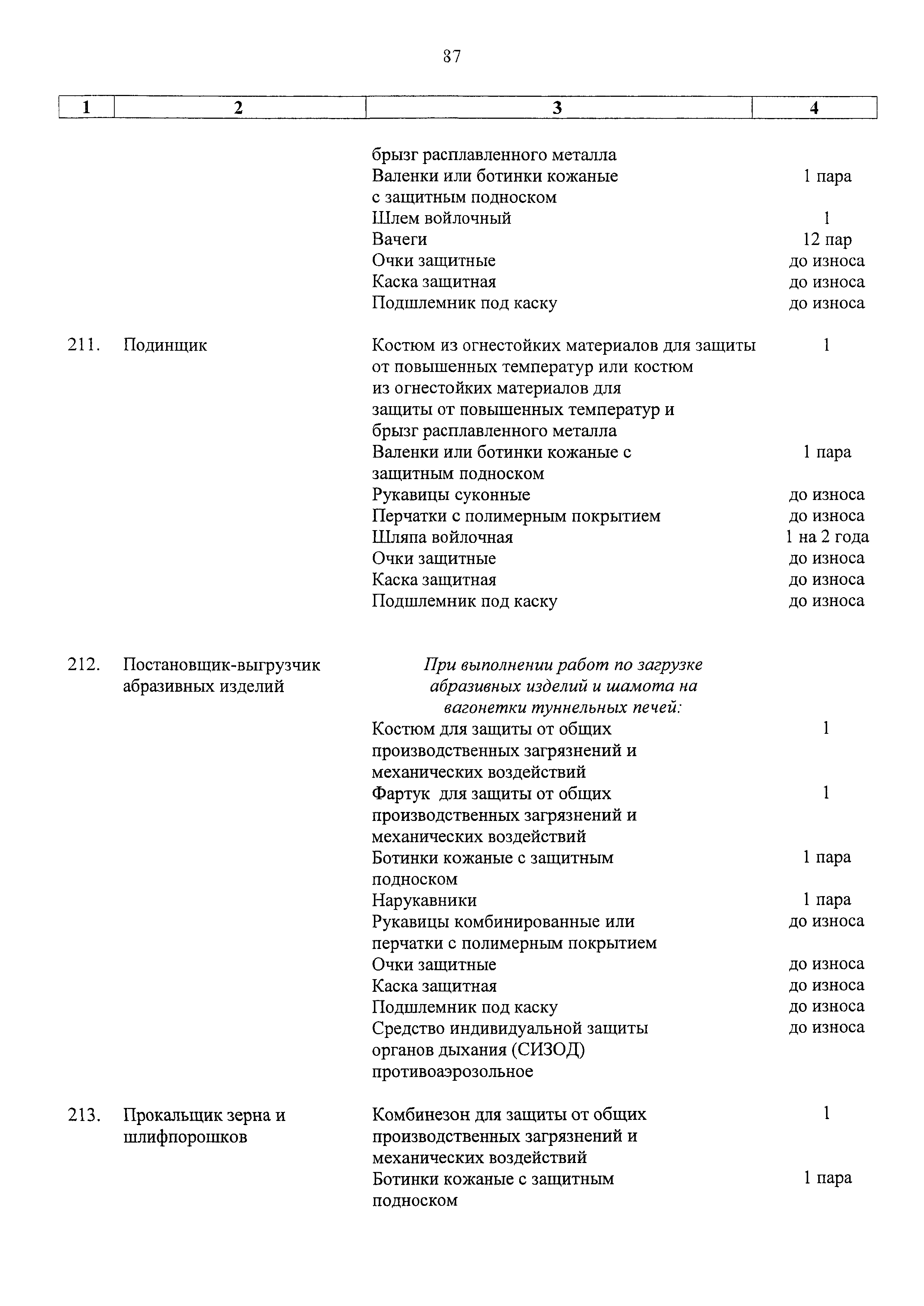Типовые нормы бесплатной выдачи специальной одежды, специальной обуви и других средств индивидуальной защиты работникам машиностроительных и металлообрабатывающих производств, занятым на работах с вредными и (или) опасными условиями труда, а также на работах, выполняемых в особых температурных условиях или связанных с загрязнением| Статус: | действует | | Название рус.: | Типовые нормы бесплатной выдачи специальной одежды, специальной обуви и других средств индивидуальной защиты работникам машиностроительных и металлообрабатывающих производств, занятым на работах с вредными и (или) опасными условиями труда, а также на работах, выполняемых в особых температурных условиях или связанных с загрязнением | | Дата добавления в базу: | 01.09.2013 | | Дата актуализации: | 01.01.2021 | | Оглавление: | 1. Чугунолитейное производство и литье цветных металлов 2. Производства порошковой металлургии 3. Производство электродов и флюсов 4. Кузнечно-прессовые и термические работы 5. Сварочные работы 6. Работы по металлопокрытиям и окраске 7. Механическая обработка металлов; слесарные и слесарно-сборочные работы 8. Производство подшипников 9. Кузовное производство 10. Работы по производству и восстановлению напильников 11. Абразивное производство 12. Производство сверхтвердых материалов и инструмента из них 13. Производство шлифовальной шкурки 14. Разборка, ремонт, сборка и испытание тягачей, автомобилей и тракторов 15. Испытание двигателей и силовых установок 16. Производство мягких баков 17. Производство мипоры 18. Котельные работы и работы по металлическим конструкциям 19. Производство грузовых автомобилей 19.1 Сварка и сборка кабин 19.2. Сварка и сборка цельнометаллических кузовов 19.3. Сборка узлов 19.4. Сборка грузовых автомобилей 19.5. Подсборка узлов и агрегатов 20. Производство легковых автомобилей 20.1. Сборка-сварка кузовов 20.2. Сборка легковых автомобилей 21. Производство автокомпонентов 22. Агрегатное производство 23. Производство спецтехники 23.1. Сборочные, сварочные, окрасочные работы 23.2. Сборка автомобилей и узлов 23.3. Тюнинг автомобилей 24. Инструментальное производство 25. Общие профессии машиностроительных и металлообрабатывающих производств Примечания к типовым нормам | | Утверждён: | 14.12.2010 Минздравсоцразвития России (1104н)