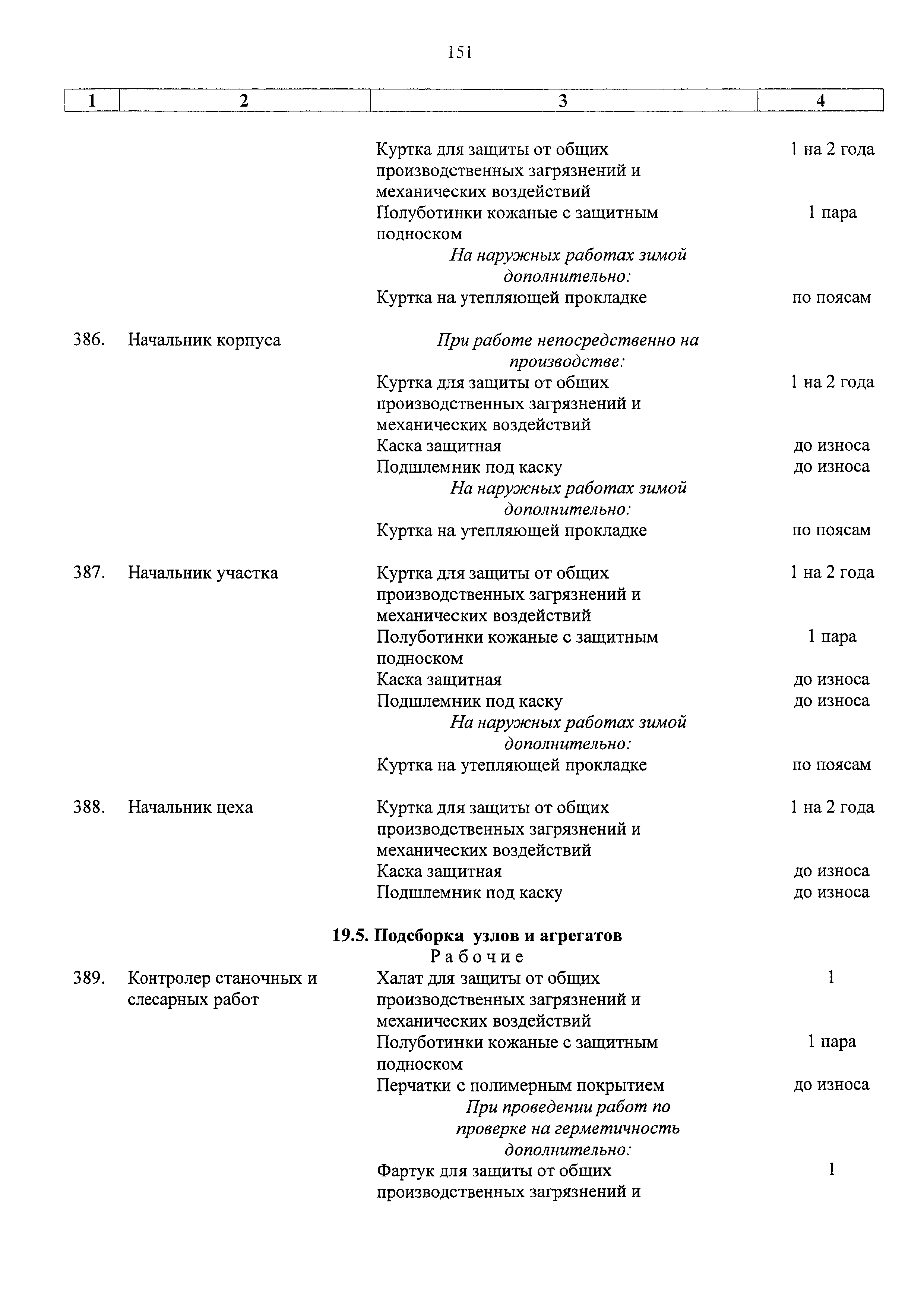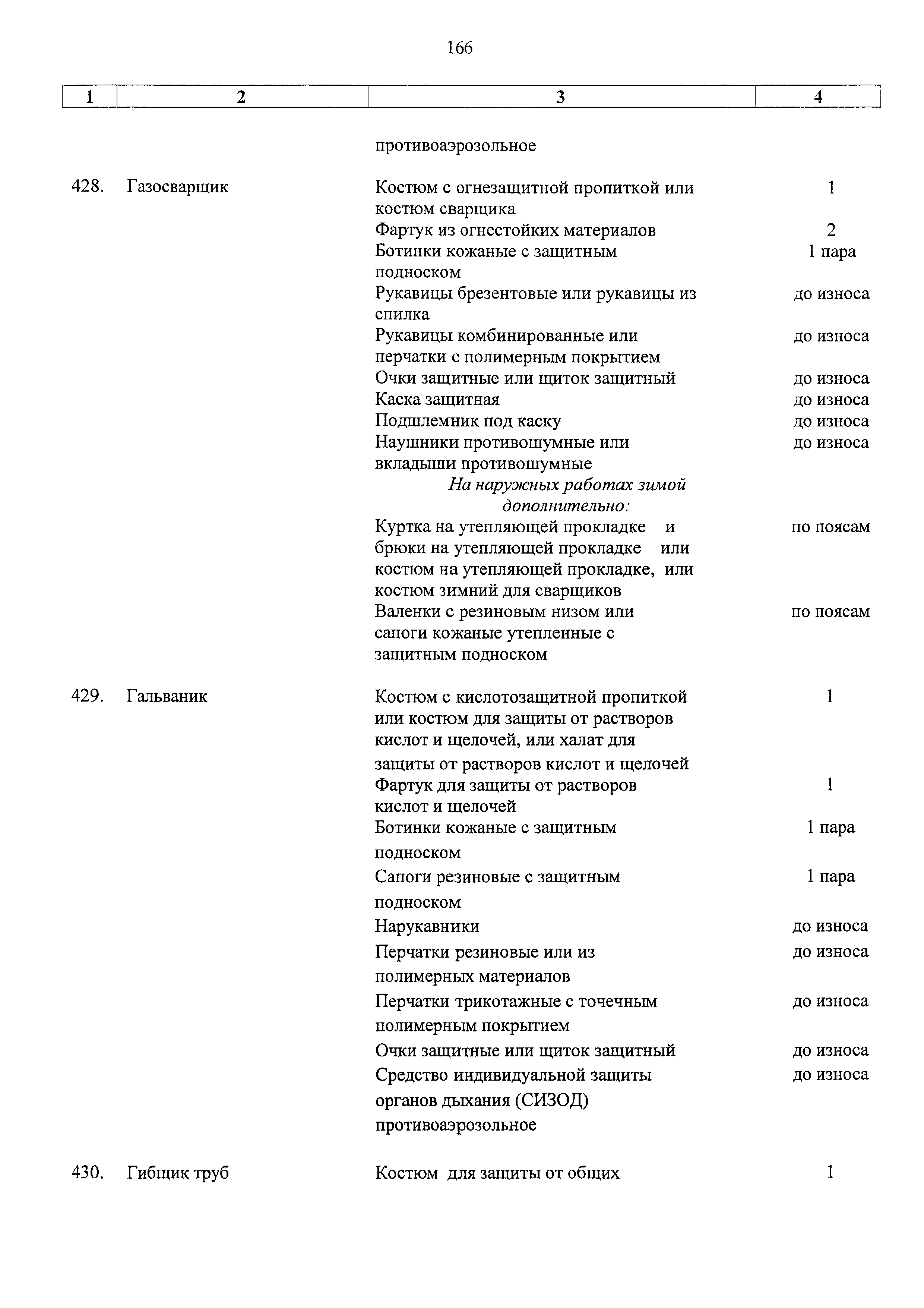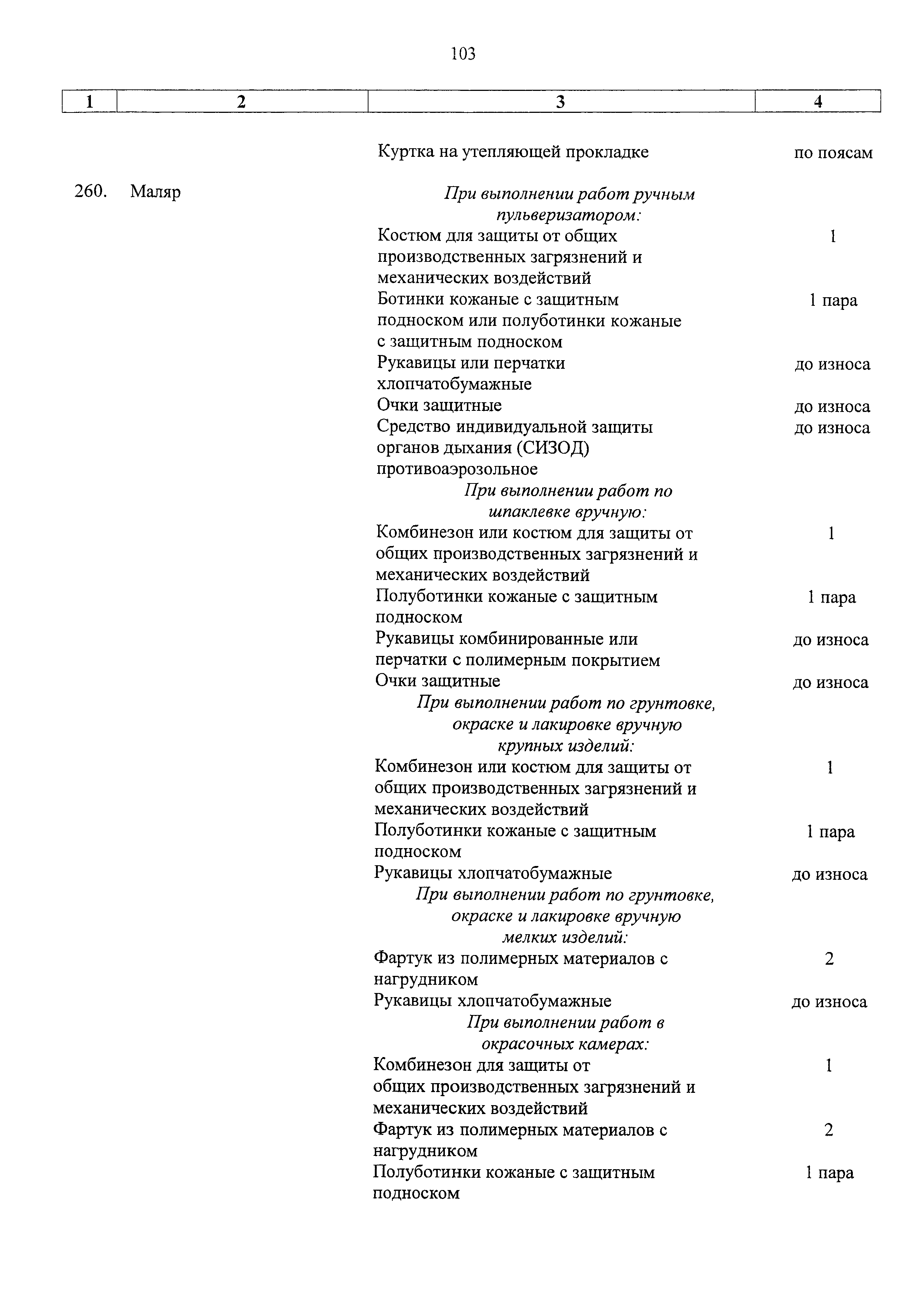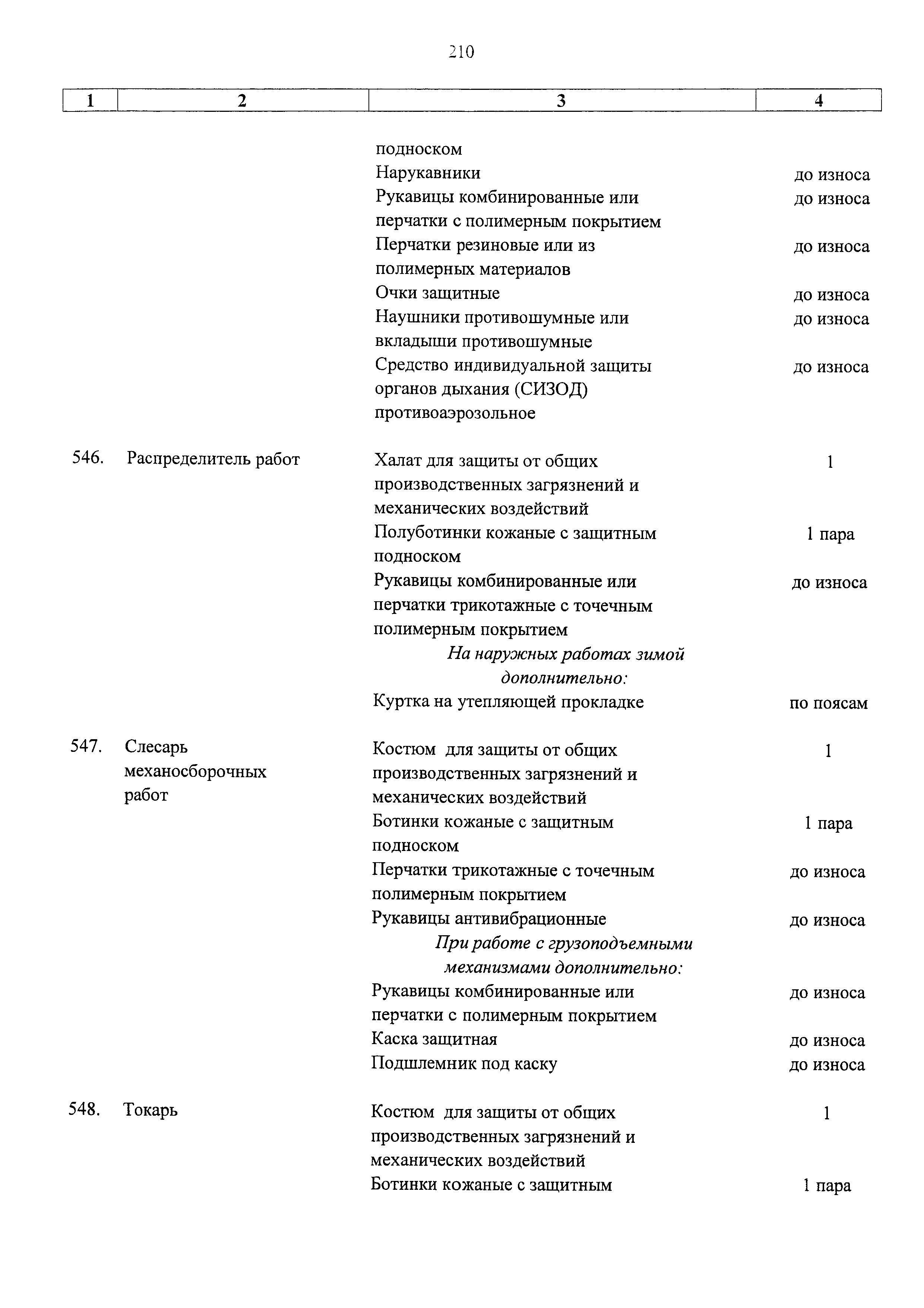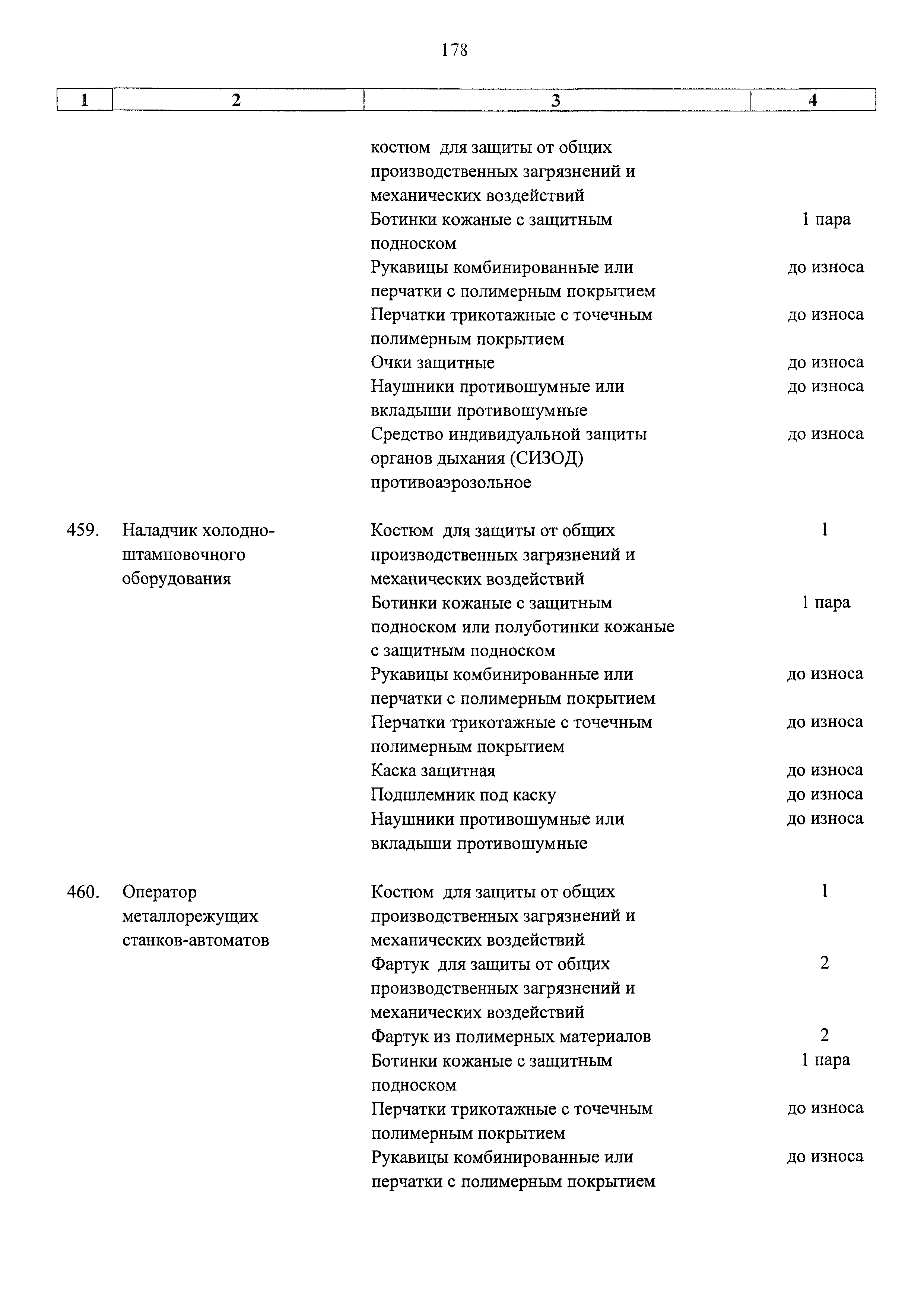 Типовые нормы бесплатной выдачи специальной одежды, специальной обуви и других средств индивидуальной защиты работникам машиностроительных и металлообрабатывающих производств, занятым на работах с вредными и (или) опасными условиями труда, а также на работах, выполняемых в особых температурных условиях или связанных с загрязнением| Статус: | действует | | Название рус.: | Типовые нормы бесплатной выдачи специальной одежды, специальной обуви и других средств индивидуальной защиты работникам машиностроительных и металлообрабатывающих производств, занятым на работах с вредными и (или) опасными условиями труда, а также на работах, выполняемых в особых температурных условиях или связанных с загрязнением | | Дата добавления в базу: | 01.09.2013 | | Дата актуализации: | 01.01.2021 | | Оглавление: | 1. Чугунолитейное производство и литье цветных металлов 2. Производства порошковой металлургии 3. Производство электродов и флюсов 4. Кузнечно-прессовые и термические работы 5. Сварочные работы 6. Работы по металлопокрытиям и окраске 7. Механическая обработка металлов; слесарные и слесарно-сборочные работы 8. Производство подшипников 9. Кузовное производство 10. Работы по производству и восстановлению напильников 11. Абразивное производство 12. Производство сверхтвердых материалов и инструмента из них 13. Производство шлифовальной шкурки 14. Разборка, ремонт, сборка и испытание тягачей, автомобилей и тракторов 15. Испытание двигателей и силовых установок 16. Производство мягких баков 17. Производство мипоры 18. Котельные работы и работы по металлическим конструкциям 19. Производство грузовых автомобилей 19.1 Сварка и сборка кабин 19.2. Сварка и сборка цельнометаллических кузовов 19.3. Сборка узлов 19.4. Сборка грузовых автомобилей 19.5. Подсборка узлов и агрегатов 20. Производство легковых автомобилей 20.1. Сборка-сварка кузовов 20.2. Сборка легковых автомобилей 21. Производство автокомпонентов 22. Агрегатное производство 23. Производство спецтехники 23.1. Сборочные, сварочные, окрасочные работы 23.2. Сборка автомобилей и узлов 23.3. Тюнинг автомобилей 24. Инструментальное производство 25. Общие профессии машиностроительных и металлообрабатывающих производств Примечания к типовым нормам | | Утверждён: | 14.12.2010 Минздравсоцразвития России (1104н)