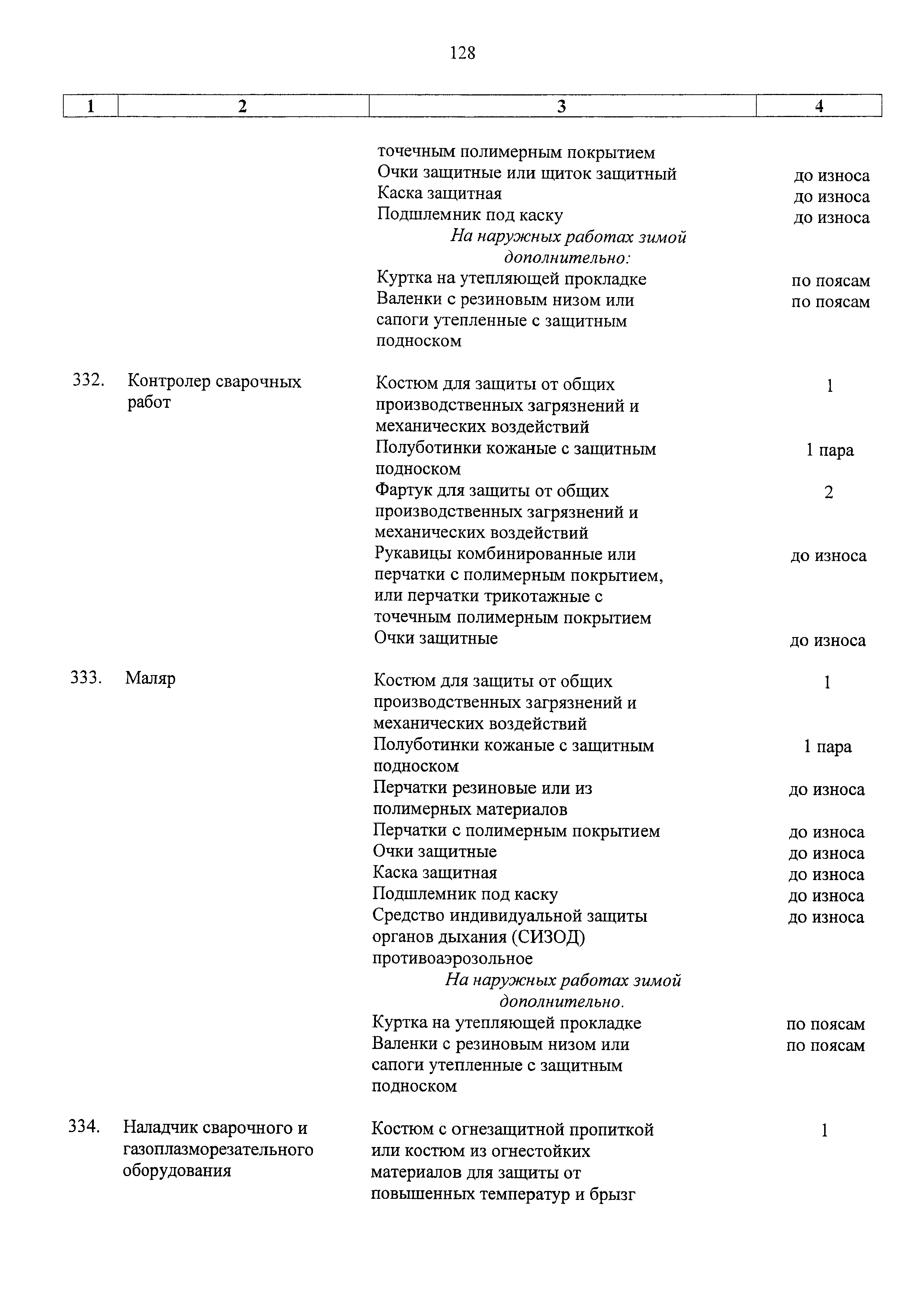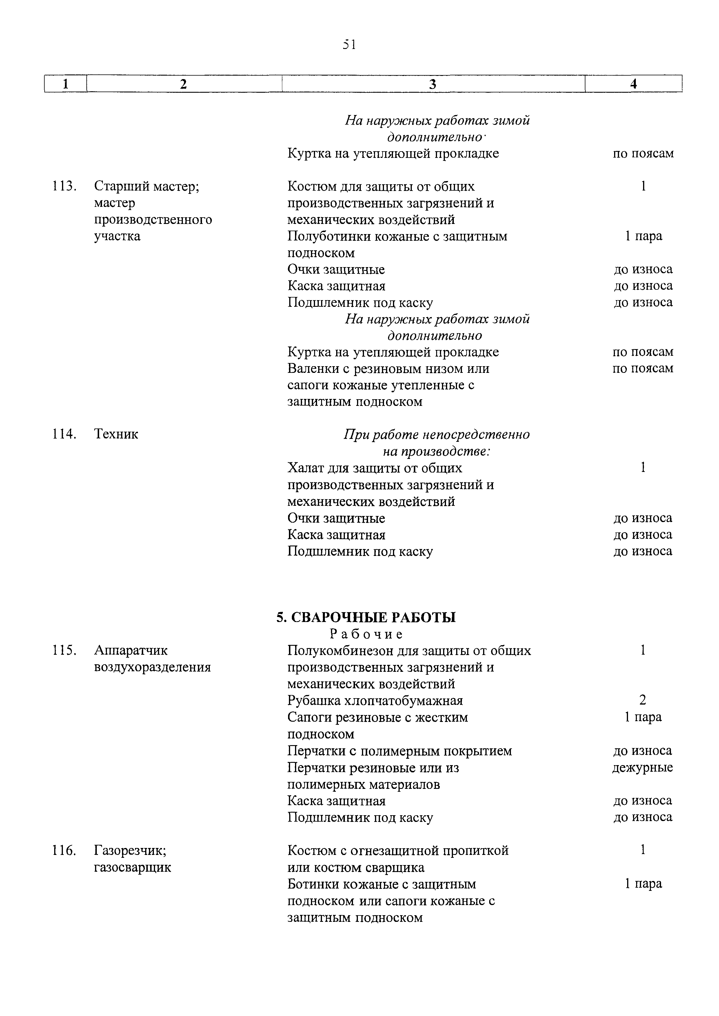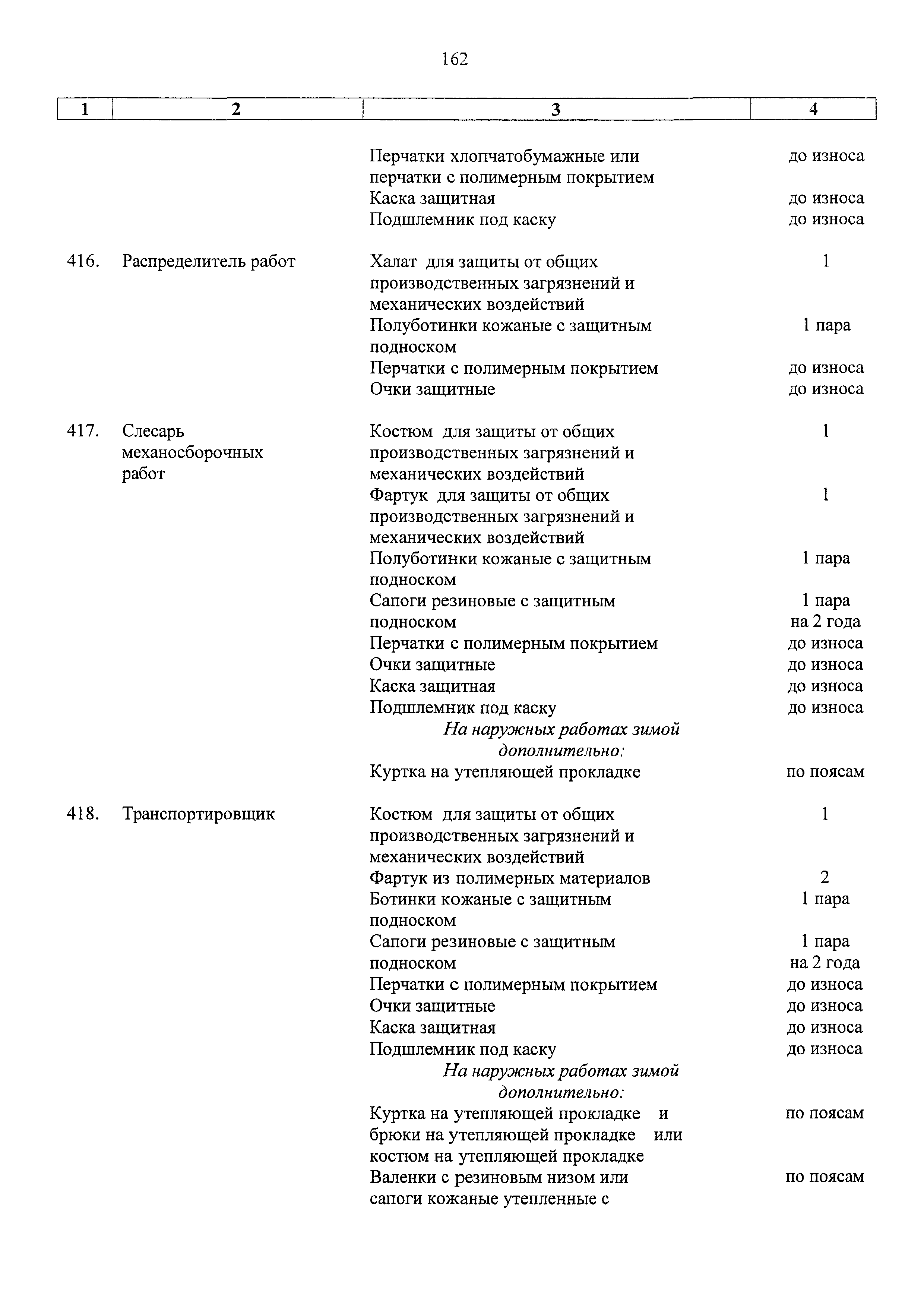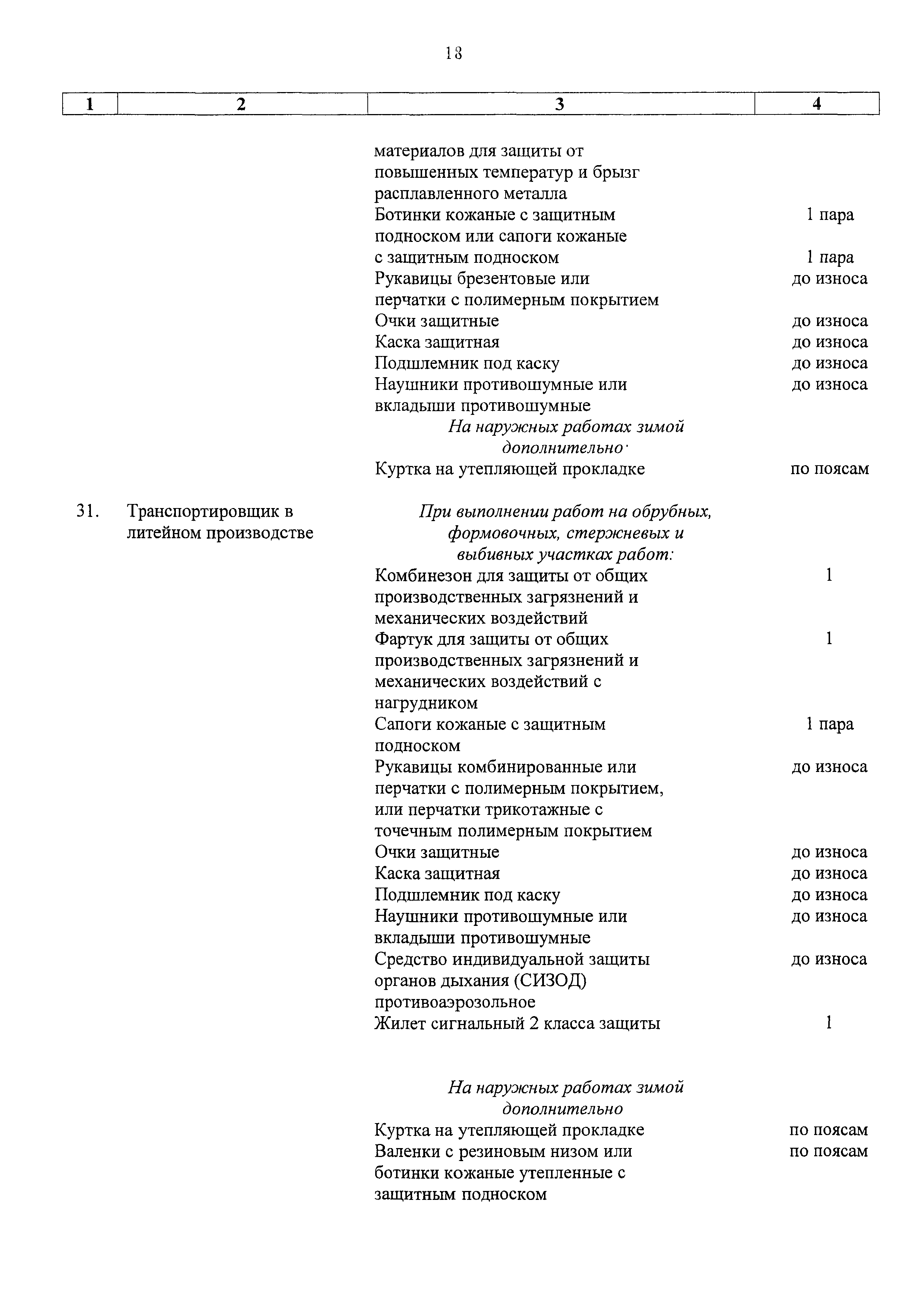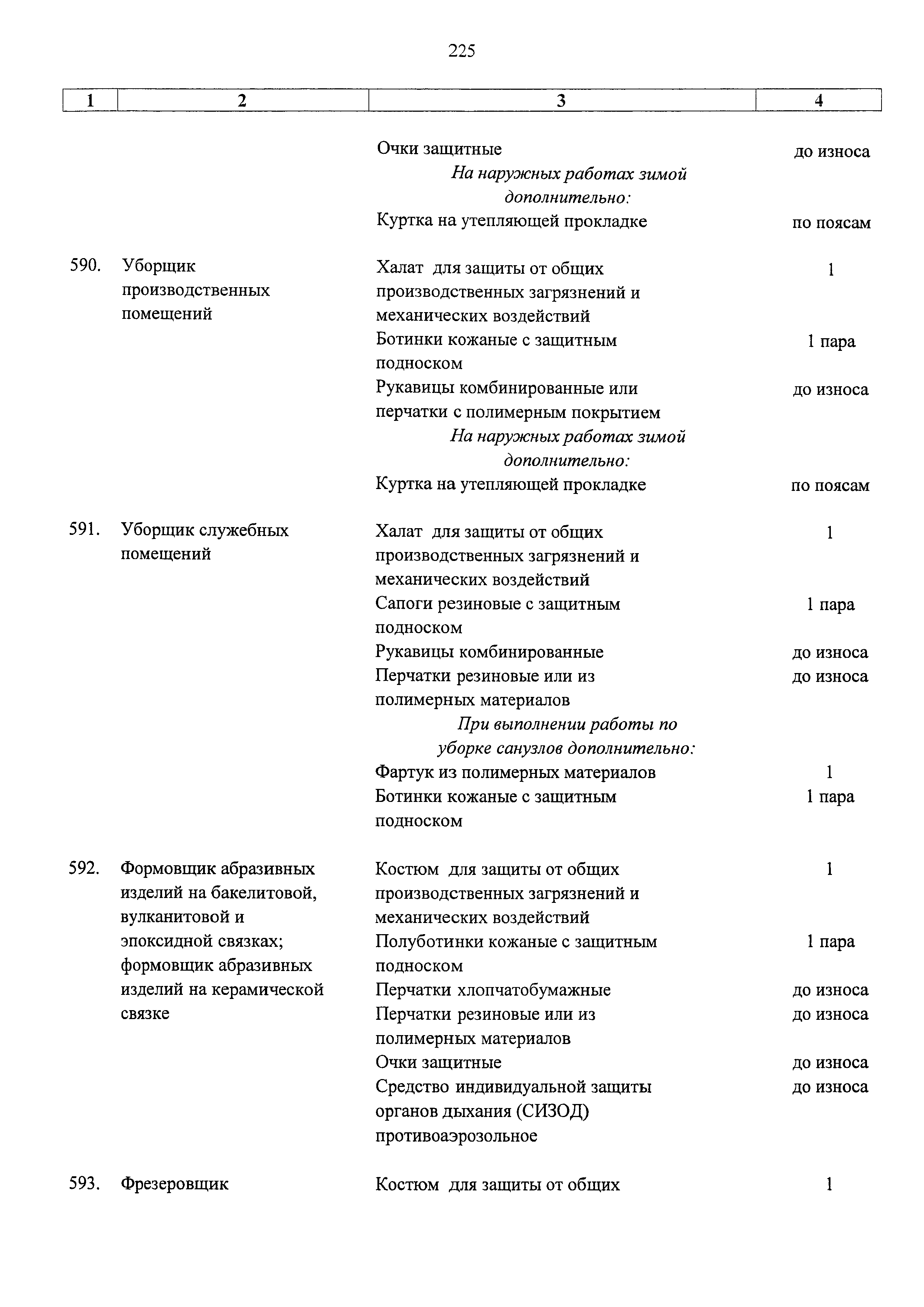Типовые нормы бесплатной выдачи специальной одежды, специальной обуви и других средств индивидуальной защиты работникам машиностроительных и металлообрабатывающих производств, занятым на работах с вредными и (или) опасными условиями труда, а также на работах, выполняемых в особых температурных условиях или связанных с загрязнением| Статус: | действует | | Название рус.: | Типовые нормы бесплатной выдачи специальной одежды, специальной обуви и других средств индивидуальной защиты работникам машиностроительных и металлообрабатывающих производств, занятым на работах с вредными и (или) опасными условиями труда, а также на работах, выполняемых в особых температурных условиях или связанных с загрязнением | | Дата добавления в базу: | 01.09.2013 | | Дата актуализации: | 01.01.2021 | | Оглавление: | 1. Чугунолитейное производство и литье цветных металлов 2. Производства порошковой металлургии 3. Производство электродов и флюсов 4. Кузнечно-прессовые и термические работы 5. Сварочные работы 6. Работы по металлопокрытиям и окраске 7. Механическая обработка металлов; слесарные и слесарно-сборочные работы 8. Производство подшипников 9. Кузовное производство 10. Работы по производству и восстановлению напильников 11. Абразивное производство 12. Производство сверхтвердых материалов и инструмента из них 13. Производство шлифовальной шкурки 14. Разборка, ремонт, сборка и испытание тягачей, автомобилей и тракторов 15. Испытание двигателей и силовых установок 16. Производство мягких баков 17. Производство мипоры 18. Котельные работы и работы по металлическим конструкциям 19. Производство грузовых автомобилей 19.1 Сварка и сборка кабин 19.2. Сварка и сборка цельнометаллических кузовов 19.3. Сборка узлов 19.4. Сборка грузовых автомобилей 19.5. Подсборка узлов и агрегатов 20. Производство легковых автомобилей 20.1. Сборка-сварка кузовов 20.2. Сборка легковых автомобилей 21. Производство автокомпонентов 22. Агрегатное производство 23. Производство спецтехники 23.1. Сборочные, сварочные, окрасочные работы 23.2. Сборка автомобилей и узлов 23.3. Тюнинг автомобилей 24. Инструментальное производство 25. Общие профессии машиностроительных и металлообрабатывающих производств Примечания к типовым нормам | | Утверждён: | 14.12.2010 Минздравсоцразвития России (1104н)