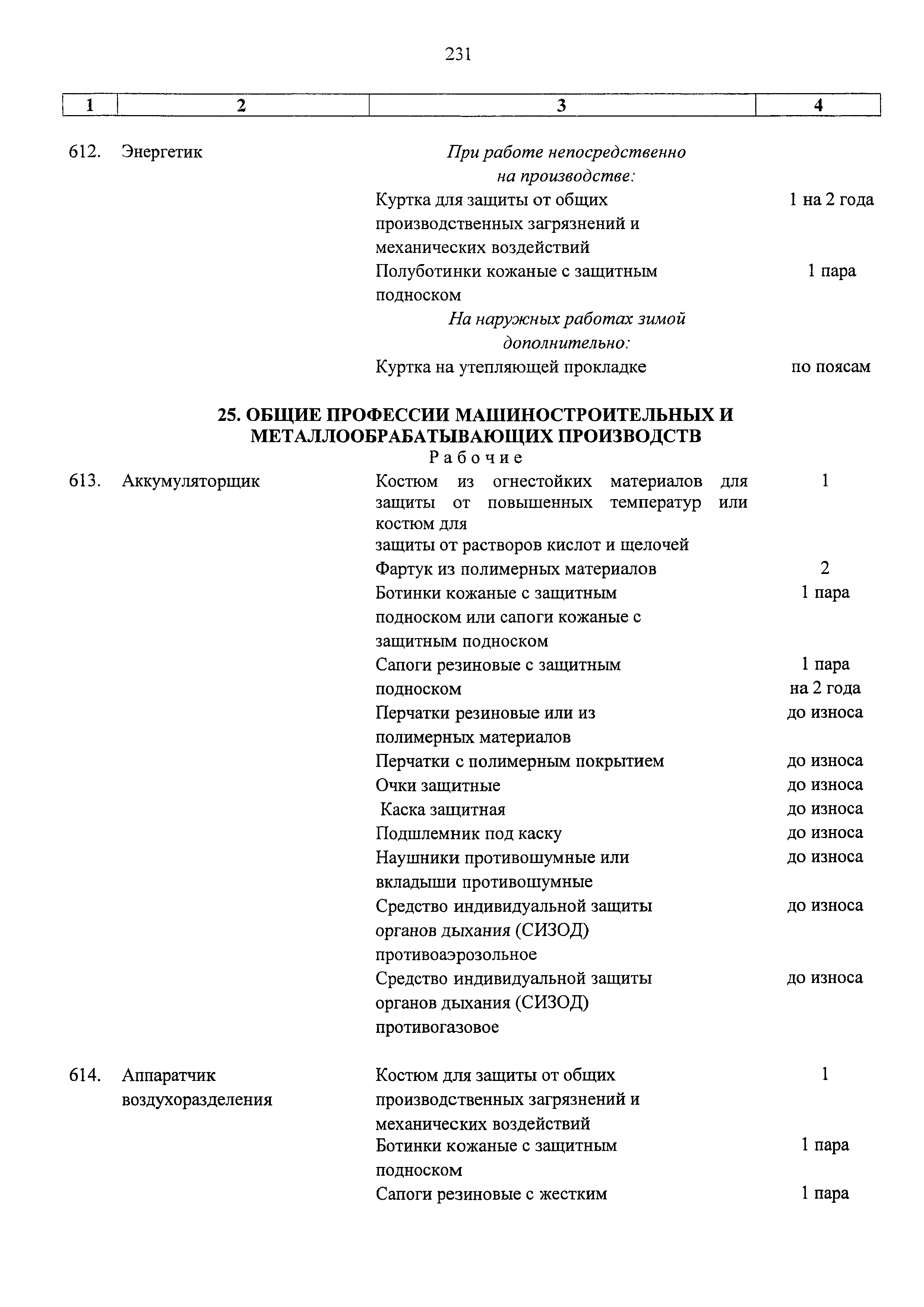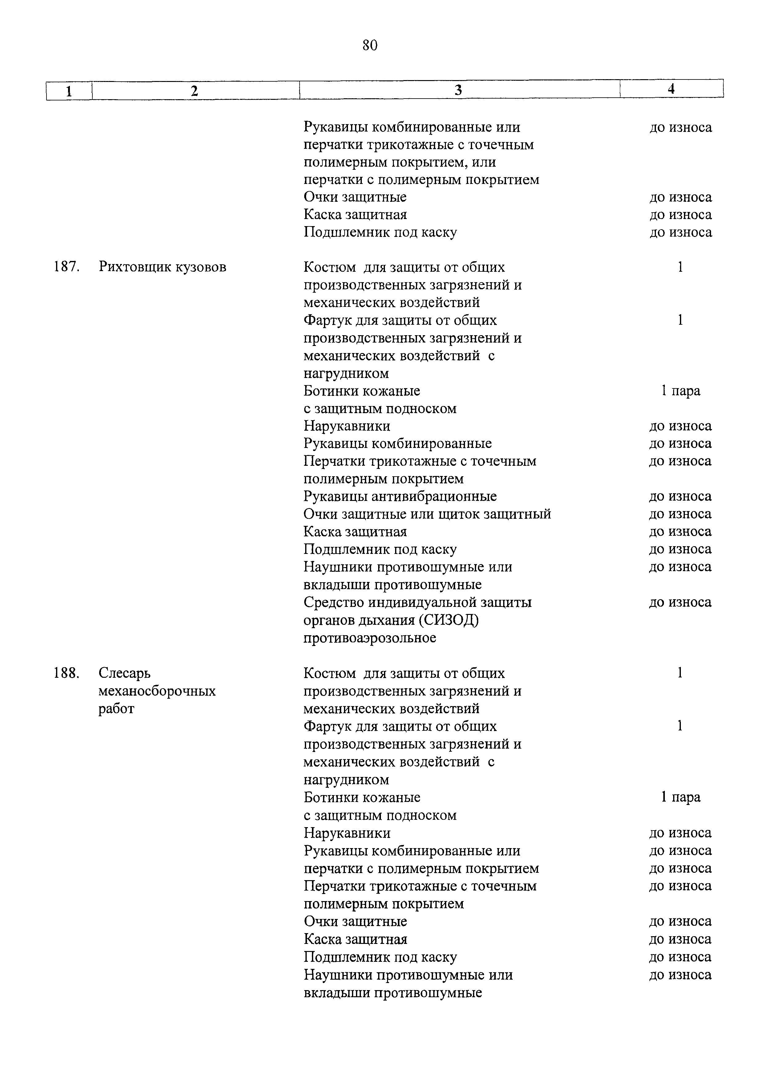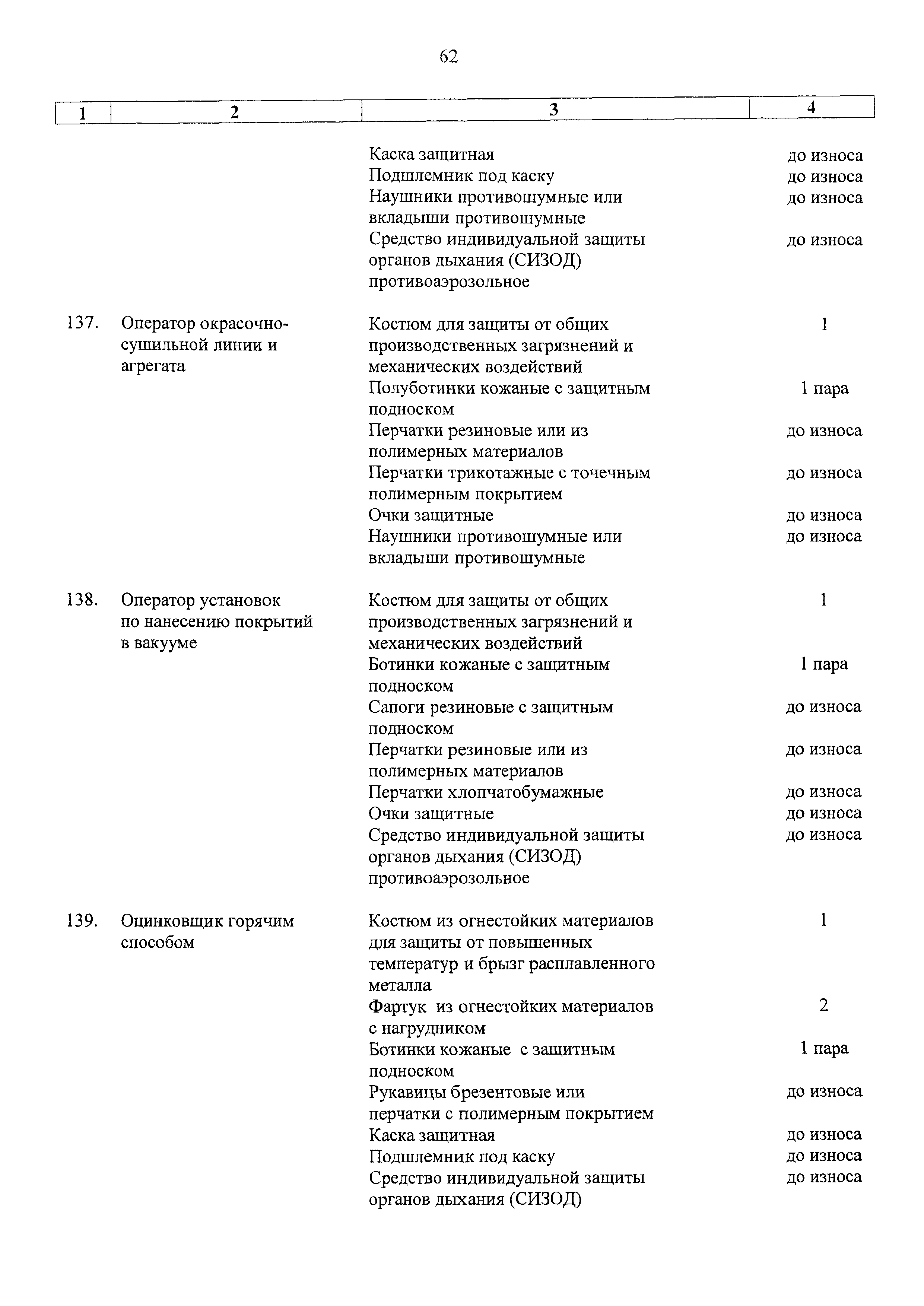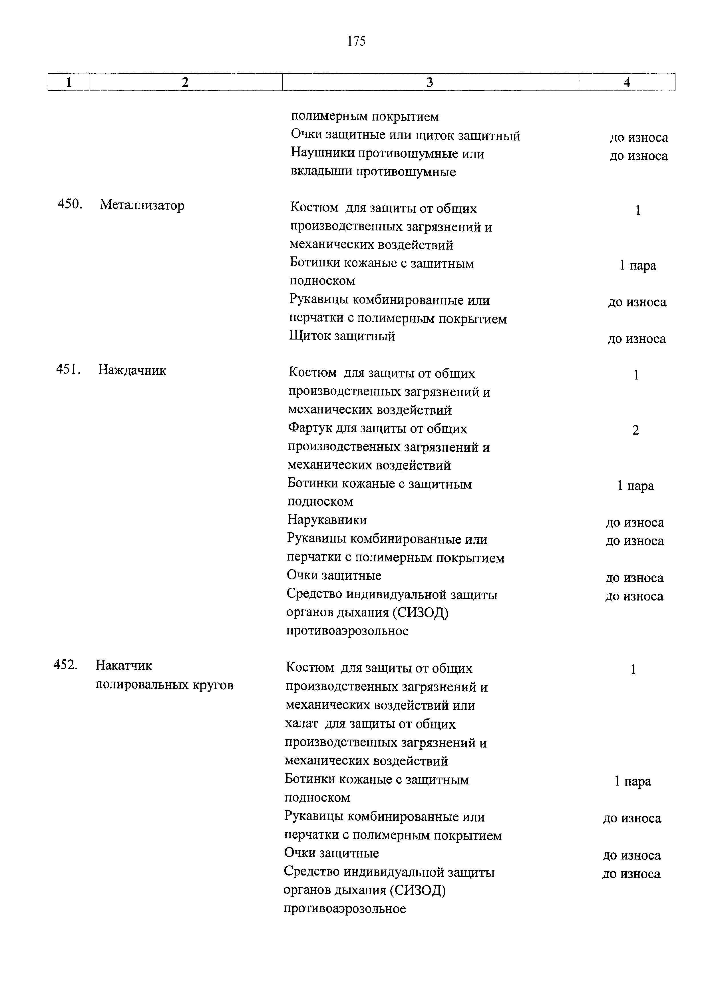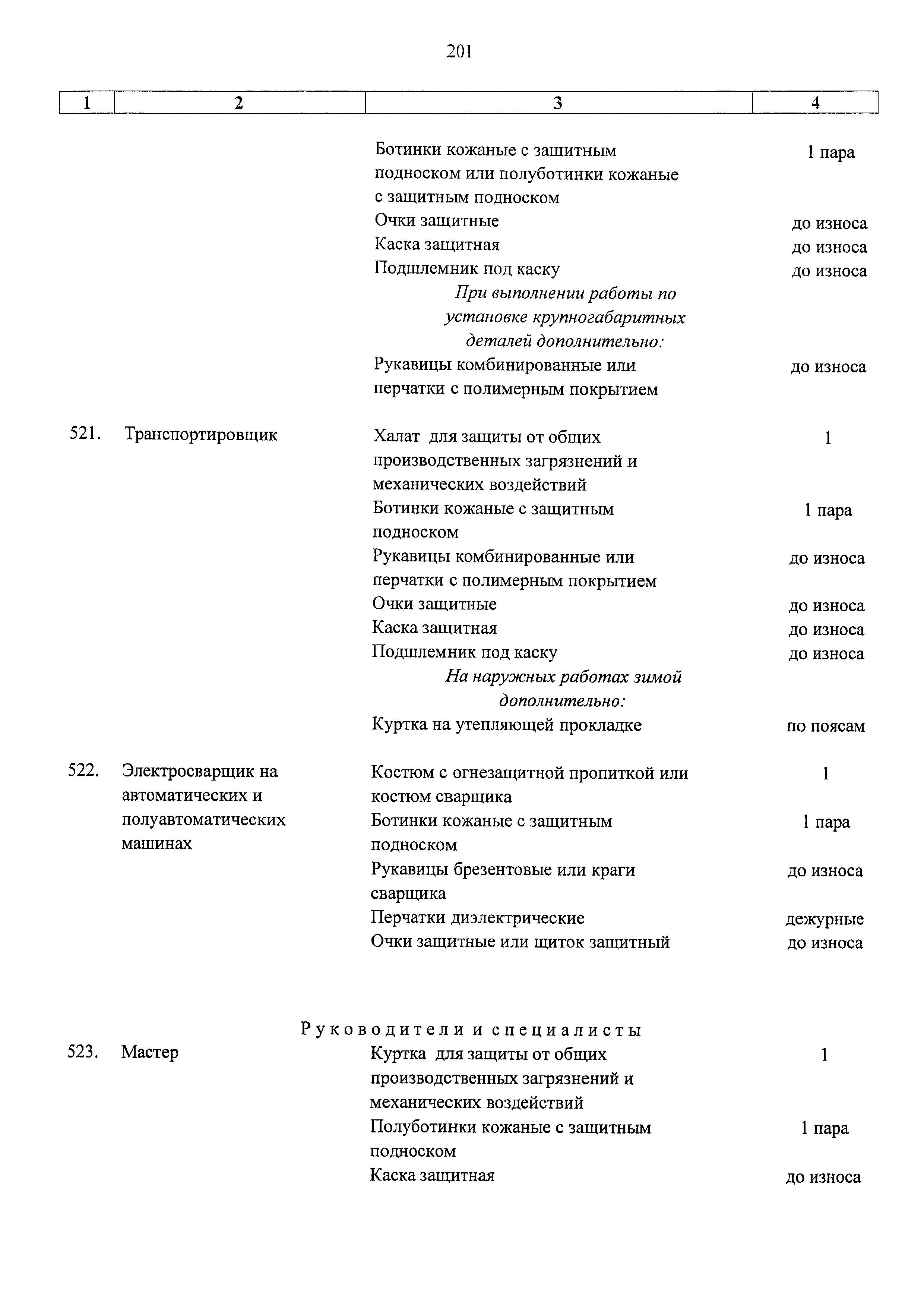 Типовые нормы бесплатной выдачи специальной одежды, специальной обуви и других средств индивидуальной защиты работникам машиностроительных и металлообрабатывающих производств, занятым на работах с вредными и (или) опасными условиями труда, а также на работах, выполняемых в особых температурных условиях или связанных с загрязнением| Статус: | действует | | Название рус.: | Типовые нормы бесплатной выдачи специальной одежды, специальной обуви и других средств индивидуальной защиты работникам машиностроительных и металлообрабатывающих производств, занятым на работах с вредными и (или) опасными условиями труда, а также на работах, выполняемых в особых температурных условиях или связанных с загрязнением | | Дата добавления в базу: | 01.09.2013 | | Дата актуализации: | 01.01.2021 | | Оглавление: | 1. Чугунолитейное производство и литье цветных металлов 2. Производства порошковой металлургии 3. Производство электродов и флюсов 4. Кузнечно-прессовые и термические работы 5. Сварочные работы 6. Работы по металлопокрытиям и окраске 7. Механическая обработка металлов; слесарные и слесарно-сборочные работы 8. Производство подшипников 9. Кузовное производство 10. Работы по производству и восстановлению напильников 11. Абразивное производство 12. Производство сверхтвердых материалов и инструмента из них 13. Производство шлифовальной шкурки 14. Разборка, ремонт, сборка и испытание тягачей, автомобилей и тракторов 15. Испытание двигателей и силовых установок 16. Производство мягких баков 17. Производство мипоры 18. Котельные работы и работы по металлическим конструкциям 19. Производство грузовых автомобилей 19.1 Сварка и сборка кабин 19.2. Сварка и сборка цельнометаллических кузовов 19.3. Сборка узлов 19.4. Сборка грузовых автомобилей 19.5. Подсборка узлов и агрегатов 20. Производство легковых автомобилей 20.1. Сборка-сварка кузовов 20.2. Сборка легковых автомобилей 21. Производство автокомпонентов 22. Агрегатное производство 23. Производство спецтехники 23.1. Сборочные, сварочные, окрасочные работы 23.2. Сборка автомобилей и узлов 23.3. Тюнинг автомобилей 24. Инструментальное производство 25. Общие профессии машиностроительных и металлообрабатывающих производств Примечания к типовым нормам | | Утверждён: | 14.12.2010 Минздравсоцразвития России (1104н)