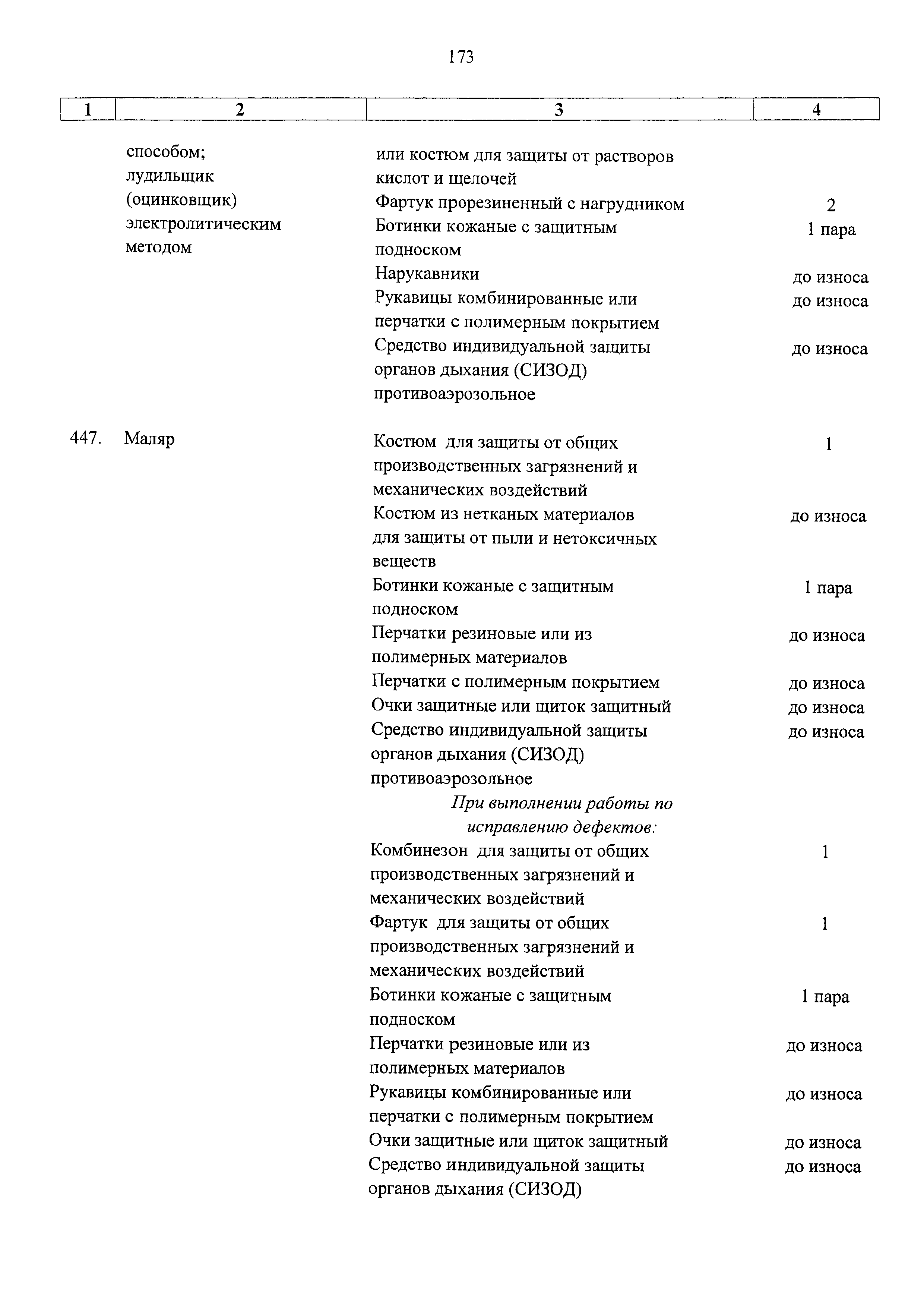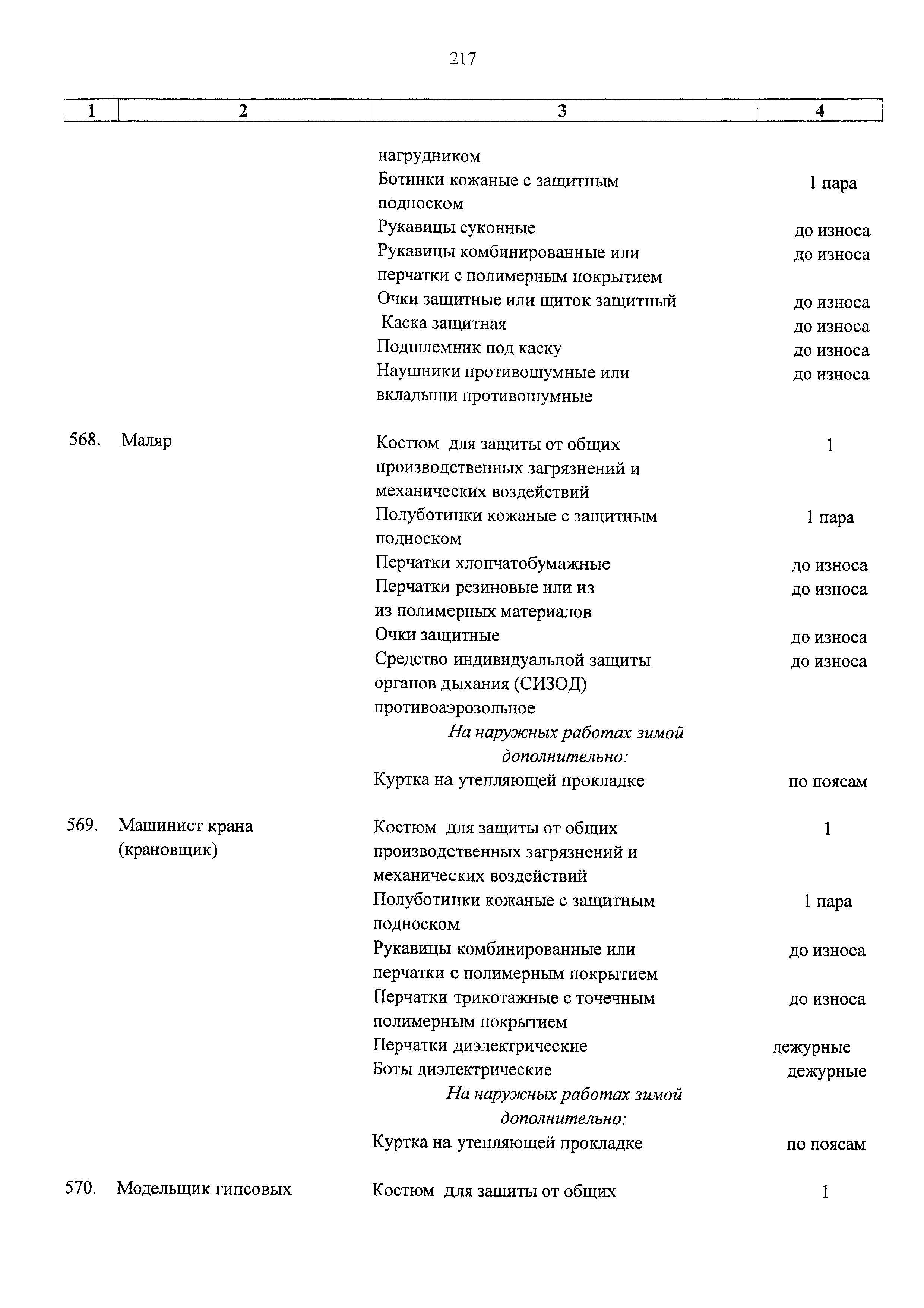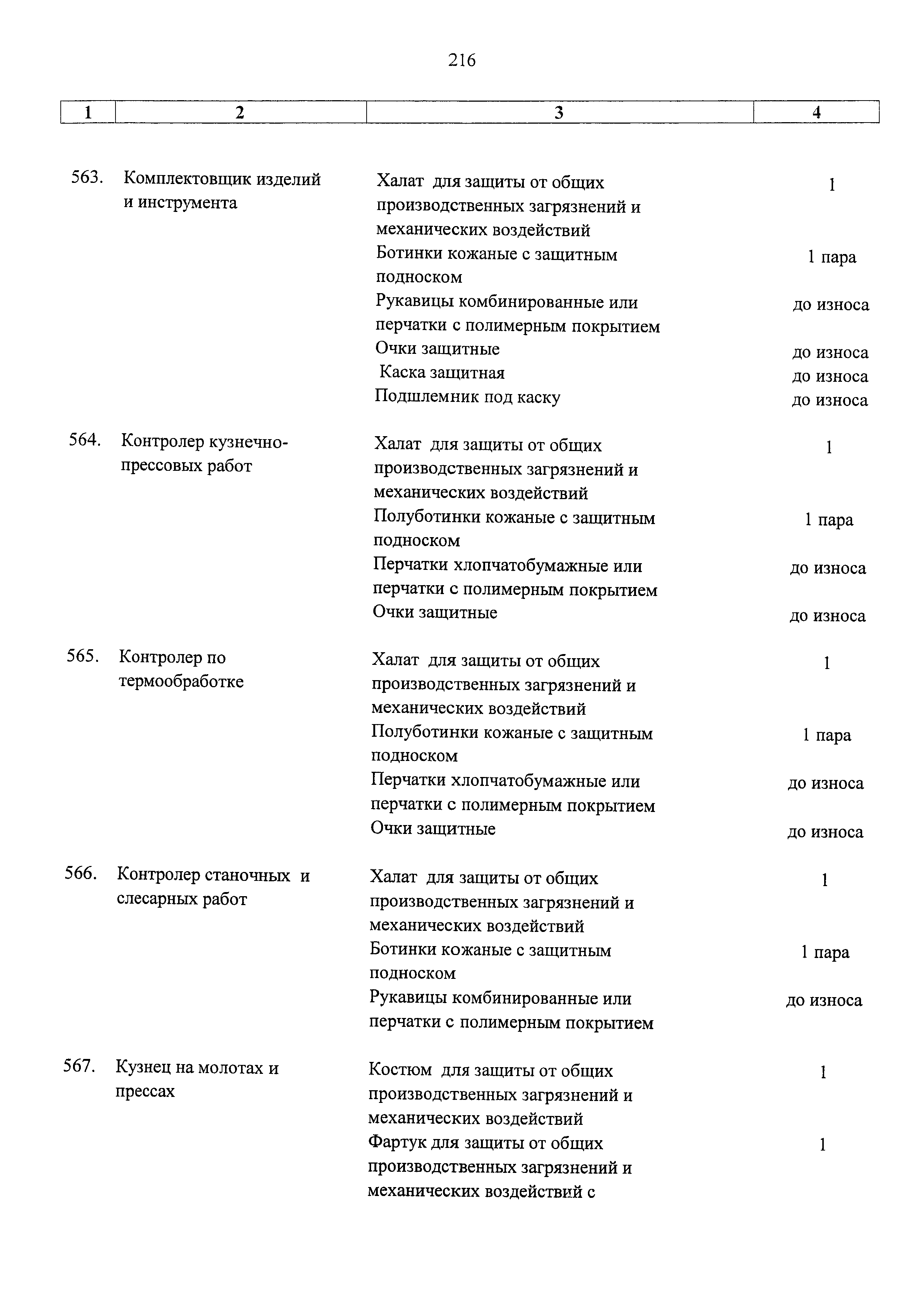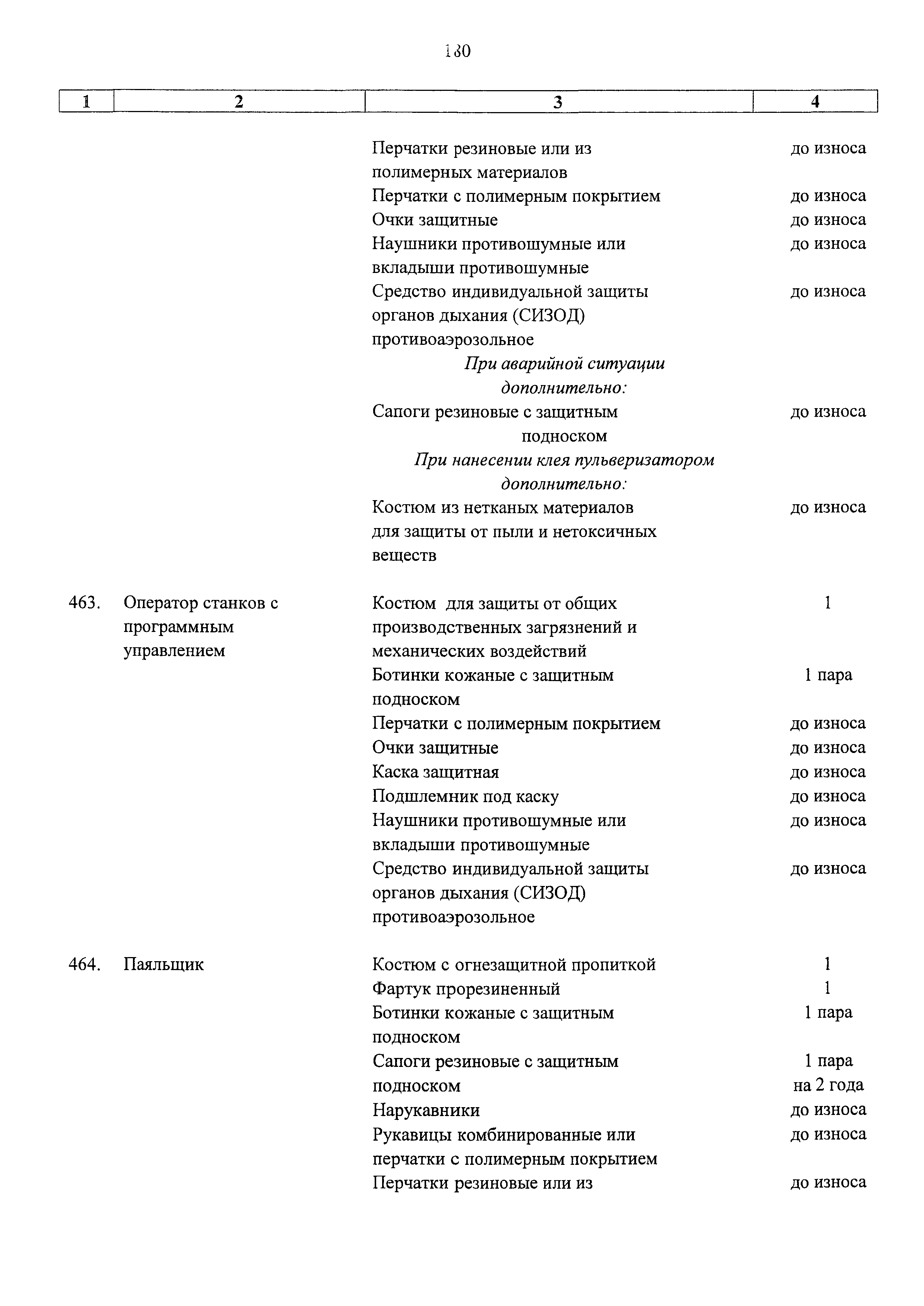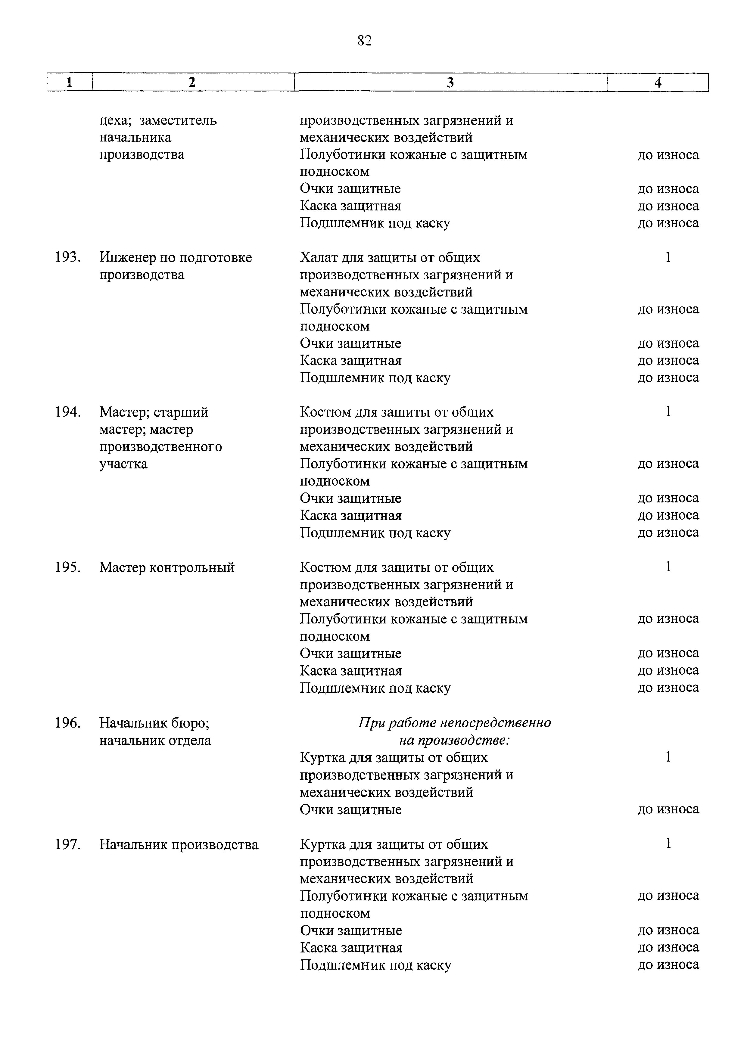 Типовые нормы бесплатной выдачи специальной одежды, специальной обуви и других средств индивидуальной защиты работникам машиностроительных и металлообрабатывающих производств, занятым на работах с вредными и (или) опасными условиями труда, а также на работах, выполняемых в особых температурных условиях или связанных с загрязнением| Статус: | действует | | Название рус.: | Типовые нормы бесплатной выдачи специальной одежды, специальной обуви и других средств индивидуальной защиты работникам машиностроительных и металлообрабатывающих производств, занятым на работах с вредными и (или) опасными условиями труда, а также на работах, выполняемых в особых температурных условиях или связанных с загрязнением | | Дата добавления в базу: | 01.09.2013 | | Дата актуализации: | 01.01.2021 | | Оглавление: | 1. Чугунолитейное производство и литье цветных металлов 2. Производства порошковой металлургии 3. Производство электродов и флюсов 4. Кузнечно-прессовые и термические работы 5. Сварочные работы 6. Работы по металлопокрытиям и окраске 7. Механическая обработка металлов; слесарные и слесарно-сборочные работы 8. Производство подшипников 9. Кузовное производство 10. Работы по производству и восстановлению напильников 11. Абразивное производство 12. Производство сверхтвердых материалов и инструмента из них 13. Производство шлифовальной шкурки 14. Разборка, ремонт, сборка и испытание тягачей, автомобилей и тракторов 15. Испытание двигателей и силовых установок 16. Производство мягких баков 17. Производство мипоры 18. Котельные работы и работы по металлическим конструкциям 19. Производство грузовых автомобилей 19.1 Сварка и сборка кабин 19.2. Сварка и сборка цельнометаллических кузовов 19.3. Сборка узлов 19.4. Сборка грузовых автомобилей 19.5. Подсборка узлов и агрегатов 20. Производство легковых автомобилей 20.1. Сборка-сварка кузовов 20.2. Сборка легковых автомобилей 21. Производство автокомпонентов 22. Агрегатное производство 23. Производство спецтехники 23.1. Сборочные, сварочные, окрасочные работы 23.2. Сборка автомобилей и узлов 23.3. Тюнинг автомобилей 24. Инструментальное производство 25. Общие профессии машиностроительных и металлообрабатывающих производств Примечания к типовым нормам | | Утверждён: | 14.12.2010 Минздравсоцразвития России (1104н)