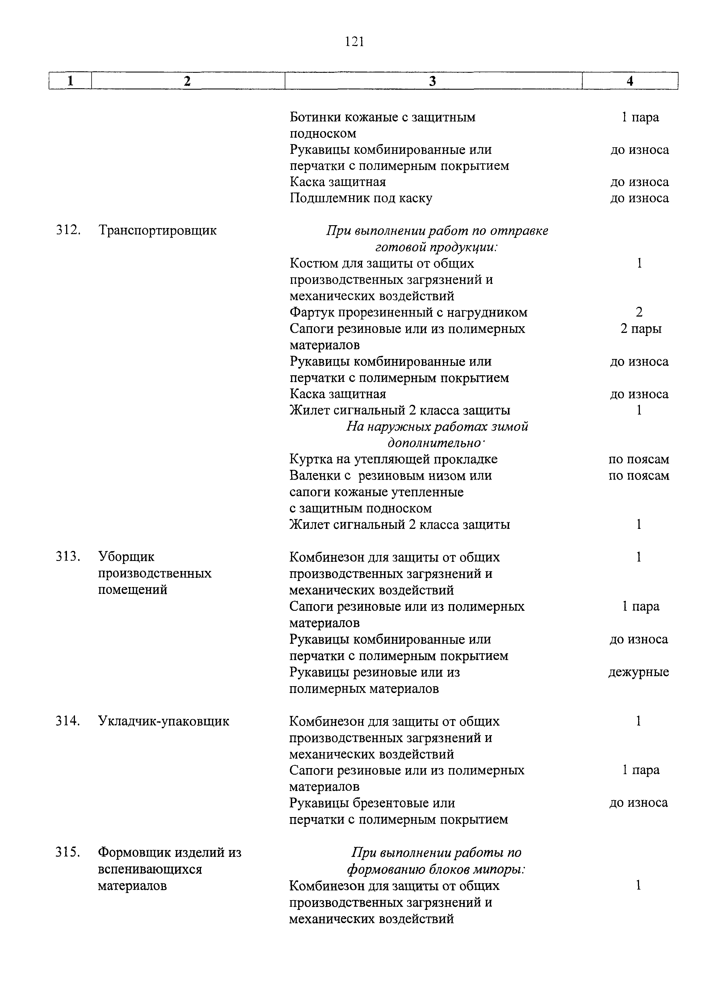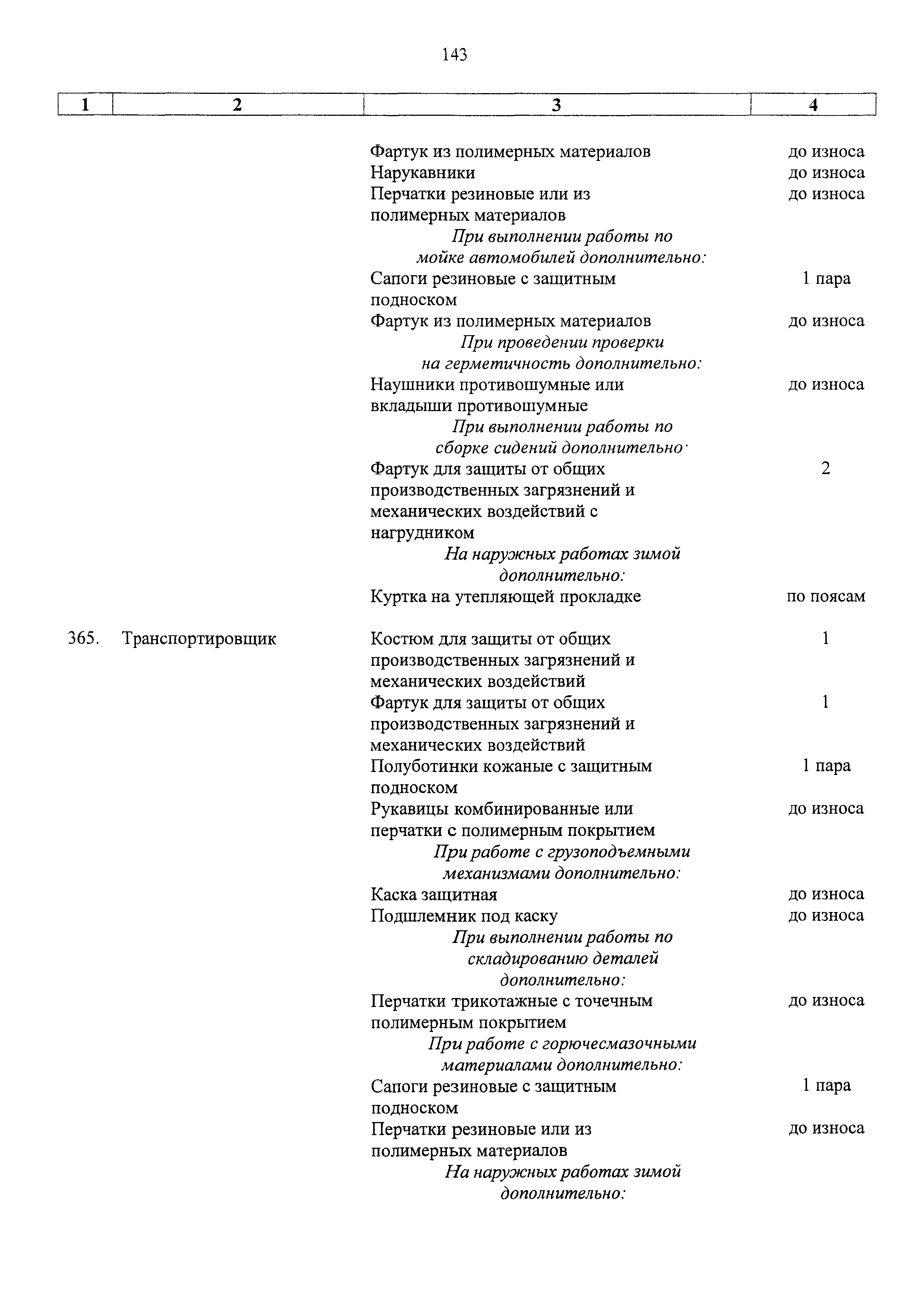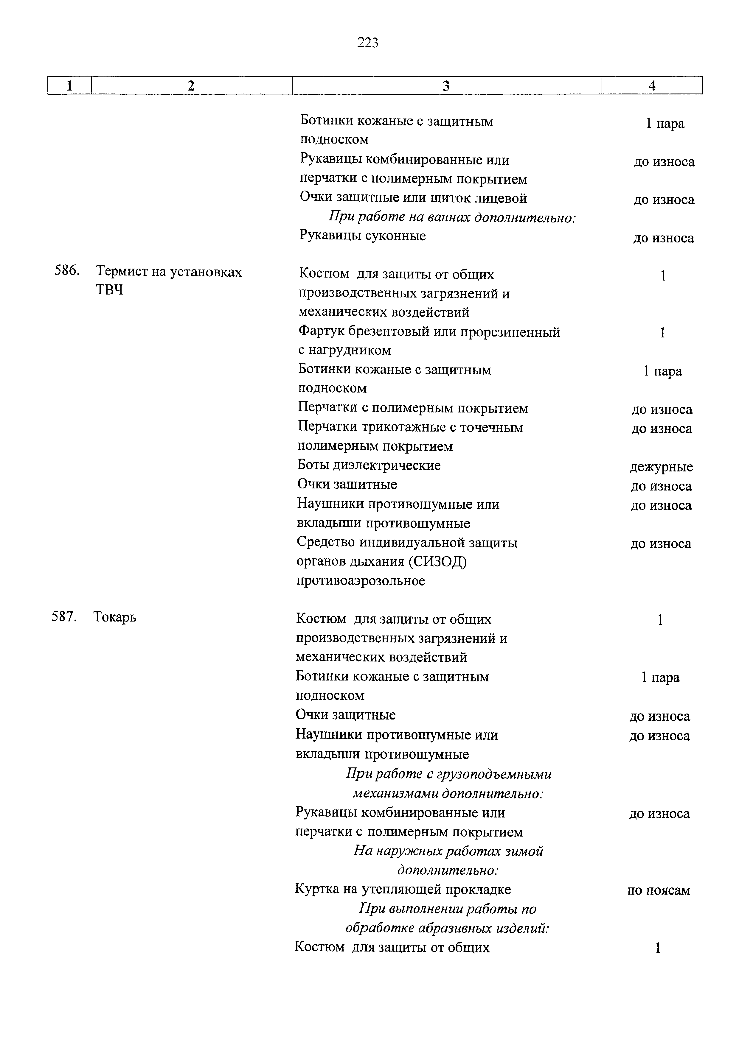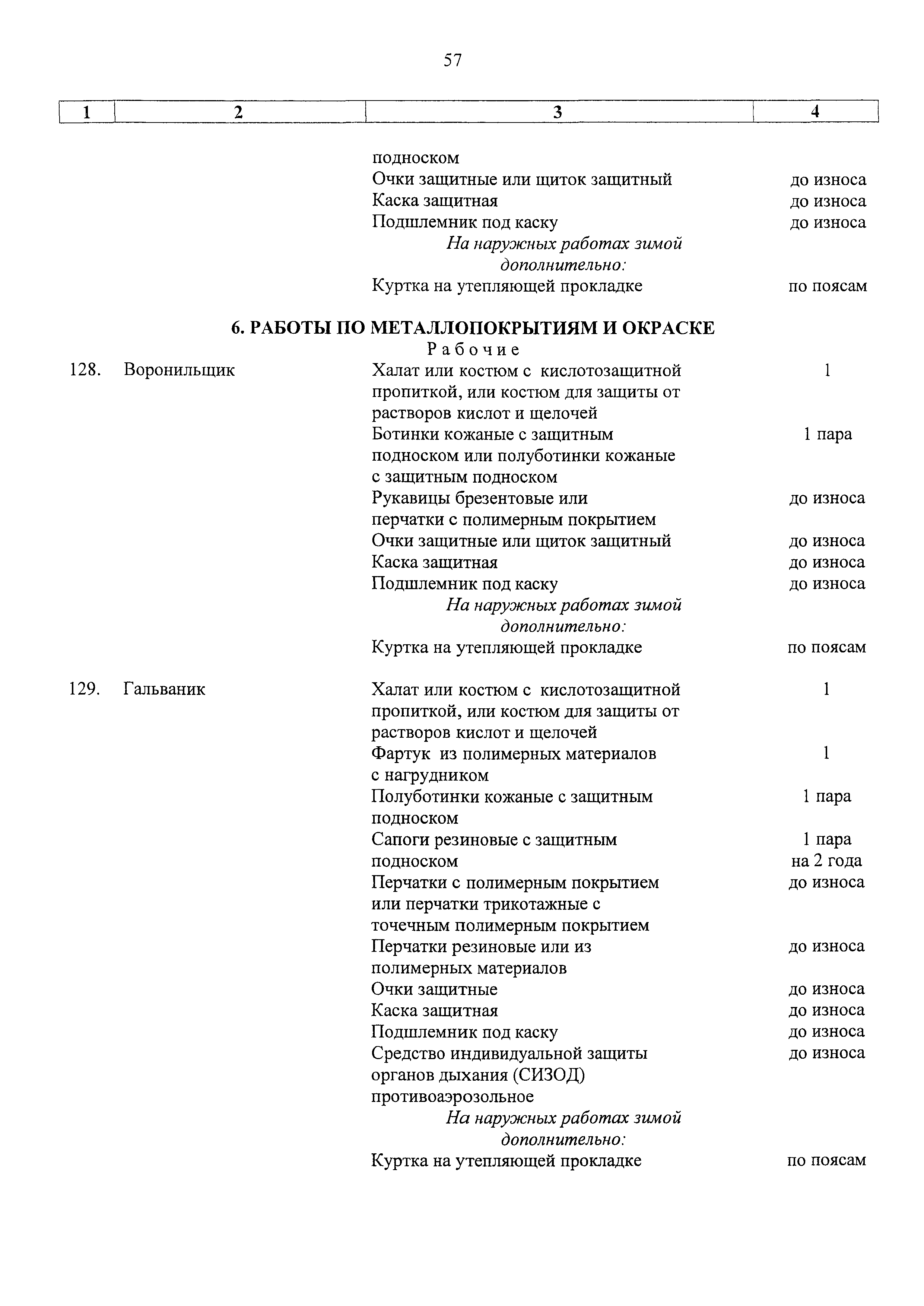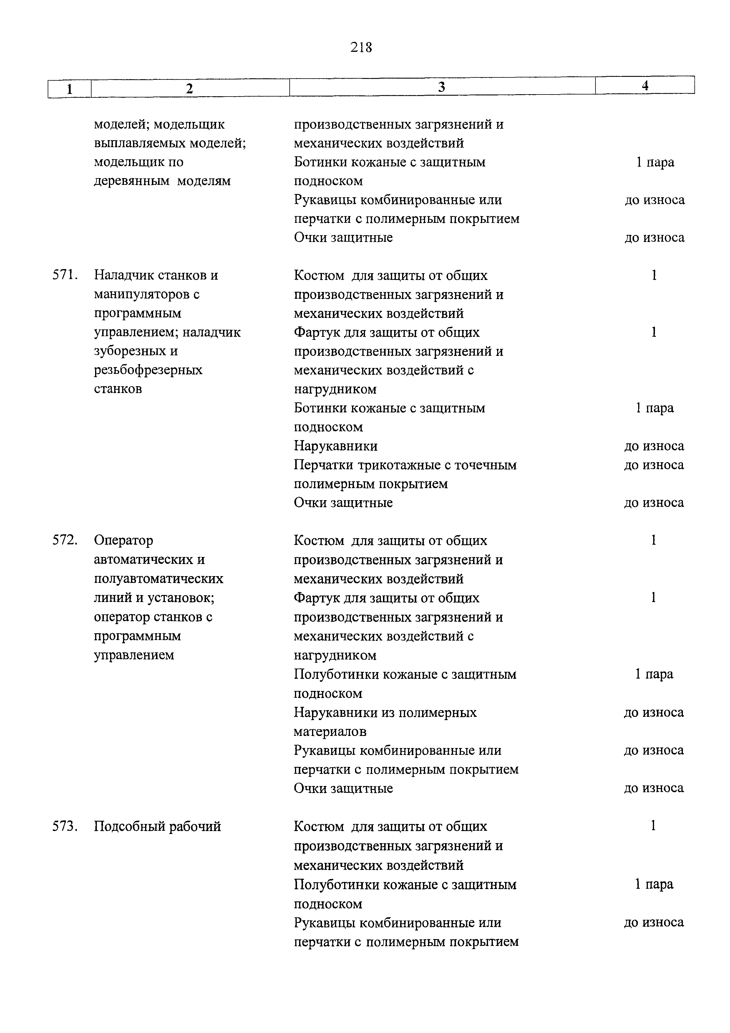 Типовые нормы бесплатной выдачи специальной одежды, специальной обуви и других средств индивидуальной защиты работникам машиностроительных и металлообрабатывающих производств, занятым на работах с вредными и (или) опасными условиями труда, а также на работах, выполняемых в особых температурных условиях или связанных с загрязнением| Статус: | действует | | Название рус.: | Типовые нормы бесплатной выдачи специальной одежды, специальной обуви и других средств индивидуальной защиты работникам машиностроительных и металлообрабатывающих производств, занятым на работах с вредными и (или) опасными условиями труда, а также на работах, выполняемых в особых температурных условиях или связанных с загрязнением | | Дата добавления в базу: | 01.09.2013 | | Дата актуализации: | 01.01.2021 | | Оглавление: | 1. Чугунолитейное производство и литье цветных металлов 2. Производства порошковой металлургии 3. Производство электродов и флюсов 4. Кузнечно-прессовые и термические работы 5. Сварочные работы 6. Работы по металлопокрытиям и окраске 7. Механическая обработка металлов; слесарные и слесарно-сборочные работы 8. Производство подшипников 9. Кузовное производство 10. Работы по производству и восстановлению напильников 11. Абразивное производство 12. Производство сверхтвердых материалов и инструмента из них 13. Производство шлифовальной шкурки 14. Разборка, ремонт, сборка и испытание тягачей, автомобилей и тракторов 15. Испытание двигателей и силовых установок 16. Производство мягких баков 17. Производство мипоры 18. Котельные работы и работы по металлическим конструкциям 19. Производство грузовых автомобилей 19.1 Сварка и сборка кабин 19.2. Сварка и сборка цельнометаллических кузовов 19.3. Сборка узлов 19.4. Сборка грузовых автомобилей 19.5. Подсборка узлов и агрегатов 20. Производство легковых автомобилей 20.1. Сборка-сварка кузовов 20.2. Сборка легковых автомобилей 21. Производство автокомпонентов 22. Агрегатное производство 23. Производство спецтехники 23.1. Сборочные, сварочные, окрасочные работы 23.2. Сборка автомобилей и узлов 23.3. Тюнинг автомобилей 24. Инструментальное производство 25. Общие профессии машиностроительных и металлообрабатывающих производств Примечания к типовым нормам | | Утверждён: | 14.12.2010 Минздравсоцразвития России (1104н)