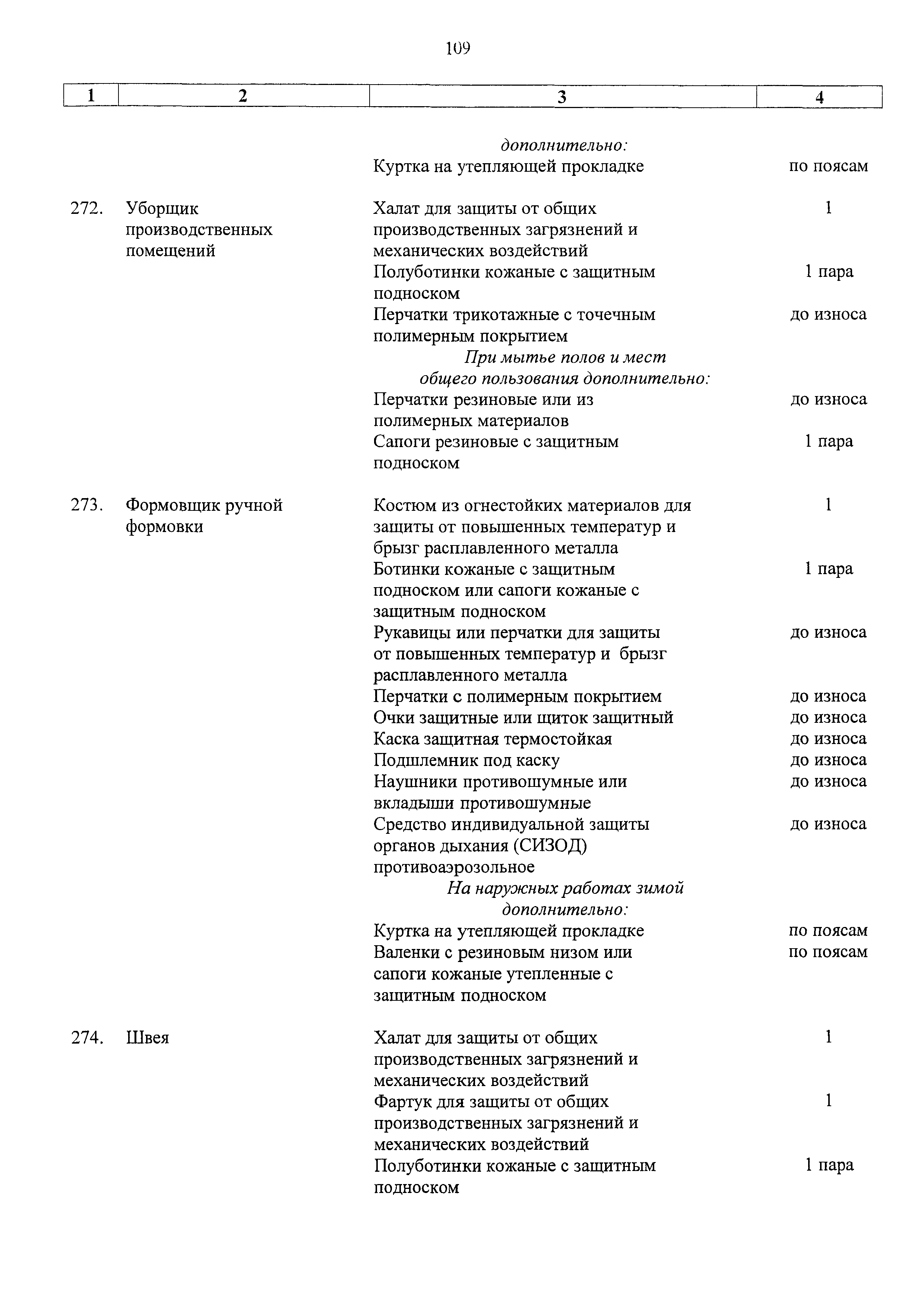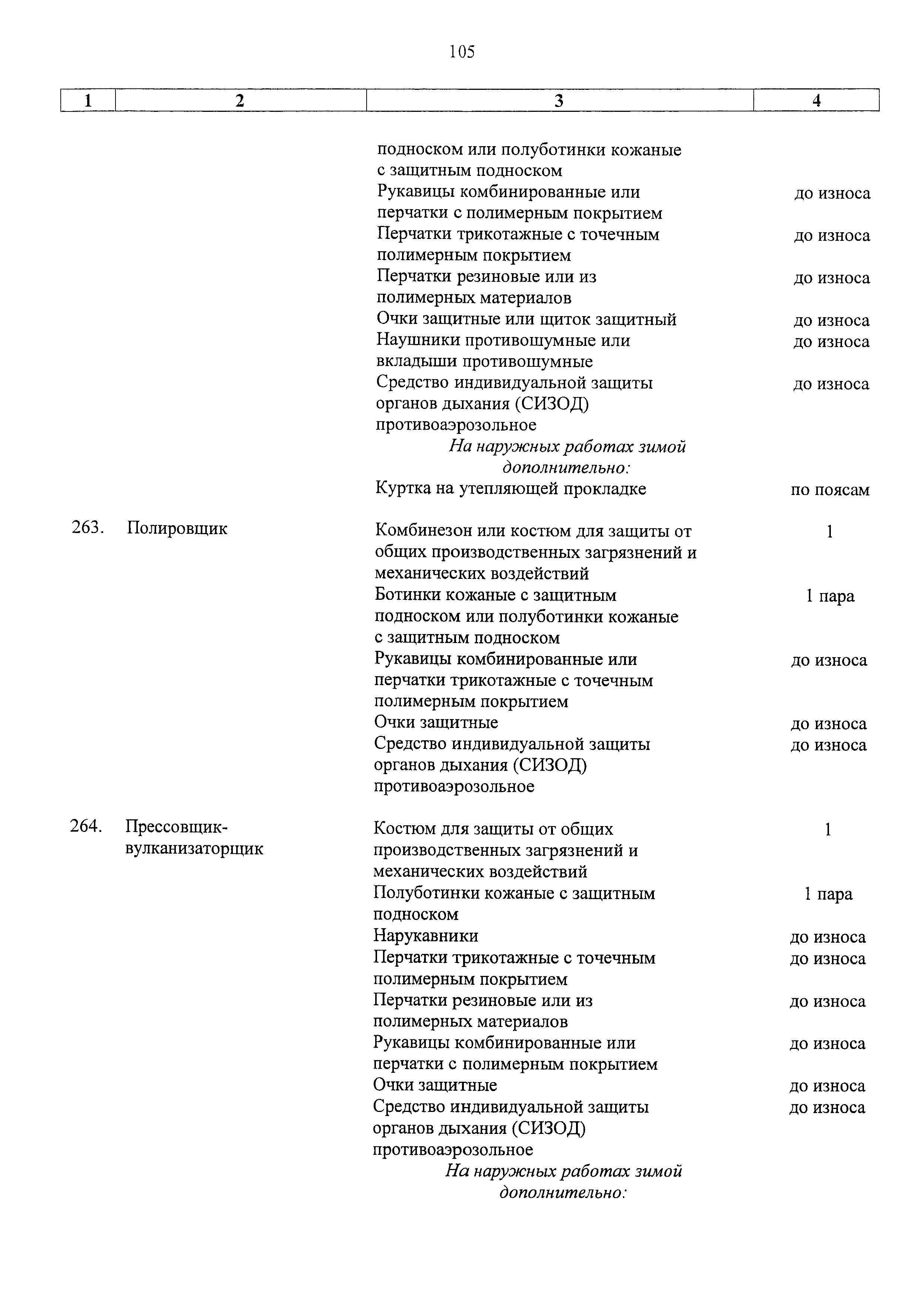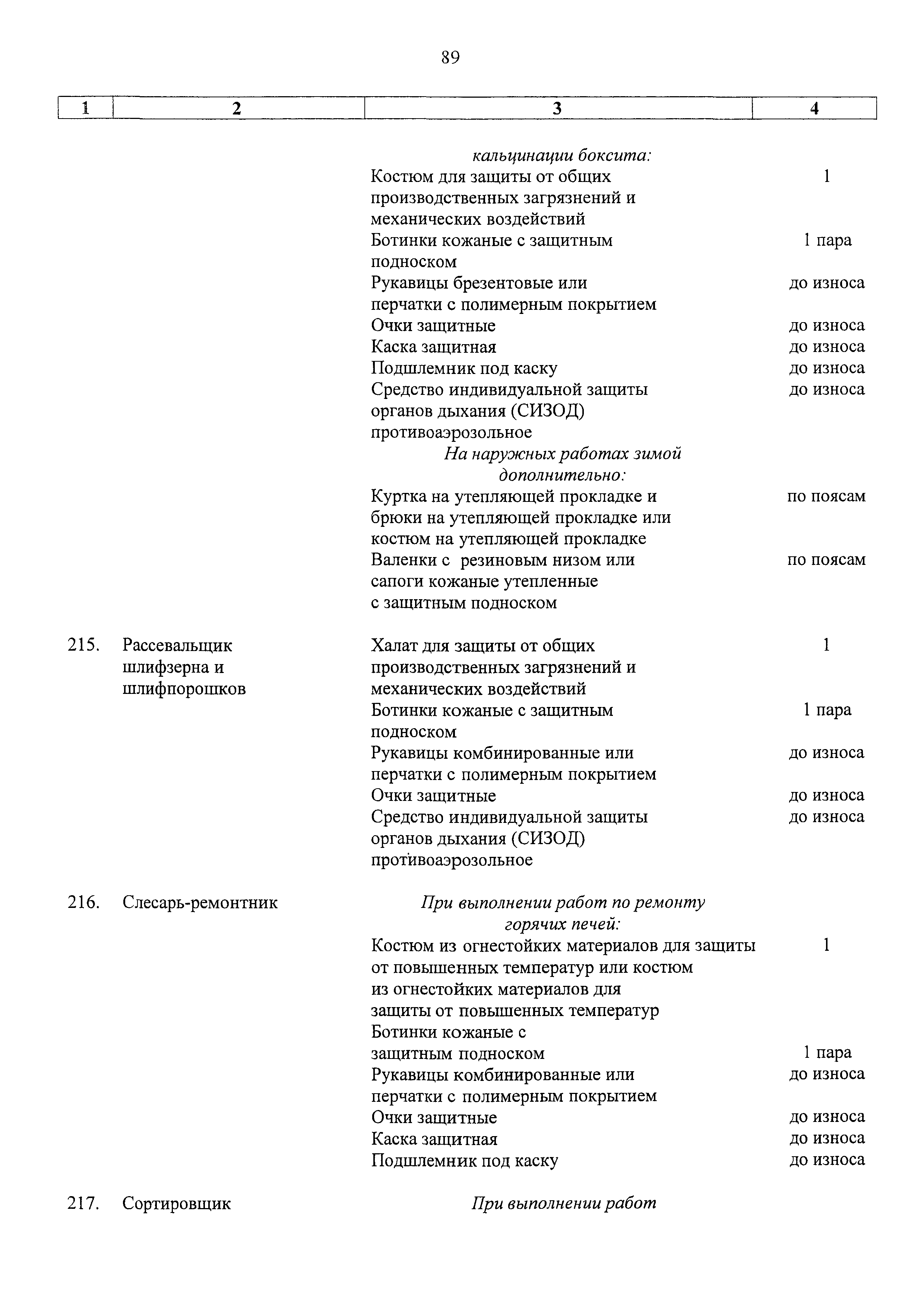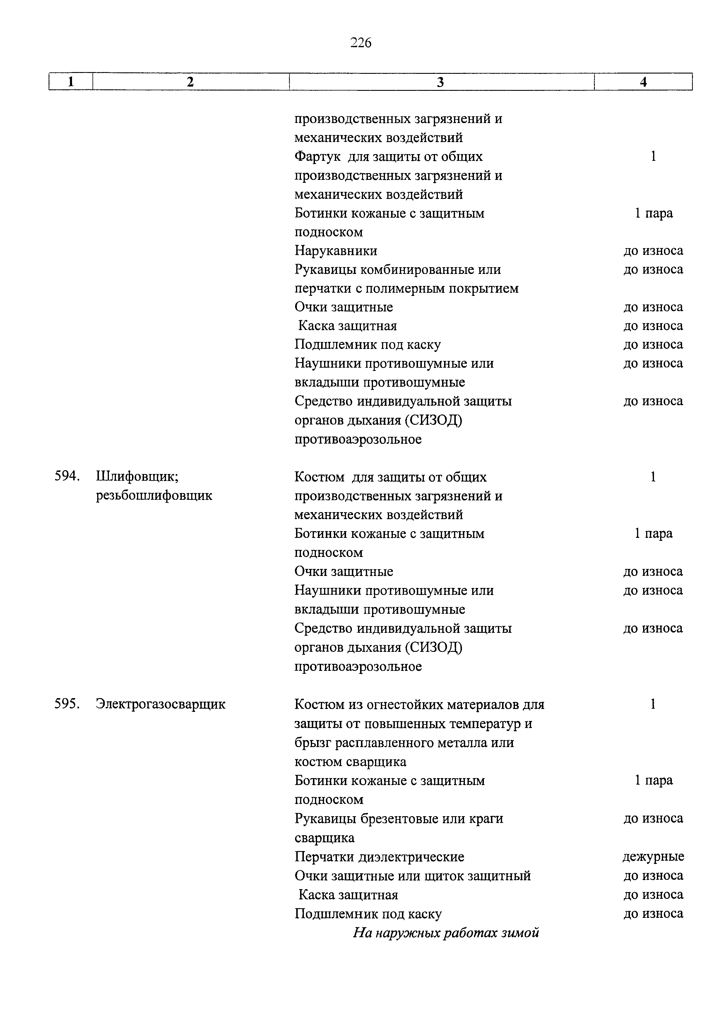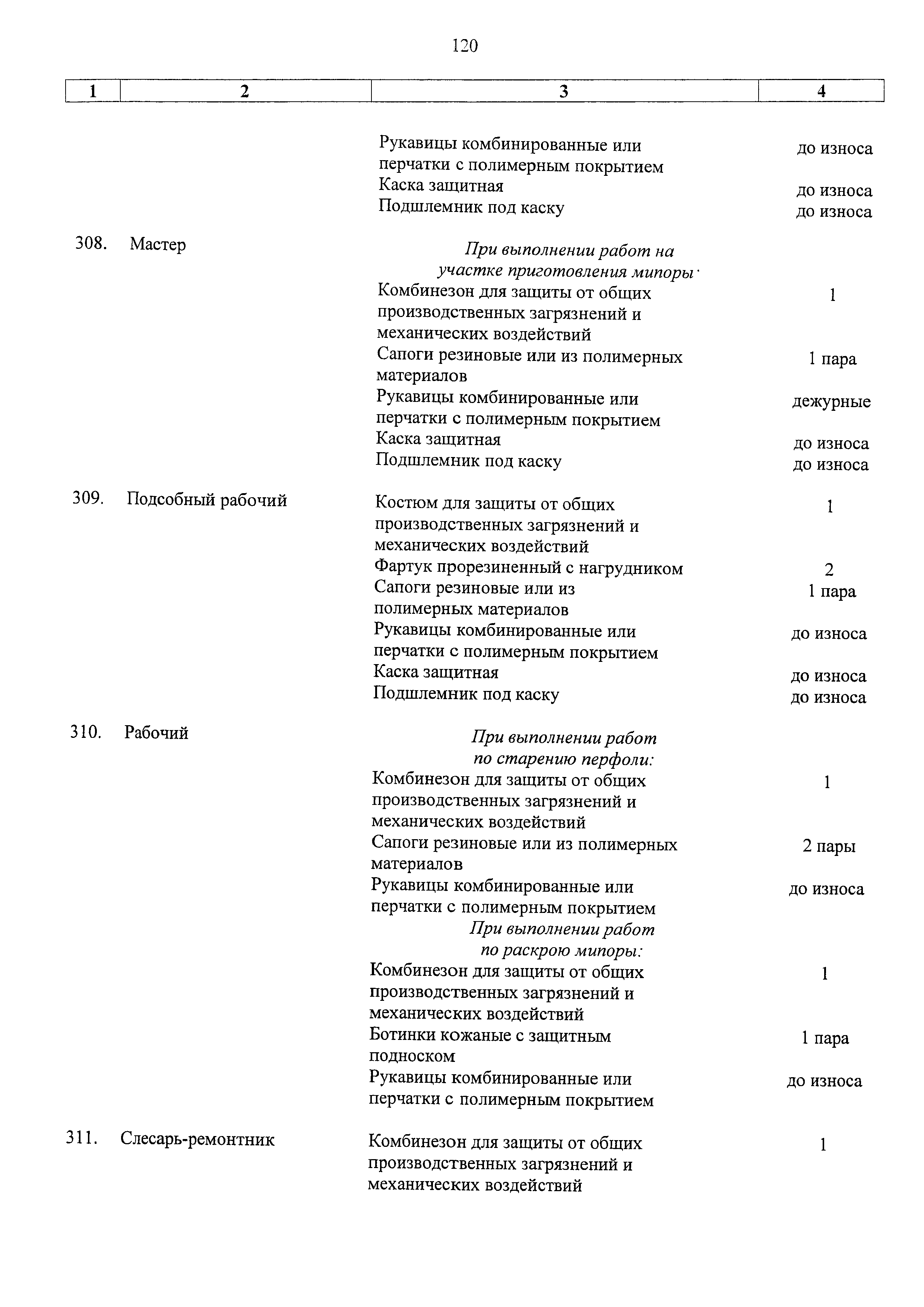 Типовые нормы бесплатной выдачи специальной одежды, специальной обуви и других средств индивидуальной защиты работникам машиностроительных и металлообрабатывающих производств, занятым на работах с вредными и (или) опасными условиями труда, а также на работах, выполняемых в особых температурных условиях или связанных с загрязнением| Статус: | действует | | Название рус.: | Типовые нормы бесплатной выдачи специальной одежды, специальной обуви и других средств индивидуальной защиты работникам машиностроительных и металлообрабатывающих производств, занятым на работах с вредными и (или) опасными условиями труда, а также на работах, выполняемых в особых температурных условиях или связанных с загрязнением | | Дата добавления в базу: | 01.09.2013 | | Дата актуализации: | 01.01.2021 | | Оглавление: | 1. Чугунолитейное производство и литье цветных металлов 2. Производства порошковой металлургии 3. Производство электродов и флюсов 4. Кузнечно-прессовые и термические работы 5. Сварочные работы 6. Работы по металлопокрытиям и окраске 7. Механическая обработка металлов; слесарные и слесарно-сборочные работы 8. Производство подшипников 9. Кузовное производство 10. Работы по производству и восстановлению напильников 11. Абразивное производство 12. Производство сверхтвердых материалов и инструмента из них 13. Производство шлифовальной шкурки 14. Разборка, ремонт, сборка и испытание тягачей, автомобилей и тракторов 15. Испытание двигателей и силовых установок 16. Производство мягких баков 17. Производство мипоры 18. Котельные работы и работы по металлическим конструкциям 19. Производство грузовых автомобилей 19.1 Сварка и сборка кабин 19.2. Сварка и сборка цельнометаллических кузовов 19.3. Сборка узлов 19.4. Сборка грузовых автомобилей 19.5. Подсборка узлов и агрегатов 20. Производство легковых автомобилей 20.1. Сборка-сварка кузовов 20.2. Сборка легковых автомобилей 21. Производство автокомпонентов 22. Агрегатное производство 23. Производство спецтехники 23.1. Сборочные, сварочные, окрасочные работы 23.2. Сборка автомобилей и узлов 23.3. Тюнинг автомобилей 24. Инструментальное производство 25. Общие профессии машиностроительных и металлообрабатывающих производств Примечания к типовым нормам | | Утверждён: | 14.12.2010 Минздравсоцразвития России (1104н)