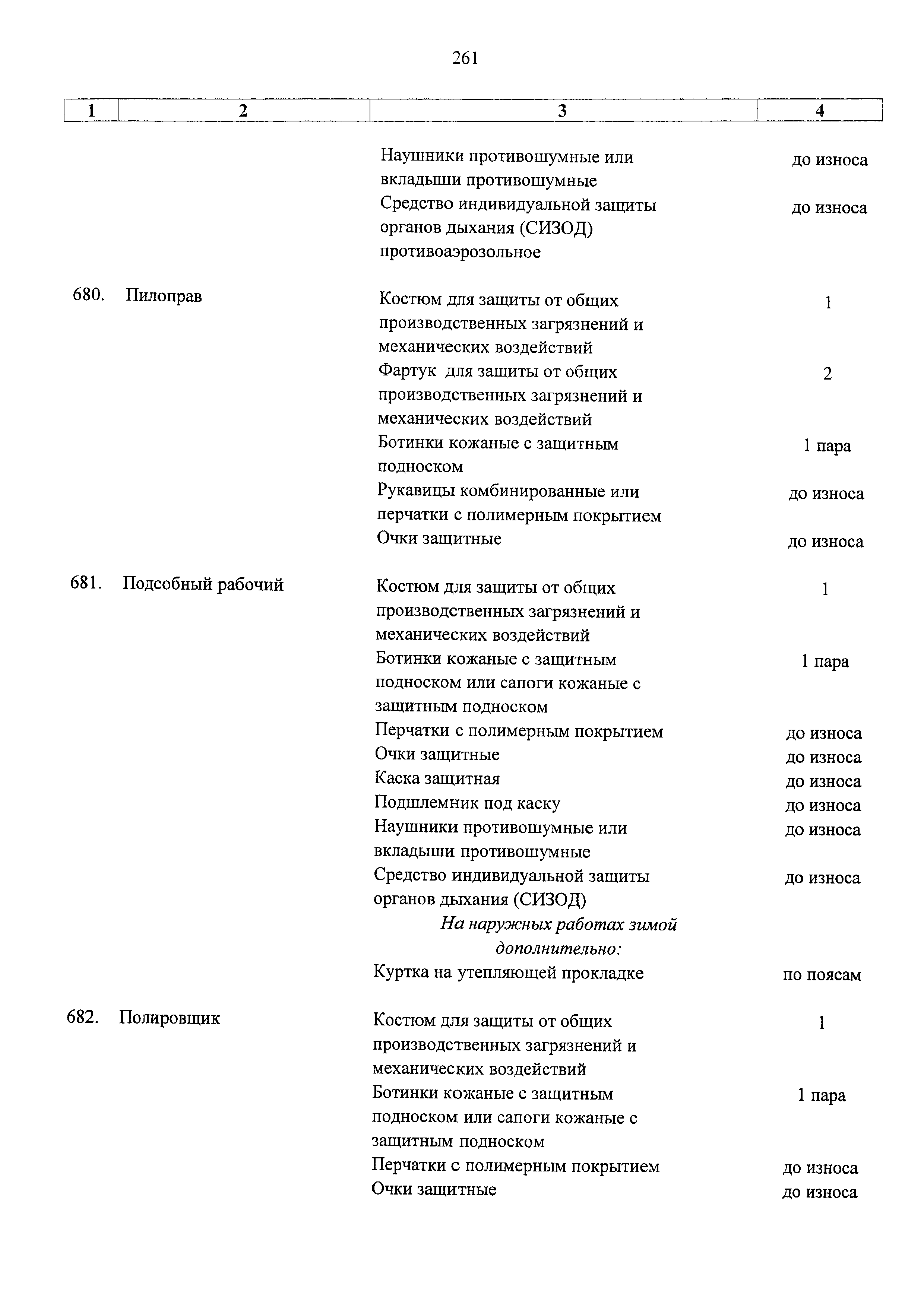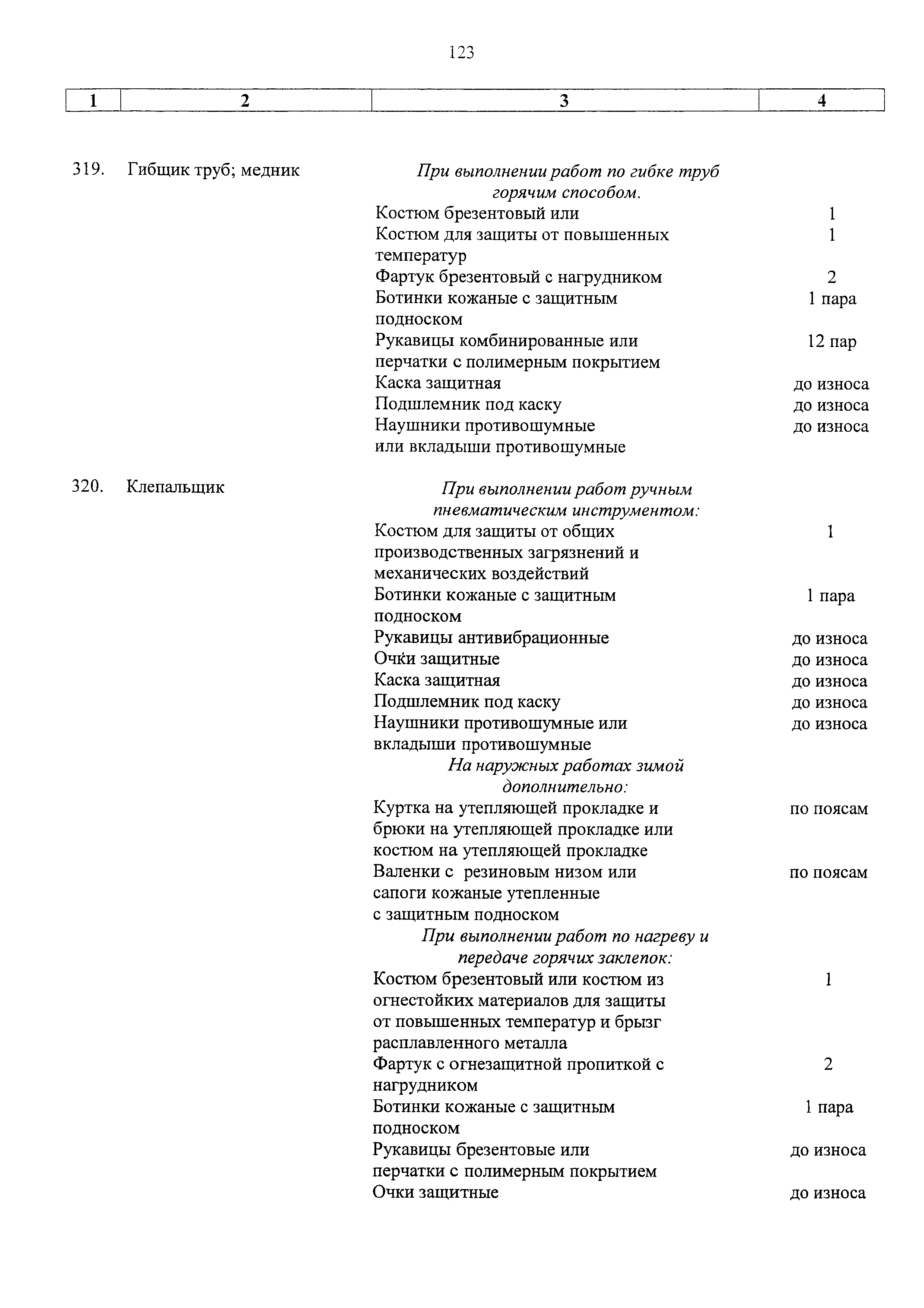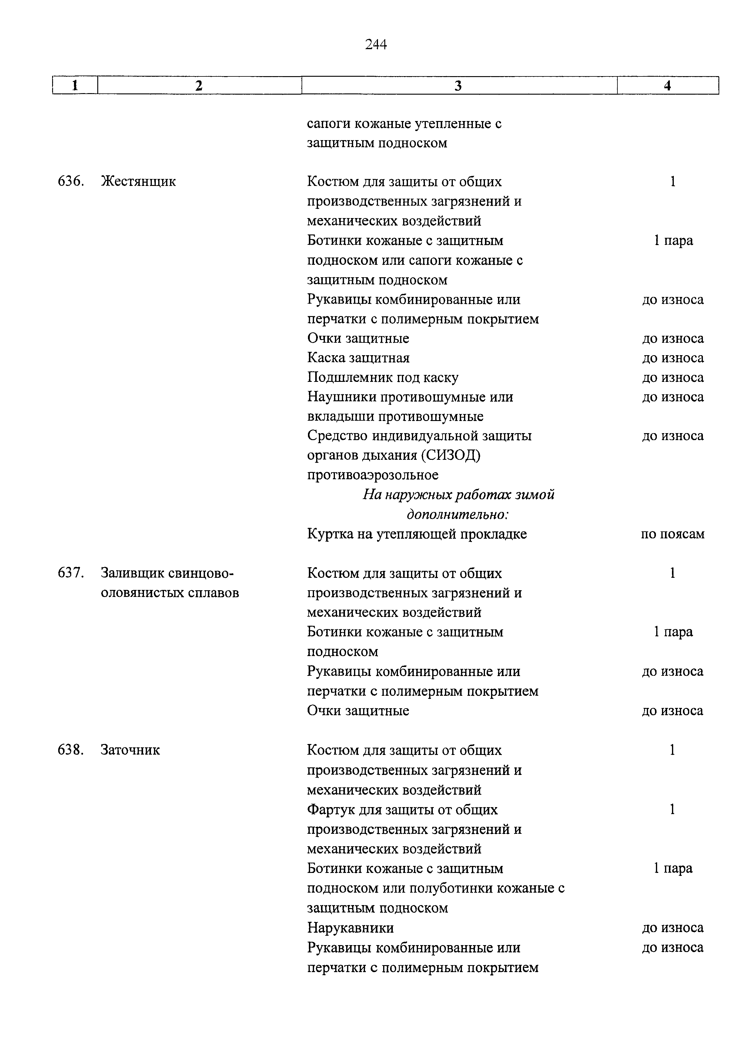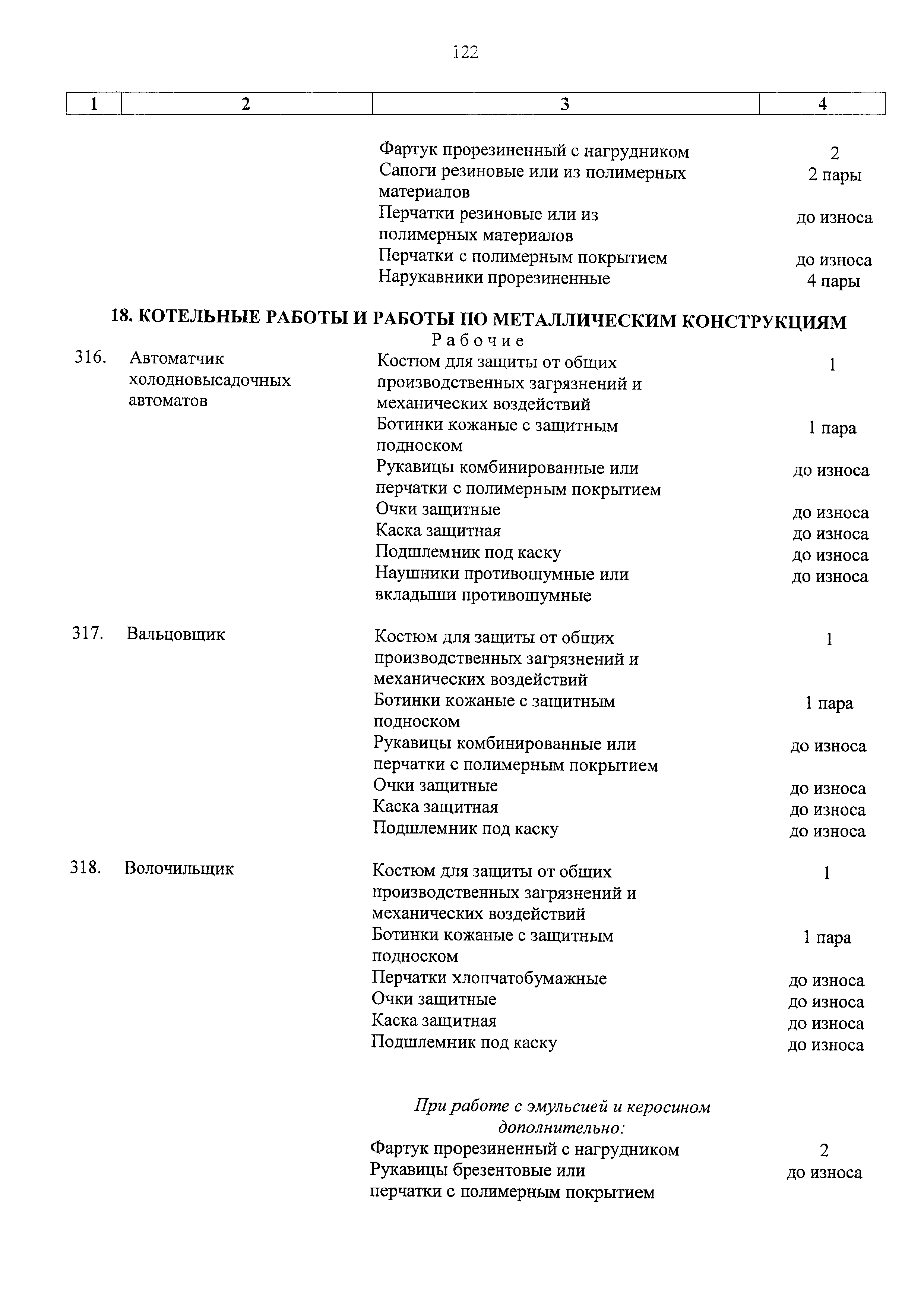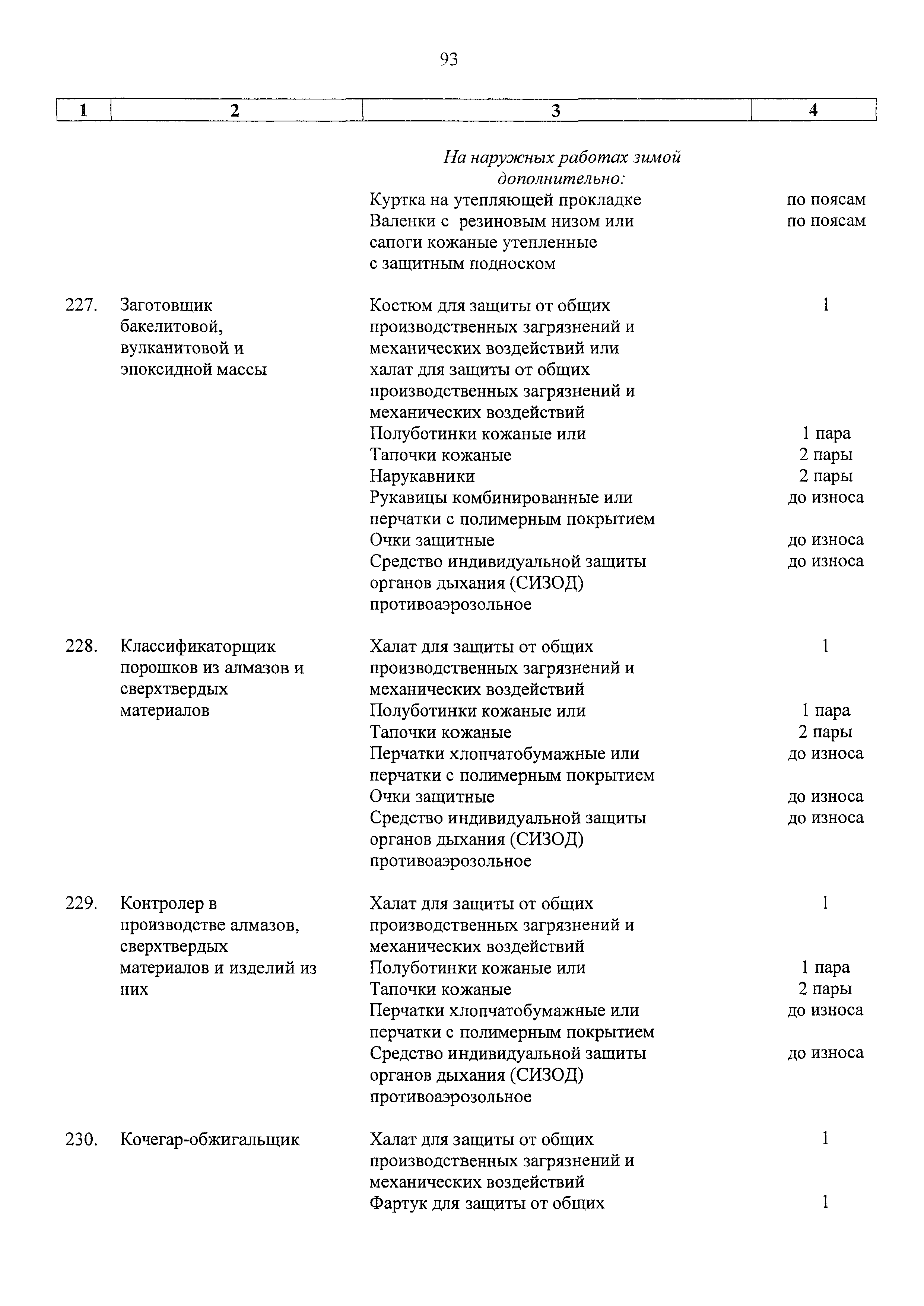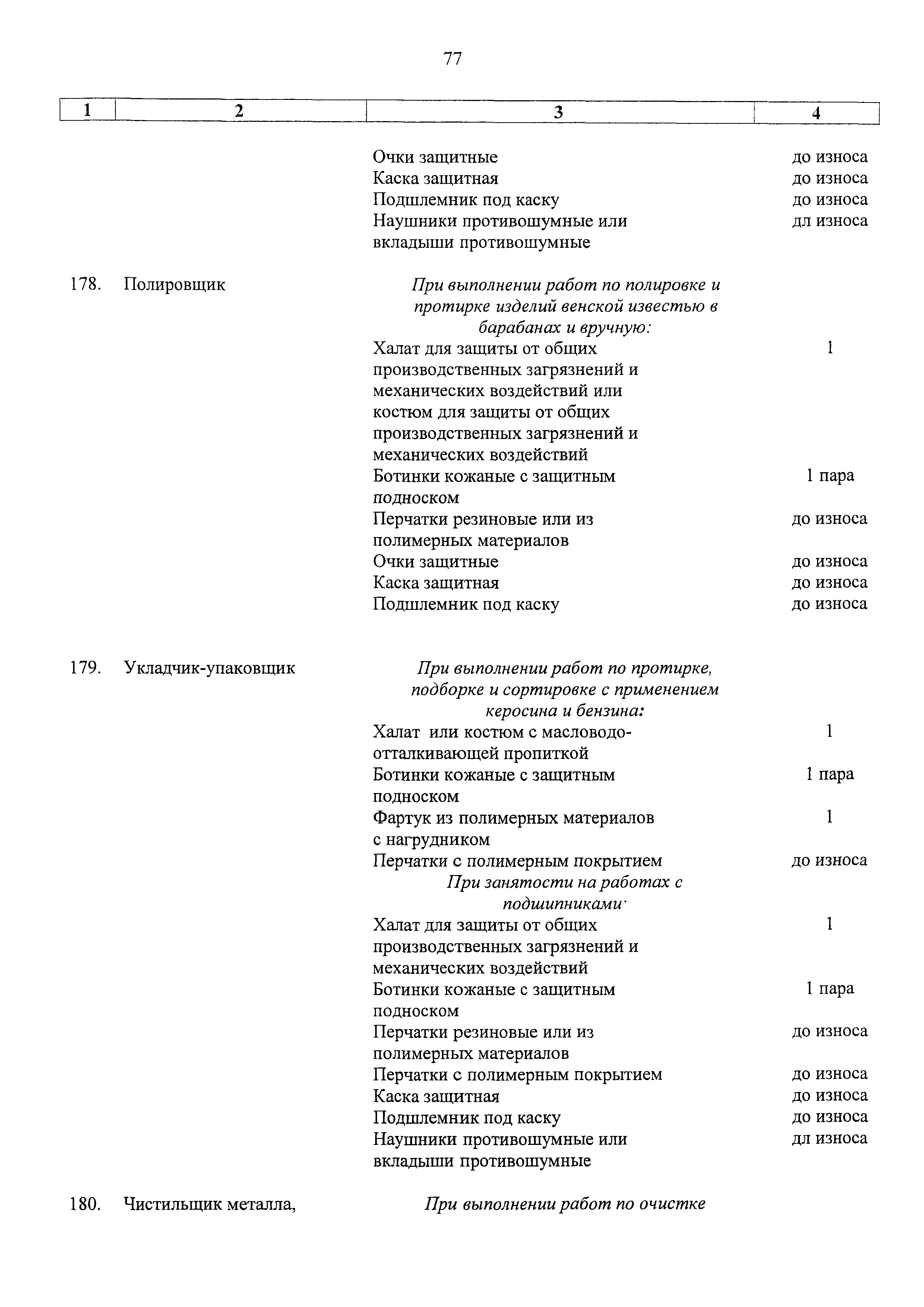 Типовые нормы бесплатной выдачи специальной одежды, специальной обуви и других средств индивидуальной защиты работникам машиностроительных и металлообрабатывающих производств, занятым на работах с вредными и (или) опасными условиями труда, а также на работах, выполняемых в особых температурных условиях или связанных с загрязнением| Статус: | действует | | Название рус.: | Типовые нормы бесплатной выдачи специальной одежды, специальной обуви и других средств индивидуальной защиты работникам машиностроительных и металлообрабатывающих производств, занятым на работах с вредными и (или) опасными условиями труда, а также на работах, выполняемых в особых температурных условиях или связанных с загрязнением | | Дата добавления в базу: | 01.09.2013 | | Дата актуализации: | 01.01.2021 | | Оглавление: | 1. Чугунолитейное производство и литье цветных металлов 2. Производства порошковой металлургии 3. Производство электродов и флюсов 4. Кузнечно-прессовые и термические работы 5. Сварочные работы 6. Работы по металлопокрытиям и окраске 7. Механическая обработка металлов; слесарные и слесарно-сборочные работы 8. Производство подшипников 9. Кузовное производство 10. Работы по производству и восстановлению напильников 11. Абразивное производство 12. Производство сверхтвердых материалов и инструмента из них 13. Производство шлифовальной шкурки 14. Разборка, ремонт, сборка и испытание тягачей, автомобилей и тракторов 15. Испытание двигателей и силовых установок 16. Производство мягких баков 17. Производство мипоры 18. Котельные работы и работы по металлическим конструкциям 19. Производство грузовых автомобилей 19.1 Сварка и сборка кабин 19.2. Сварка и сборка цельнометаллических кузовов 19.3. Сборка узлов 19.4. Сборка грузовых автомобилей 19.5. Подсборка узлов и агрегатов 20. Производство легковых автомобилей 20.1. Сборка-сварка кузовов 20.2. Сборка легковых автомобилей 21. Производство автокомпонентов 22. Агрегатное производство 23. Производство спецтехники 23.1. Сборочные, сварочные, окрасочные работы 23.2. Сборка автомобилей и узлов 23.3. Тюнинг автомобилей 24. Инструментальное производство 25. Общие профессии машиностроительных и металлообрабатывающих производств Примечания к типовым нормам | | Утверждён: | 14.12.2010 Минздравсоцразвития России (1104н)