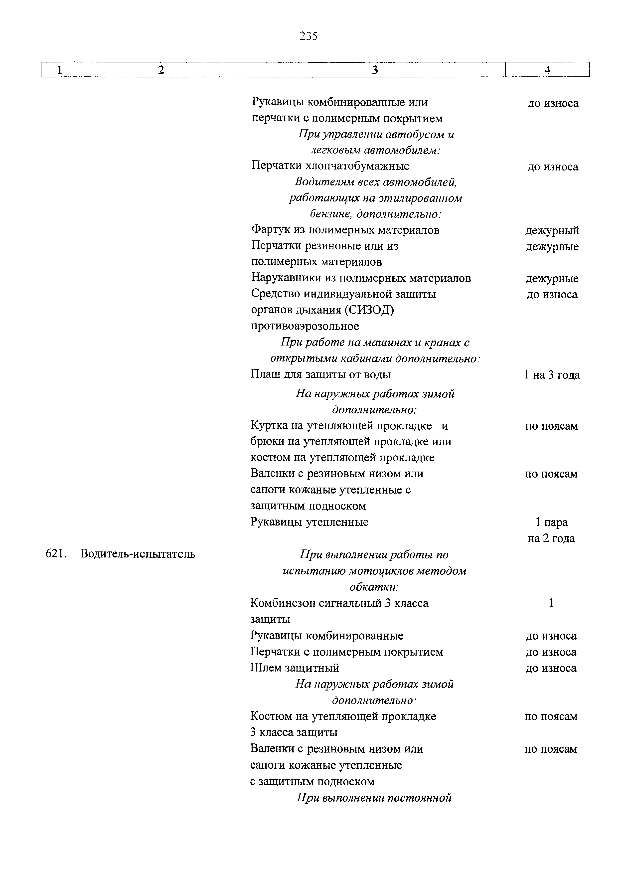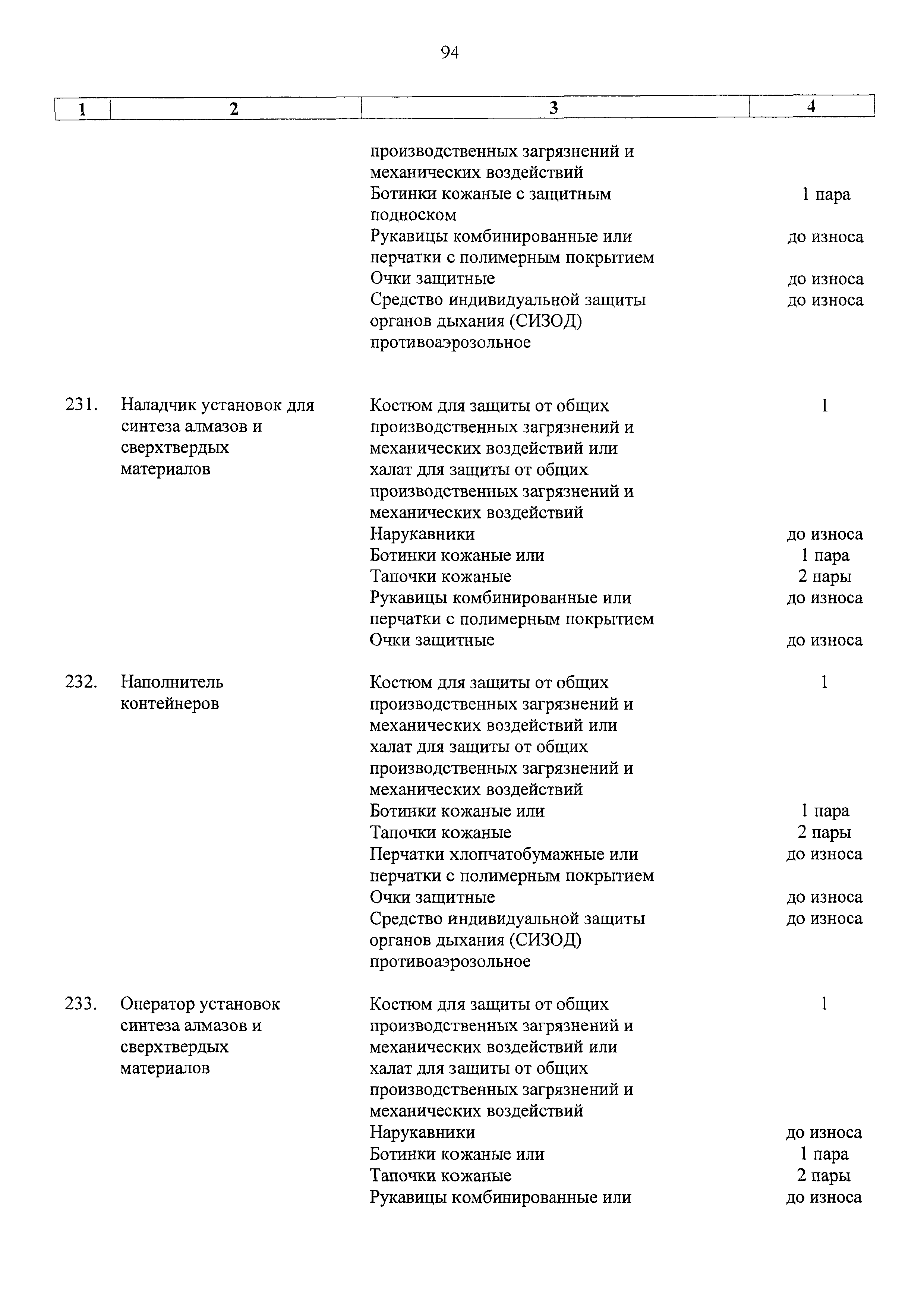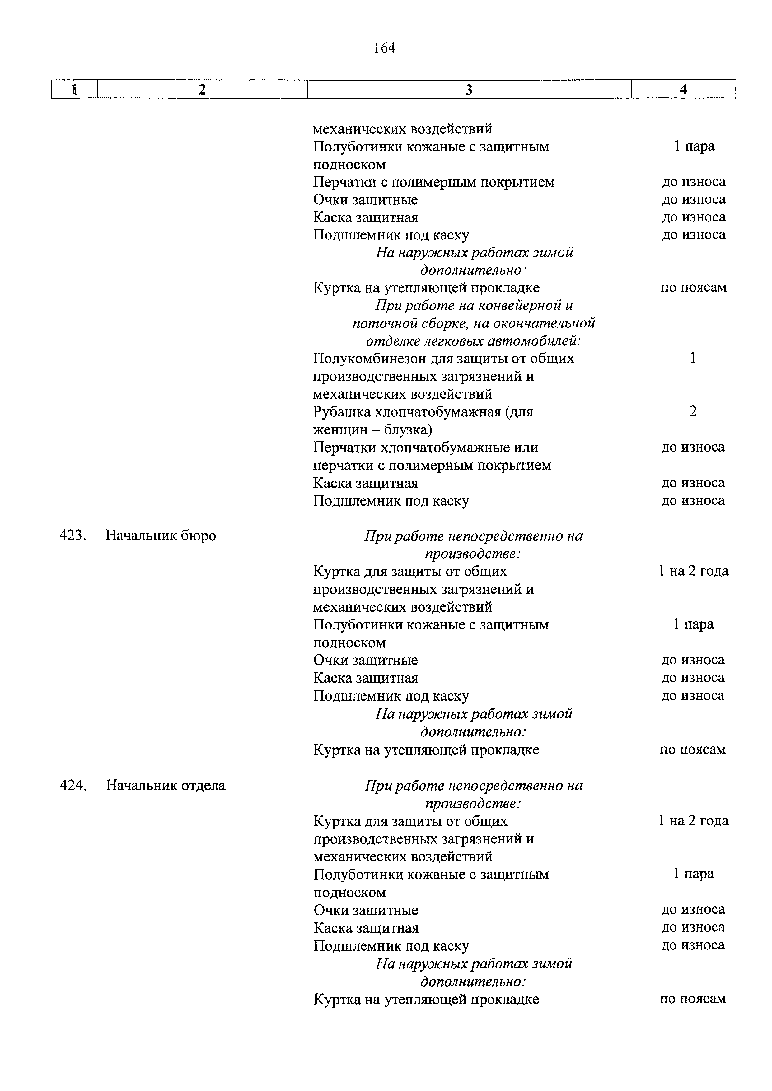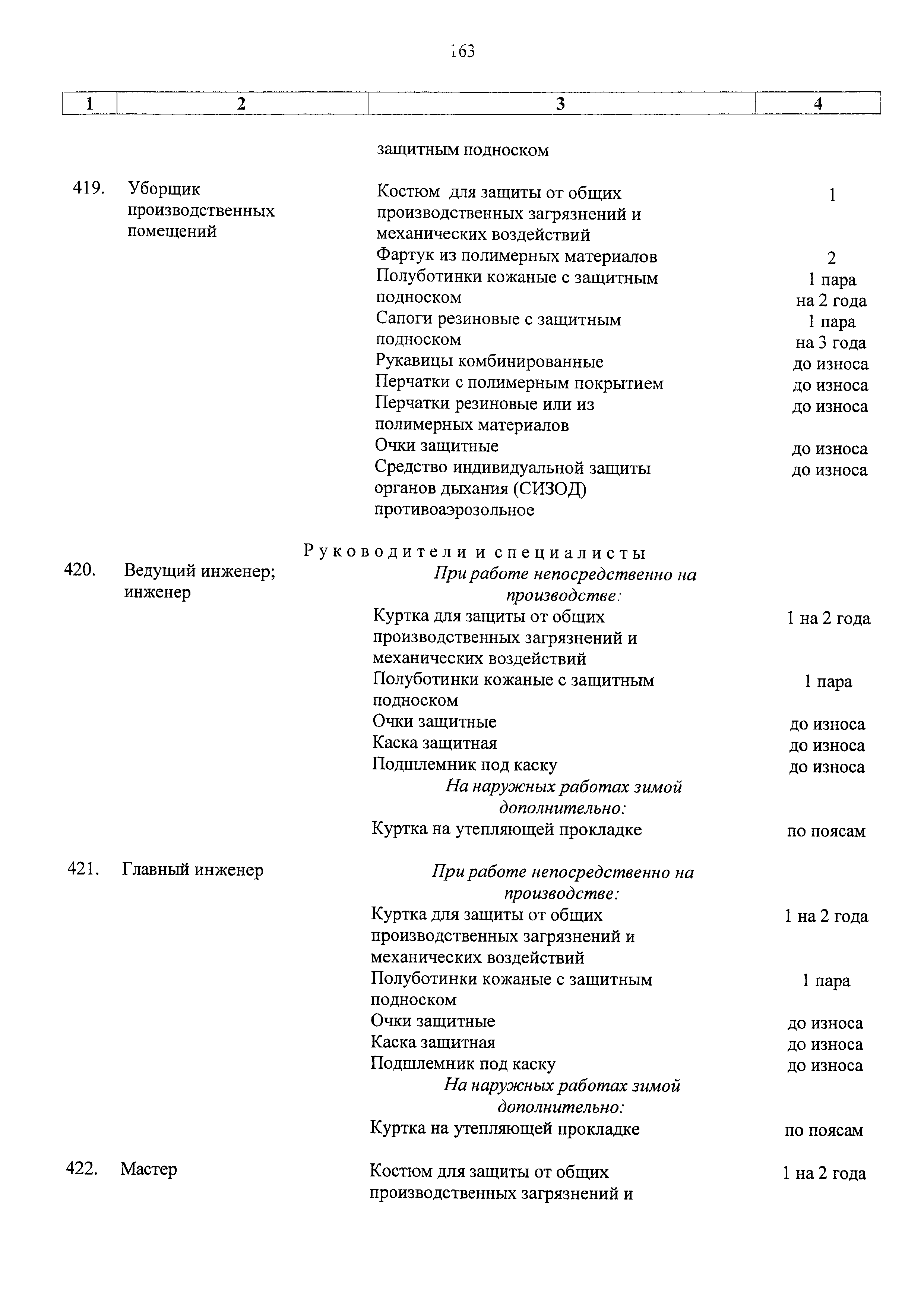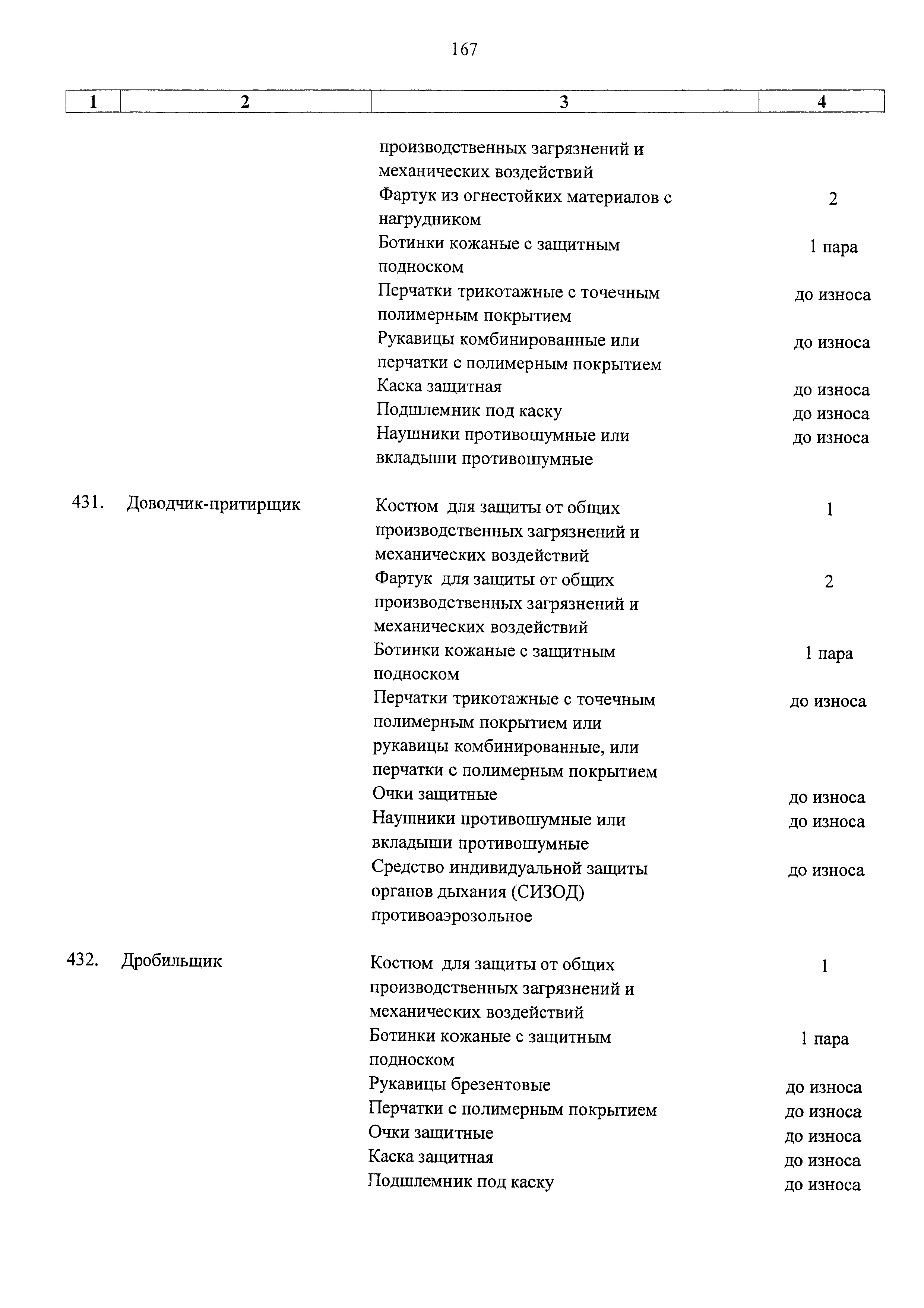 Типовые нормы бесплатной выдачи специальной одежды, специальной обуви и других средств индивидуальной защиты работникам машиностроительных и металлообрабатывающих производств, занятым на работах с вредными и (или) опасными условиями труда, а также на работах, выполняемых в особых температурных условиях или связанных с загрязнением| Статус: | действует | | Название рус.: | Типовые нормы бесплатной выдачи специальной одежды, специальной обуви и других средств индивидуальной защиты работникам машиностроительных и металлообрабатывающих производств, занятым на работах с вредными и (или) опасными условиями труда, а также на работах, выполняемых в особых температурных условиях или связанных с загрязнением | | Дата добавления в базу: | 01.09.2013 | | Дата актуализации: | 01.01.2021 | | Оглавление: | 1. Чугунолитейное производство и литье цветных металлов 2. Производства порошковой металлургии 3. Производство электродов и флюсов 4. Кузнечно-прессовые и термические работы 5. Сварочные работы 6. Работы по металлопокрытиям и окраске 7. Механическая обработка металлов; слесарные и слесарно-сборочные работы 8. Производство подшипников 9. Кузовное производство 10. Работы по производству и восстановлению напильников 11. Абразивное производство 12. Производство сверхтвердых материалов и инструмента из них 13. Производство шлифовальной шкурки 14. Разборка, ремонт, сборка и испытание тягачей, автомобилей и тракторов 15. Испытание двигателей и силовых установок 16. Производство мягких баков 17. Производство мипоры 18. Котельные работы и работы по металлическим конструкциям 19. Производство грузовых автомобилей 19.1 Сварка и сборка кабин 19.2. Сварка и сборка цельнометаллических кузовов 19.3. Сборка узлов 19.4. Сборка грузовых автомобилей 19.5. Подсборка узлов и агрегатов 20. Производство легковых автомобилей 20.1. Сборка-сварка кузовов 20.2. Сборка легковых автомобилей 21. Производство автокомпонентов 22. Агрегатное производство 23. Производство спецтехники 23.1. Сборочные, сварочные, окрасочные работы 23.2. Сборка автомобилей и узлов 23.3. Тюнинг автомобилей 24. Инструментальное производство 25. Общие профессии машиностроительных и металлообрабатывающих производств Примечания к типовым нормам | | Утверждён: | 14.12.2010 Минздравсоцразвития России (1104н)