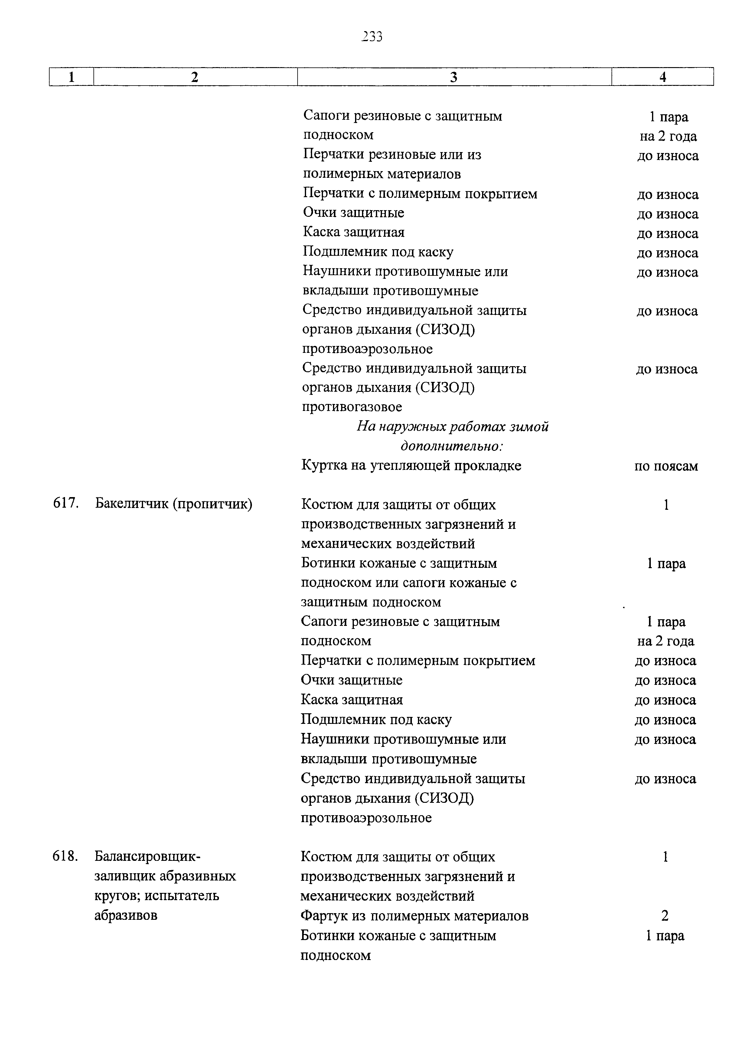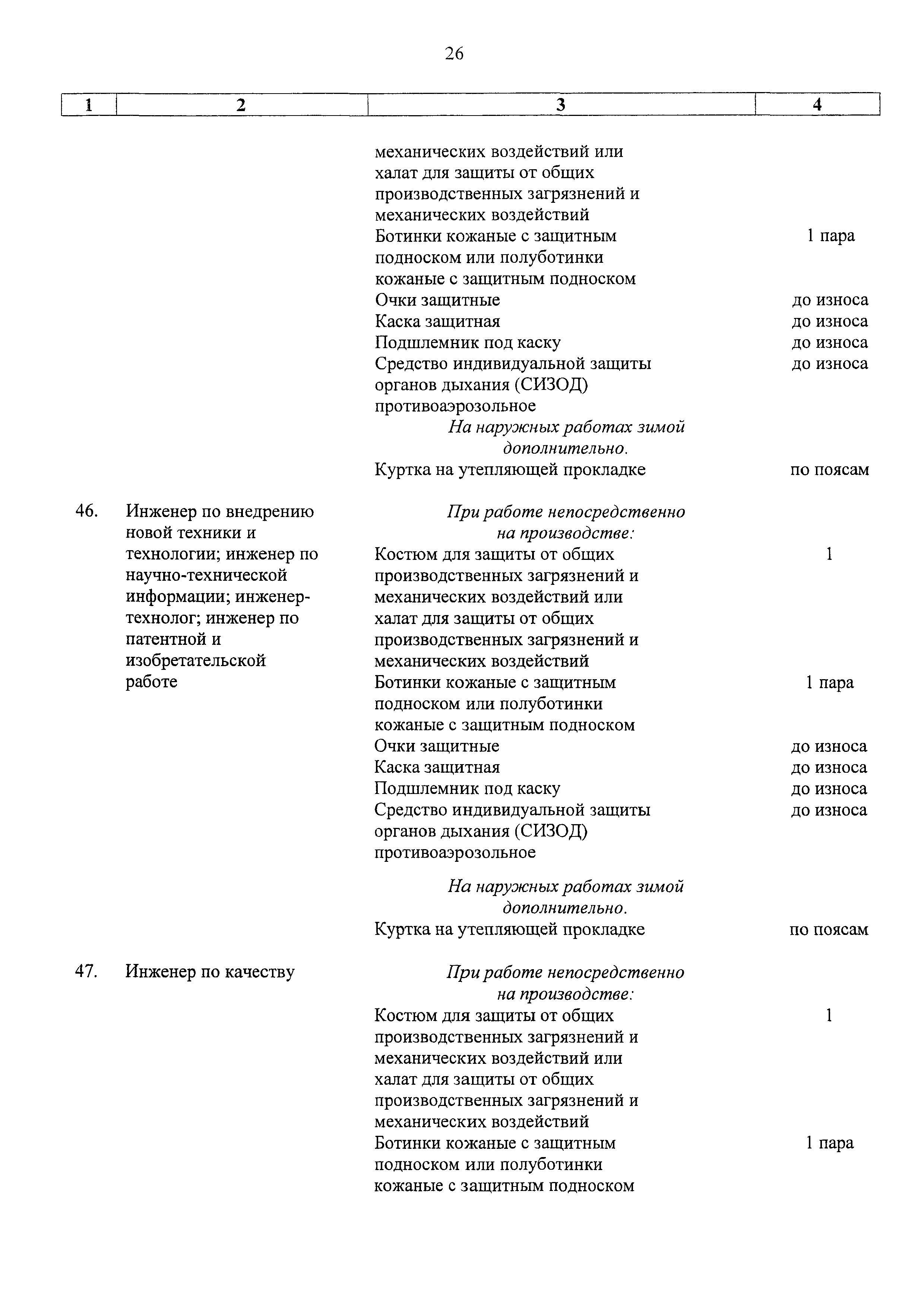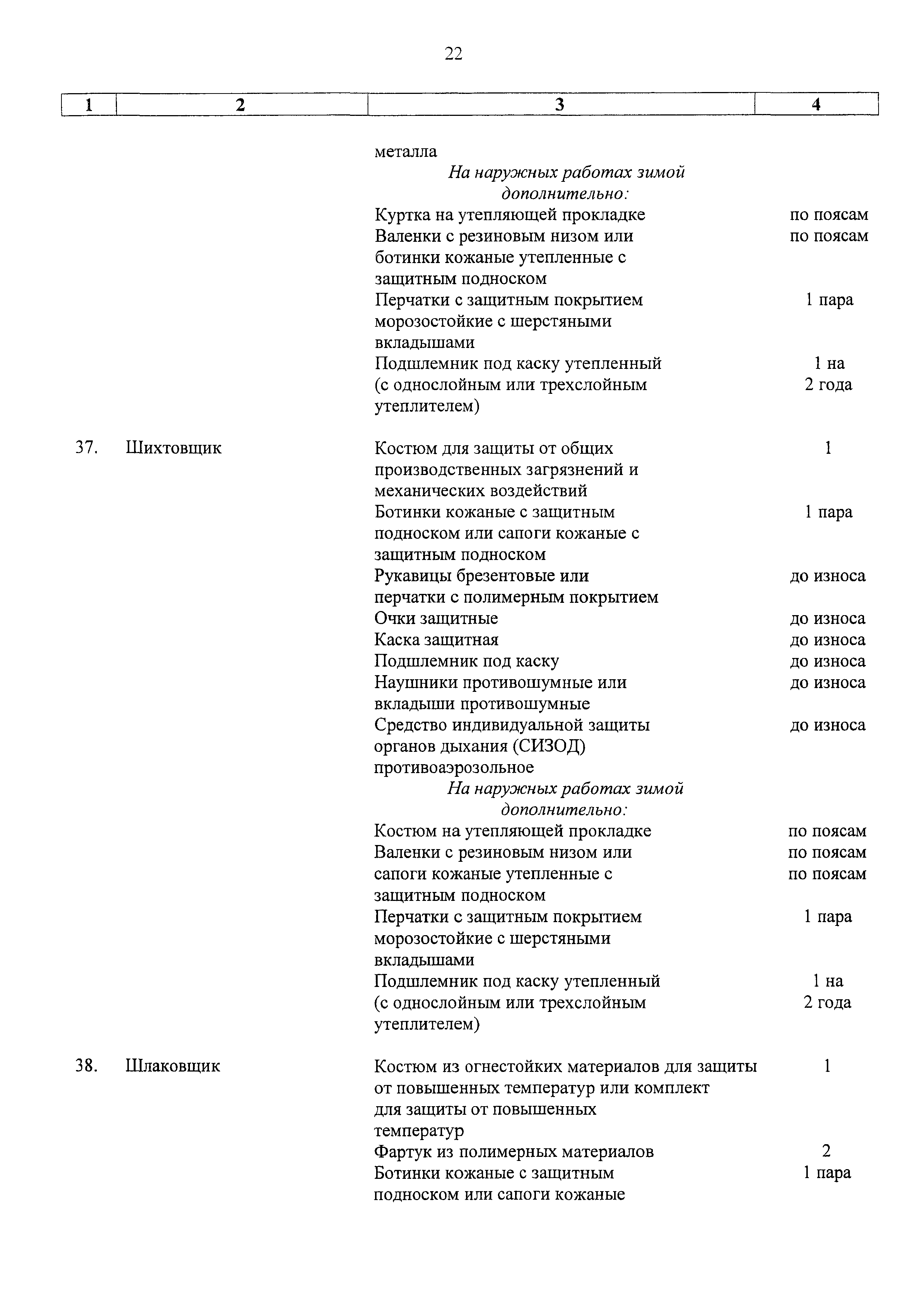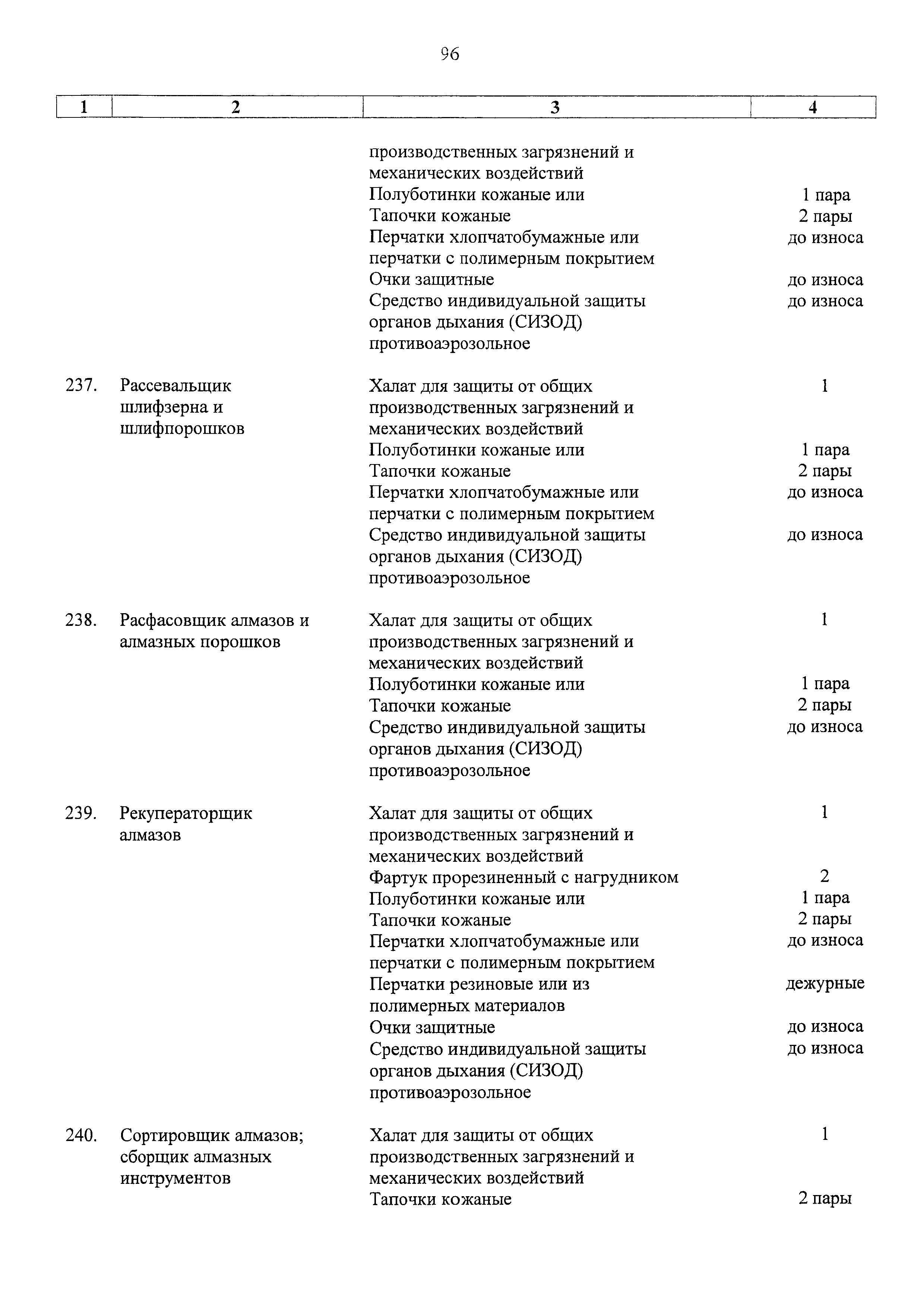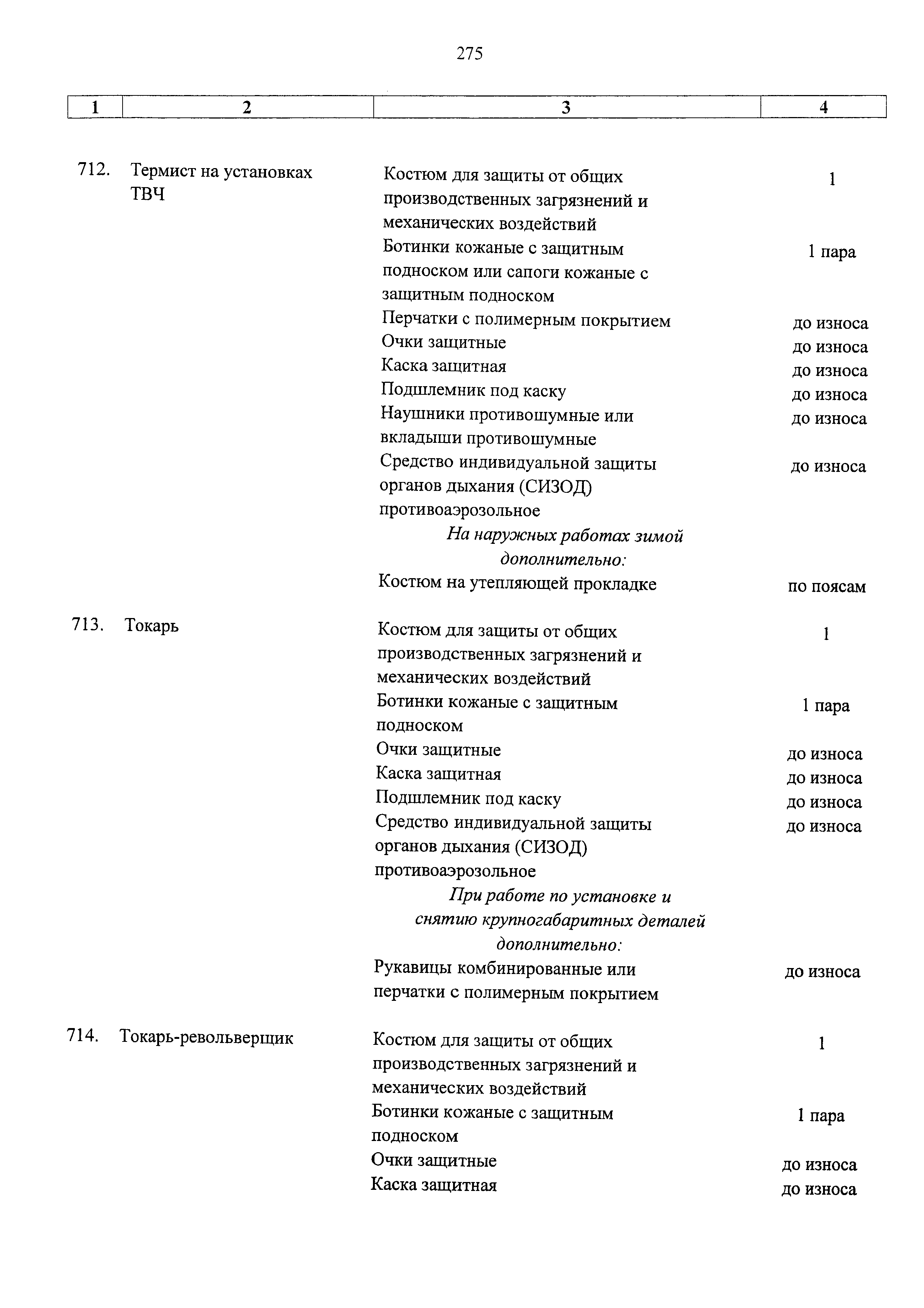 Типовые нормы бесплатной выдачи специальной одежды, специальной обуви и других средств индивидуальной защиты работникам машиностроительных и металлообрабатывающих производств, занятым на работах с вредными и (или) опасными условиями труда, а также на работах, выполняемых в особых температурных условиях или связанных с загрязнением| Статус: | действует | | Название рус.: | Типовые нормы бесплатной выдачи специальной одежды, специальной обуви и других средств индивидуальной защиты работникам машиностроительных и металлообрабатывающих производств, занятым на работах с вредными и (или) опасными условиями труда, а также на работах, выполняемых в особых температурных условиях или связанных с загрязнением | | Дата добавления в базу: | 01.09.2013 | | Дата актуализации: | 01.01.2021 | | Оглавление: | 1. Чугунолитейное производство и литье цветных металлов 2. Производства порошковой металлургии 3. Производство электродов и флюсов 4. Кузнечно-прессовые и термические работы 5. Сварочные работы 6. Работы по металлопокрытиям и окраске 7. Механическая обработка металлов; слесарные и слесарно-сборочные работы 8. Производство подшипников 9. Кузовное производство 10. Работы по производству и восстановлению напильников 11. Абразивное производство 12. Производство сверхтвердых материалов и инструмента из них 13. Производство шлифовальной шкурки 14. Разборка, ремонт, сборка и испытание тягачей, автомобилей и тракторов 15. Испытание двигателей и силовых установок 16. Производство мягких баков 17. Производство мипоры 18. Котельные работы и работы по металлическим конструкциям 19. Производство грузовых автомобилей 19.1 Сварка и сборка кабин 19.2. Сварка и сборка цельнометаллических кузовов 19.3. Сборка узлов 19.4. Сборка грузовых автомобилей 19.5. Подсборка узлов и агрегатов 20. Производство легковых автомобилей 20.1. Сборка-сварка кузовов 20.2. Сборка легковых автомобилей 21. Производство автокомпонентов 22. Агрегатное производство 23. Производство спецтехники 23.1. Сборочные, сварочные, окрасочные работы 23.2. Сборка автомобилей и узлов 23.3. Тюнинг автомобилей 24. Инструментальное производство 25. Общие профессии машиностроительных и металлообрабатывающих производств Примечания к типовым нормам | | Утверждён: | 14.12.2010 Минздравсоцразвития России (1104н)