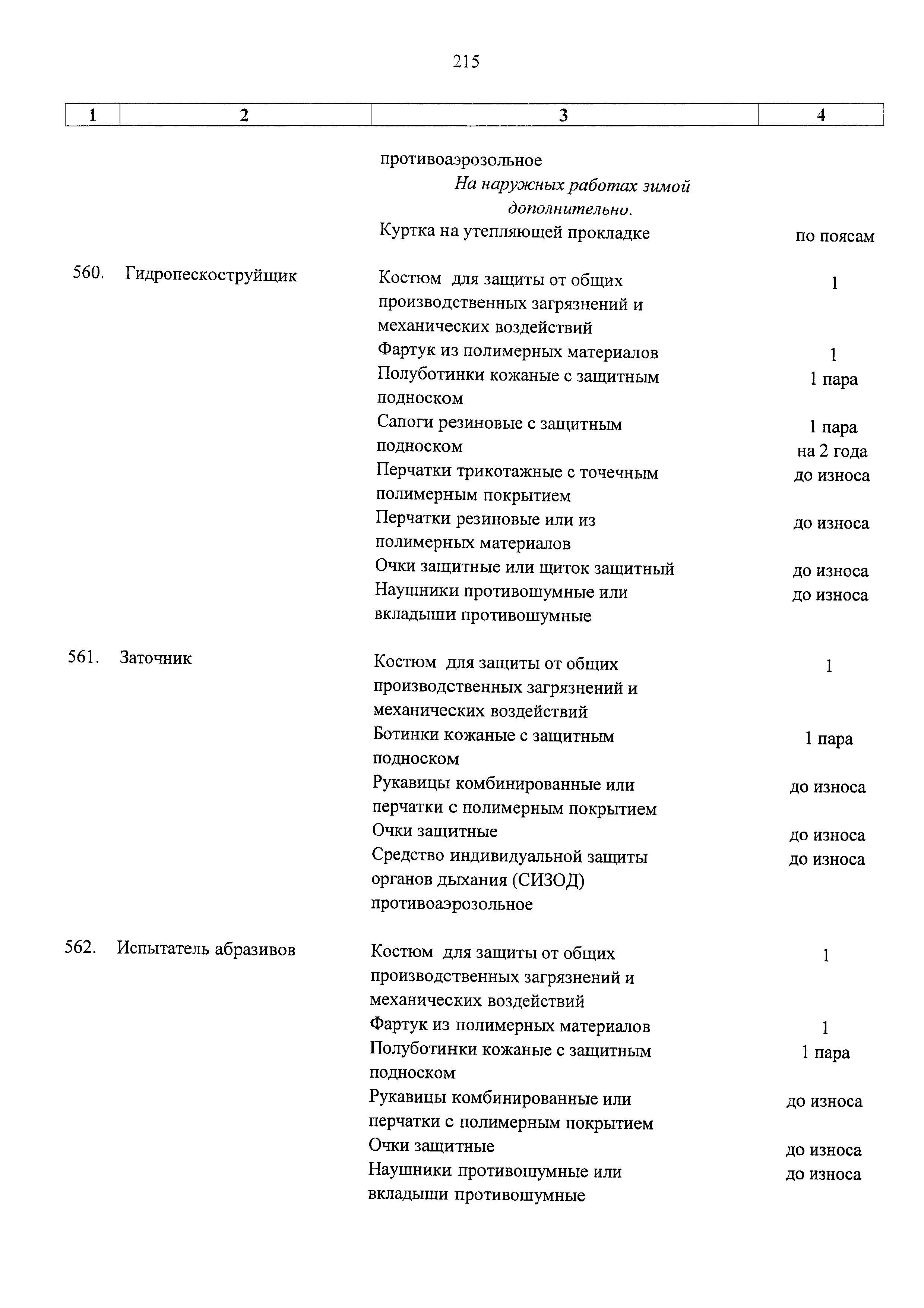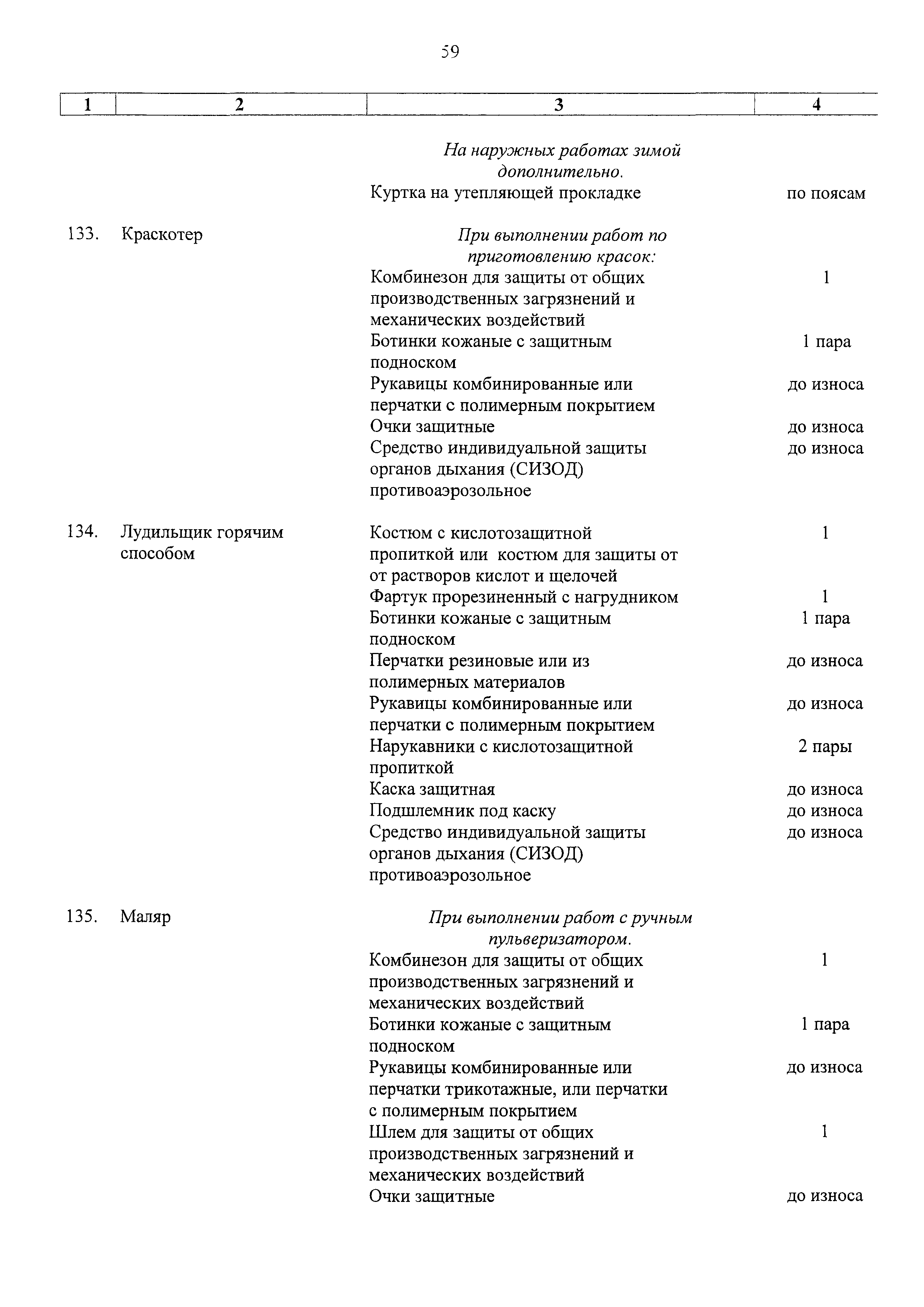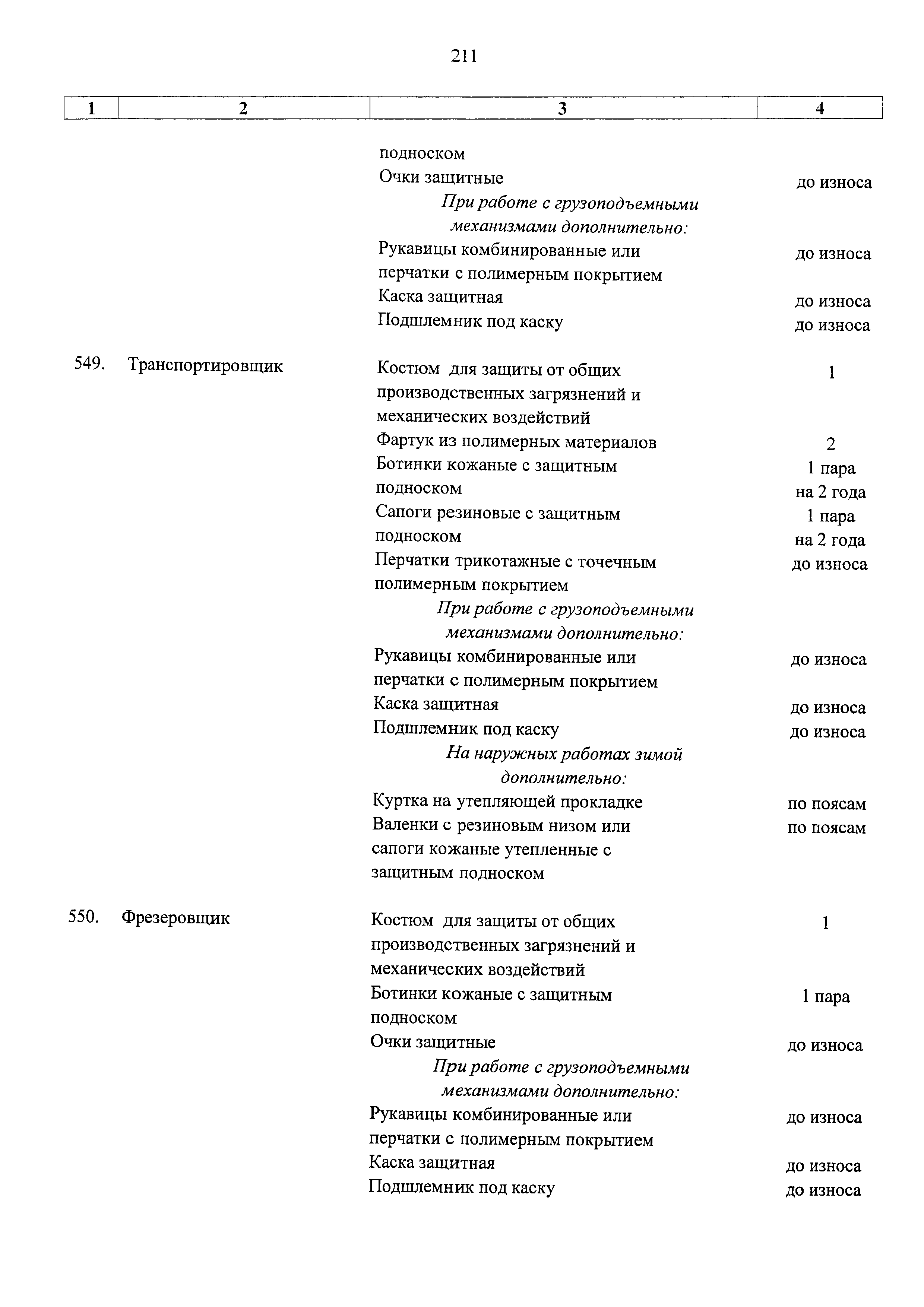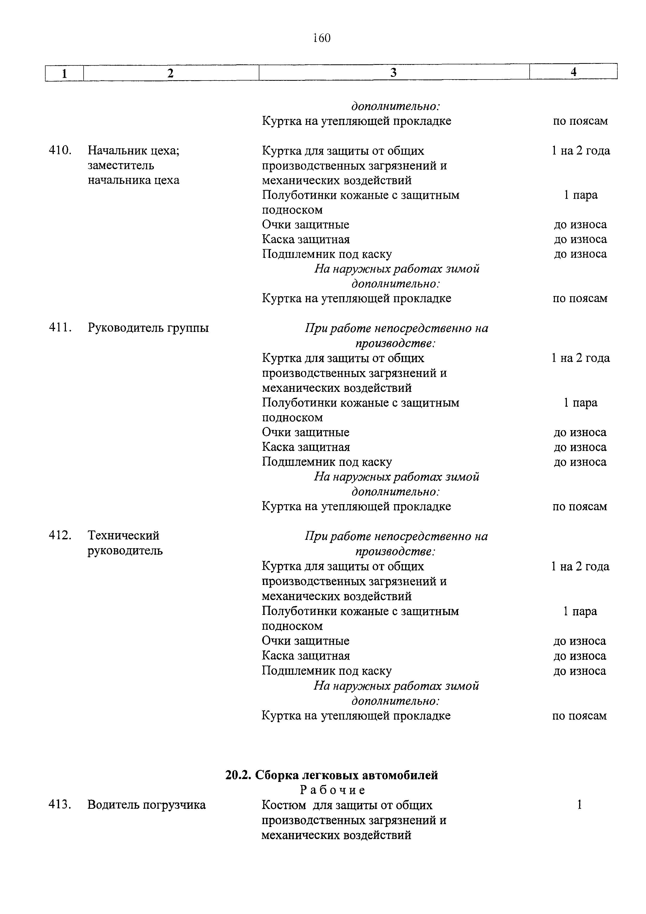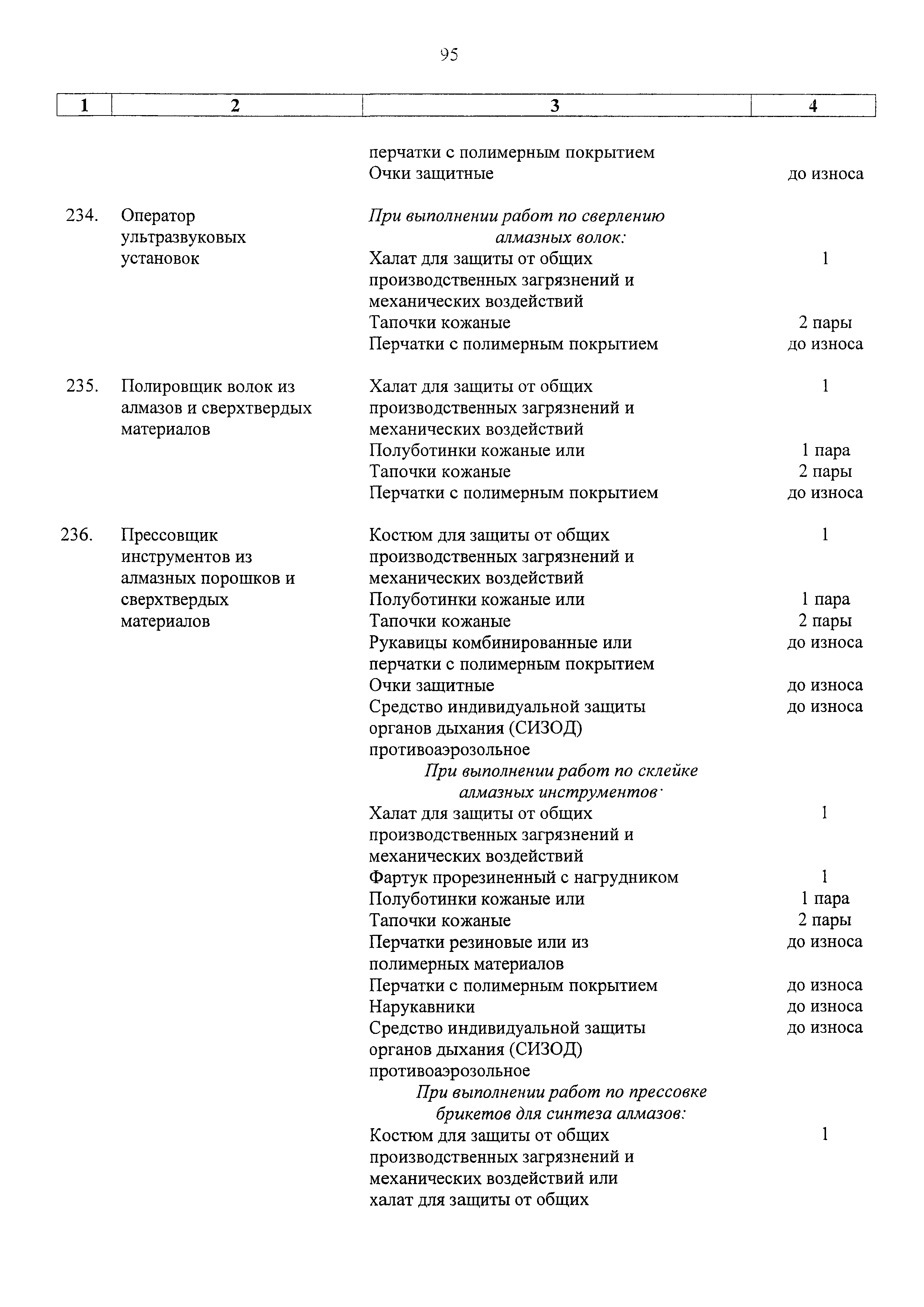 Типовые нормы бесплатной выдачи специальной одежды, специальной обуви и других средств индивидуальной защиты работникам машиностроительных и металлообрабатывающих производств, занятым на работах с вредными и (или) опасными условиями труда, а также на работах, выполняемых в особых температурных условиях или связанных с загрязнением| Статус: | действует | | Название рус.: | Типовые нормы бесплатной выдачи специальной одежды, специальной обуви и других средств индивидуальной защиты работникам машиностроительных и металлообрабатывающих производств, занятым на работах с вредными и (или) опасными условиями труда, а также на работах, выполняемых в особых температурных условиях или связанных с загрязнением | | Дата добавления в базу: | 01.09.2013 | | Дата актуализации: | 01.01.2021 | | Оглавление: | 1. Чугунолитейное производство и литье цветных металлов 2. Производства порошковой металлургии 3. Производство электродов и флюсов 4. Кузнечно-прессовые и термические работы 5. Сварочные работы 6. Работы по металлопокрытиям и окраске 7. Механическая обработка металлов; слесарные и слесарно-сборочные работы 8. Производство подшипников 9. Кузовное производство 10. Работы по производству и восстановлению напильников 11. Абразивное производство 12. Производство сверхтвердых материалов и инструмента из них 13. Производство шлифовальной шкурки 14. Разборка, ремонт, сборка и испытание тягачей, автомобилей и тракторов 15. Испытание двигателей и силовых установок 16. Производство мягких баков 17. Производство мипоры 18. Котельные работы и работы по металлическим конструкциям 19. Производство грузовых автомобилей 19.1 Сварка и сборка кабин 19.2. Сварка и сборка цельнометаллических кузовов 19.3. Сборка узлов 19.4. Сборка грузовых автомобилей 19.5. Подсборка узлов и агрегатов 20. Производство легковых автомобилей 20.1. Сборка-сварка кузовов 20.2. Сборка легковых автомобилей 21. Производство автокомпонентов 22. Агрегатное производство 23. Производство спецтехники 23.1. Сборочные, сварочные, окрасочные работы 23.2. Сборка автомобилей и узлов 23.3. Тюнинг автомобилей 24. Инструментальное производство 25. Общие профессии машиностроительных и металлообрабатывающих производств Примечания к типовым нормам | | Утверждён: | 14.12.2010 Минздравсоцразвития России (1104н)