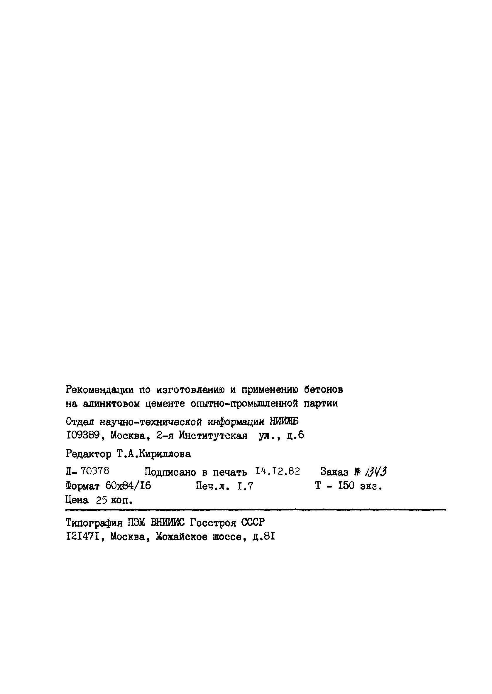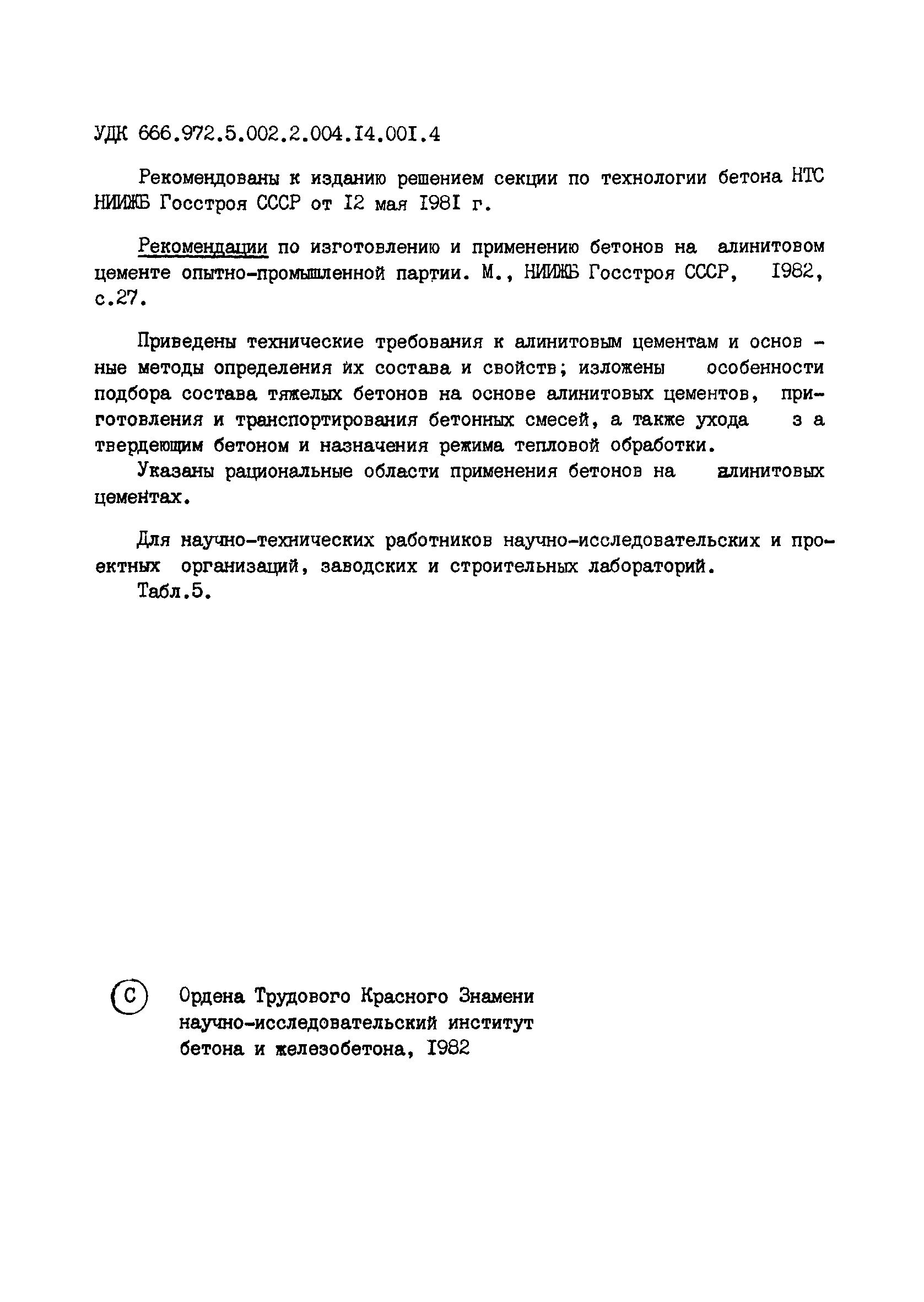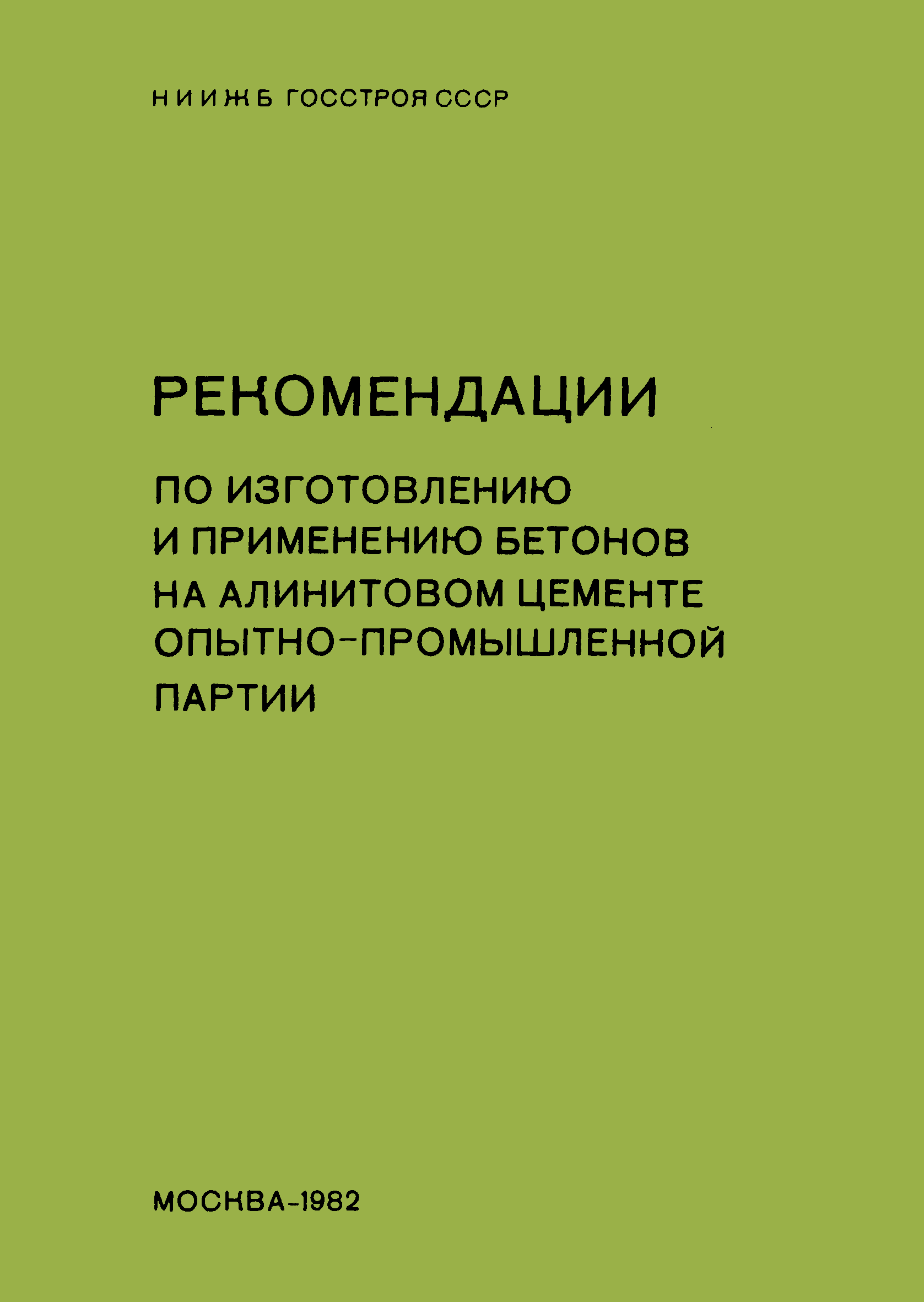 | Название рус.: | Рекомендации по изготовлению и применению бетонов на алинитовом цементе опытно-промышленной партии |