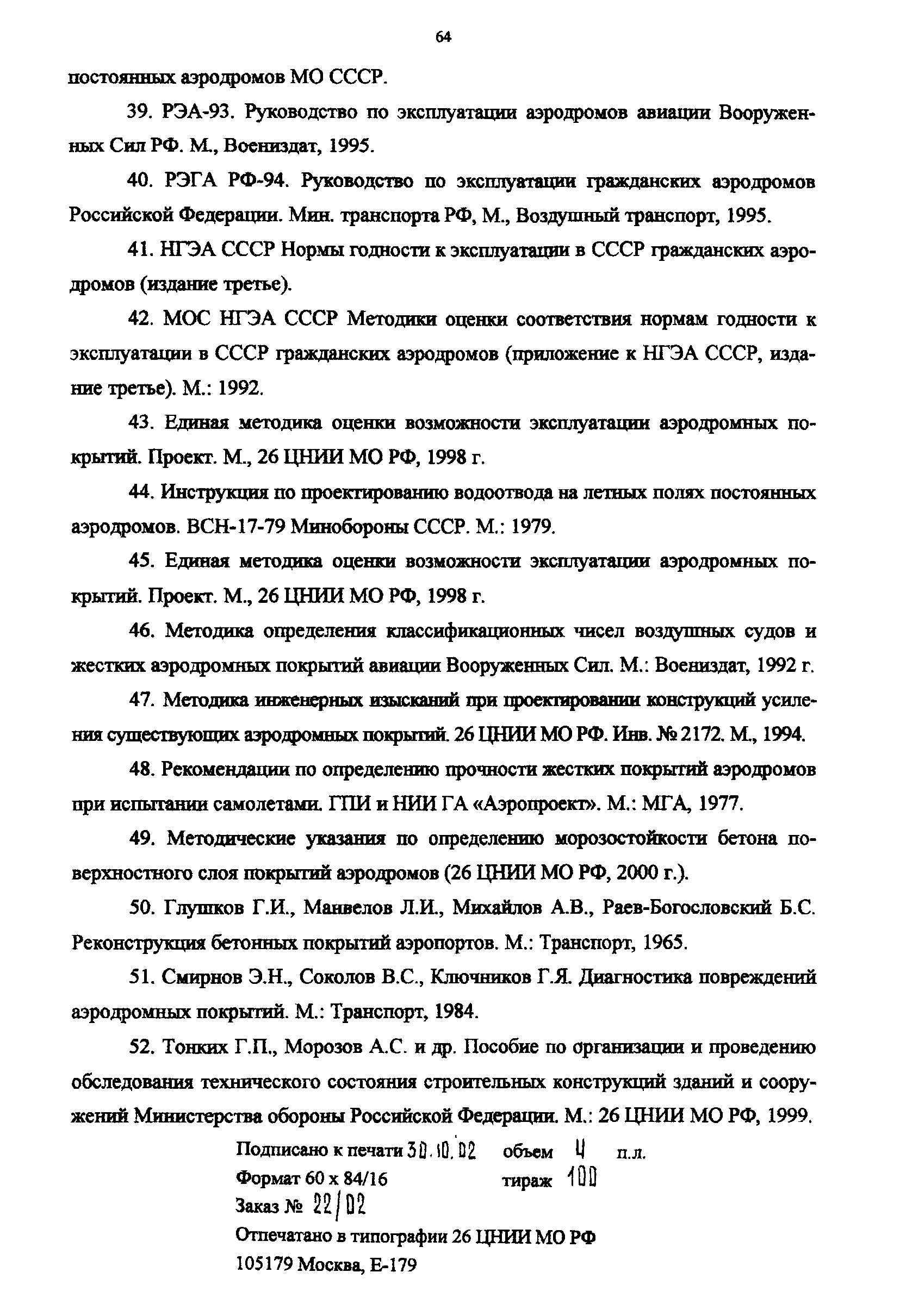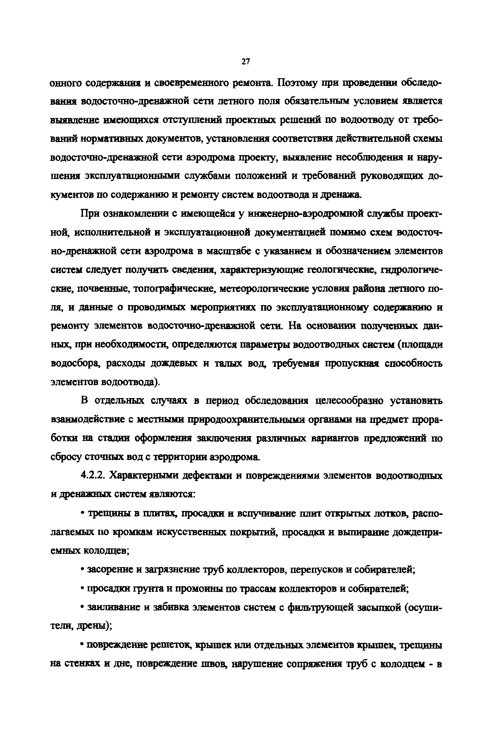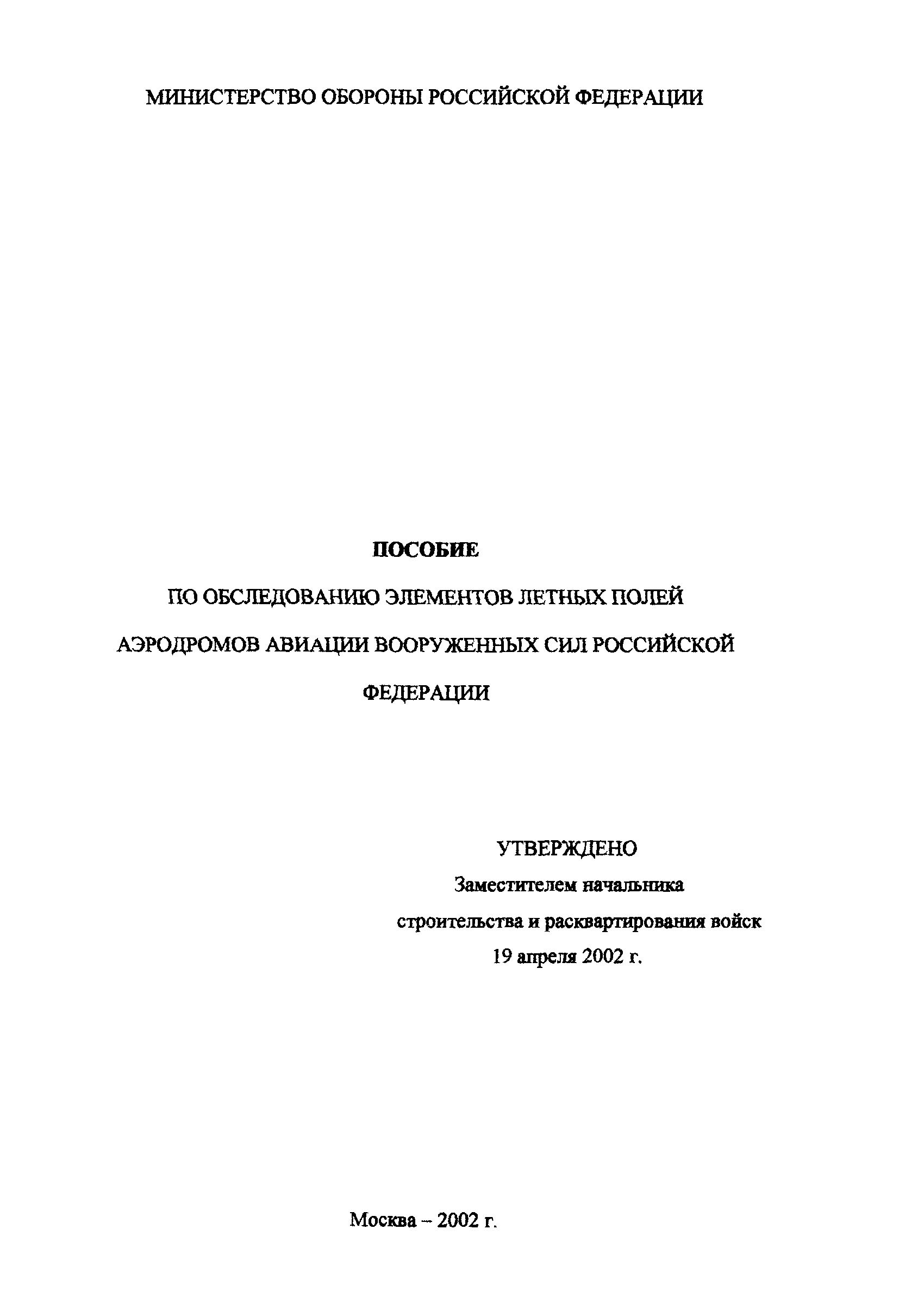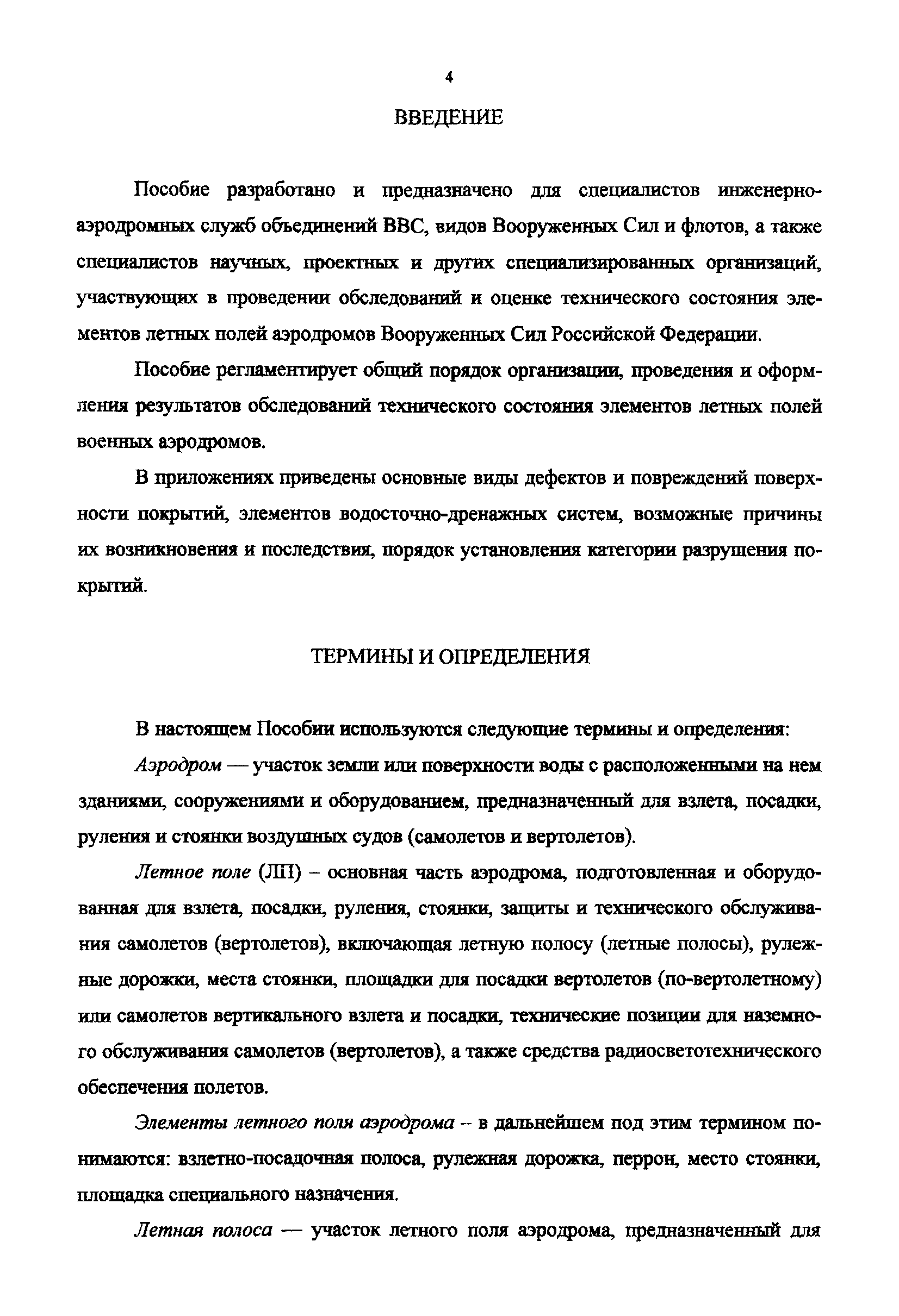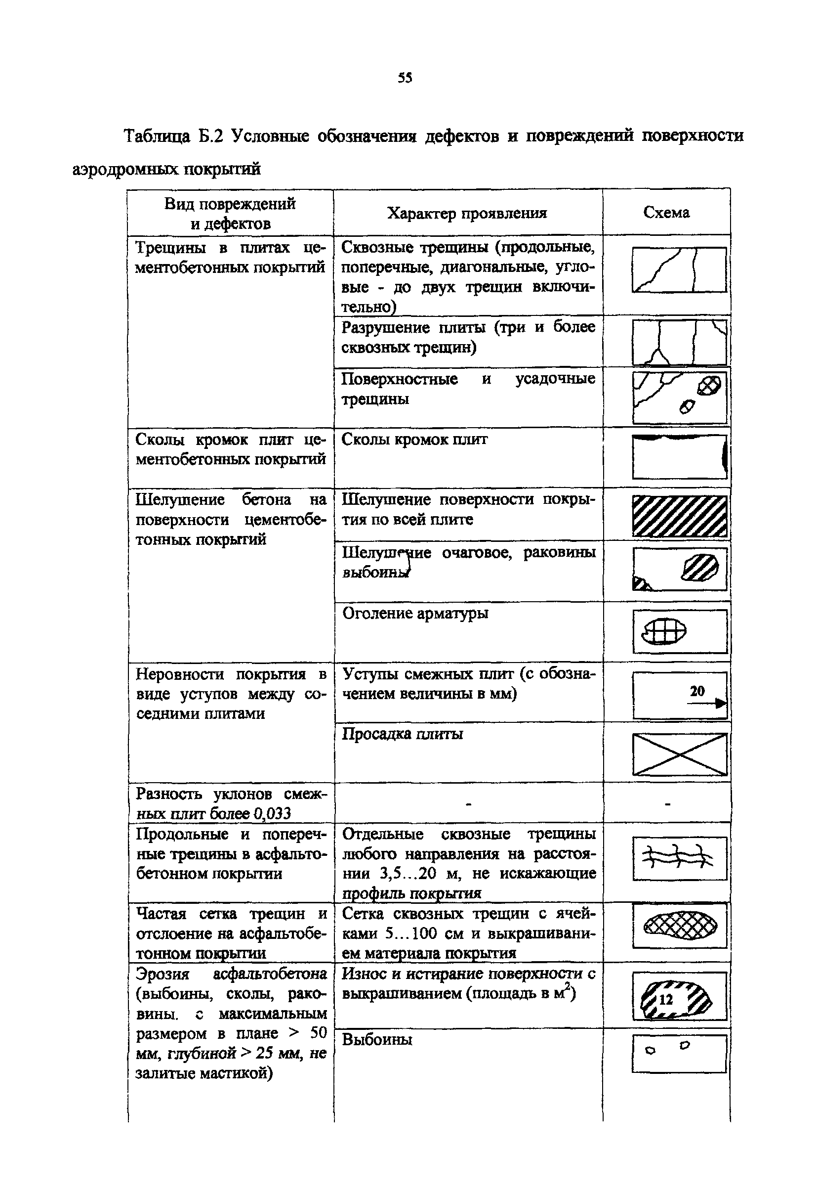 | Область применения: | Пособие разработано и предназначено для специалистов инженерно- аэродромных служб специалистов ВВС, видов Вооруженных Сил и флотов, а также специалистов научных, проектных и других специализированных организаций. Участвующих в проведении обследований и оценке технического состояния элементов летных полей аэродромов Вооруженных Сил Российской Федерации. Пособие регламентирует общий порядок организации, проведения и оформления результатов обследований технического состояния элементов летных полей военных аэродромов. В приложениях приведены основные виды дефектов и повреждений поверхности покрытий, элементов водосточно-дренажных систем, возможные причины их возникновения и последствия, порядок установления категории разрушения покрытий. |