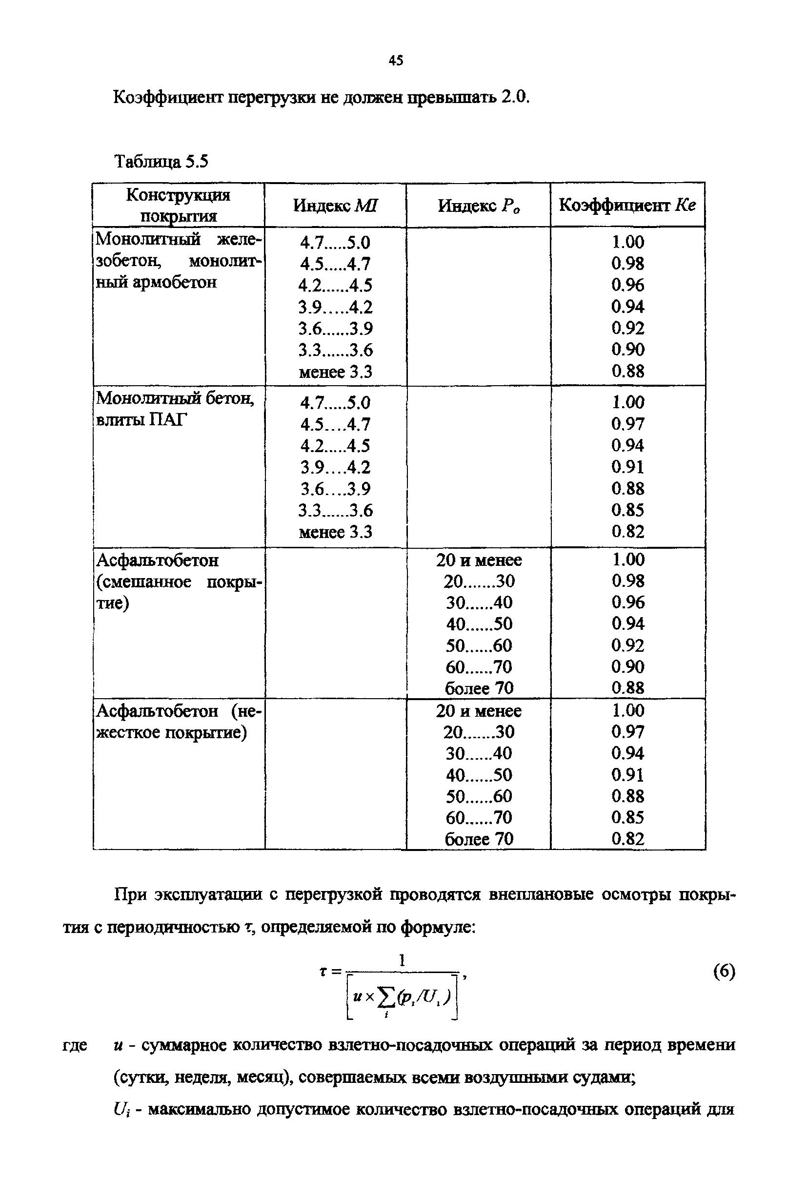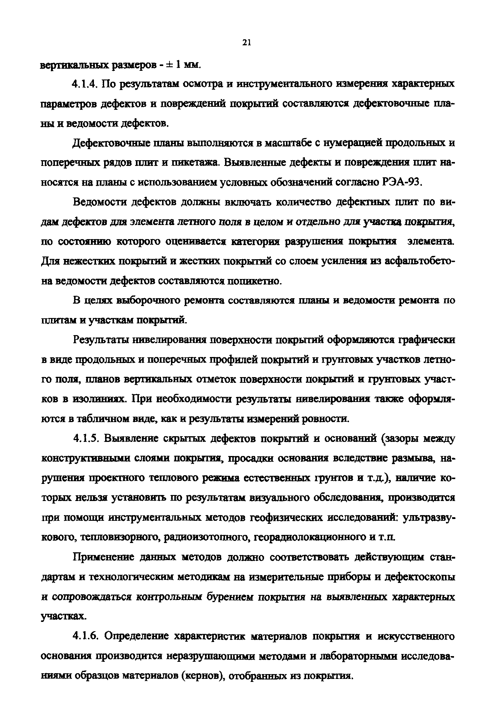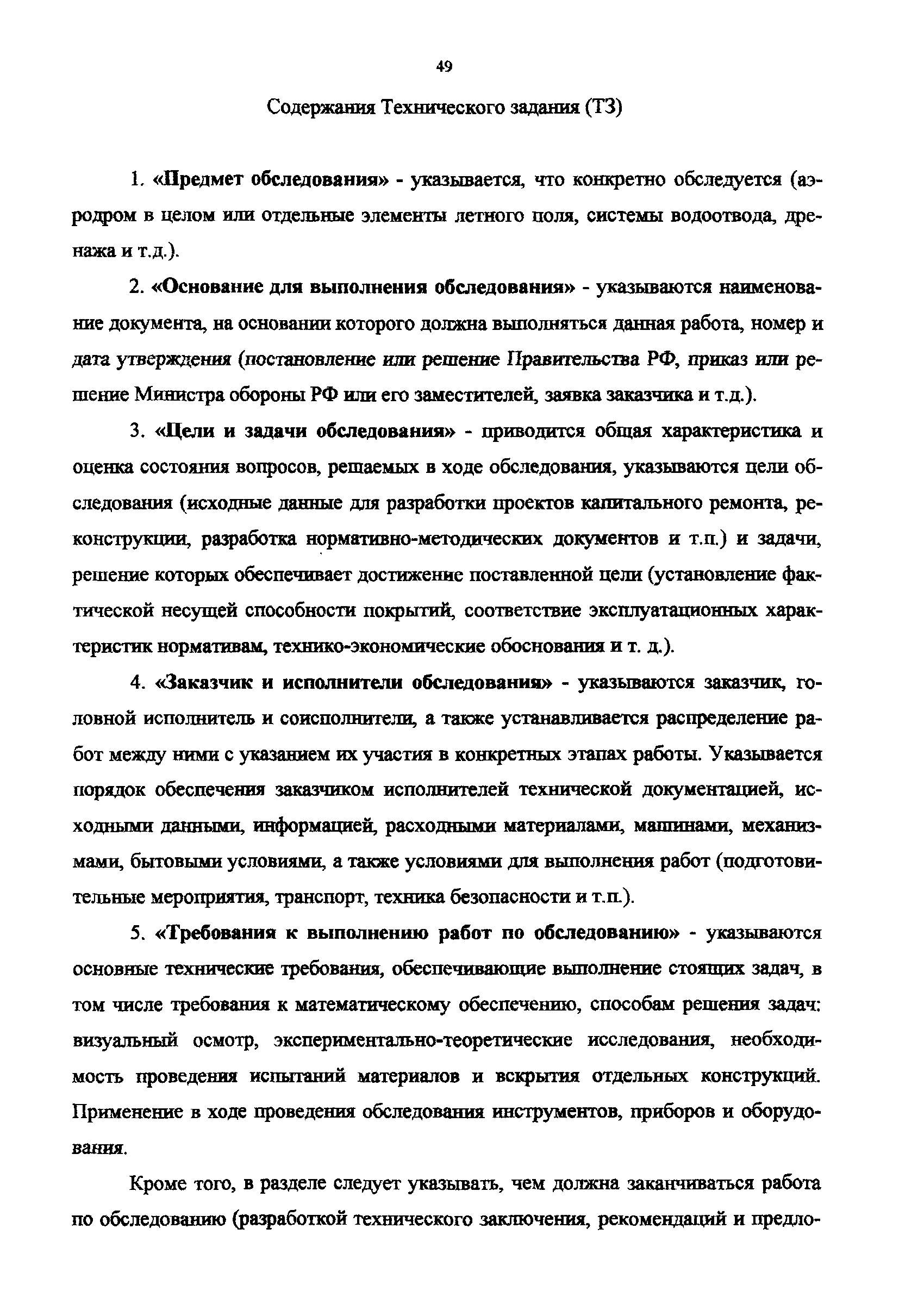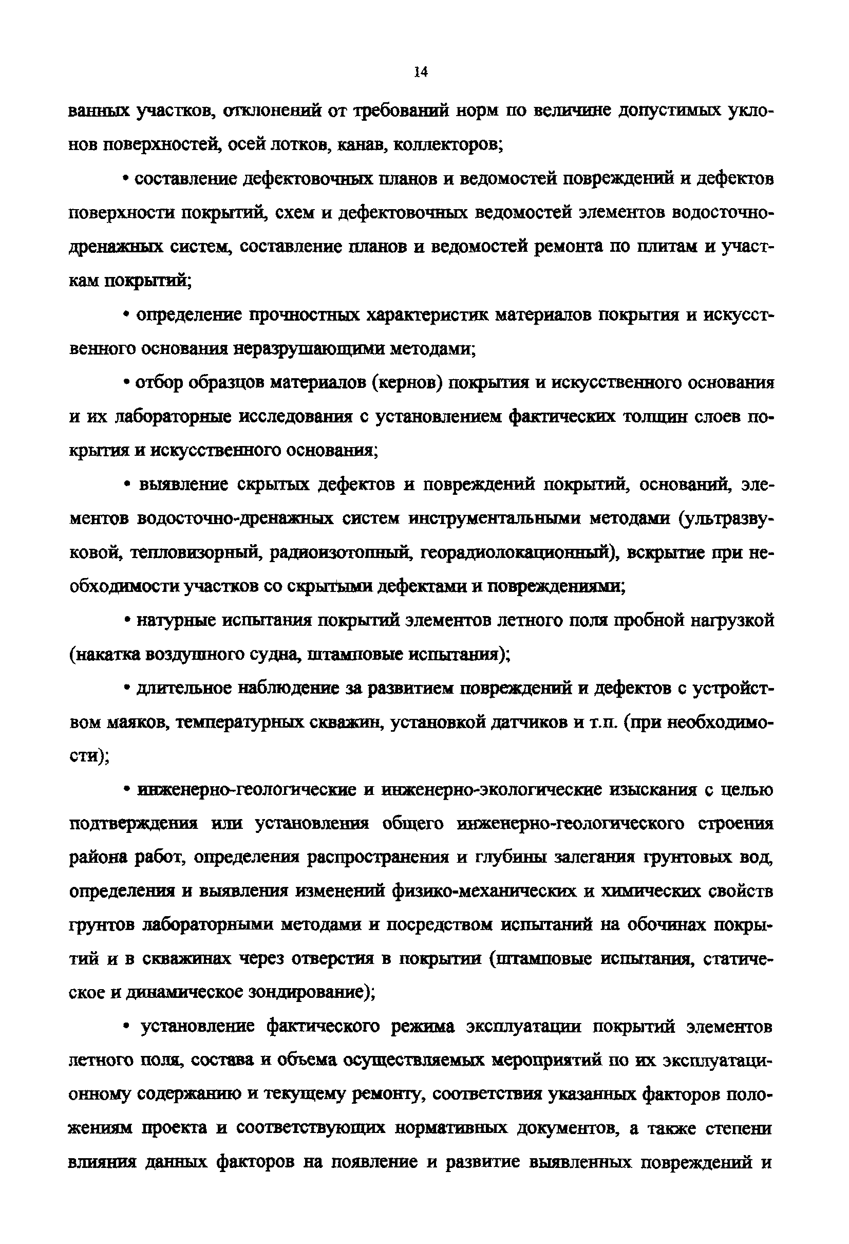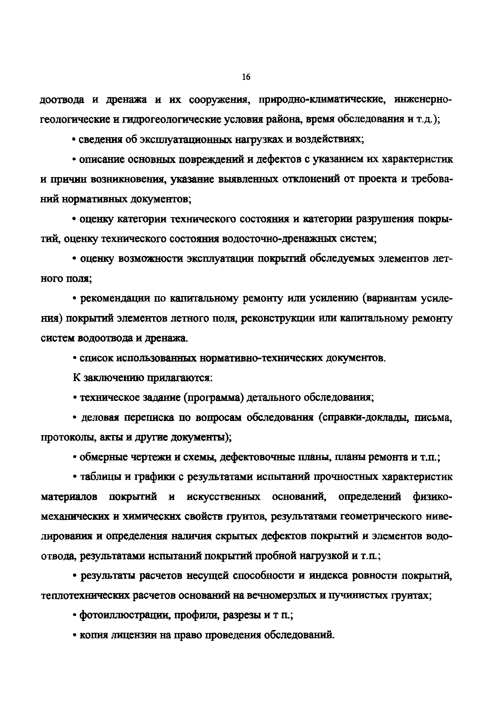 | Область применения: | Пособие разработано и предназначено для специалистов инженерно- аэродромных служб специалистов ВВС, видов Вооруженных Сил и флотов, а также специалистов научных, проектных и других специализированных организаций. Участвующих в проведении обследований и оценке технического состояния элементов летных полей аэродромов Вооруженных Сил Российской Федерации. Пособие регламентирует общий порядок организации, проведения и оформления результатов обследований технического состояния элементов летных полей военных аэродромов. В приложениях приведены основные виды дефектов и повреждений поверхности покрытий, элементов водосточно-дренажных систем, возможные причины их возникновения и последствия, порядок установления категории разрушения покрытий. |