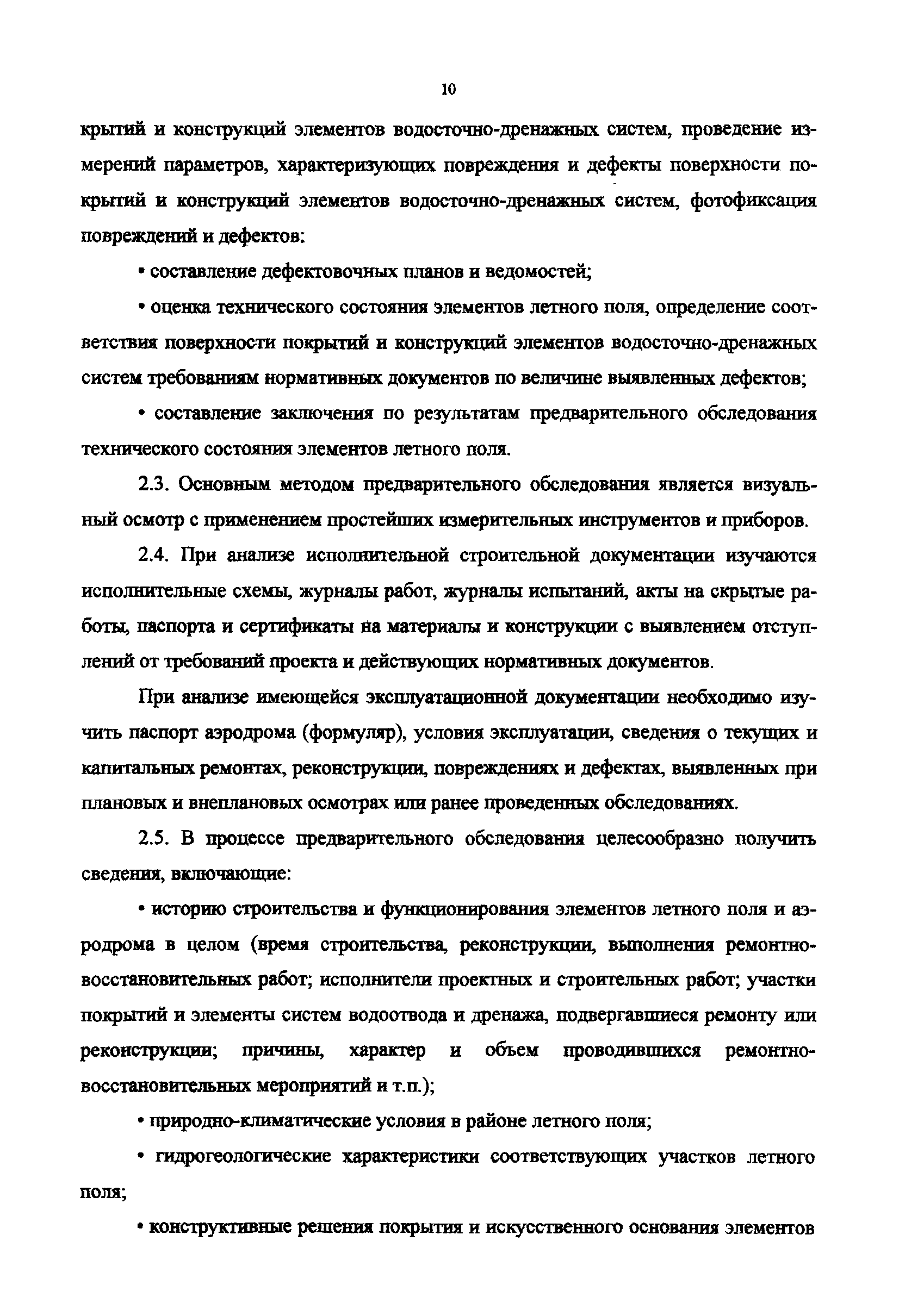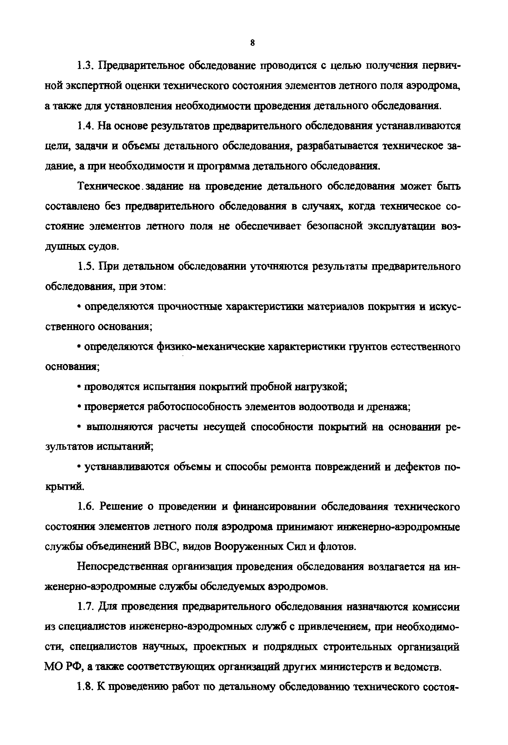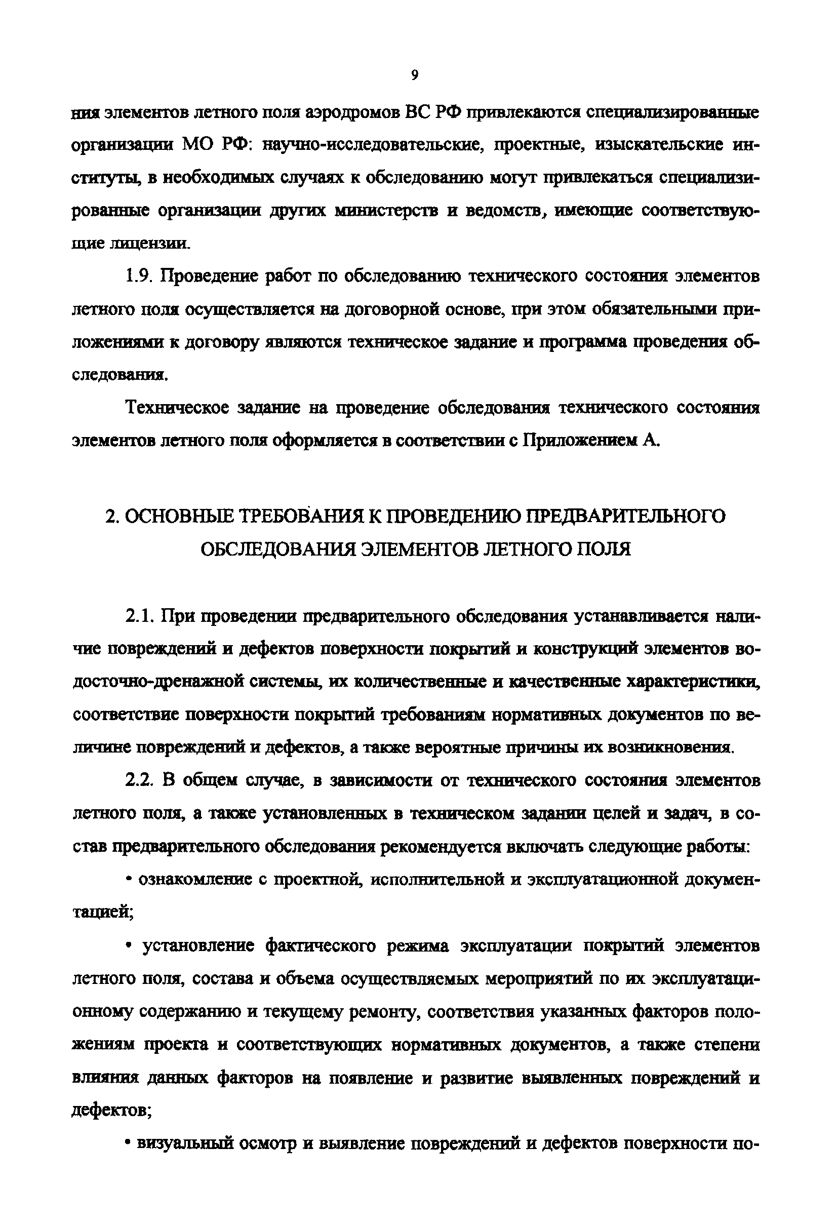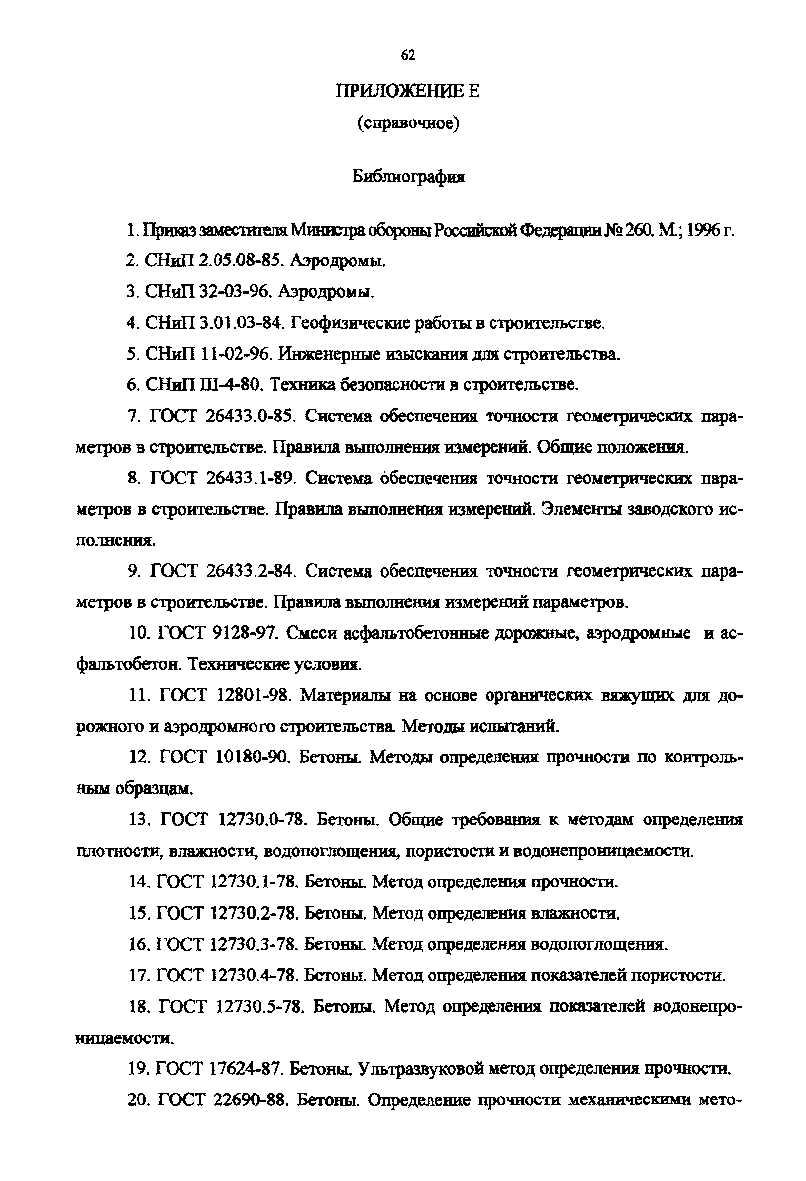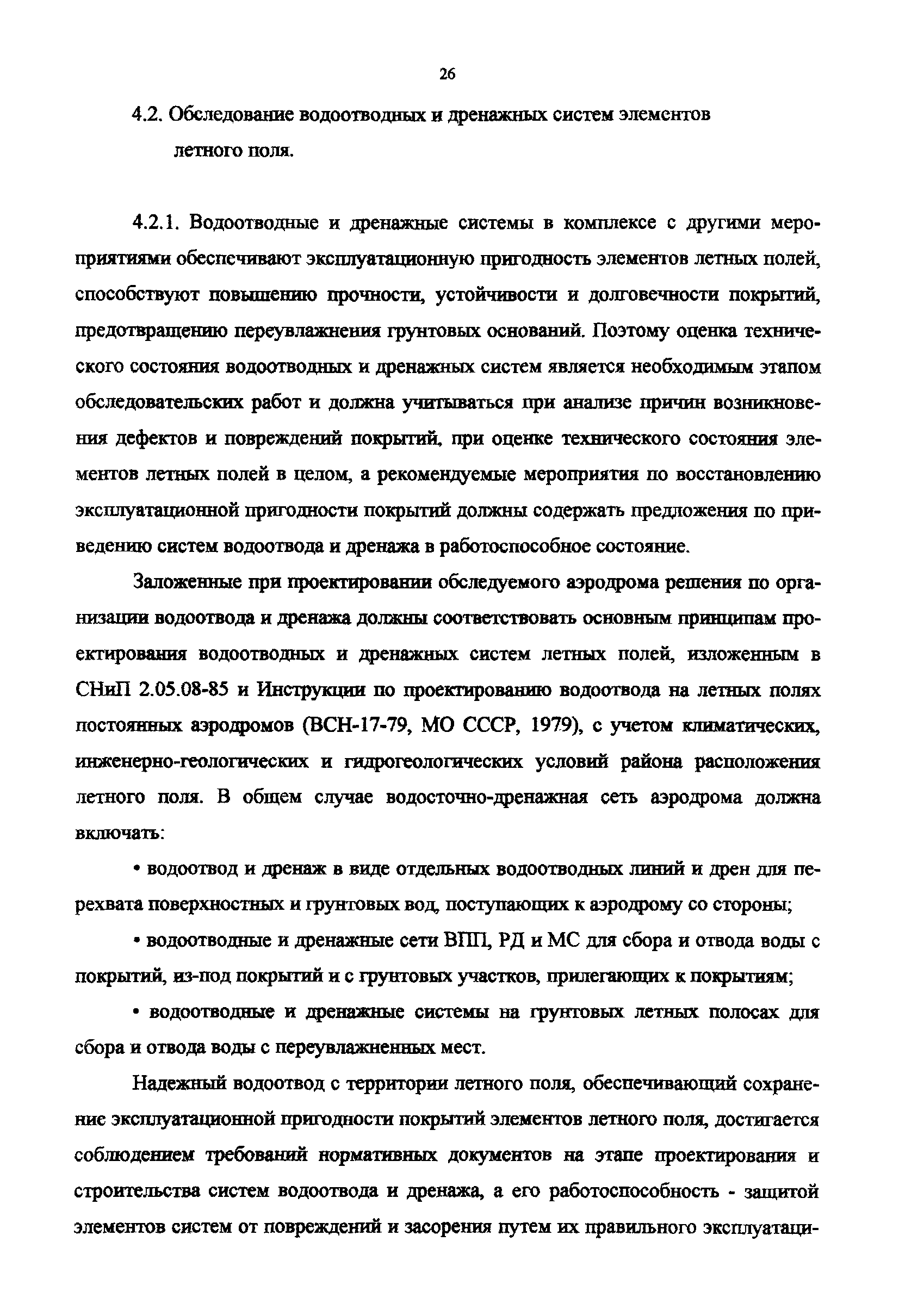 | Область применения: | Пособие разработано и предназначено для специалистов инженерно- аэродромных служб специалистов ВВС, видов Вооруженных Сил и флотов, а также специалистов научных, проектных и других специализированных организаций. Участвующих в проведении обследований и оценке технического состояния элементов летных полей аэродромов Вооруженных Сил Российской Федерации. Пособие регламентирует общий порядок организации, проведения и оформления результатов обследований технического состояния элементов летных полей военных аэродромов. В приложениях приведены основные виды дефектов и повреждений поверхности покрытий, элементов водосточно-дренажных систем, возможные причины их возникновения и последствия, порядок установления категории разрушения покрытий. |