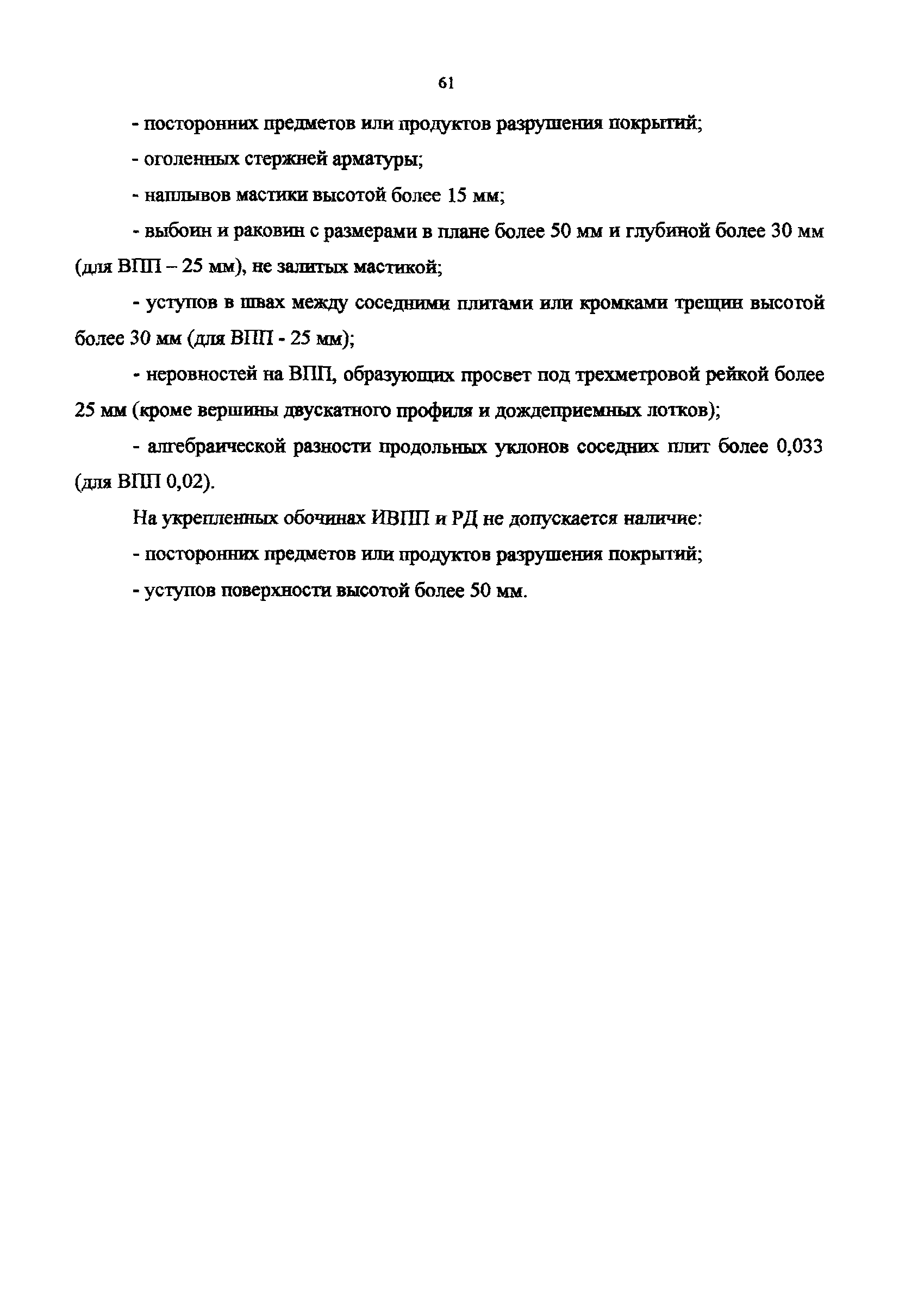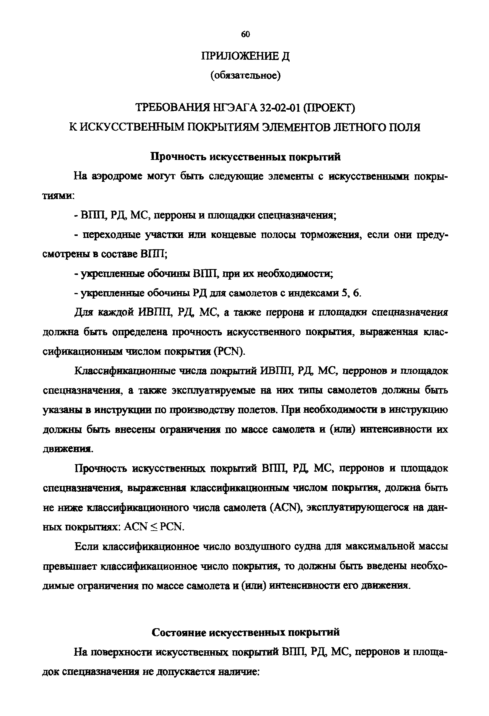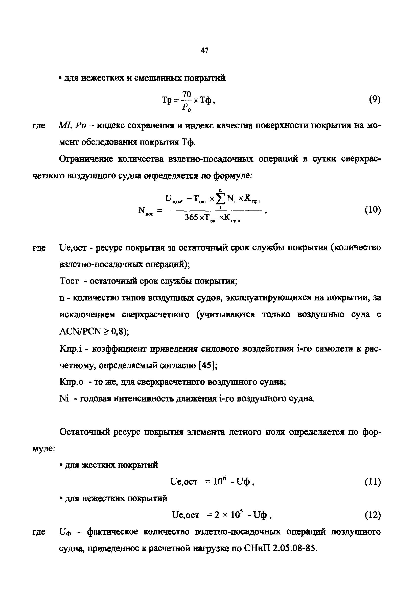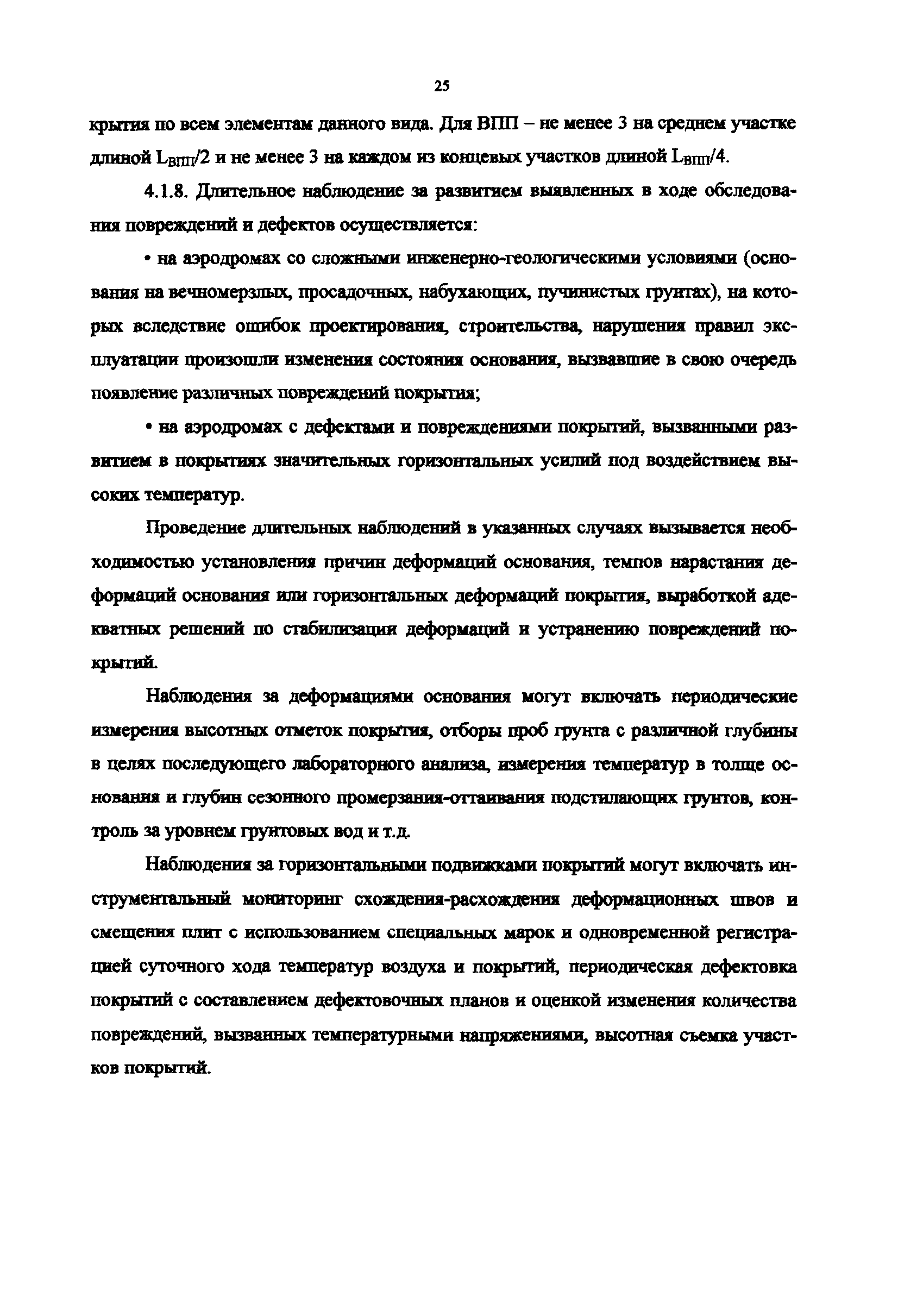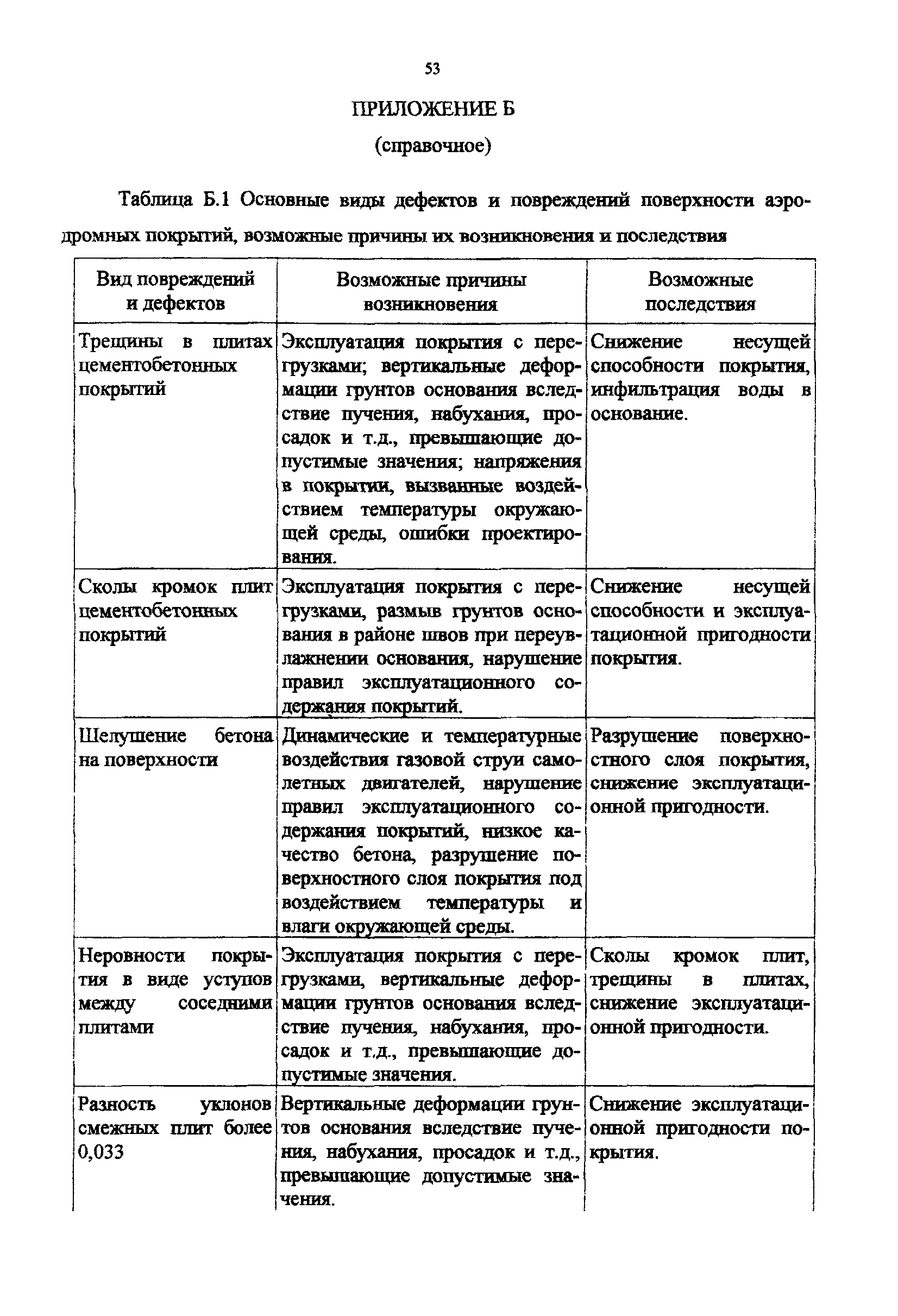 | Область применения: | Пособие разработано и предназначено для специалистов инженерно- аэродромных служб специалистов ВВС, видов Вооруженных Сил и флотов, а также специалистов научных, проектных и других специализированных организаций. Участвующих в проведении обследований и оценке технического состояния элементов летных полей аэродромов Вооруженных Сил Российской Федерации. Пособие регламентирует общий порядок организации, проведения и оформления результатов обследований технического состояния элементов летных полей военных аэродромов. В приложениях приведены основные виды дефектов и повреждений поверхности покрытий, элементов водосточно-дренажных систем, возможные причины их возникновения и последствия, порядок установления категории разрушения покрытий. |