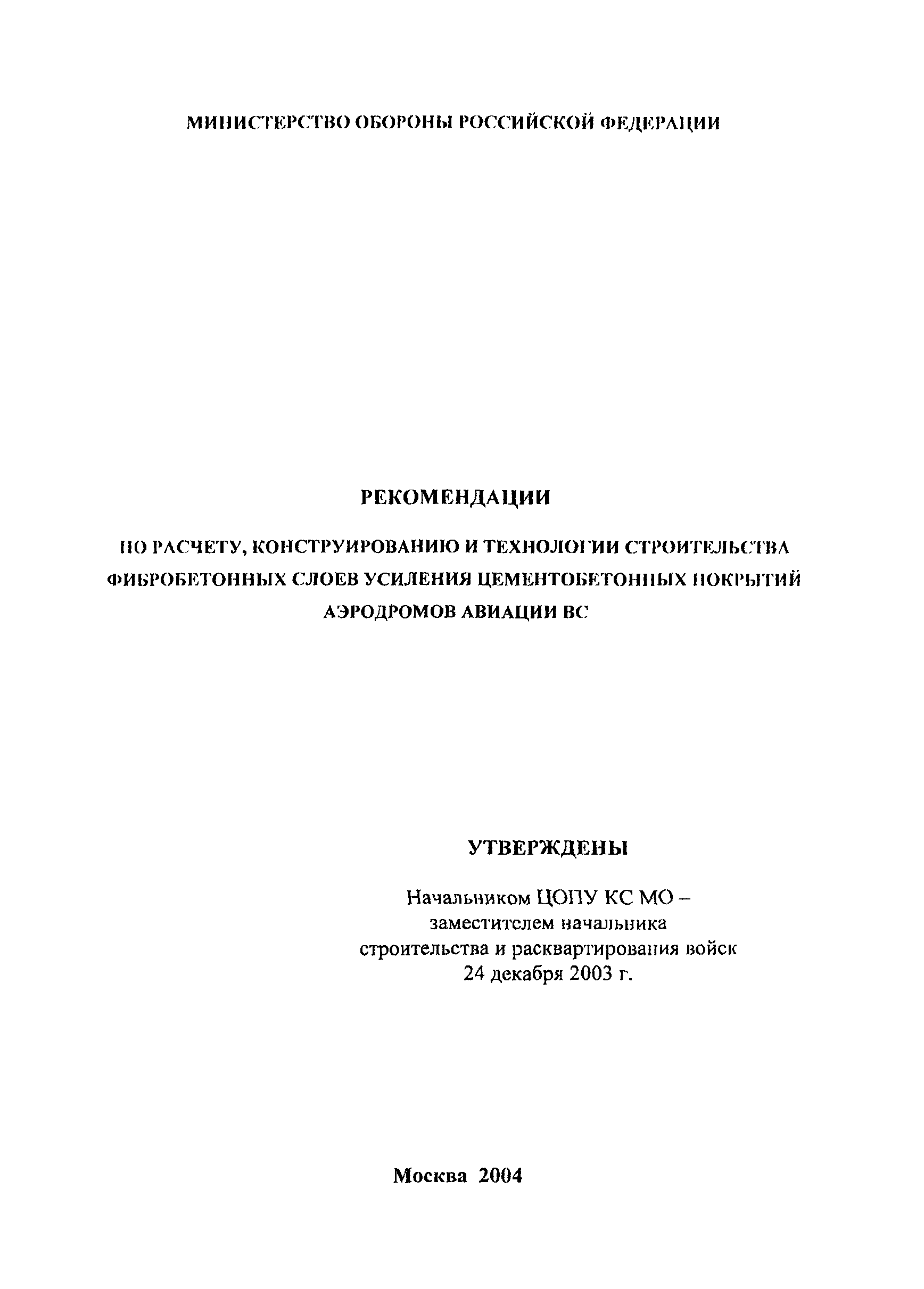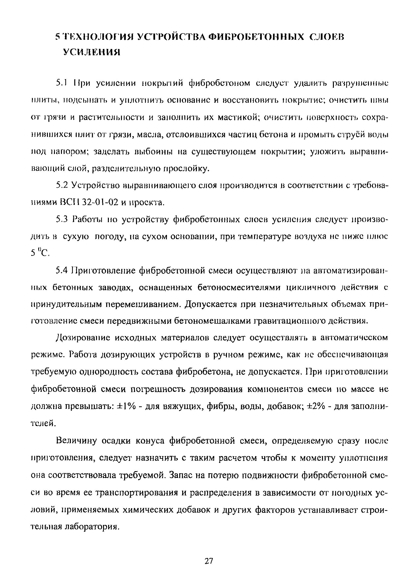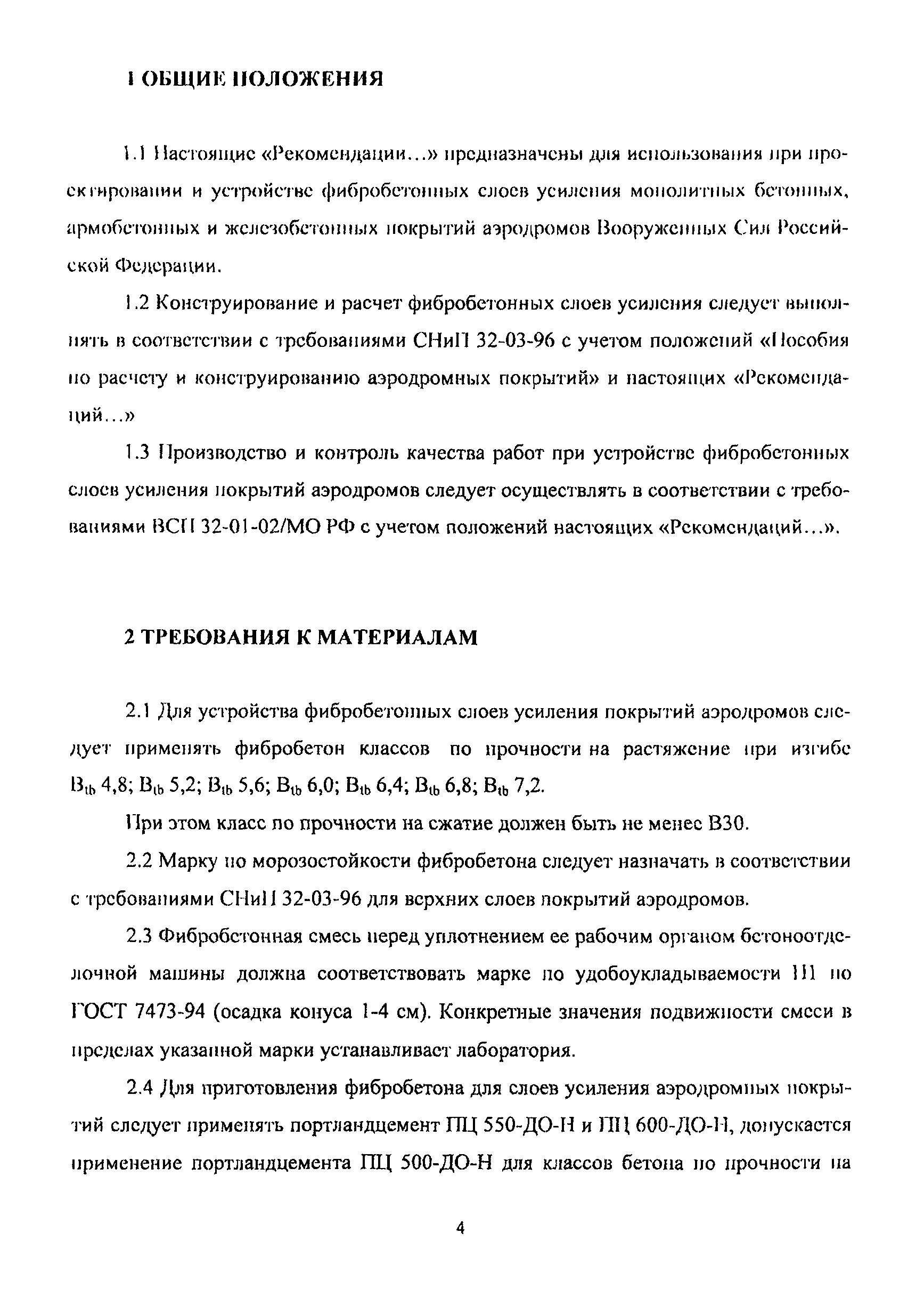 | Оглавление: | 1. Общие положения 2. Требования к материалам 3. Методика подбора состава фибробетона 4. Конструирование и расчет фибробетонных слоев усиления 5. Технология устройства фибробетонных слоев усиления 6. Контроль качества работ Приложение А. Пример подбора состава фибробетона Приложение Б. Перечень основных нормативно-методических документов, использованных при разработке "Рекомендаций" |