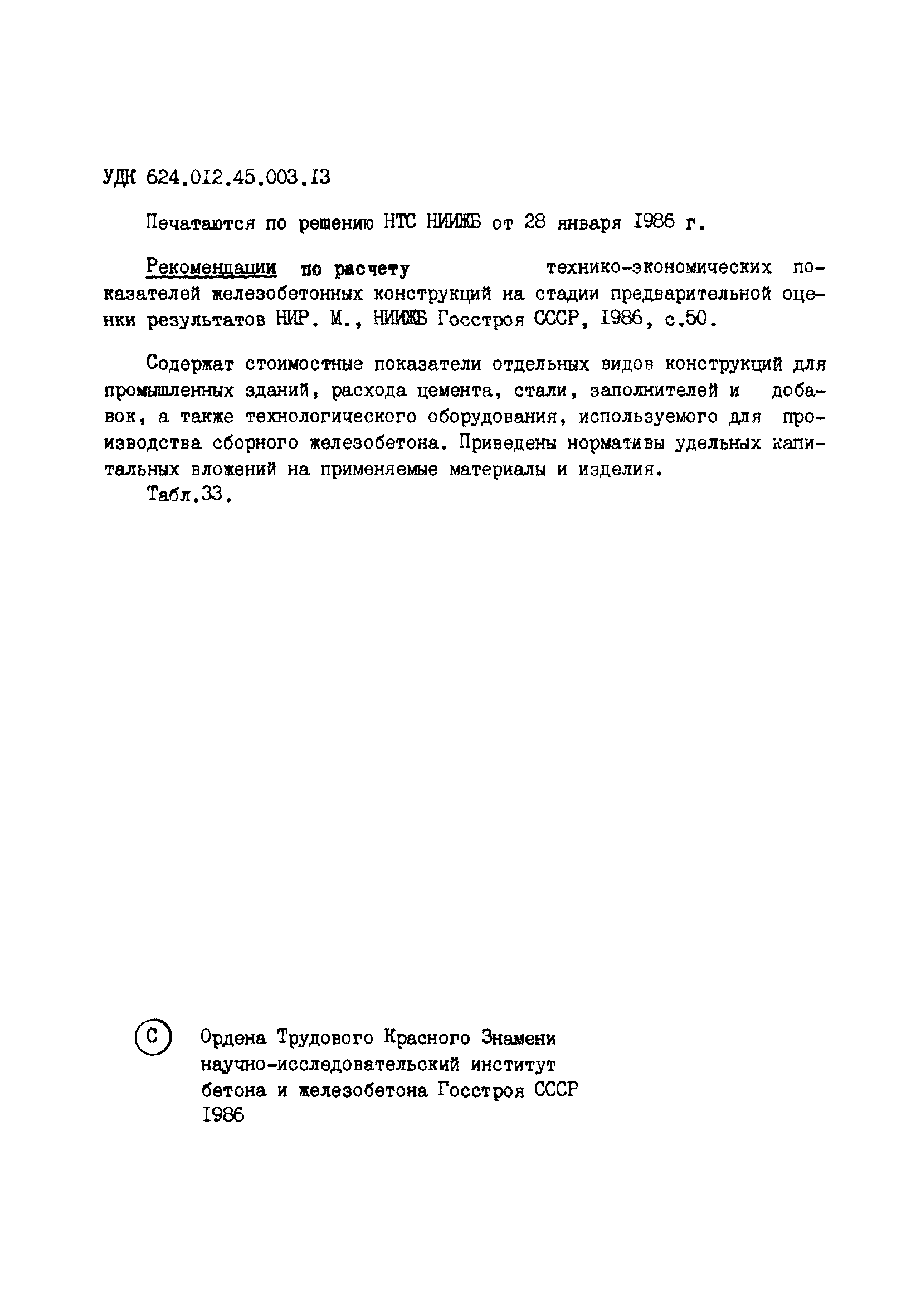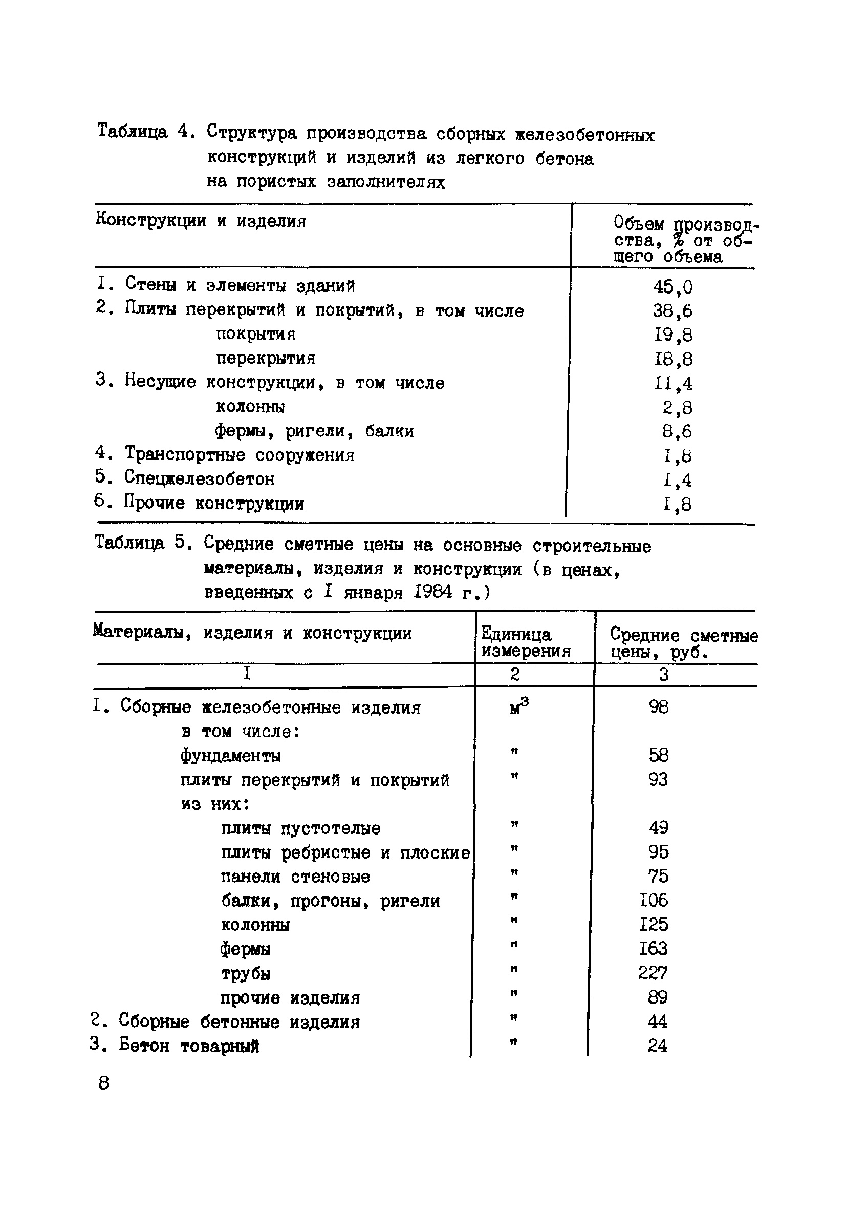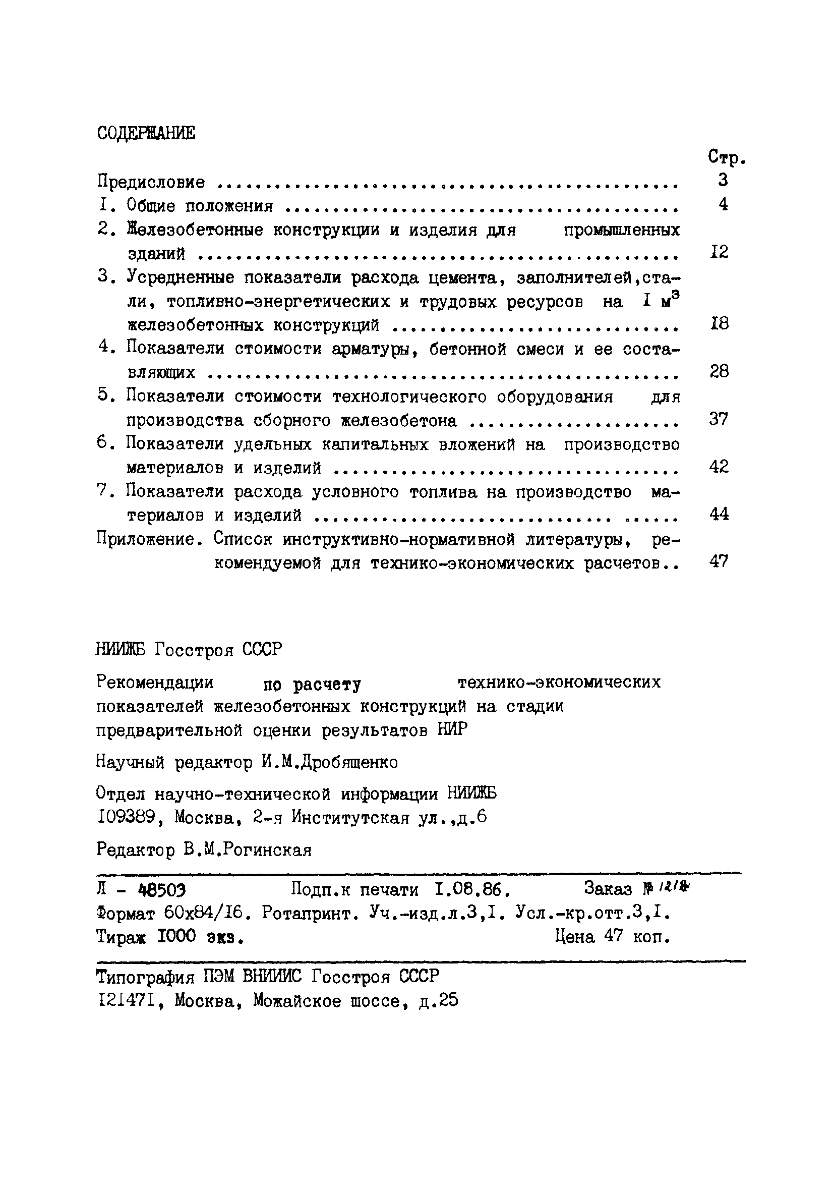 | Оглавление: | Предисловие 1. Общие положения 2. Железобетонные конструкции и изделия для промышленных зданий 3. Усредненные показатели расхода цемента, заполнителей, стали, топливно-энергетических и трудовых ресурсов на 1 м3 железобетонных конструкций 4. Показатели стоимости арматуры, бетонной смеси и ее составляющих 5. Показатели стоимости технологического оборудования для производства сборного железобетона 6. Показатели удельных капитальных вложений на производство материалов и изделий 7. Показатели расхода условного топлива на производство материалов и изделий Приложение. Список инструктивно-нормативной литературы, рекомендуемой для технико-экономических расчетов |