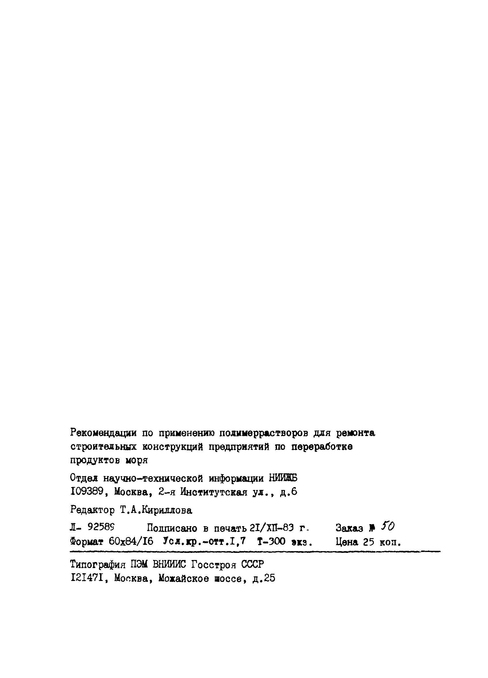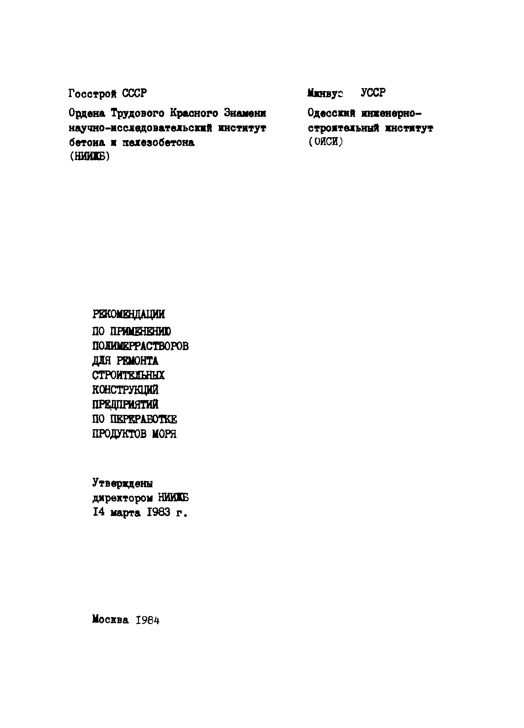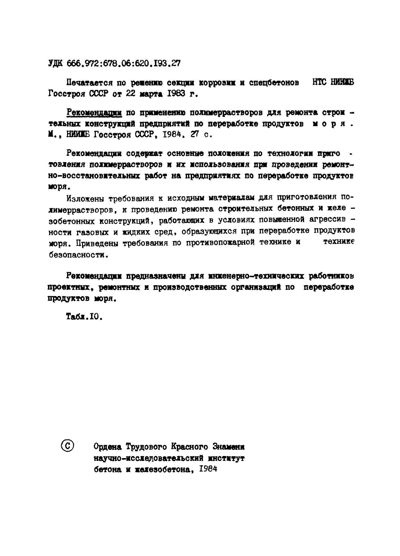 | Название рус.: | Рекомендации по применению полимеррастворов для ремонта строительных конструкций предприятий по переработке продуктов моря |