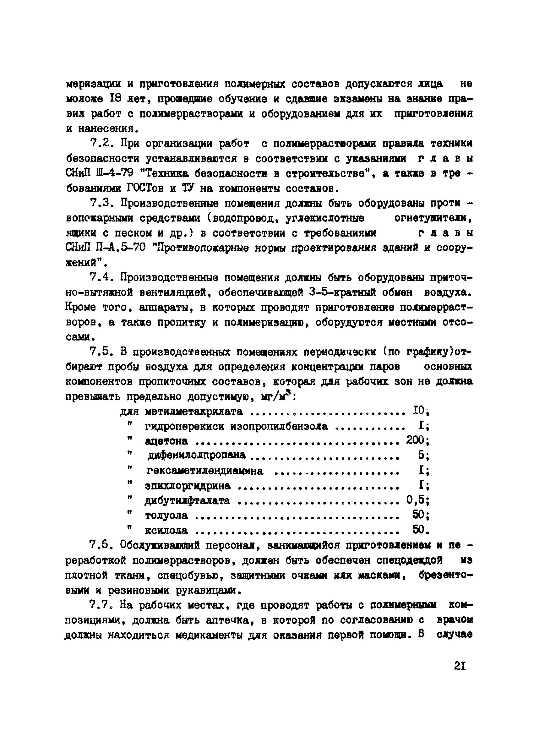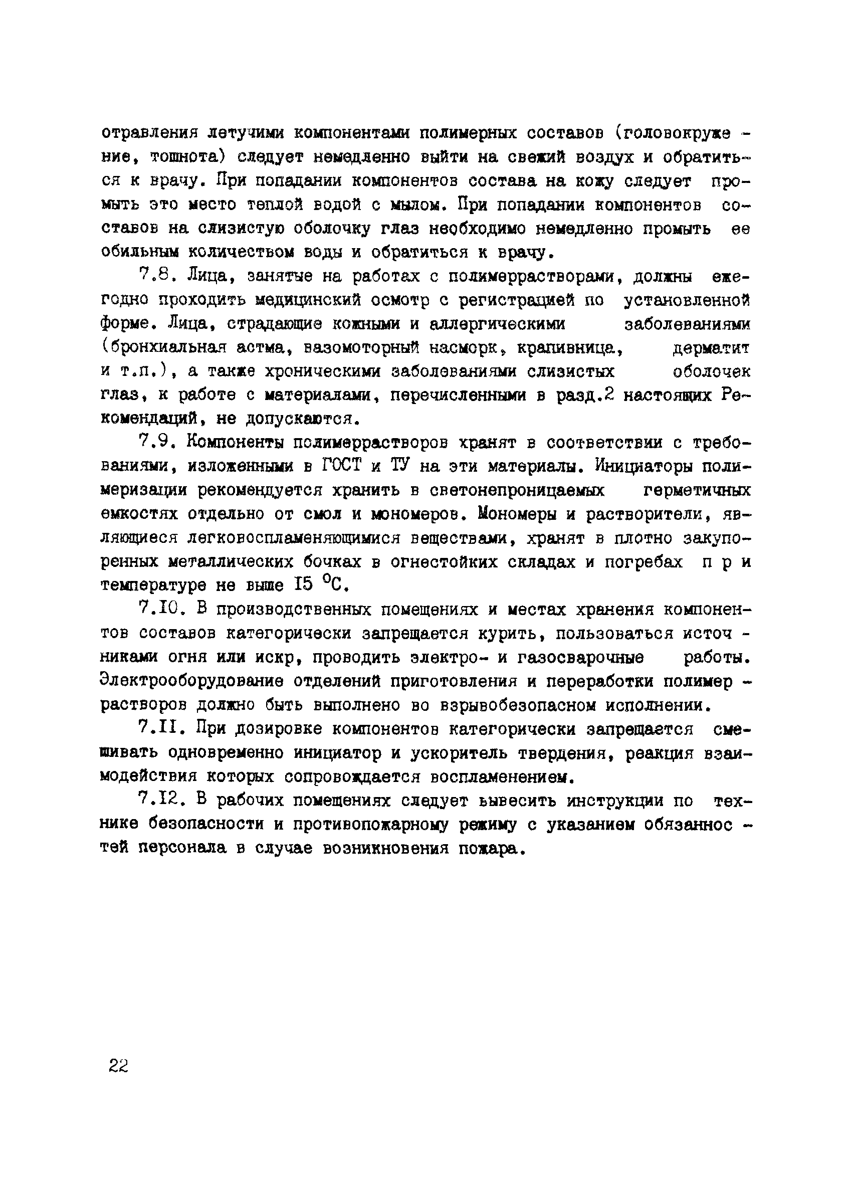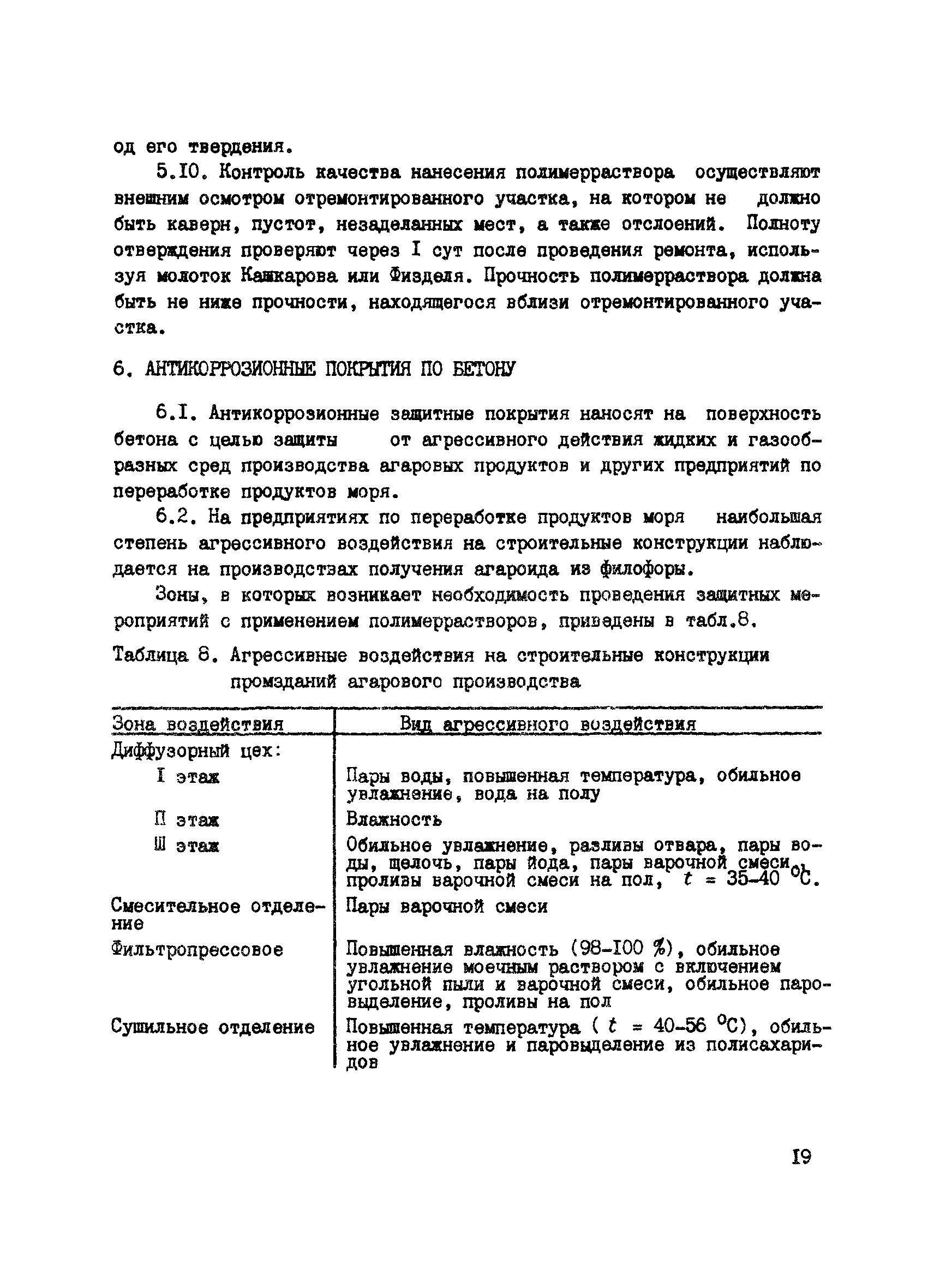 | Область применения: | Рекомендации содержат основные положения по технологии приготовления полимеррастворов и их использования при проведении ремонтно—восстановительных работ на предприятиях по переработке продуктов моря. Изложены требования к исходным материалам для приготовления полимеррастворов, к проведению ремонта строительных бетонных и железобетонных конструкций, работающих в условиях повышенной агрессивности газовых и жидких сред, образующихся при переработке продуктов моря. Приведены требования по противопожарной технике и технике безопасности. Рекомендации предназначены для инженерно—технических работников проектных, ремонтных и производственных организаций по переработке продуктов моря. |