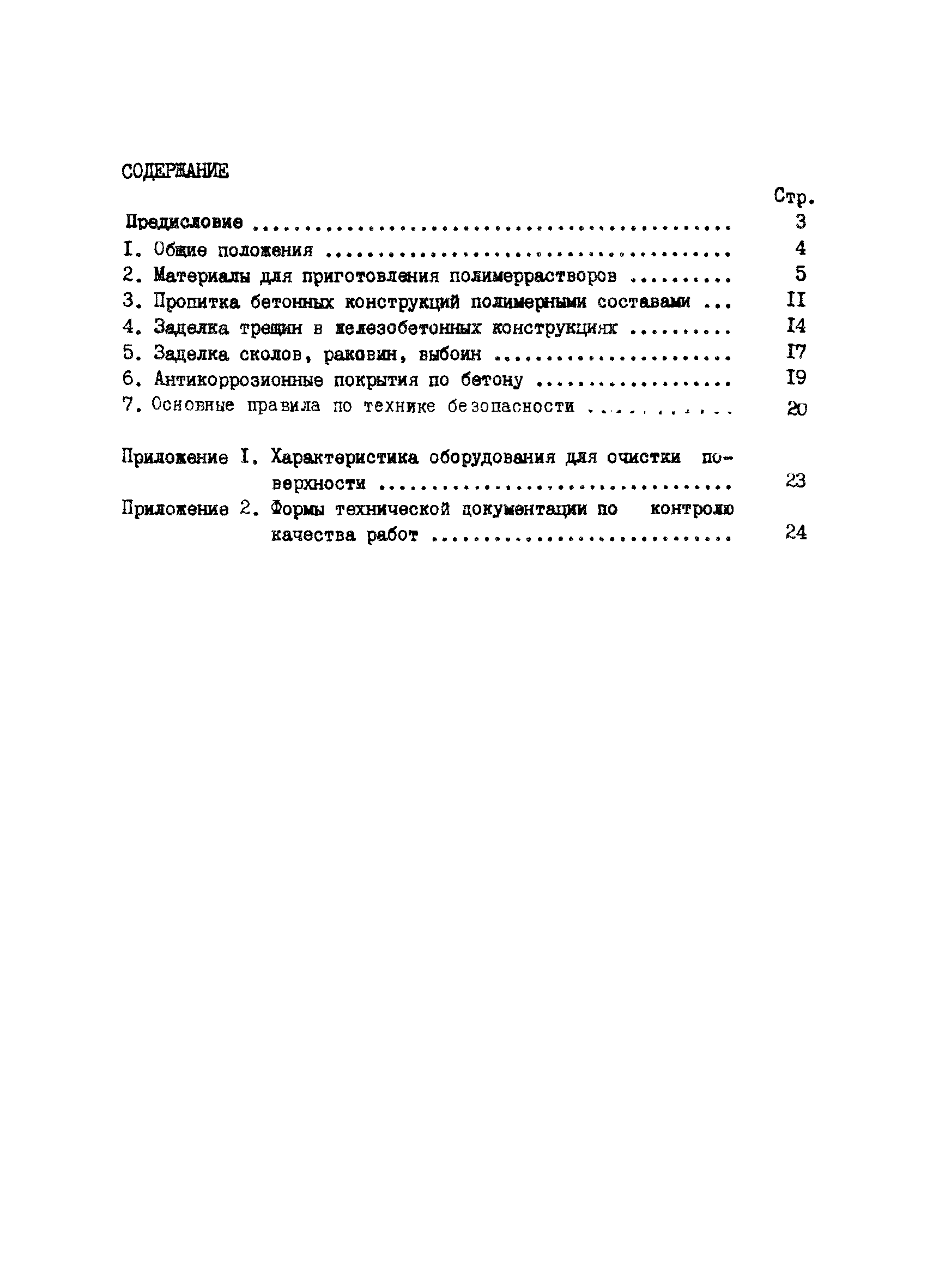 | Оглавление: | Предисловие 1. Общие положения 2. Материалы для приготовления полимеррастворов 3. Пропитка бетонных конструкций полимерными составами 4. Заделка трещин в железобетонных конструкциях 5. Заделка сколов, раковин, выбоин 6. Антикоррозионные покрытия по бетону 7. Основные правила по технике безопасности Приложение 1. Характеристика оборудования для очистки поверхности Приложение 2. Формы технической документации по контролю качества работ |