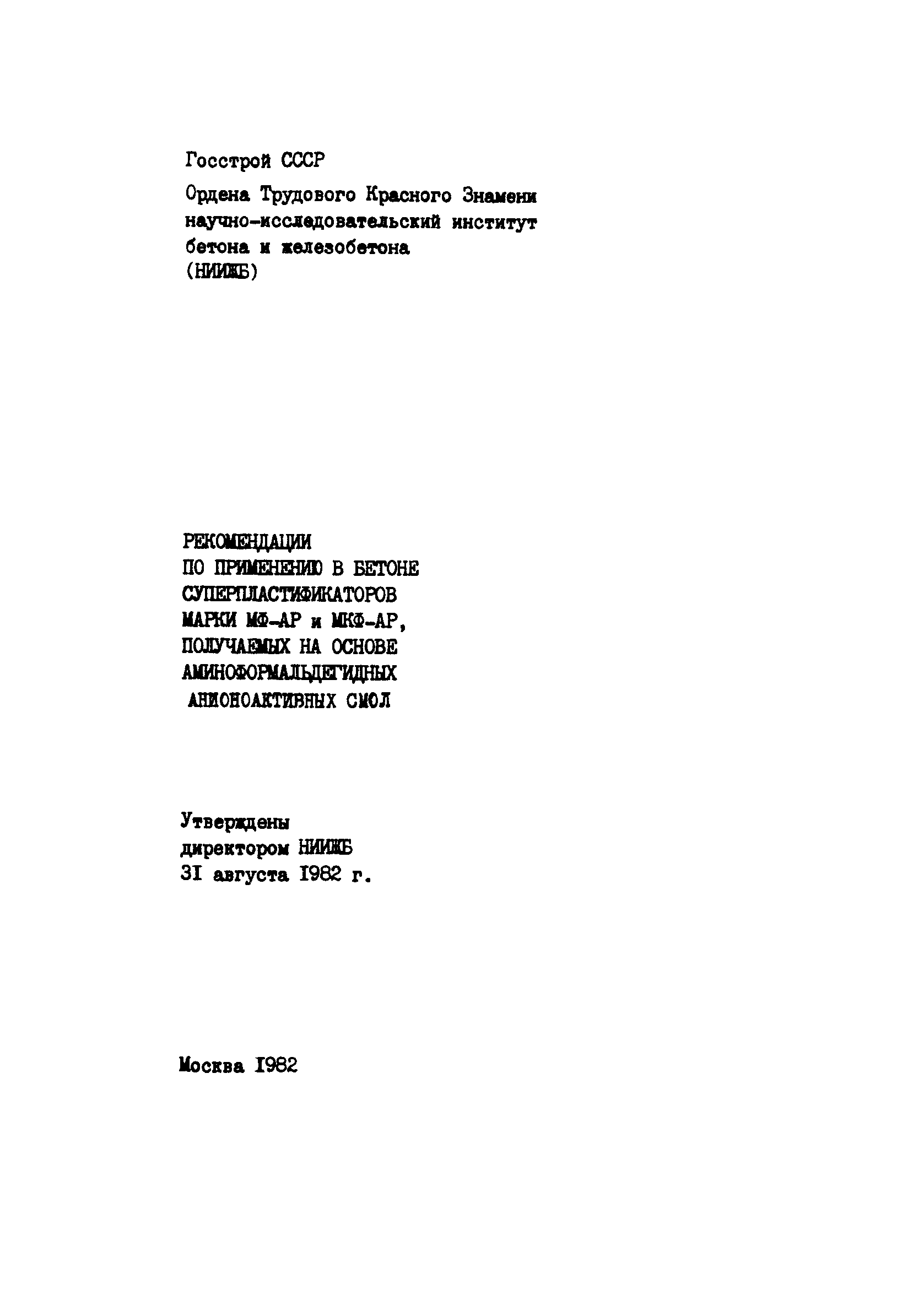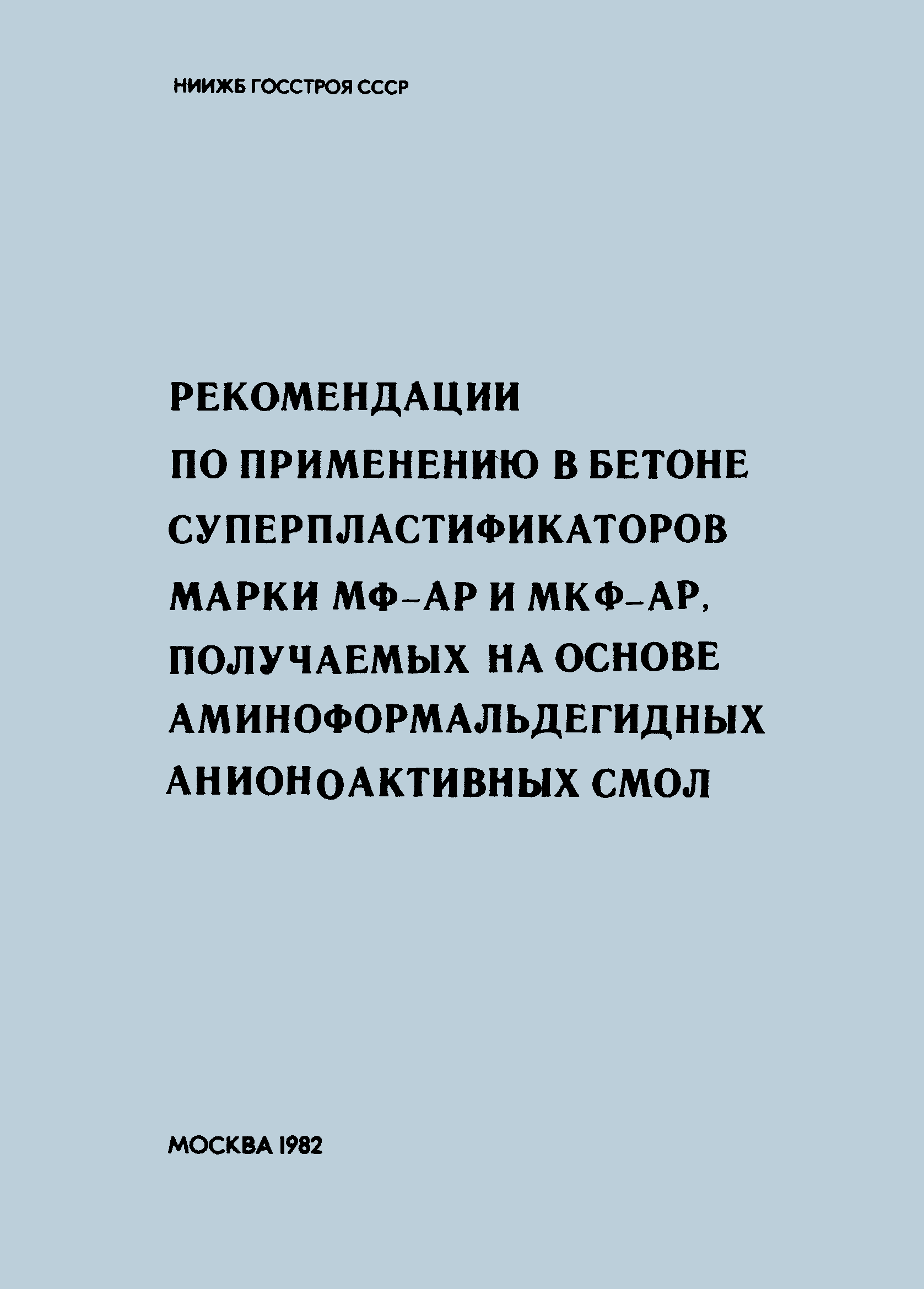 | Название рус.: | Рекомендации по применению в бетоне суперпластификаторов марки МФ-АР и МКФ-АР, получаемых на основе аминоформальдегидных анионоактивных смол |