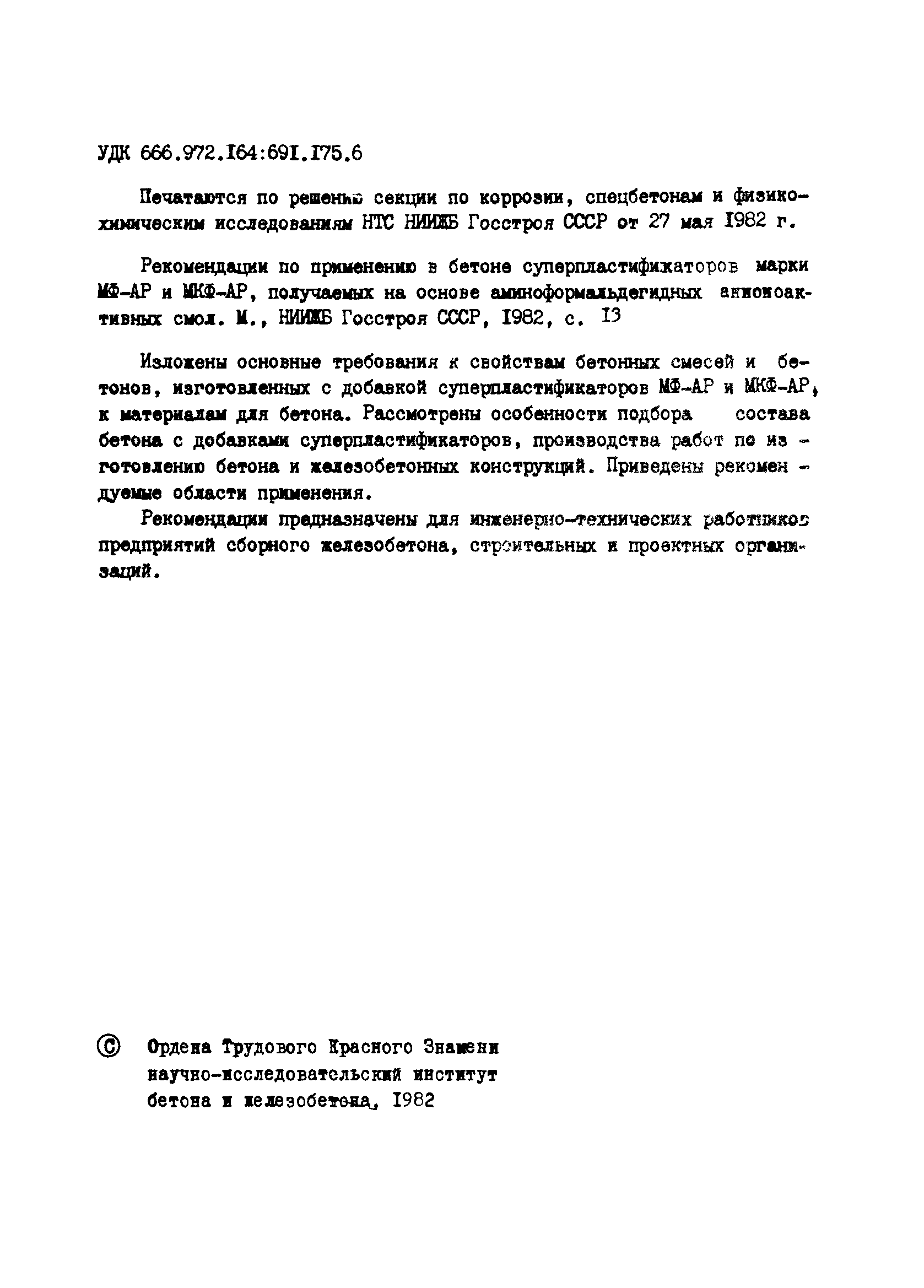 | Утверждён: | 31.08.1982 НИИЖБ Госстроя СССР (NIIZhB, USSR Gosstroy ) |