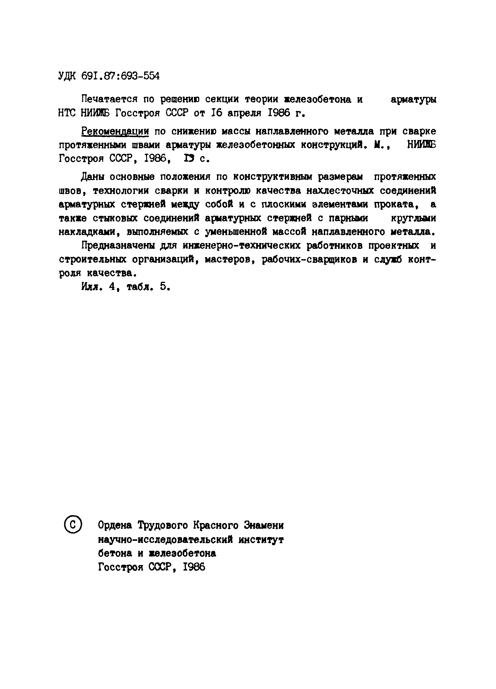 | Название рус.: | Рекомендации по снижению массы наплавленного металла при сварке протяженными швами арматуры железобетонных конструкций |