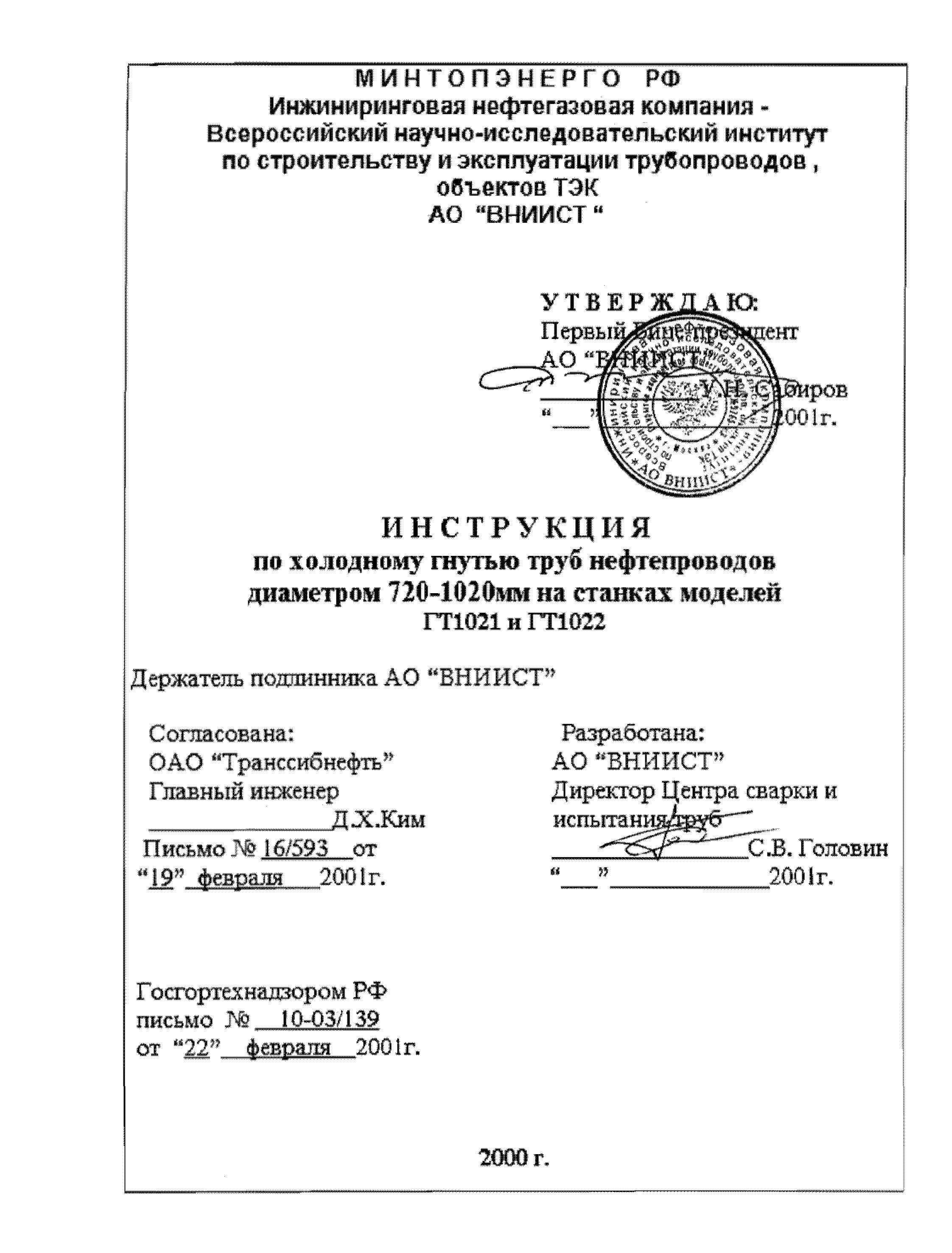 | Утверждён: | АО ВНИИСТ (VNIIST AO ) |