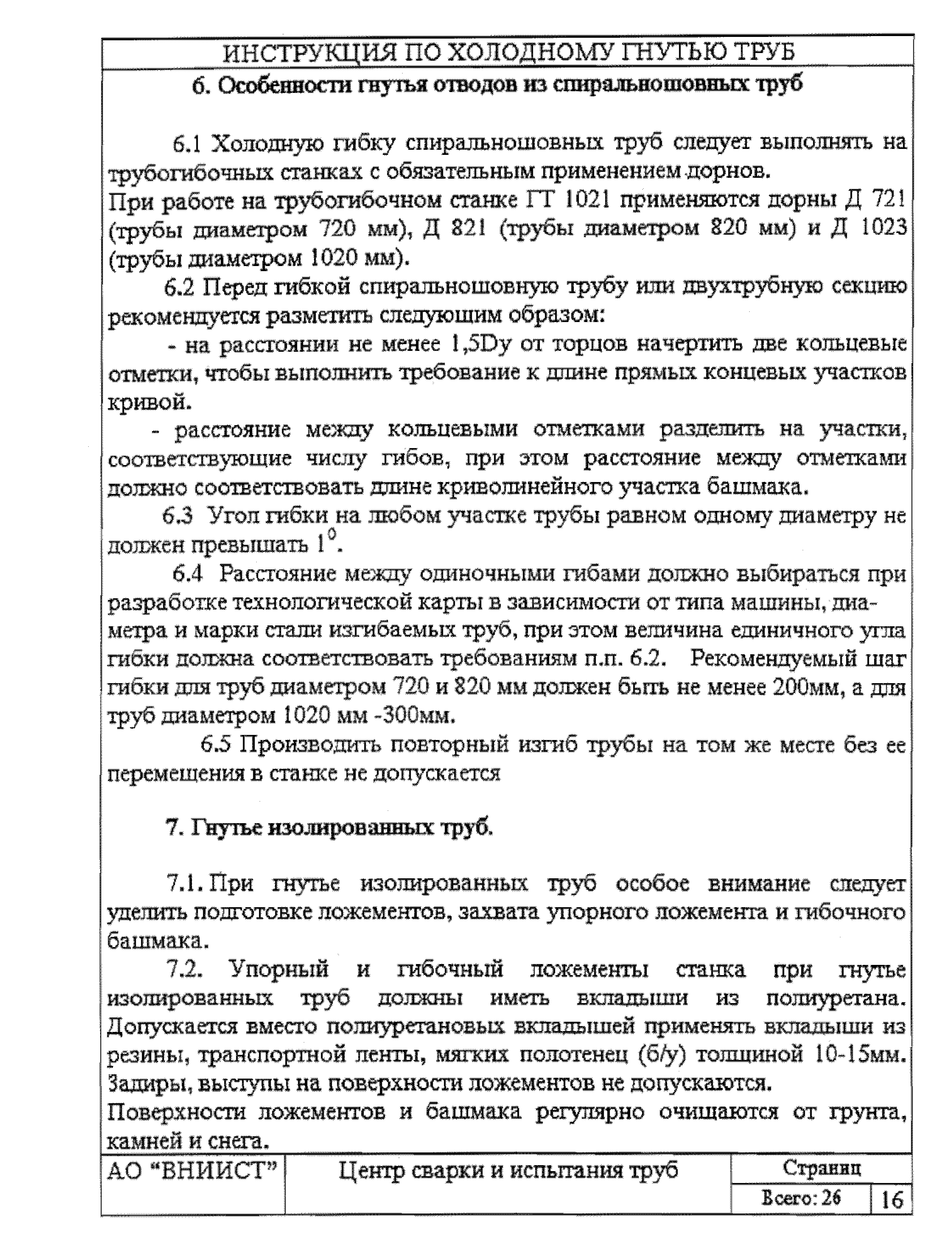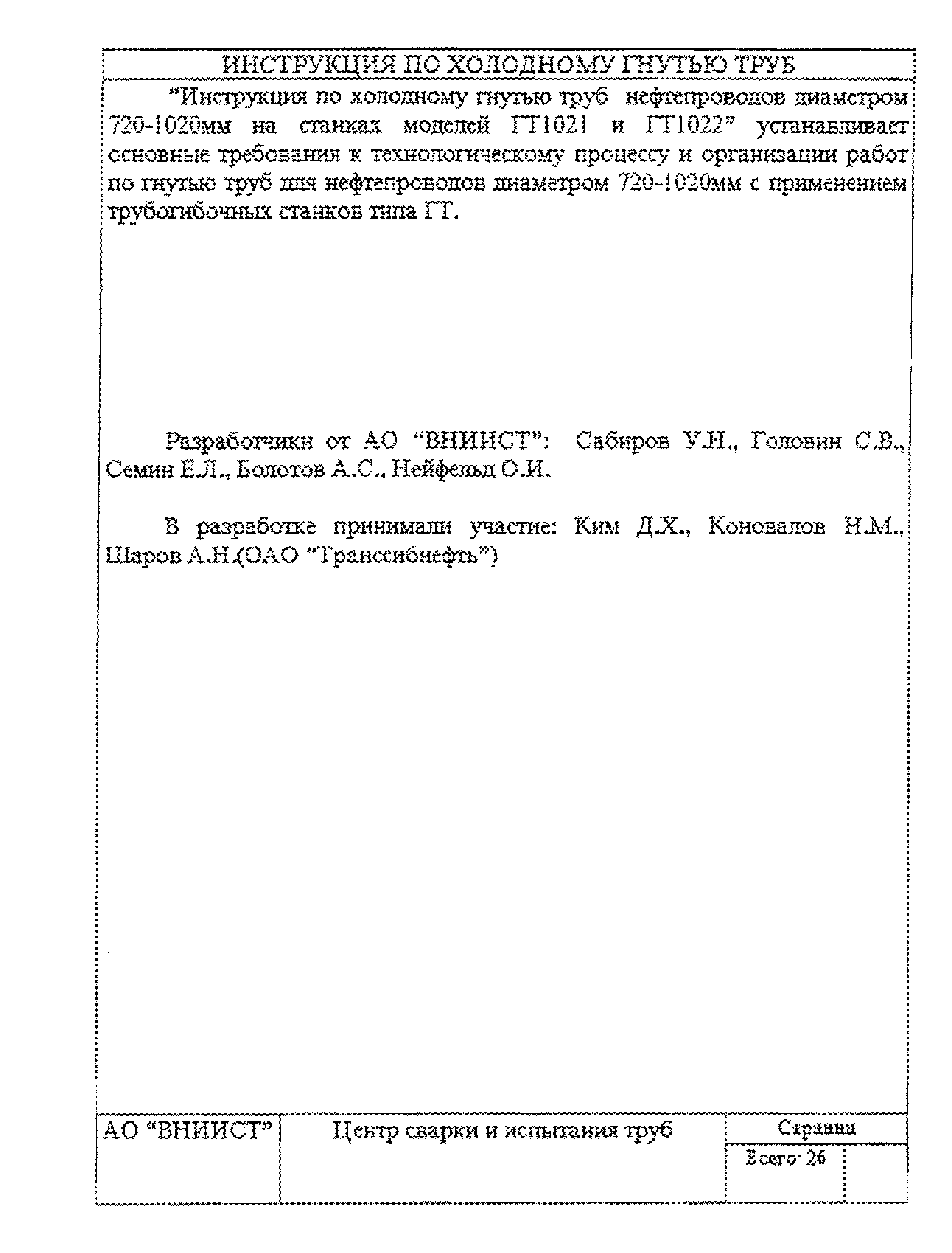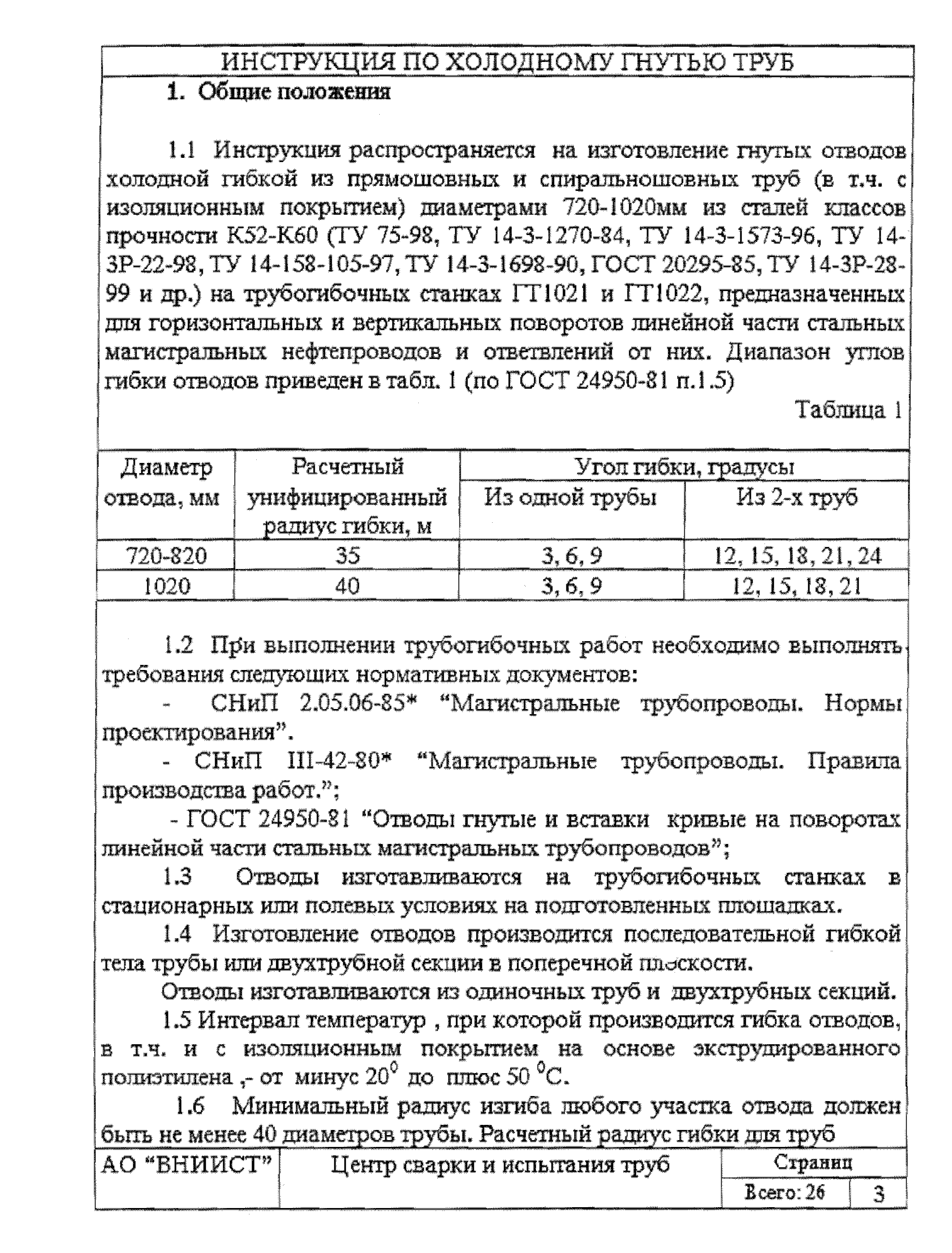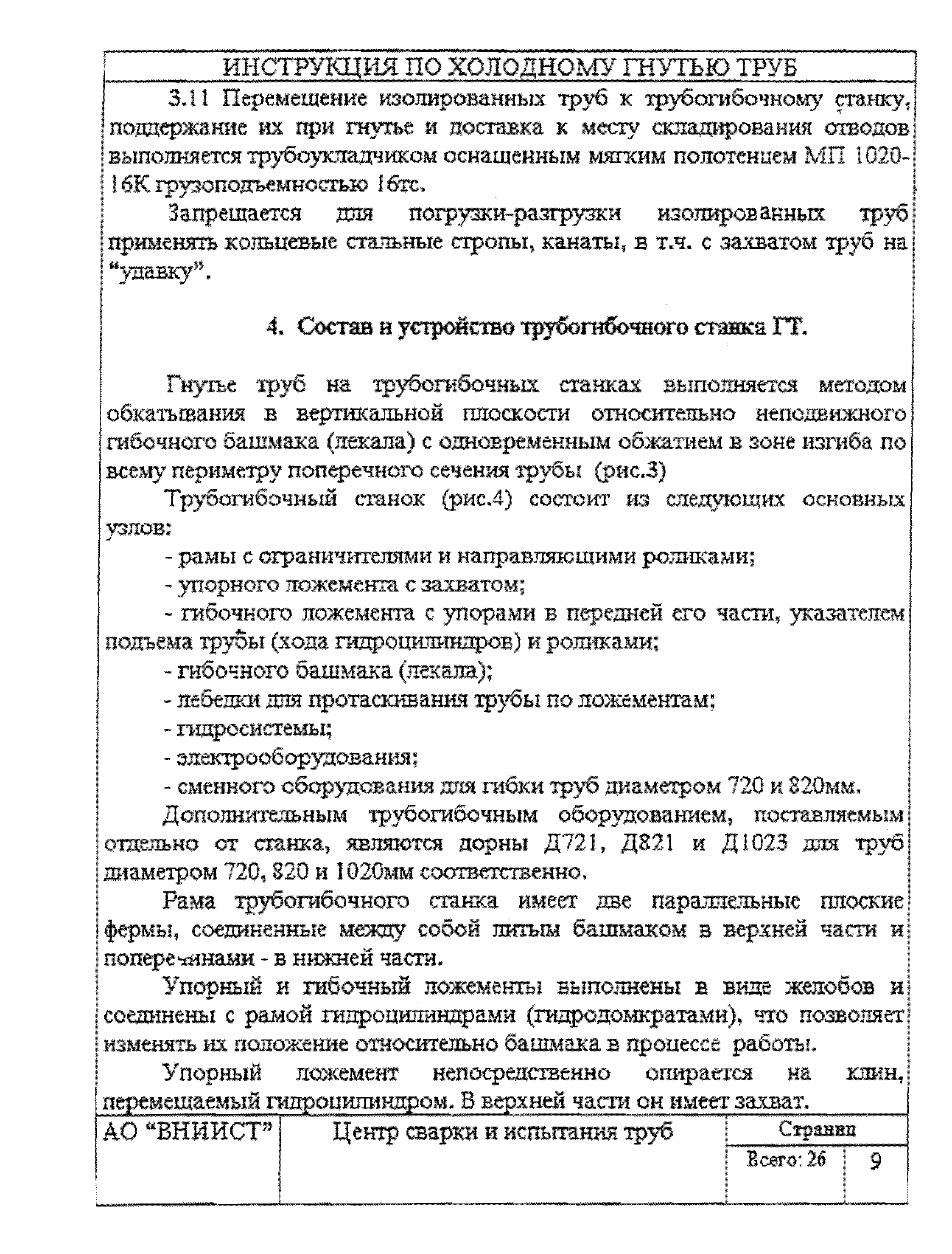 | Название рус.: | Инструкция по холодному гнутью труб нефтепроводов диаметром 720 - 1020 мм на станках моделей ГТ1021 и ГТ1022 |