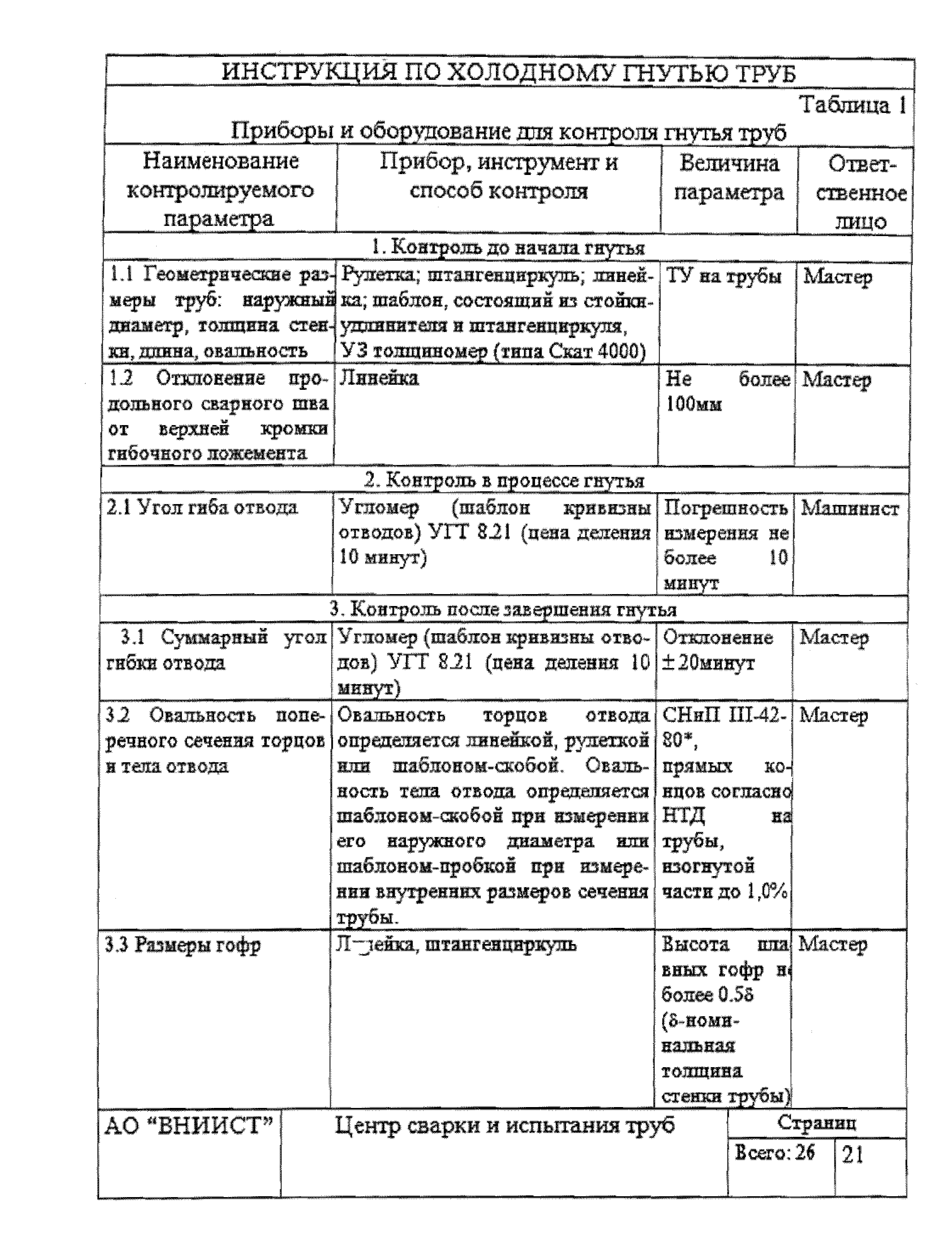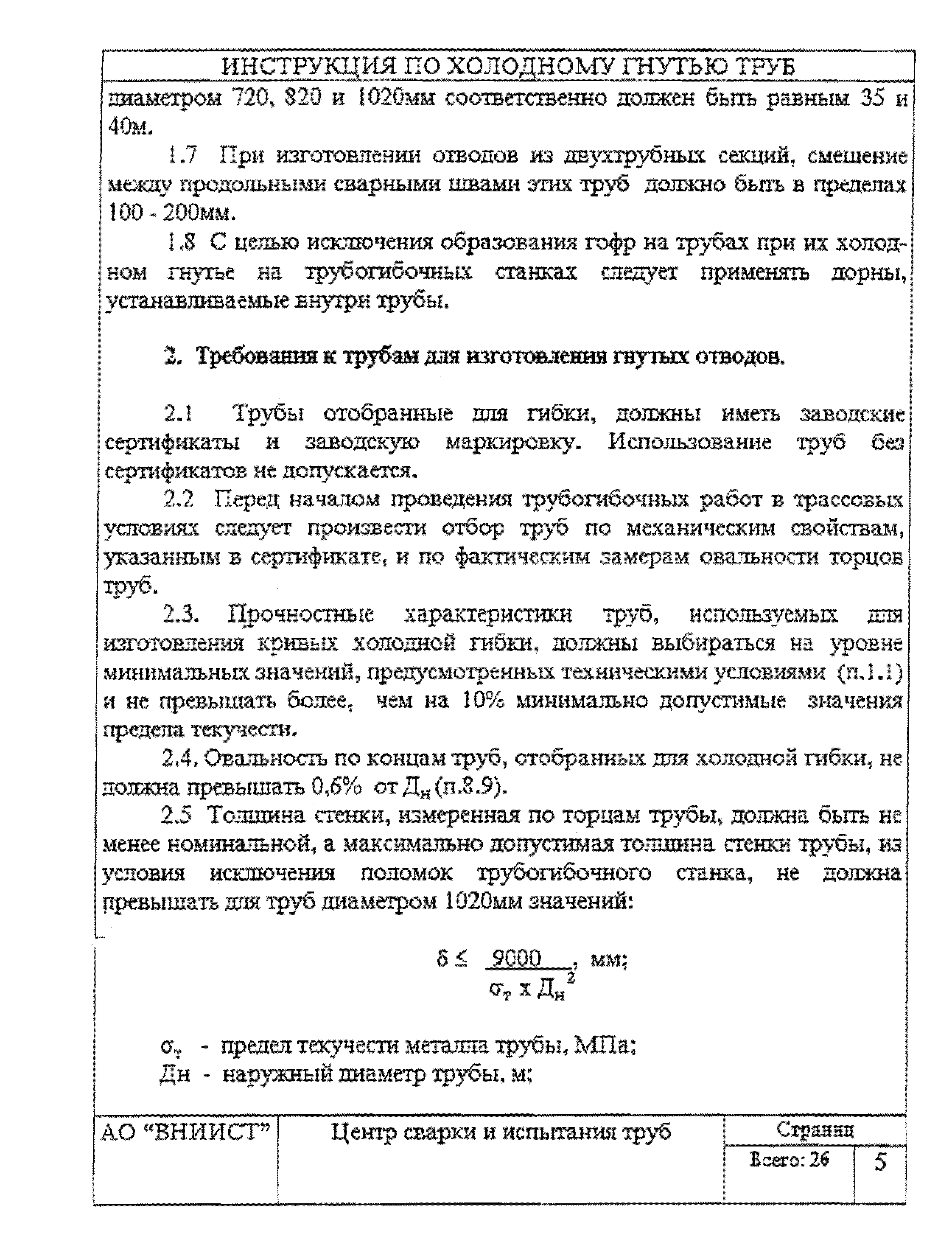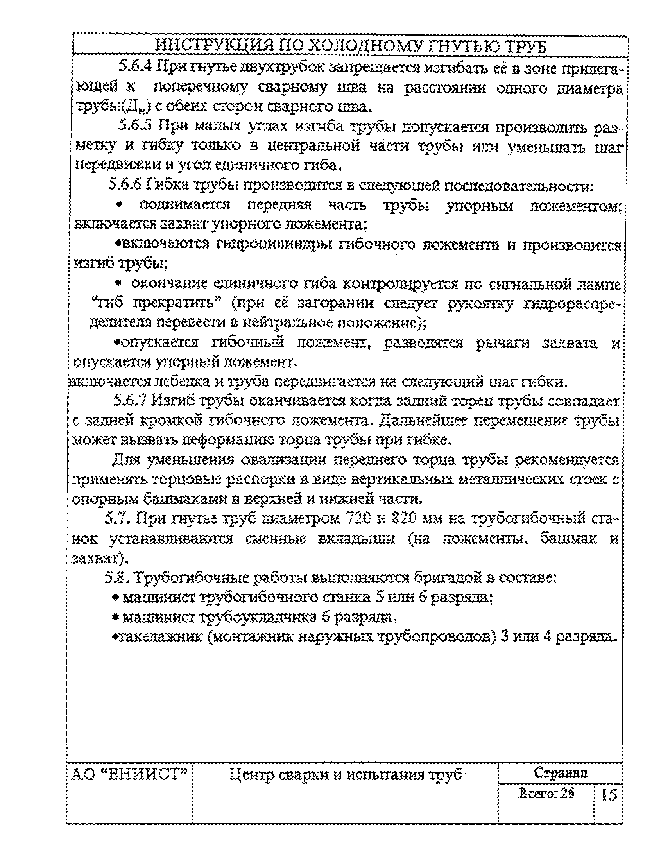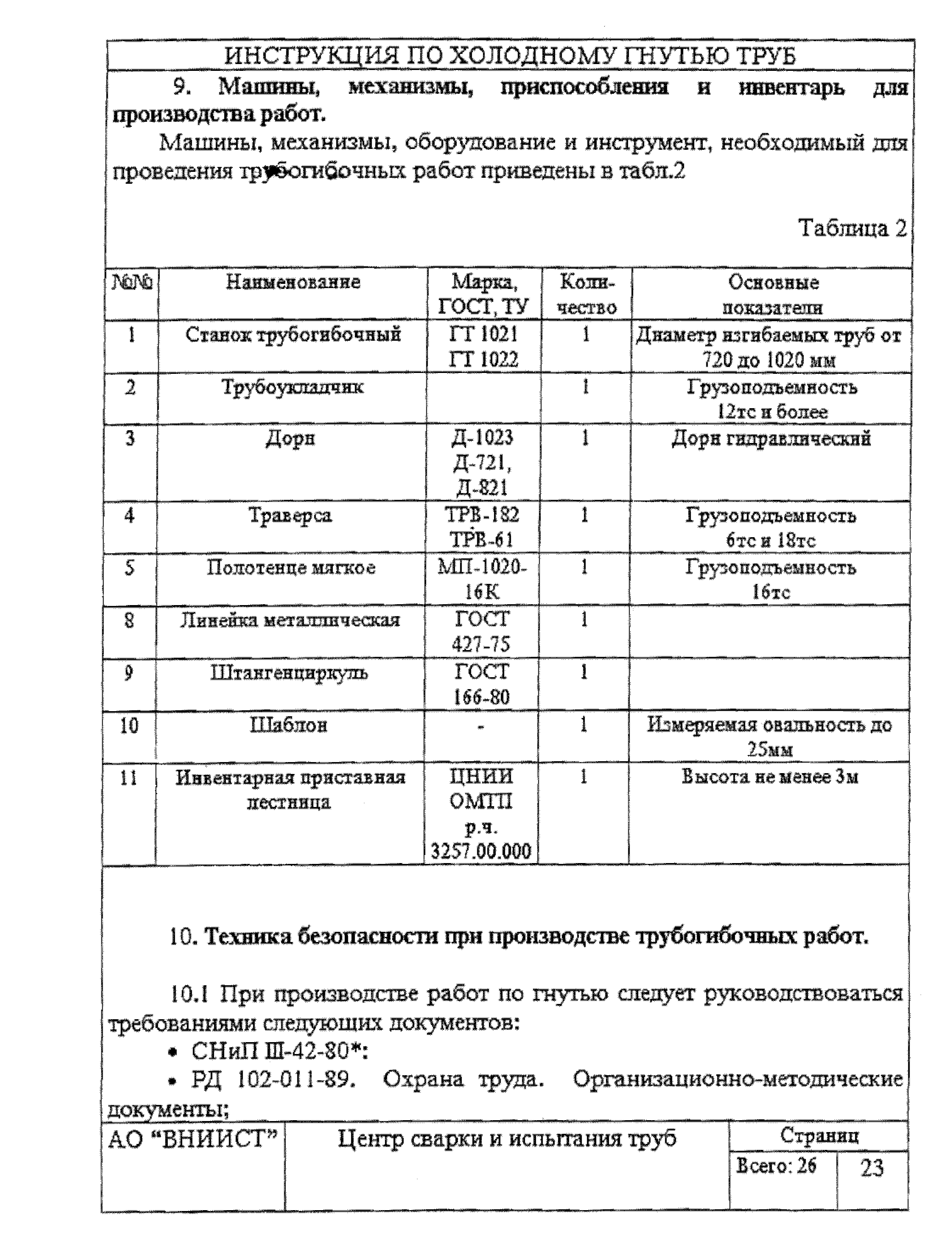 | Название рус.: | Инструкция по холодному гнутью труб нефтепроводов диаметром 720 - 1020 мм на станках моделей ГТ1021 и ГТ1022 |