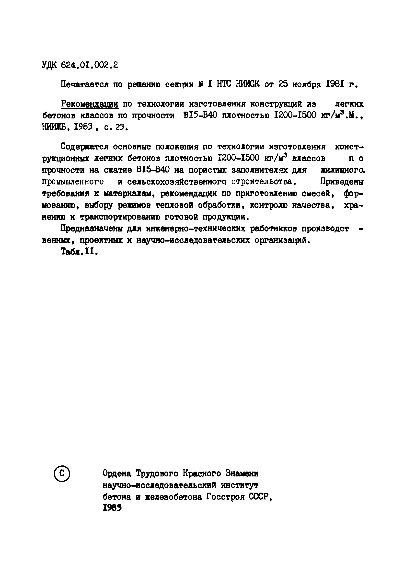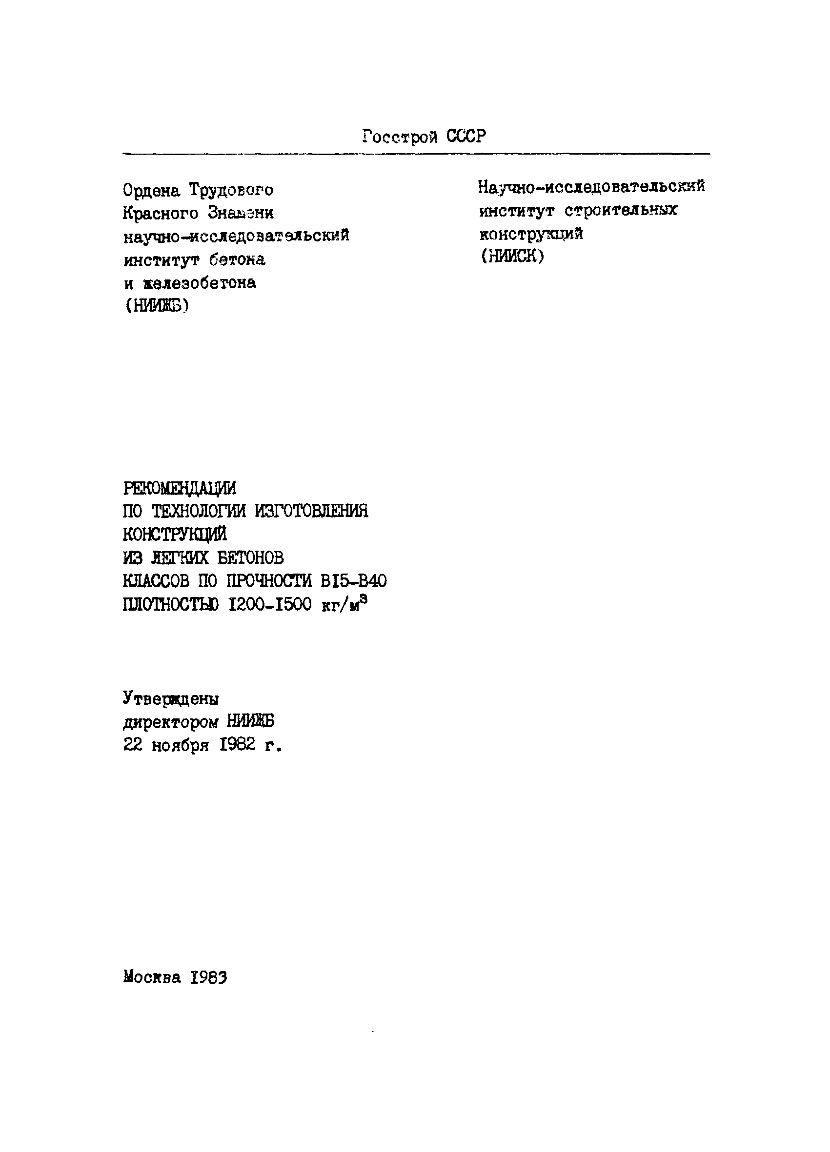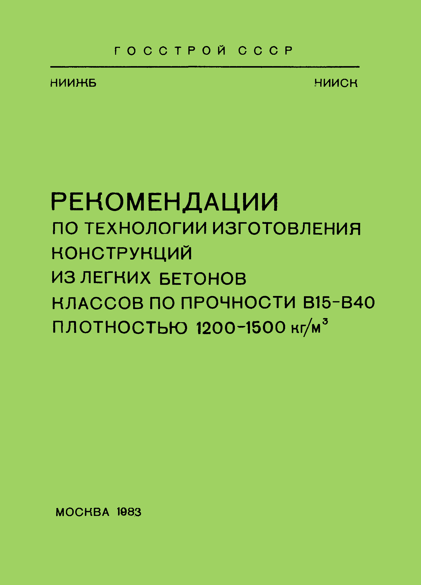 | Область применения: | Рекомендации распространяются на изготовление легких бетонов плотностью 200 — 1500 кг/м3 классов по прочности н а сжатие В15 — В40 на пористых заполнителях для жилого, гражданского и промышленного строительства, а также для сельскохозяйственных зданий с сухим или нормальным температурно—влажностным режимом помещения при отсутствии агрессивных сред |