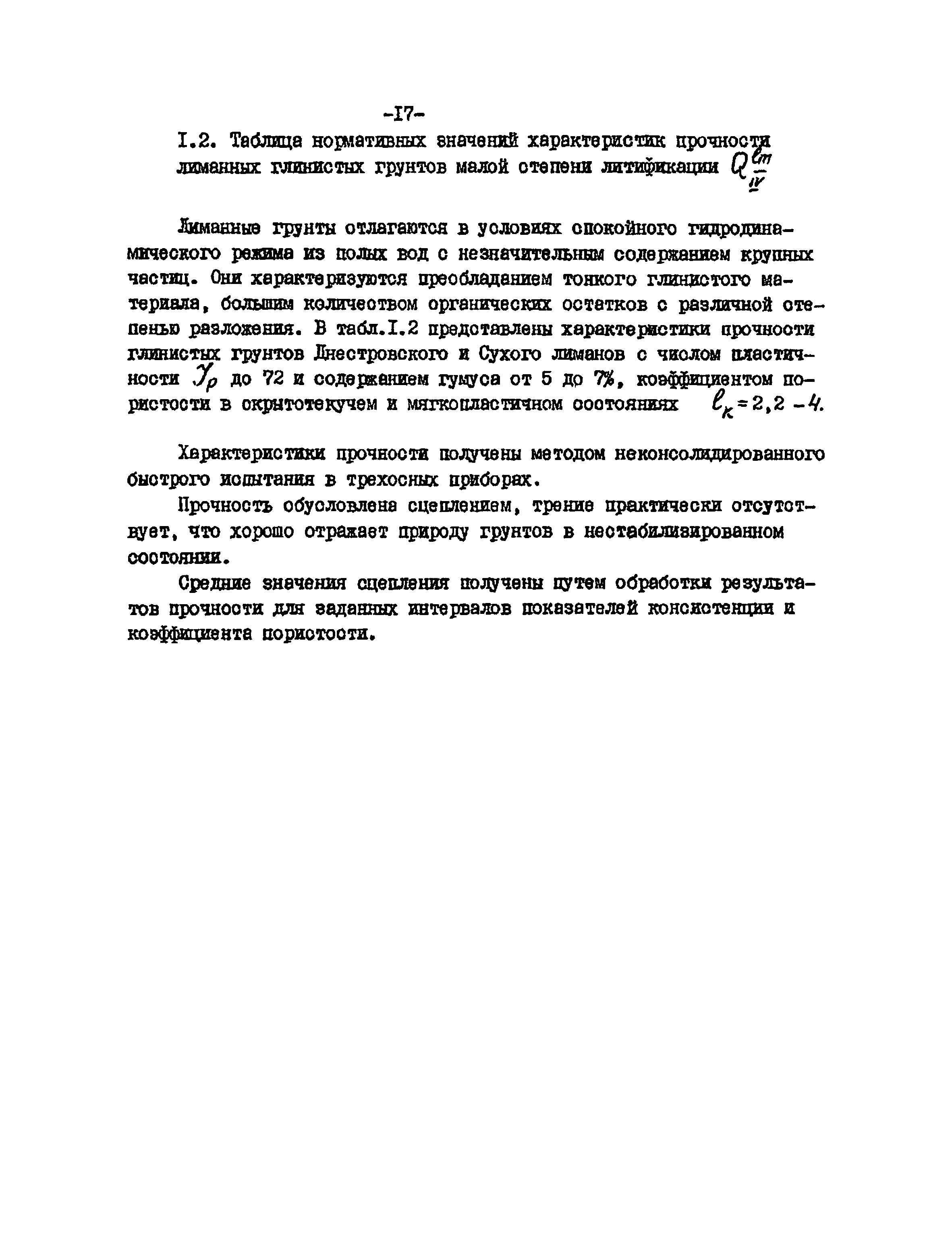 | Оглавление: | 1. Общие положения 2. Исследование корреляционных связей между прочностью и физическими характеристиками глинистых грунтов малой степени литификации 3. Разработка таблиц нормативных и расчетных значений характеристик прочности глинистых грунтов малой степени литификации Приложения: 1. Таблицы нормативных значений характеристик прочности глинистых грунтов малой степени литификации 2. Таблицы расчетных значений характеристик прочности глинистых грунтов малой степени литификации |